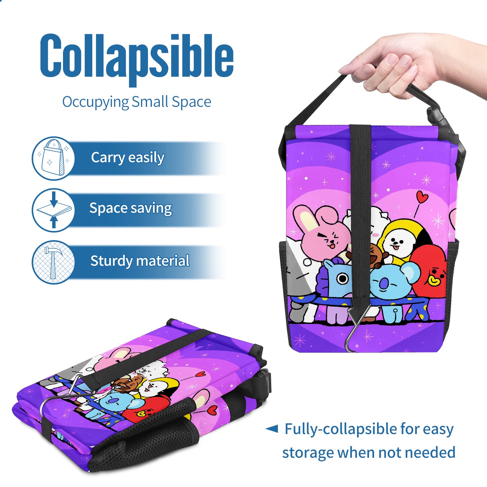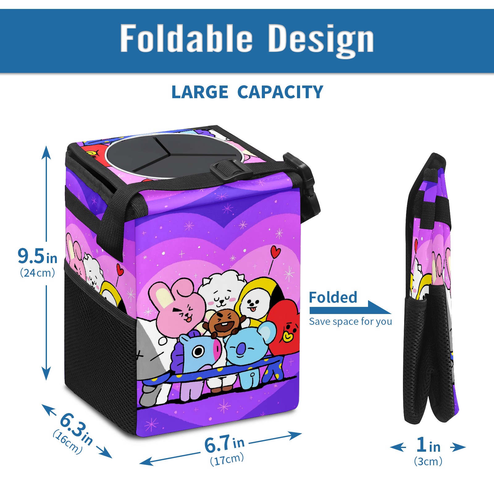Car Garbage Can — Multi-functional, Lightweight Portable, Reusable Vehicle Trash Can, Waterproof with Sufficient Storage Capacity Bt21 Bts 防弾少年団