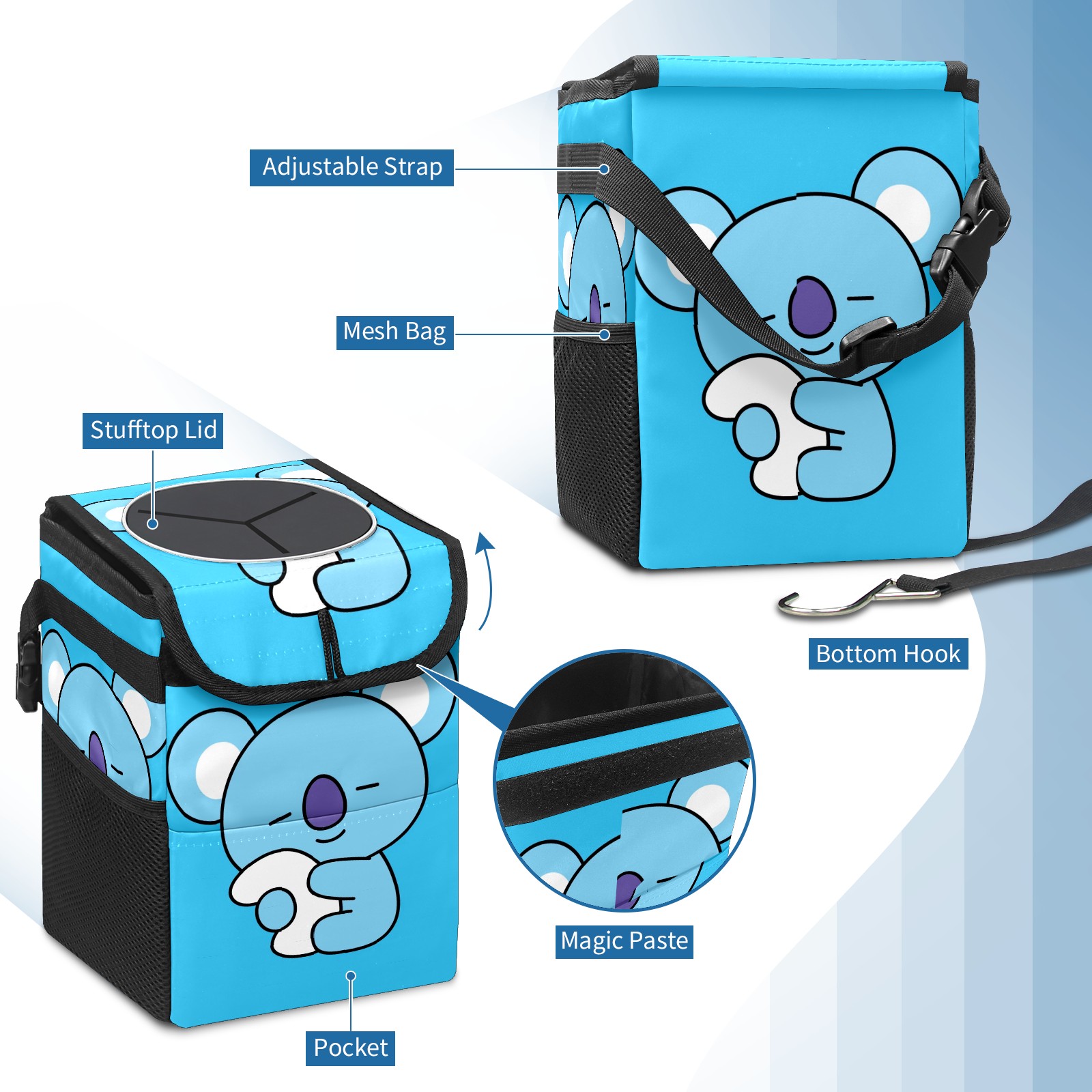 Car Garbage Can — Multi-functional, Lightweight Portable, Reusable Vehicle Trash Can, Waterproof with Sufficient Storage Capacity Bt21 KOYA Bts