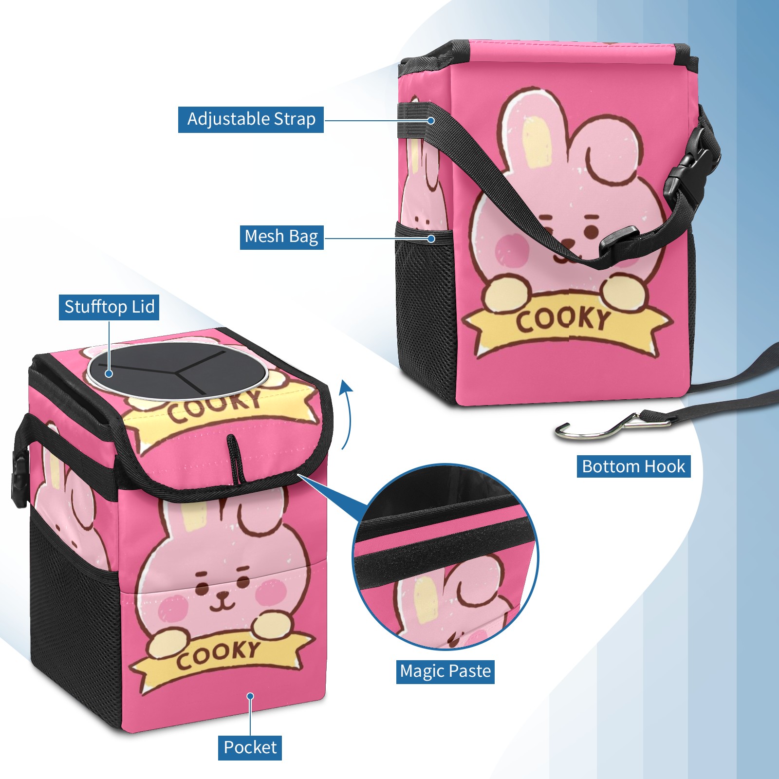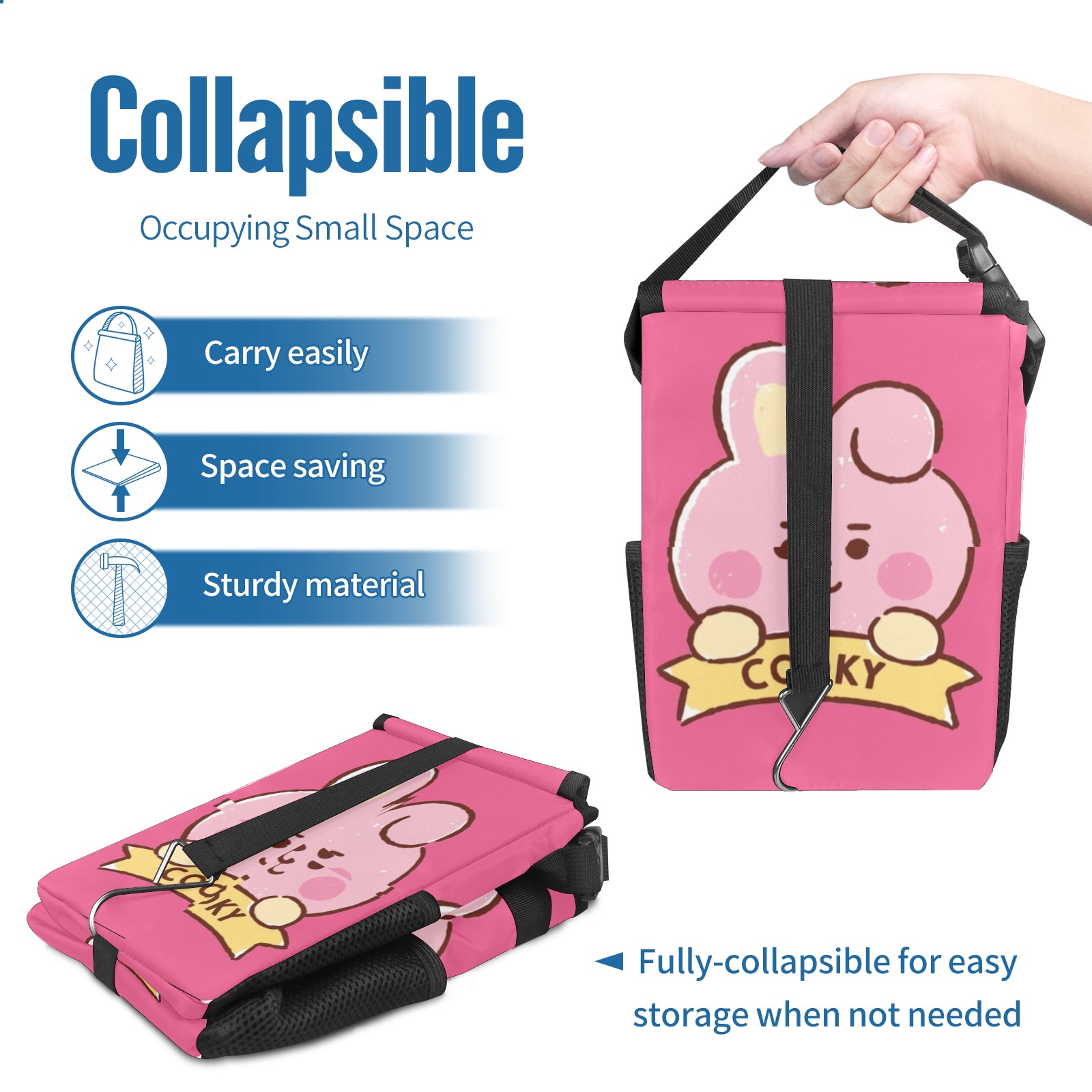 Car Garbage Can — Multi-functional, Lightweight Portable, Reusable Vehicle Trash Can, Waterproof with Sufficient Storage Capacity Bt21 Cooky