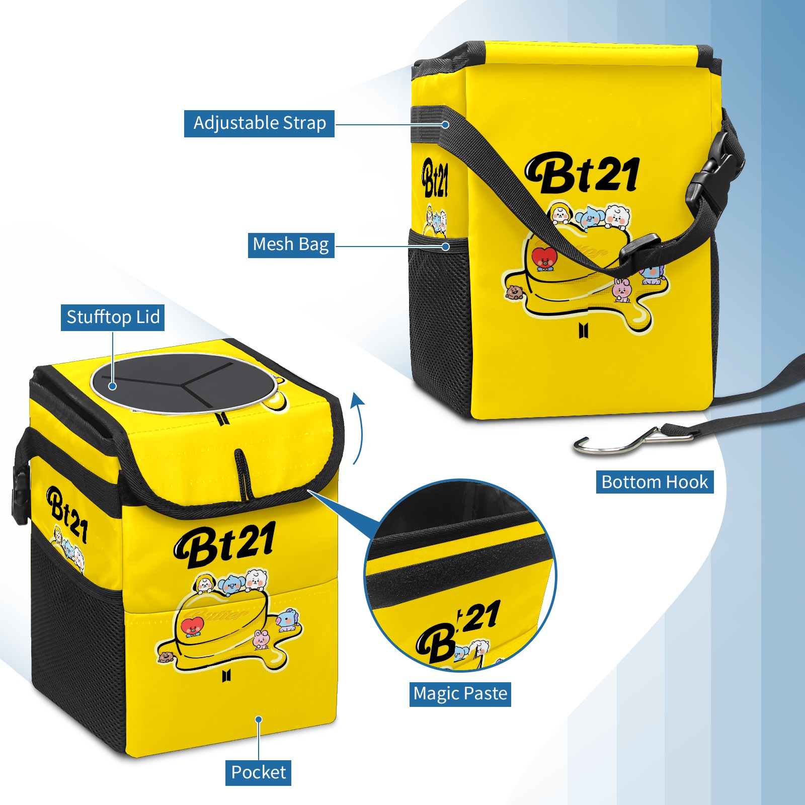Car Garbage Can — Multi-functional, Lightweight Portable, Reusable Vehicle Trash Can, Waterproof with Sufficient Storage Capacity Bt21-010
