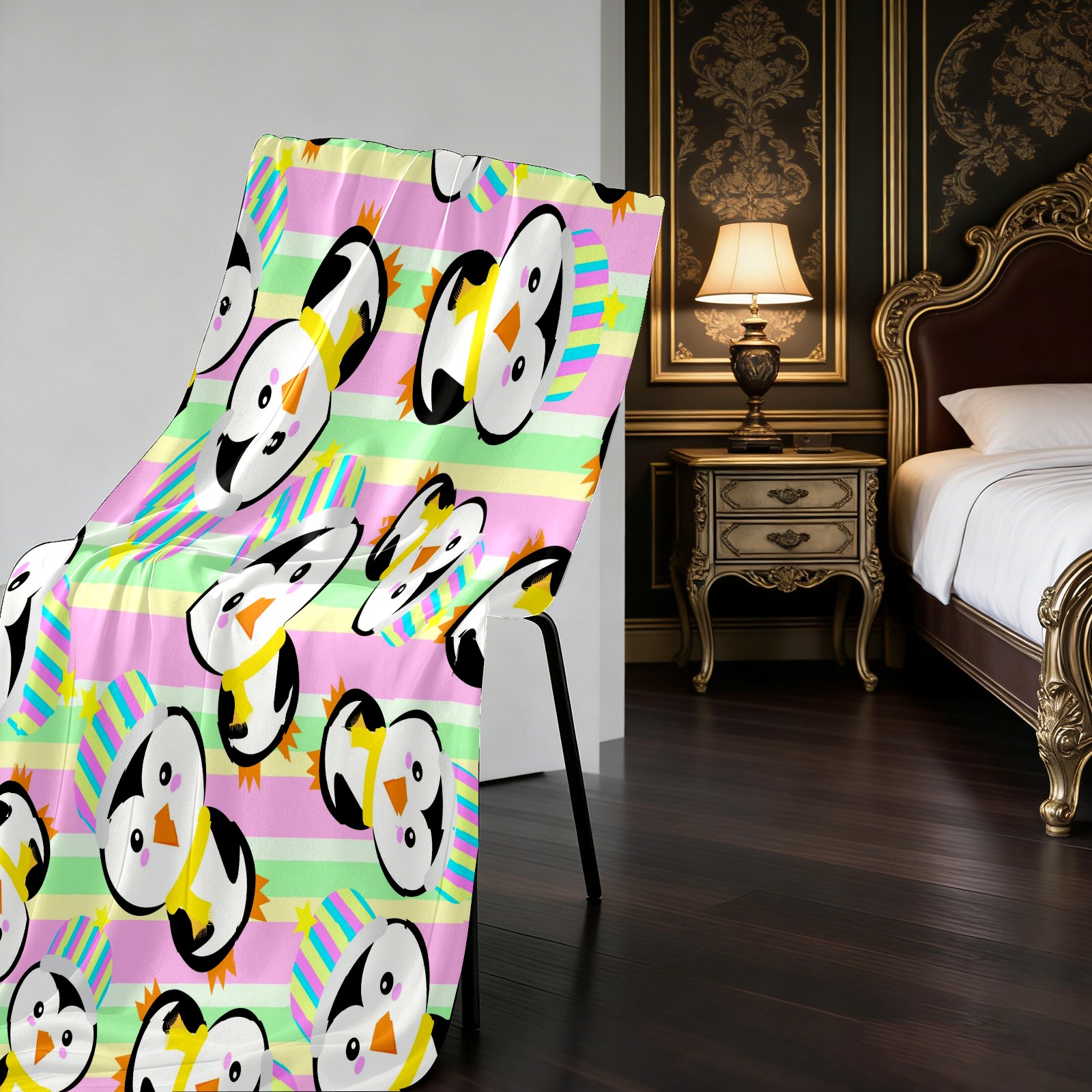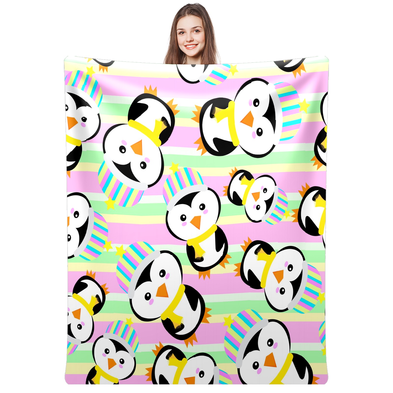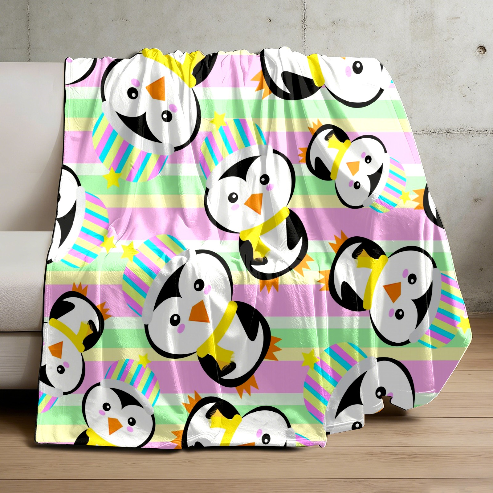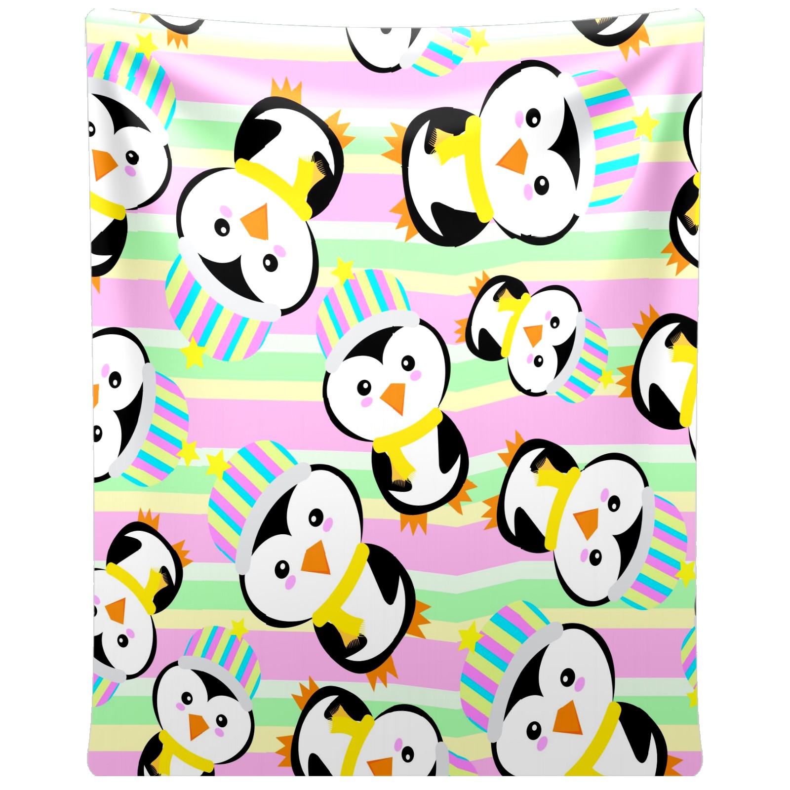 Happy Birthday Penguin Colorful Stripes Background