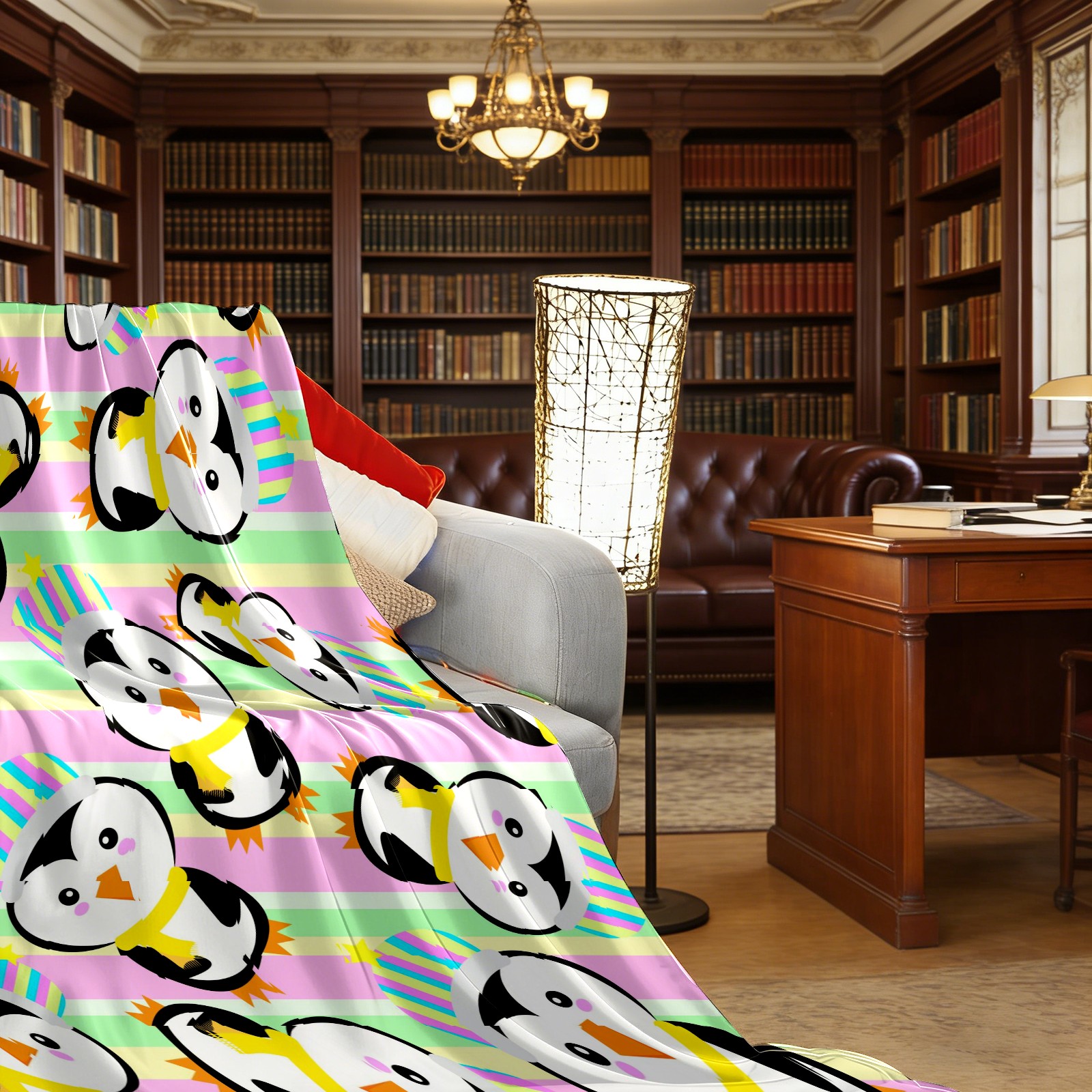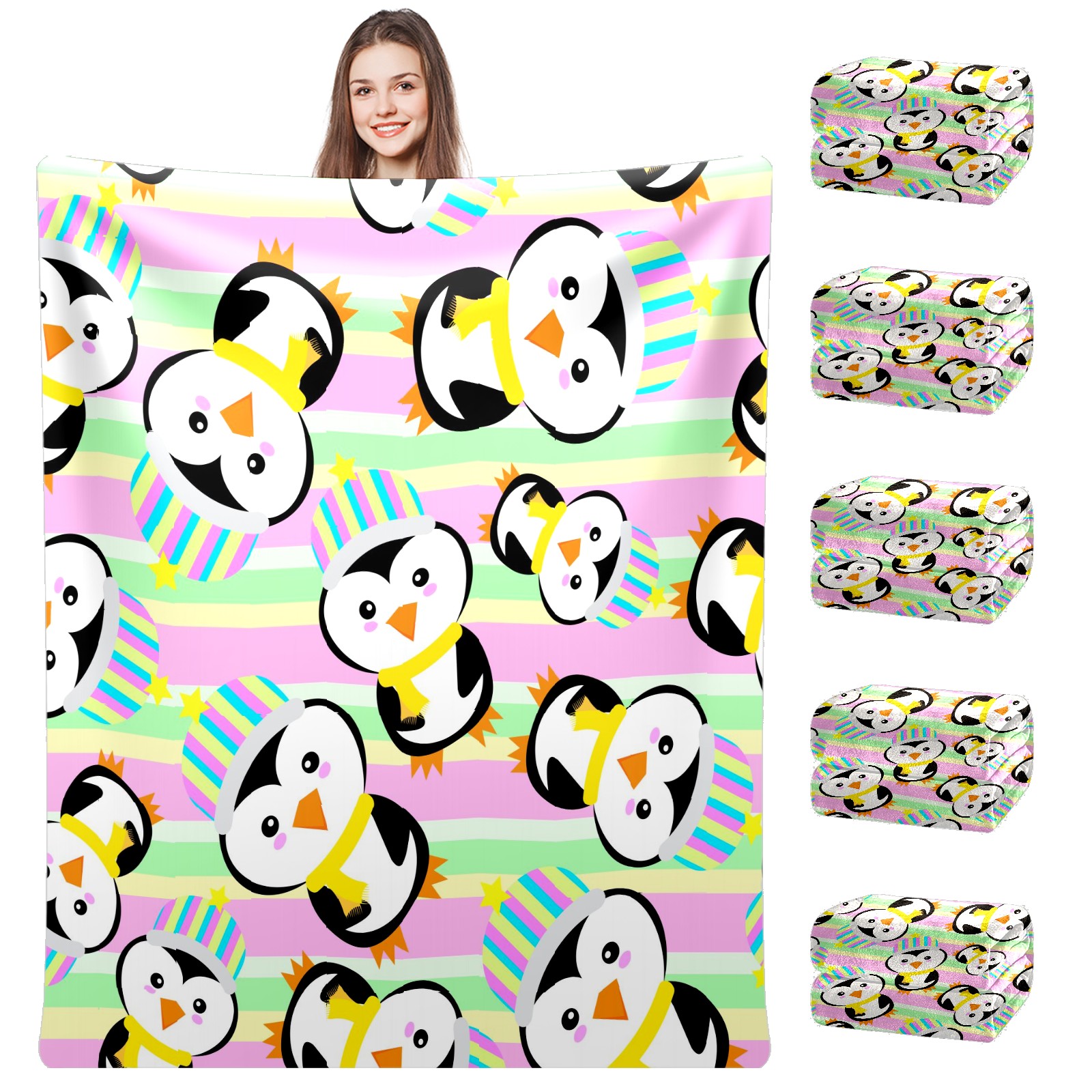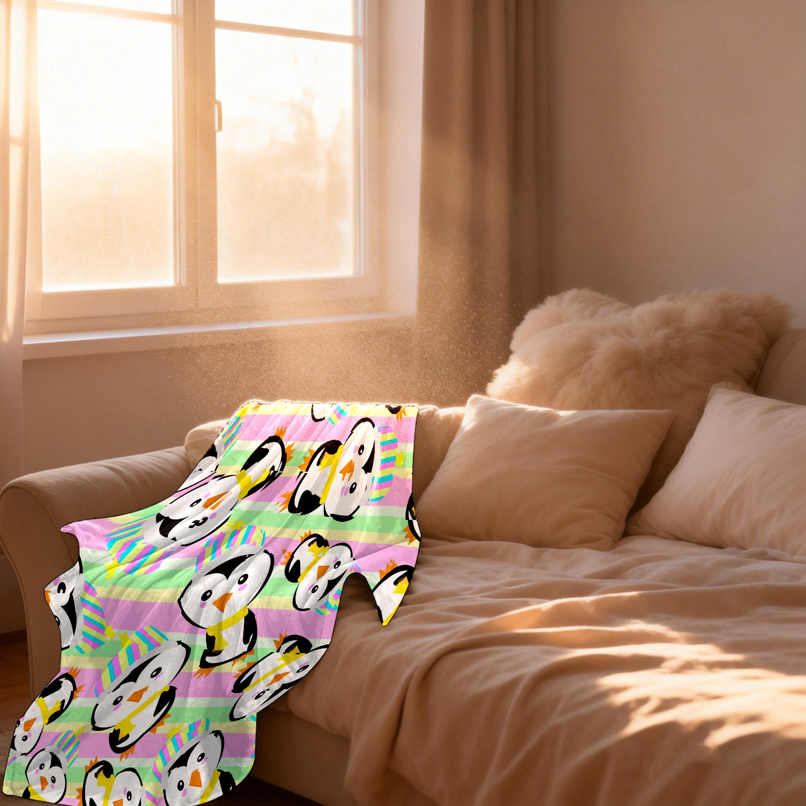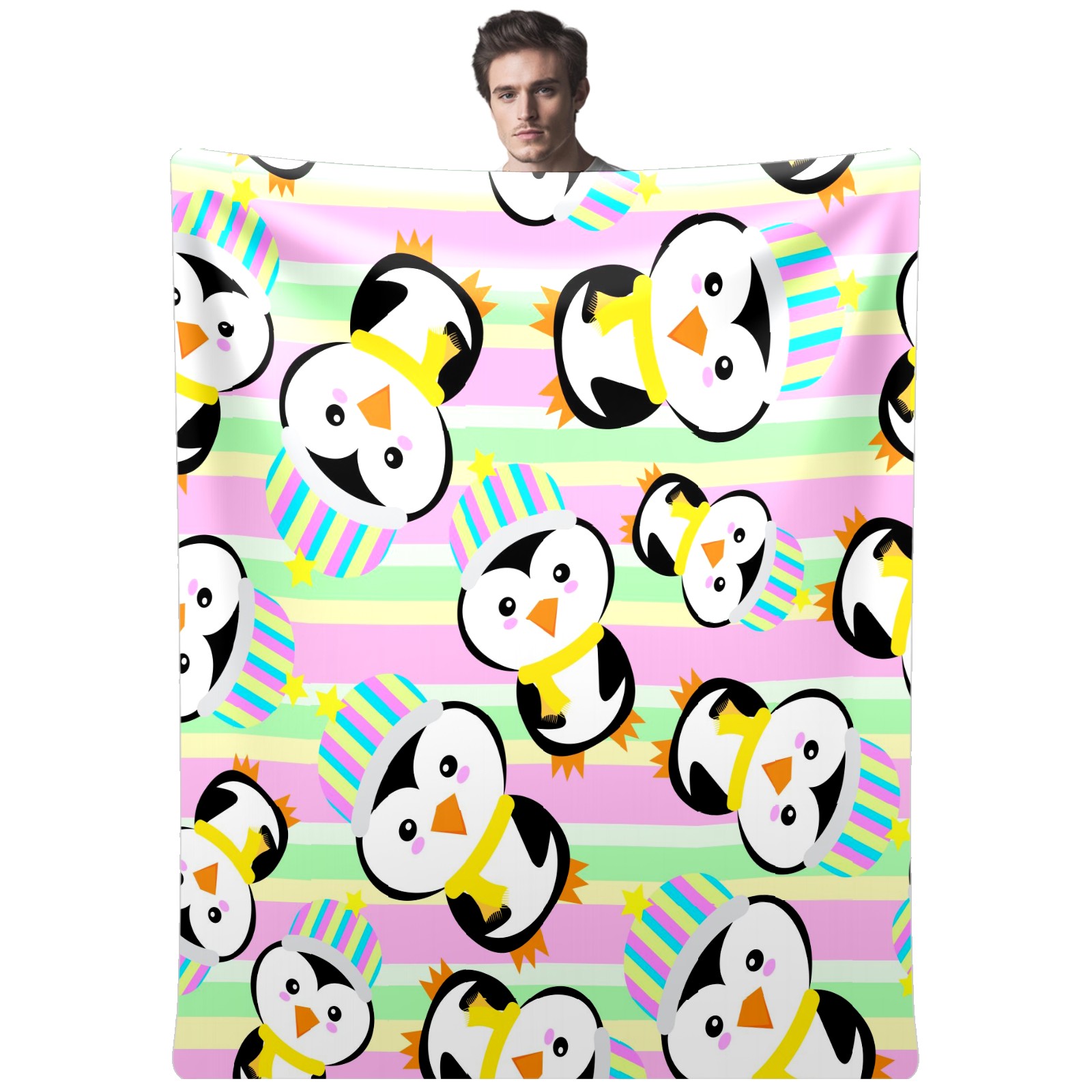 Happy Birthday Penguin Colorful Stripes Background