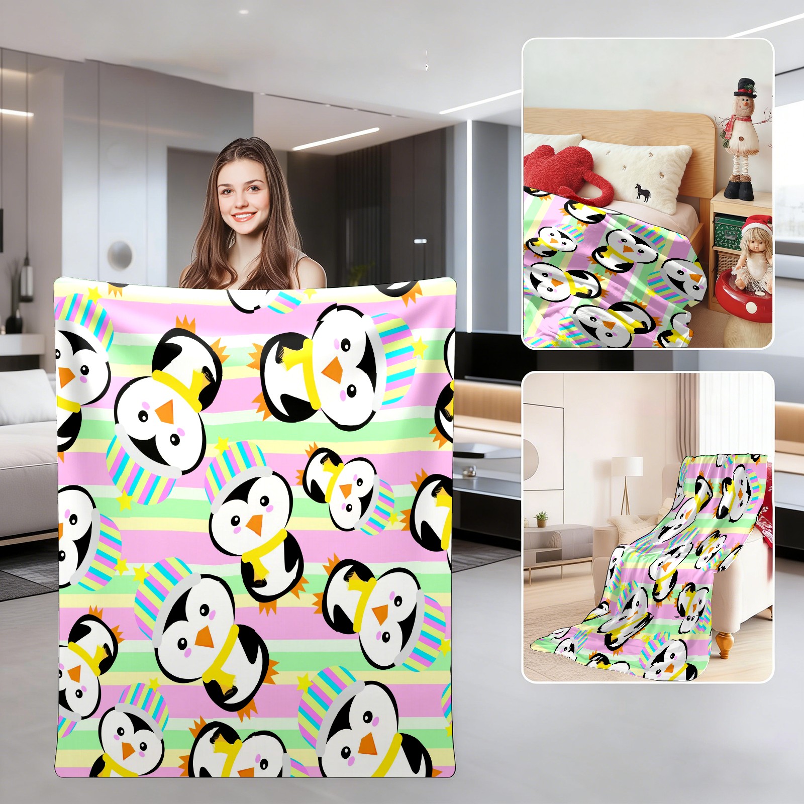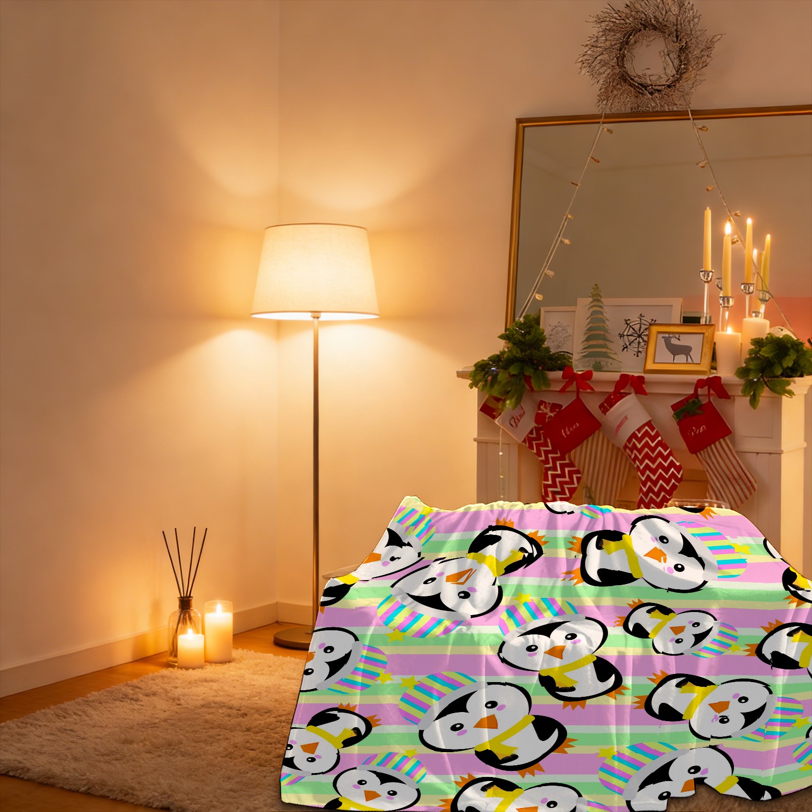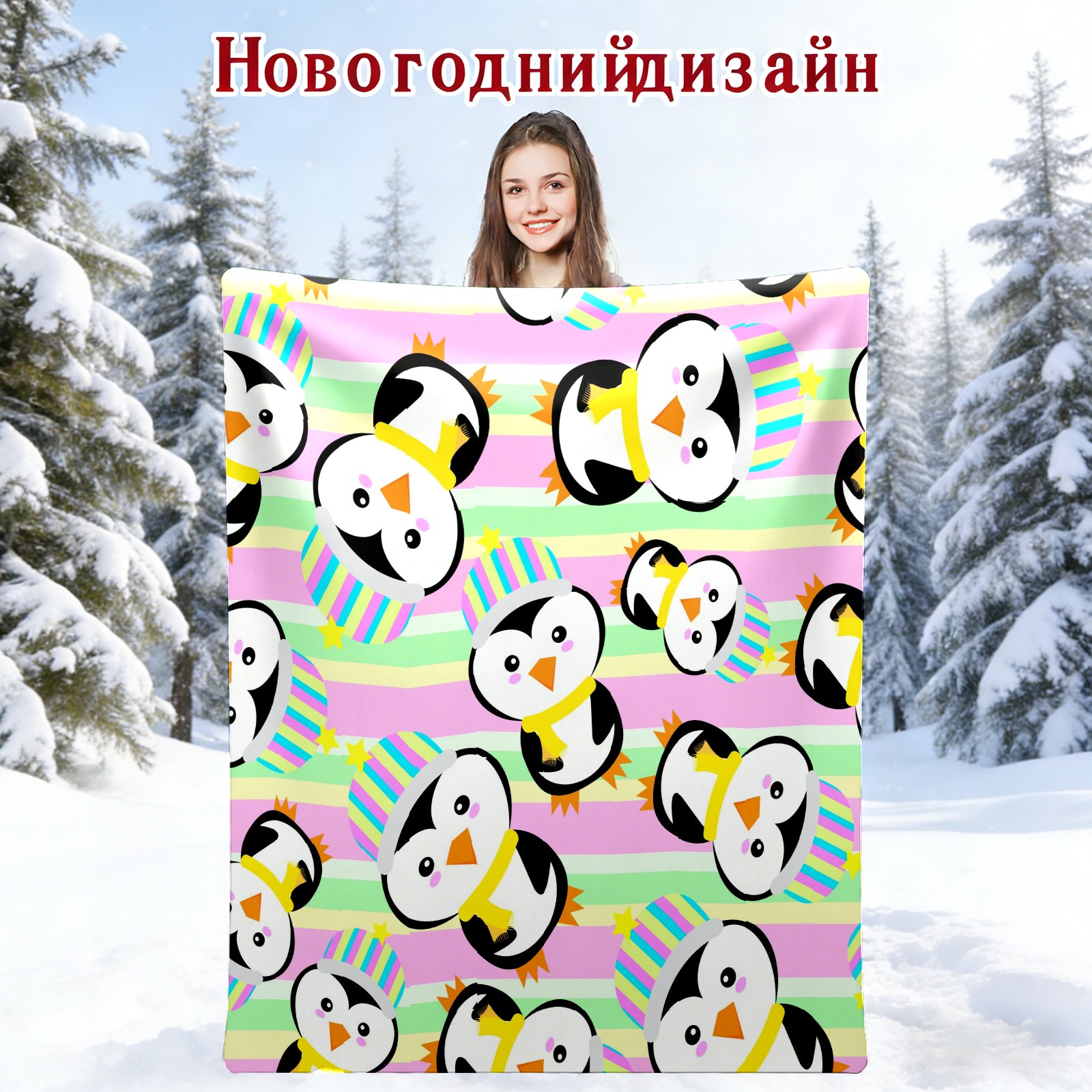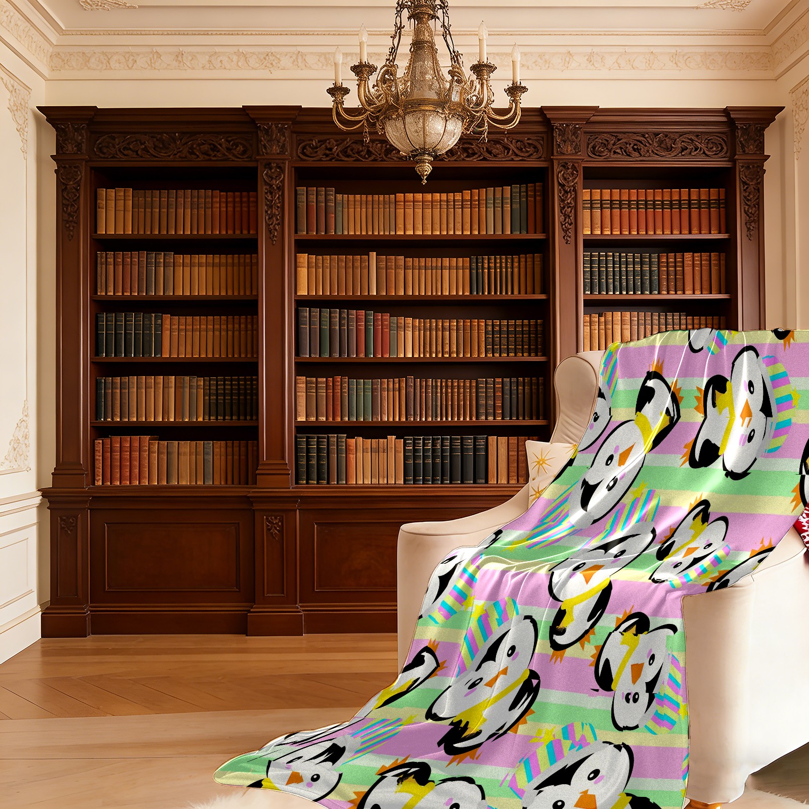 Happy Birthday Penguin Colorful Stripes Background