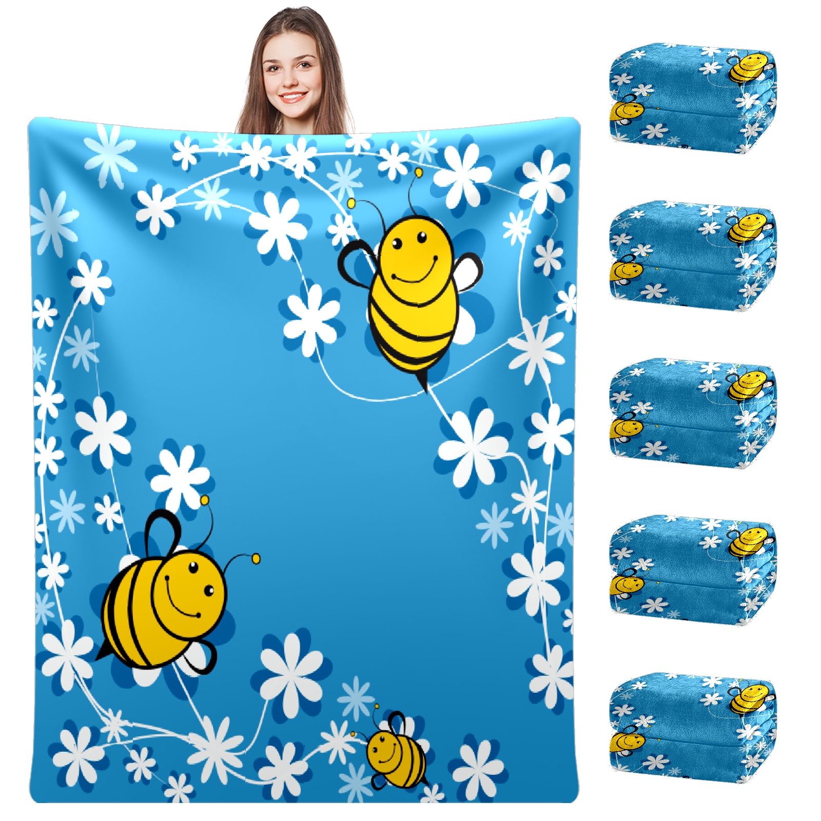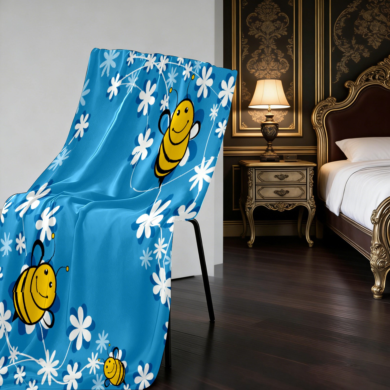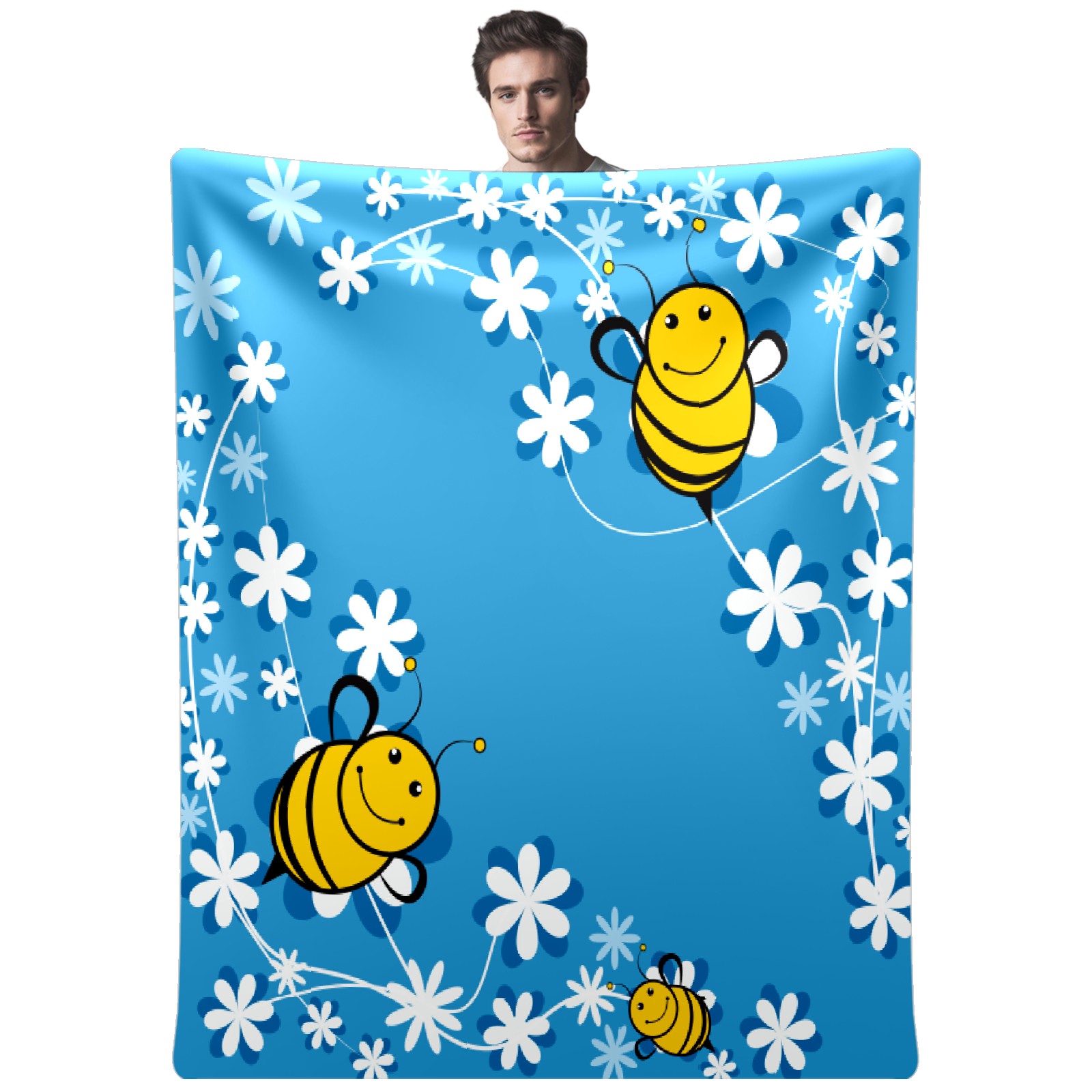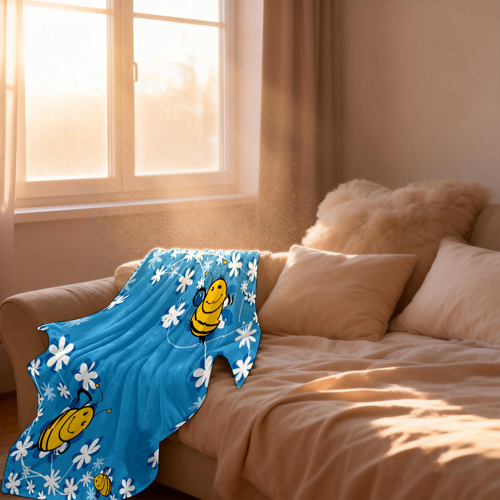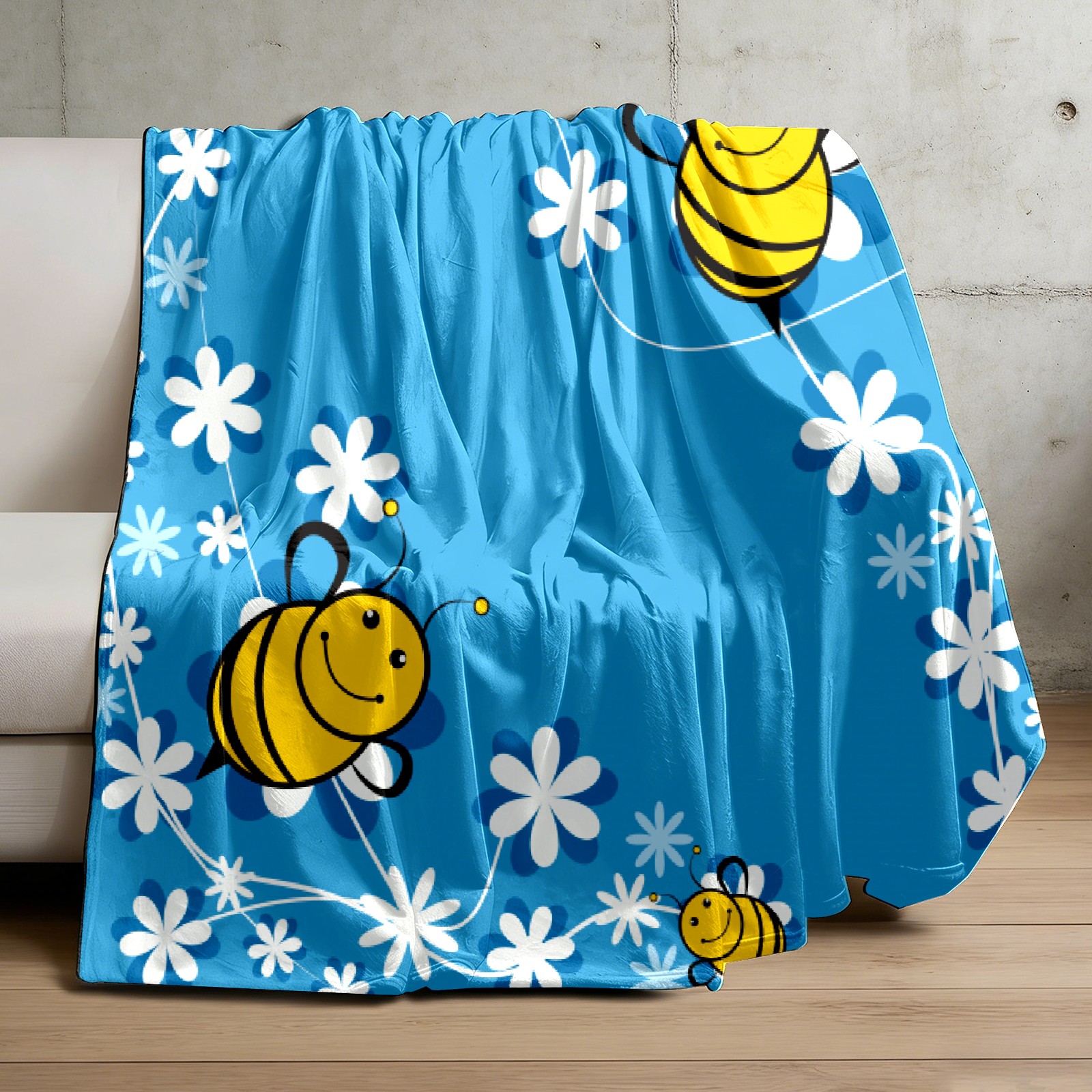 Cute Bee Blue Background