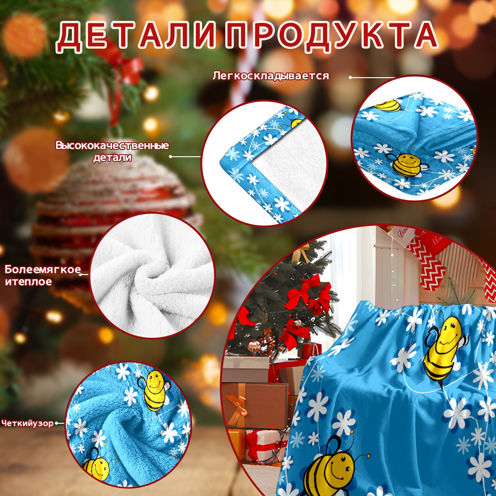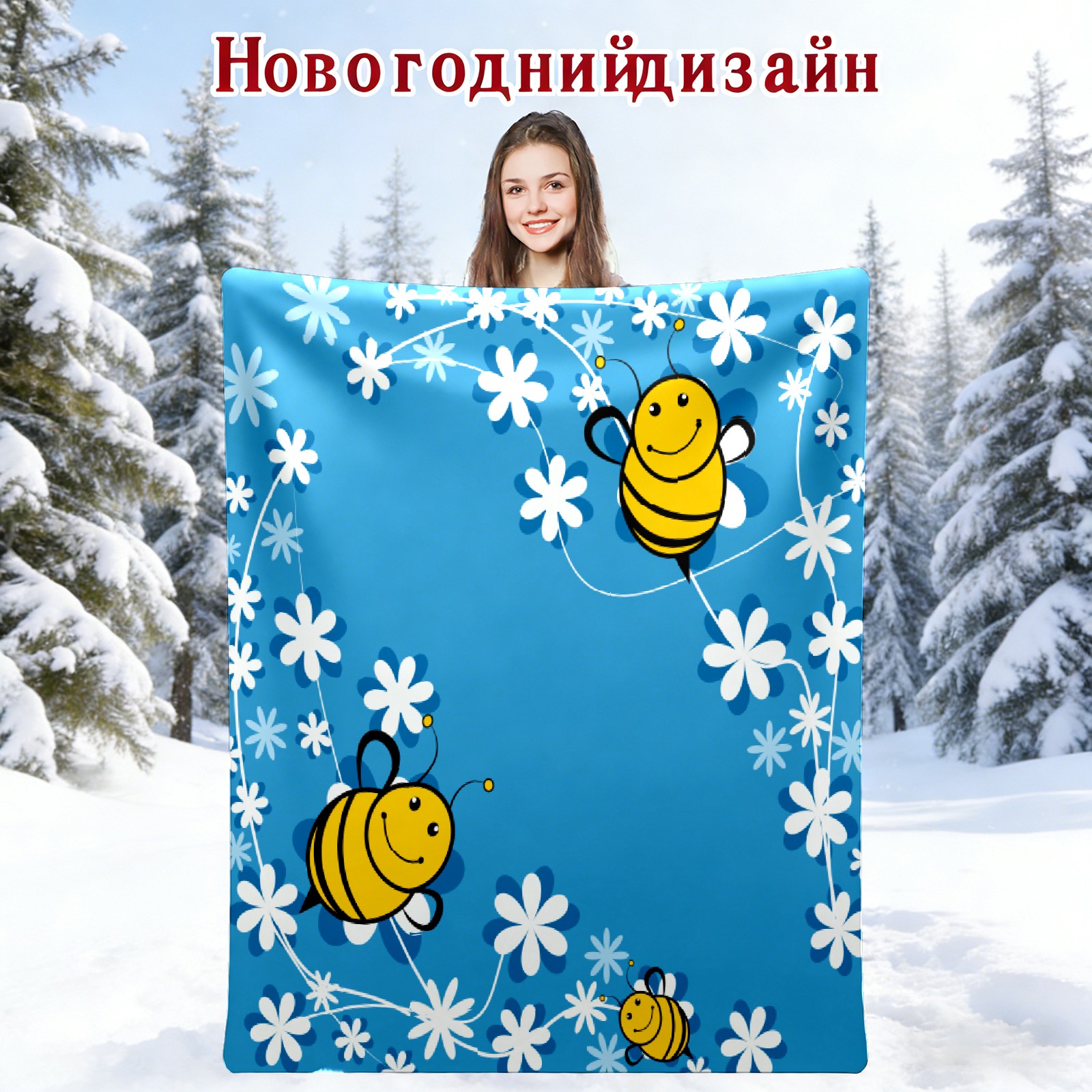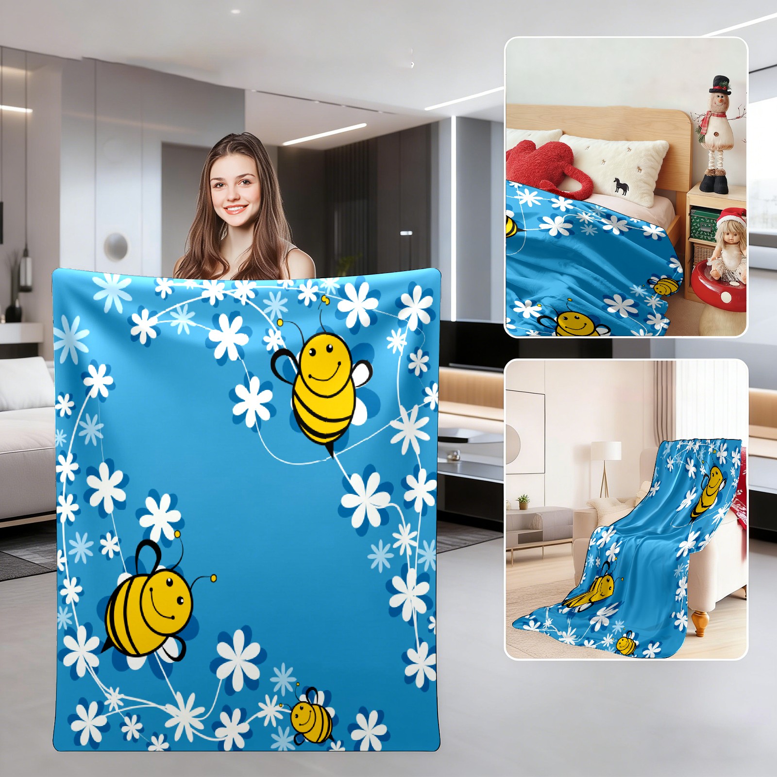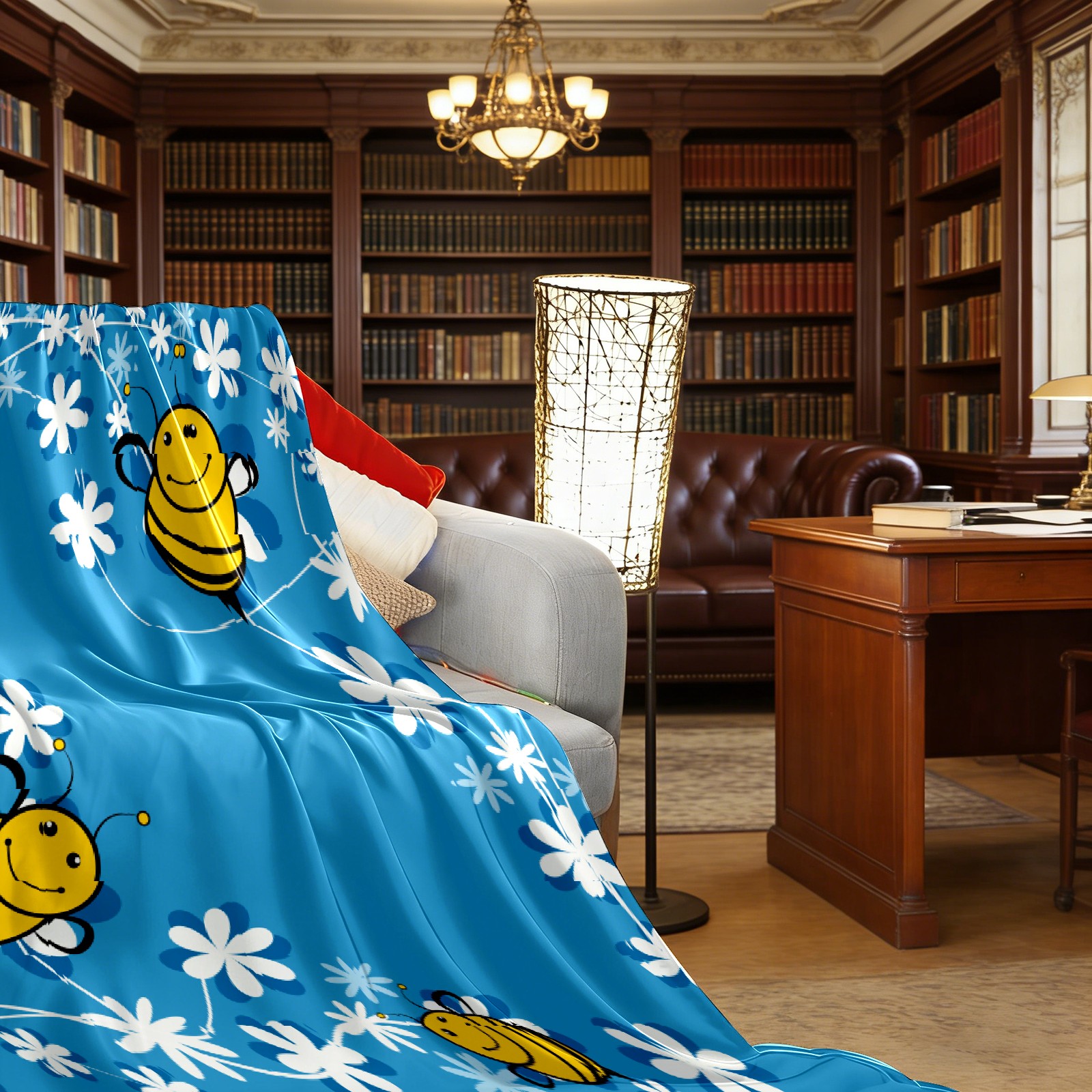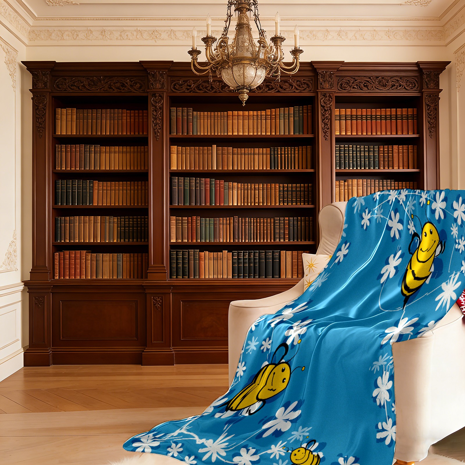 Cute Bee Blue Background