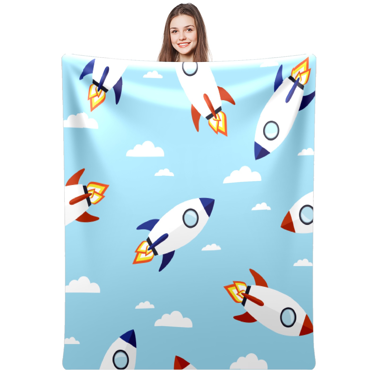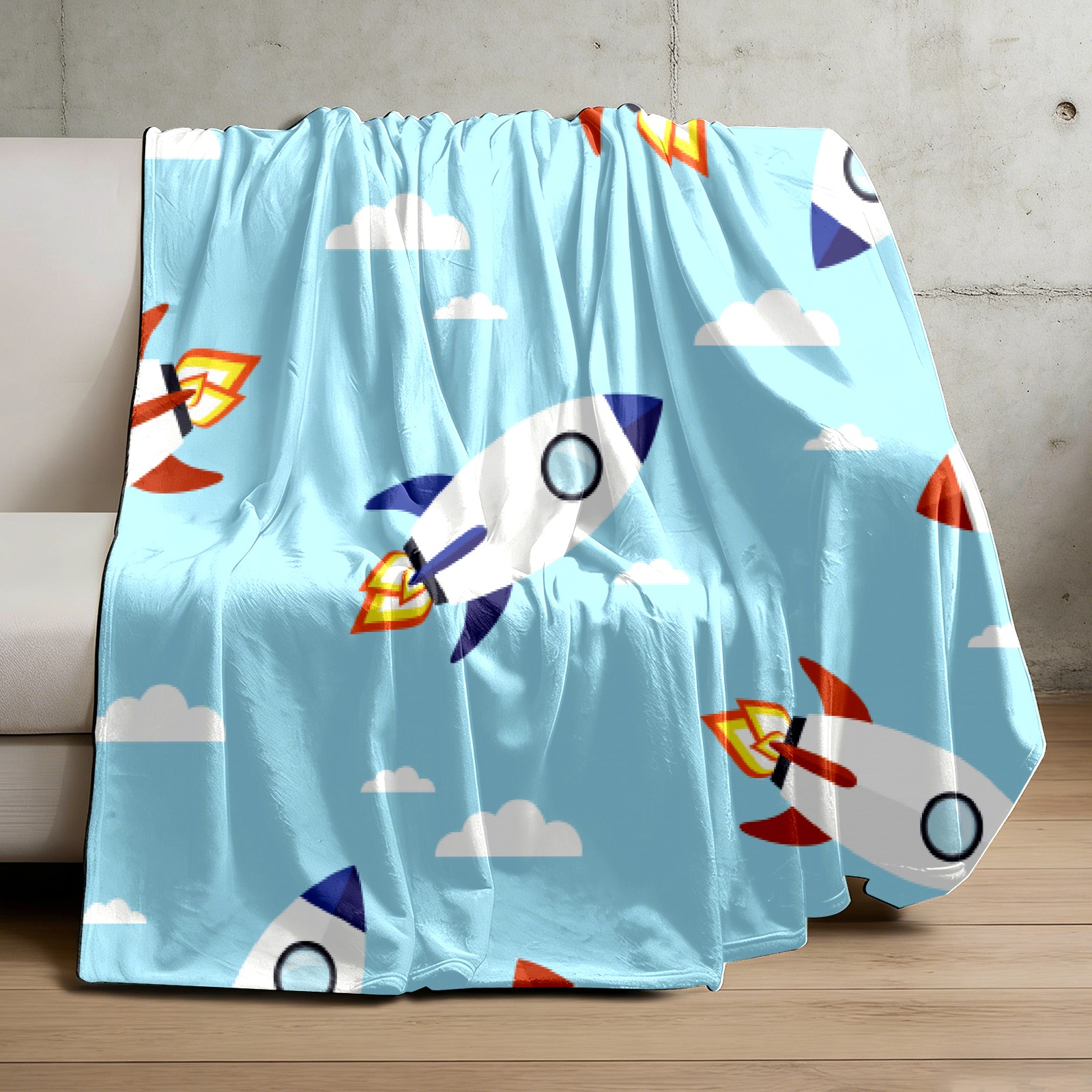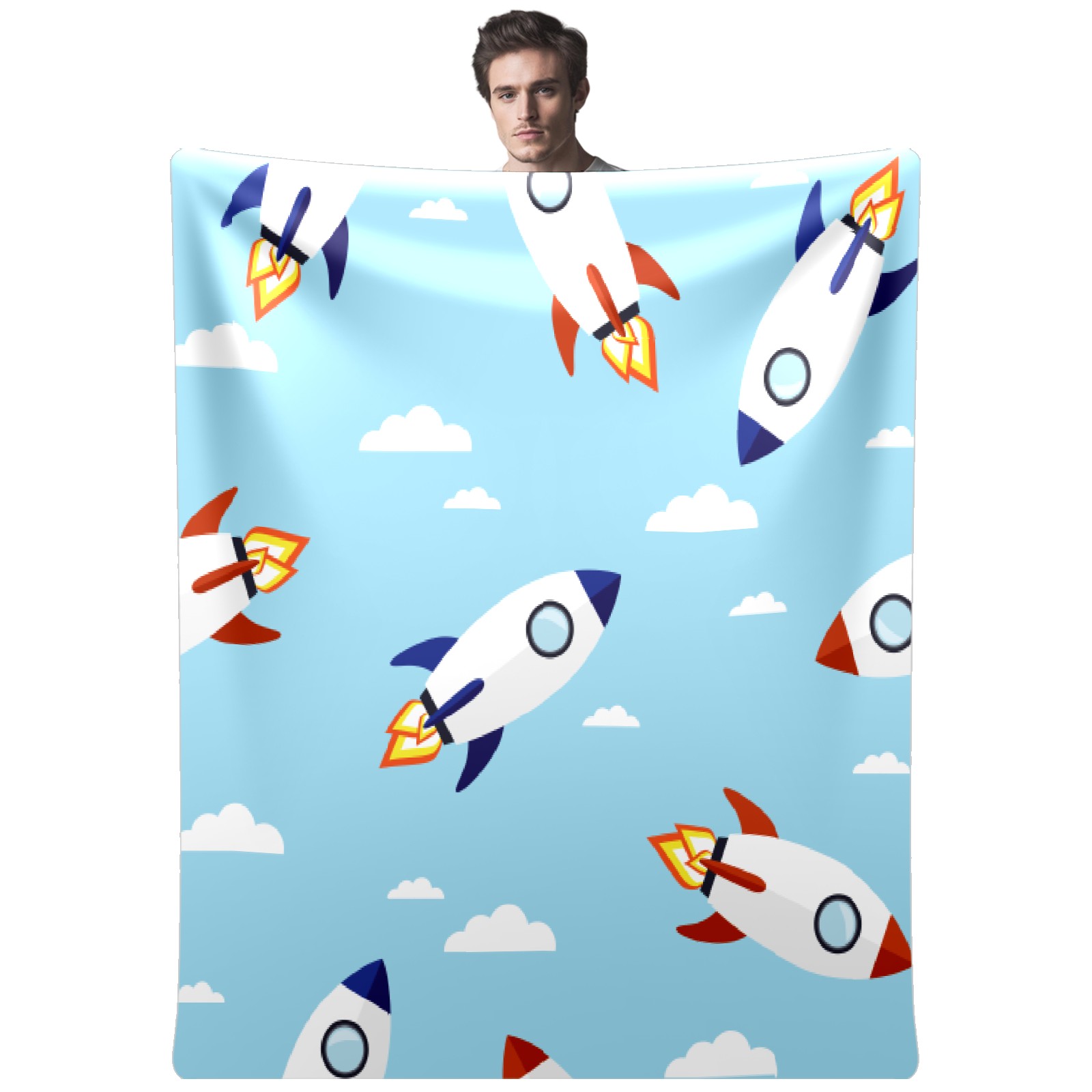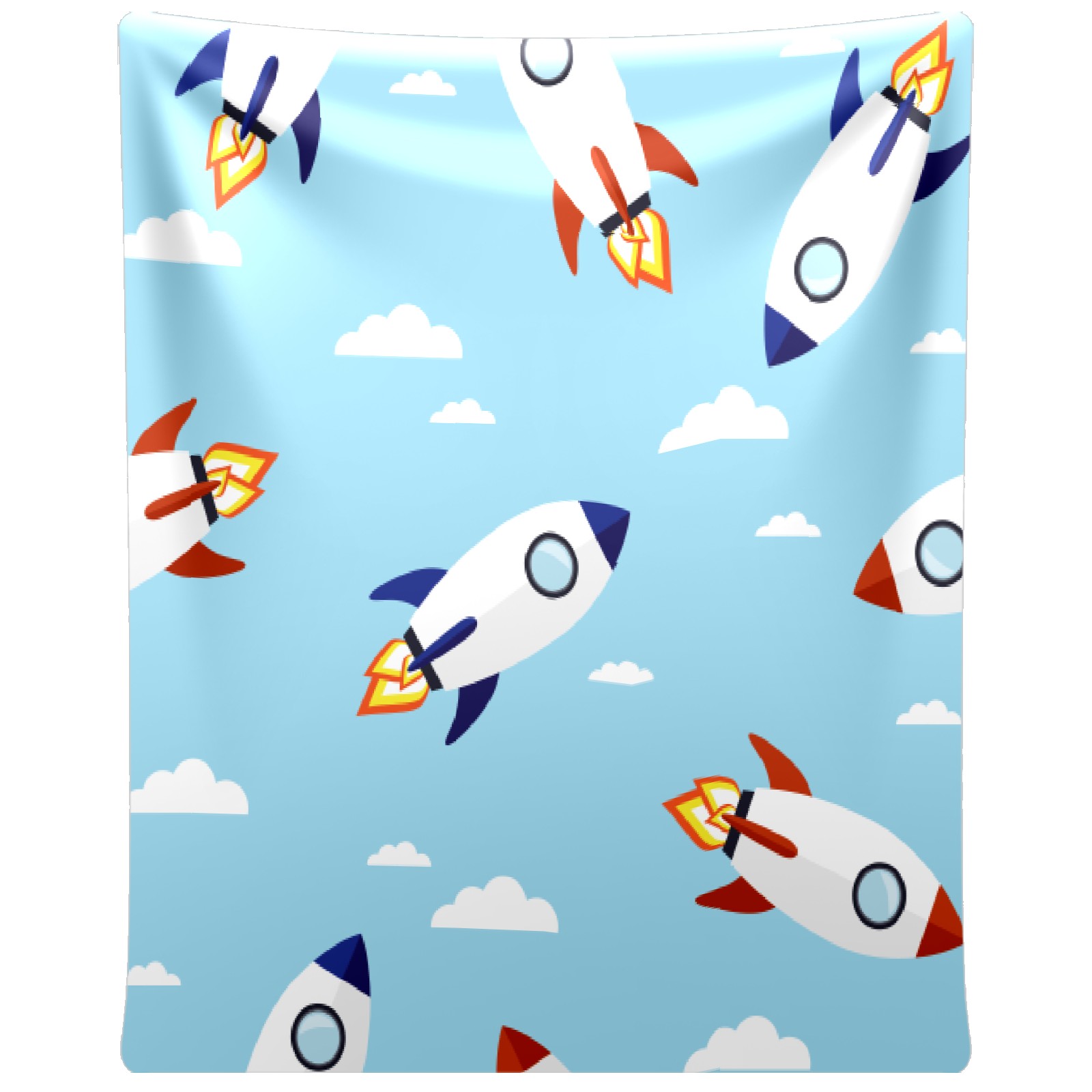 Blue Cartoon Rockets Pattern