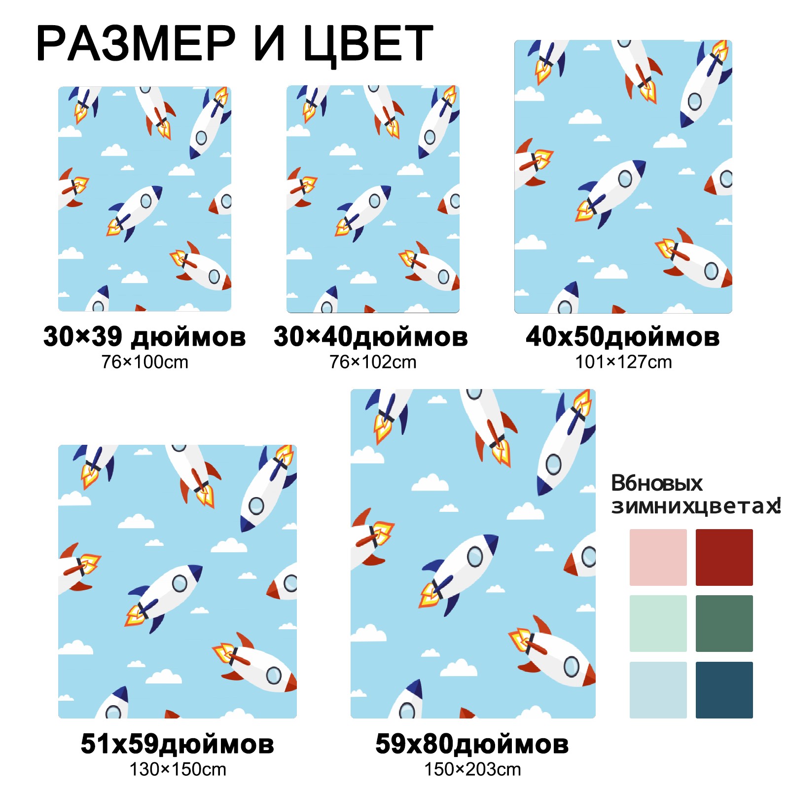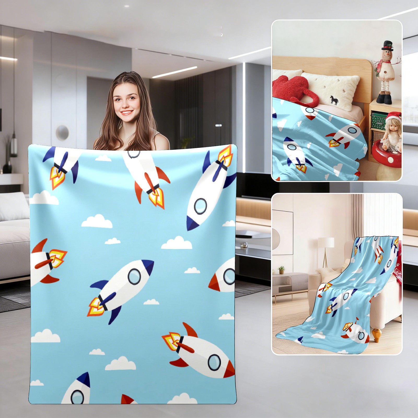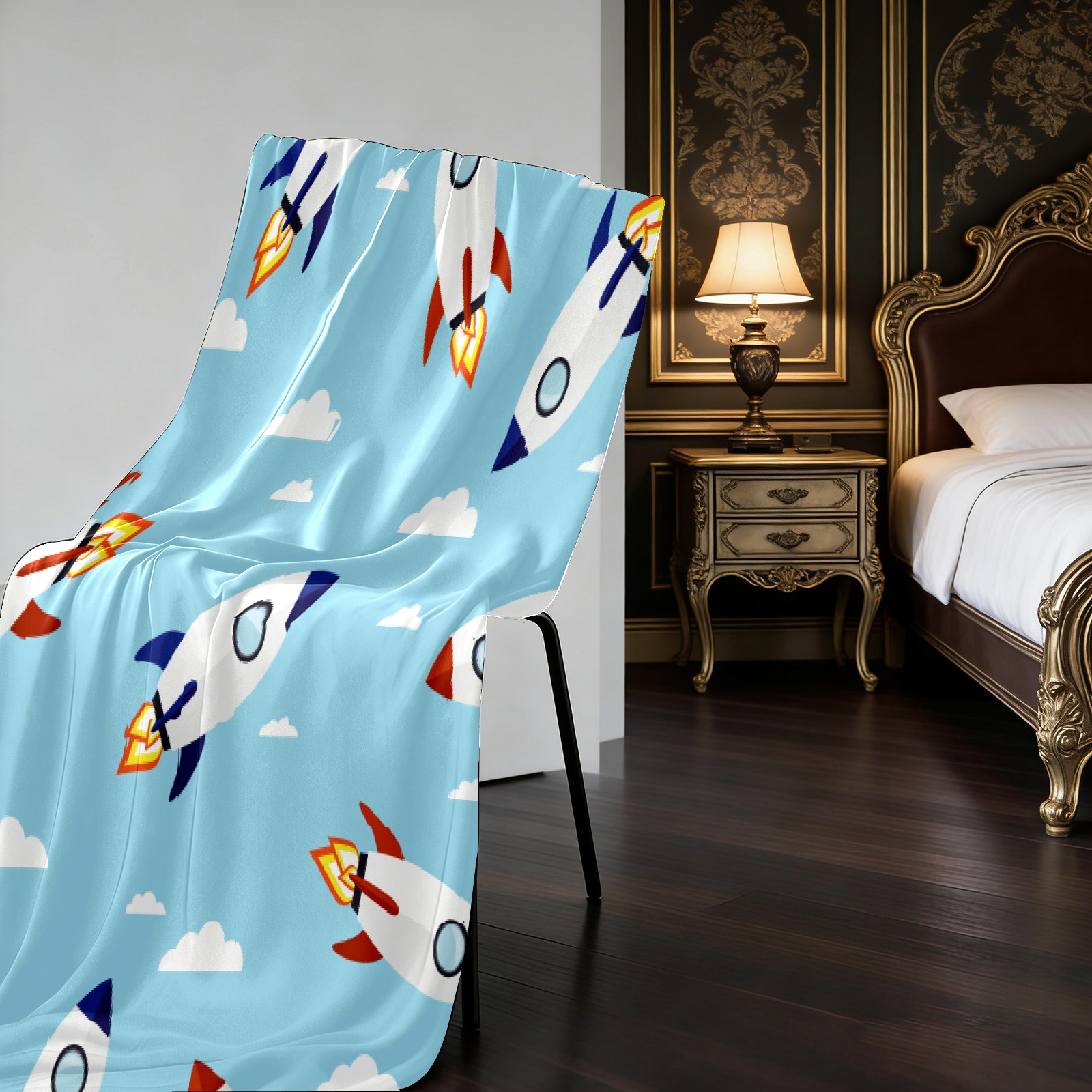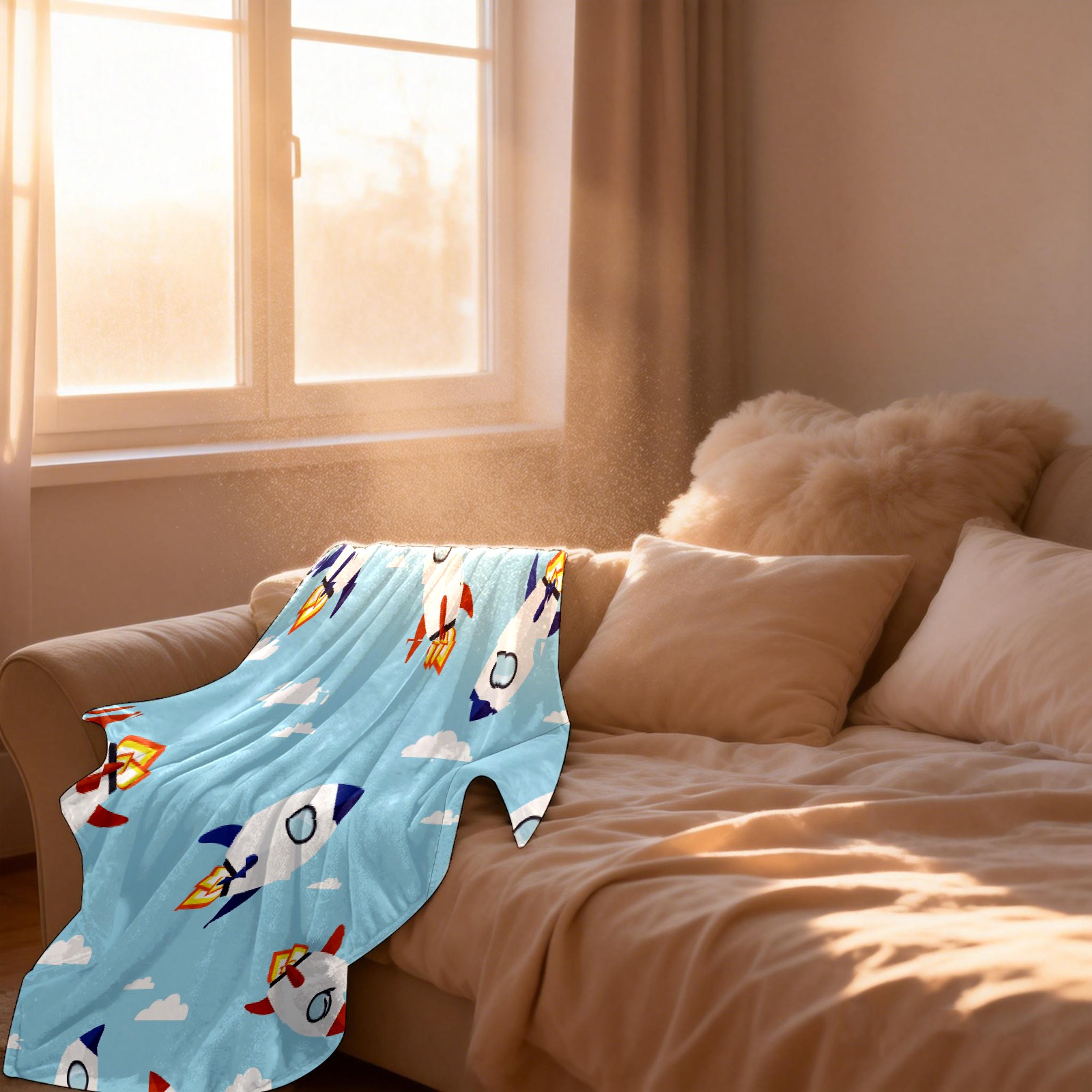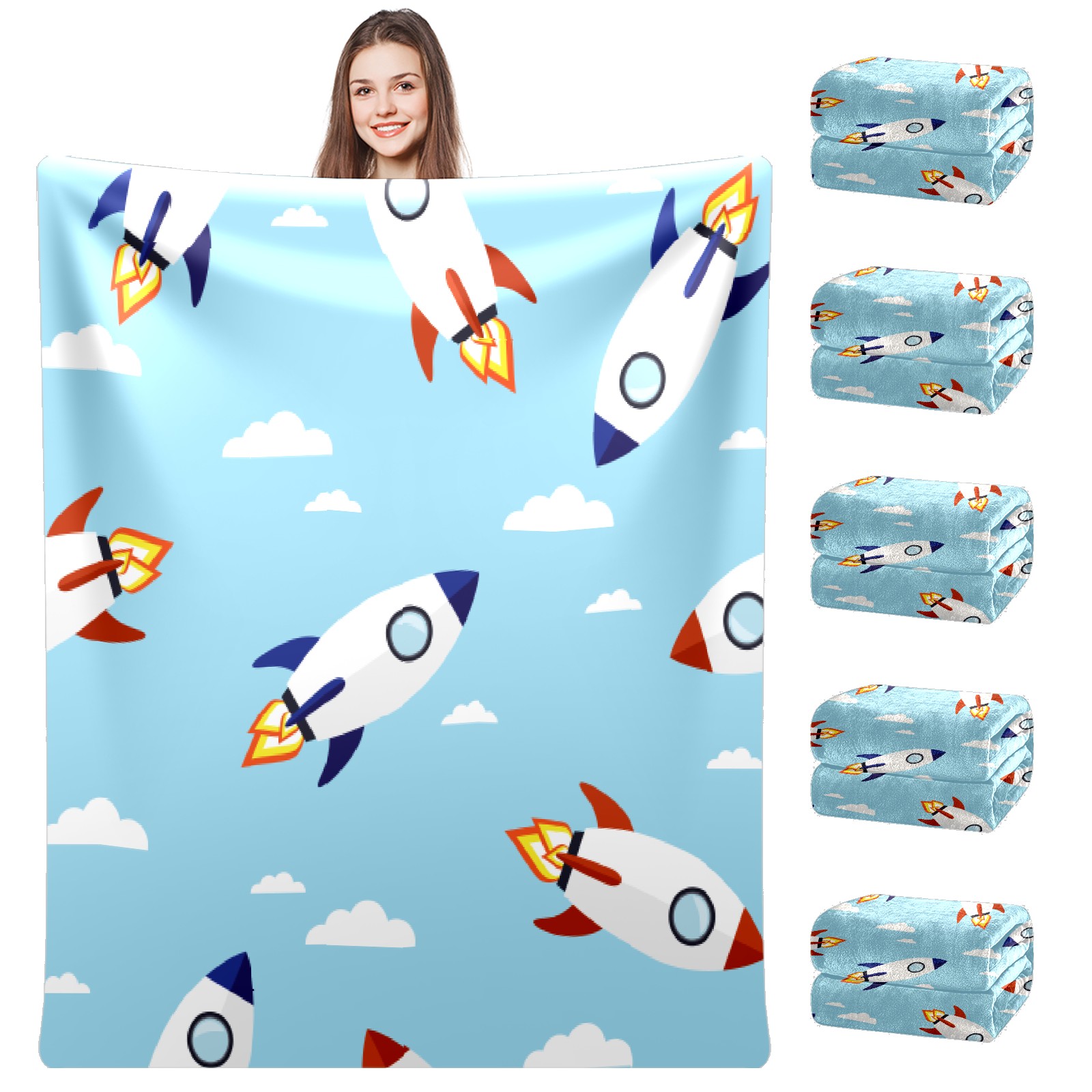 Blue Cartoon Rockets Pattern