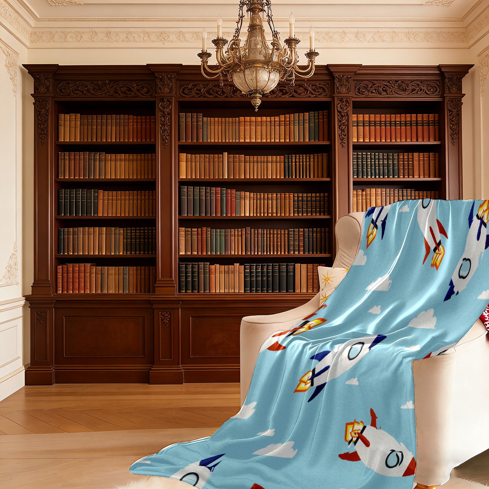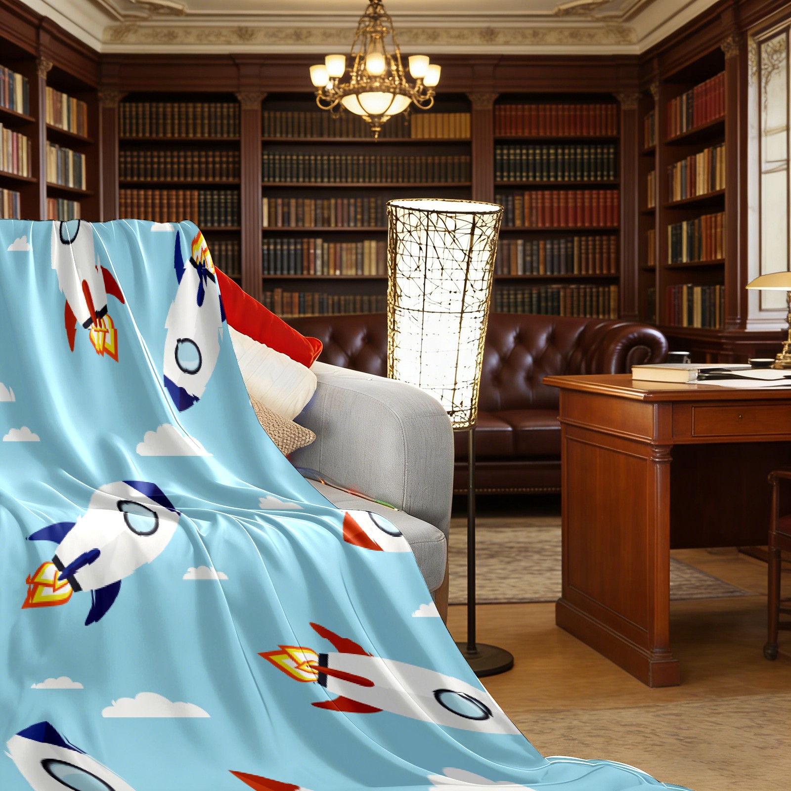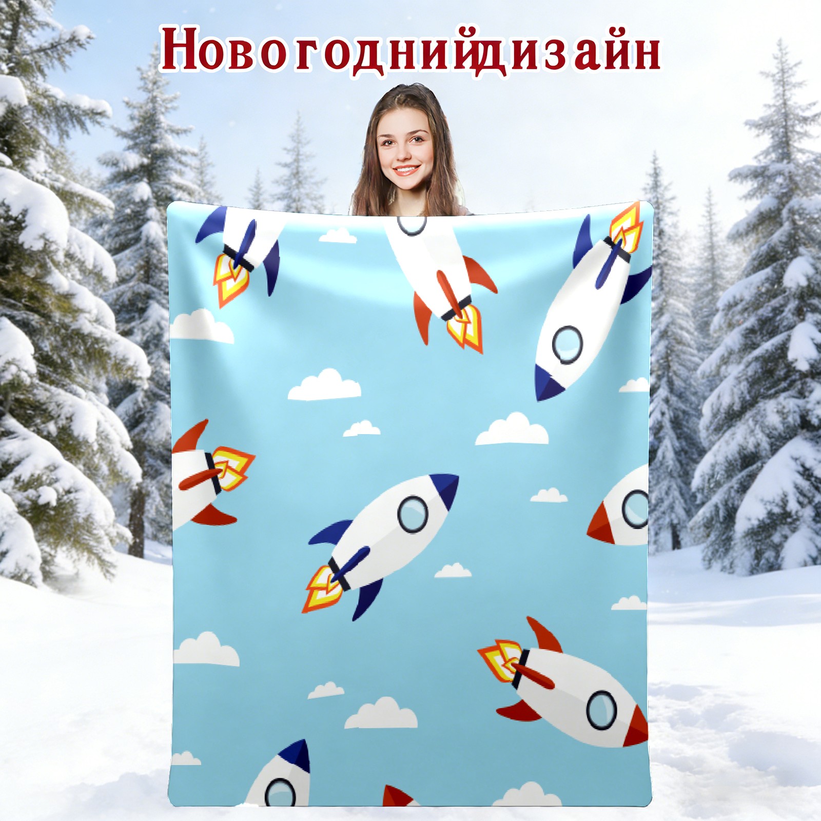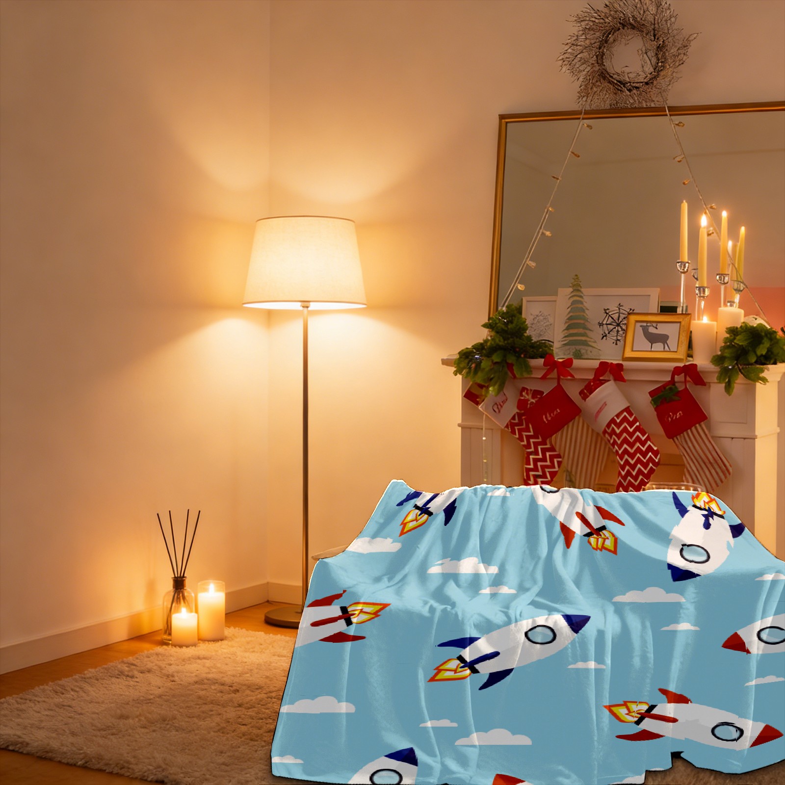 Blue Cartoon Rockets Pattern