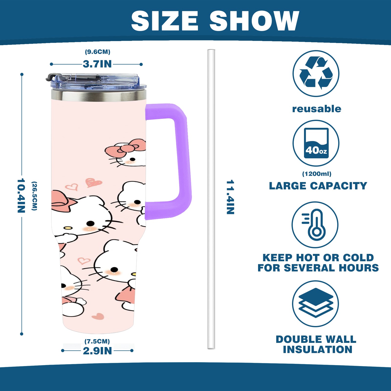• <p>This multi-functional insulated water bottle features a simple and practical design, suitable for various daily scenarios. The ergonomic handle allows for easy one-handed drinking, and the detachable handle can be adjusted or removed as needed, making it convenient for commuting, exercising, or carrying to meetings. Made of high-quality stainless steel, it is BPA-free and features double-walled vacuum insulation technology that keeps drinks cold for 8 hours and hot for 6 hours, ensuring you can enjoy your beverage at the perfect temperature anytime, anywhere. The 40-ounce Christmas edition comes with a sliding lid, silicone straw, and a non-slip design. Accessories are dishwasher safe, and the narrow bottom and wide mouth design perfectly fits car cup holders. The exclusive flip-top straw lid is environmentally friendly and durable, with a one-touch leak-proof closure and two drinking modes: sip and gulp. A dust cover provides effective protection. This bottle is suitable for travel, office work, sports, camping, and other occasions, making it a thoughtful gift for friends and family.</p>