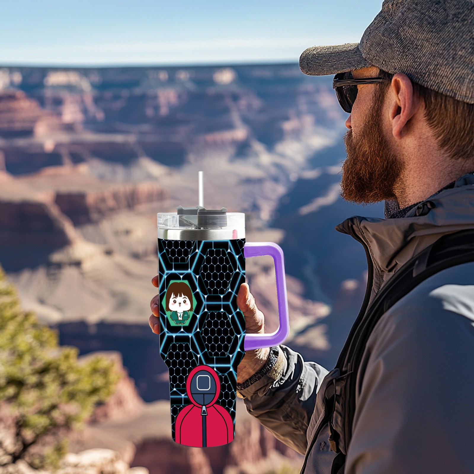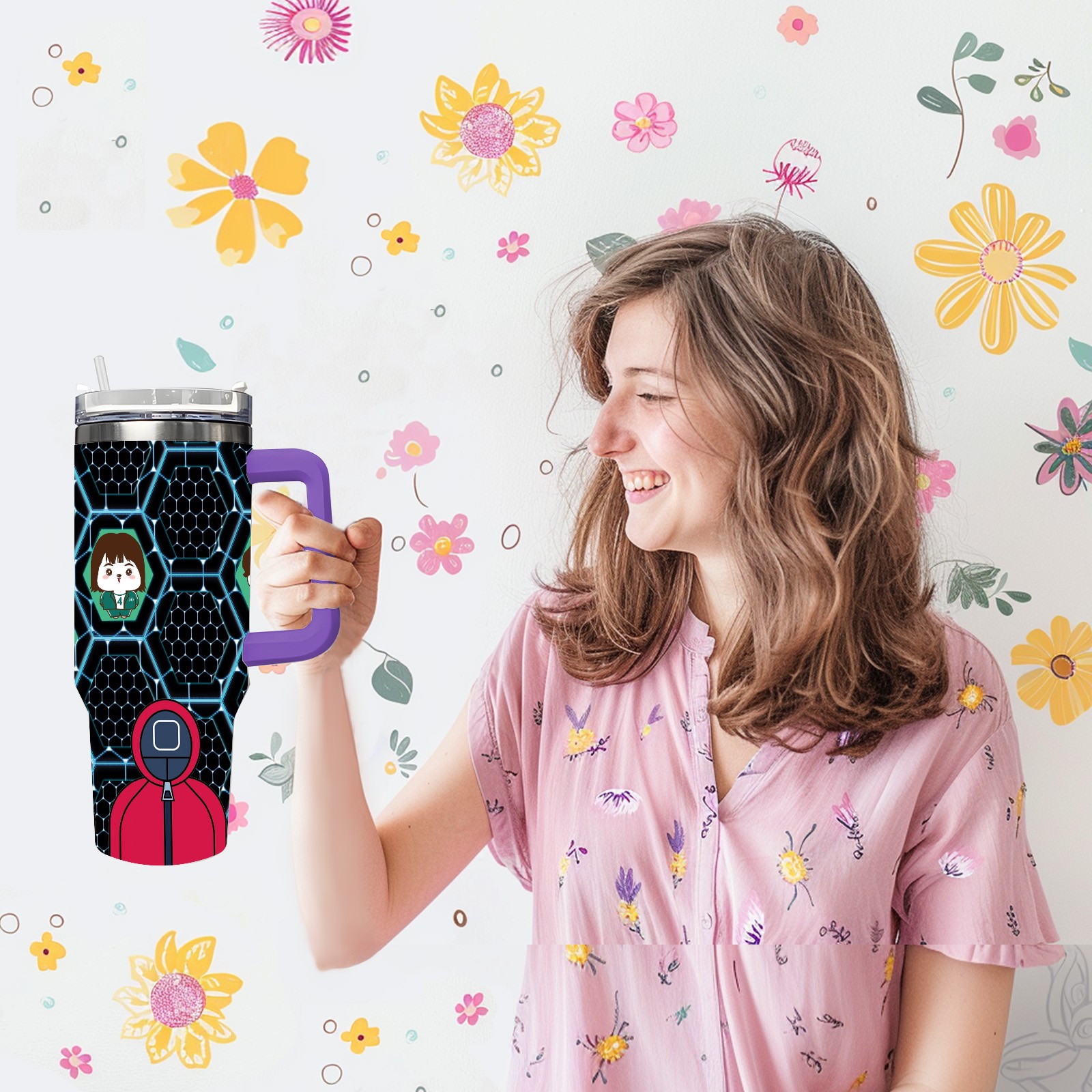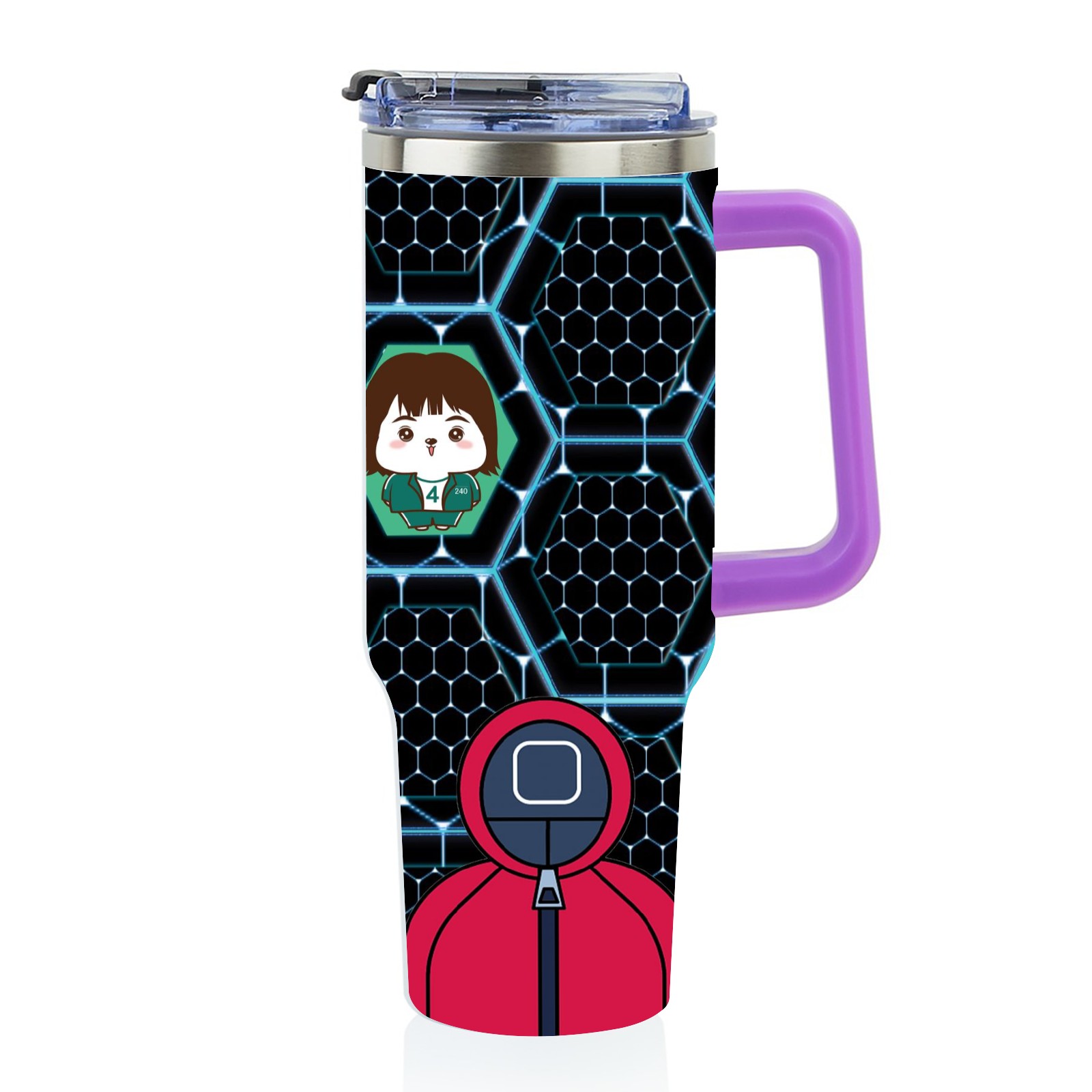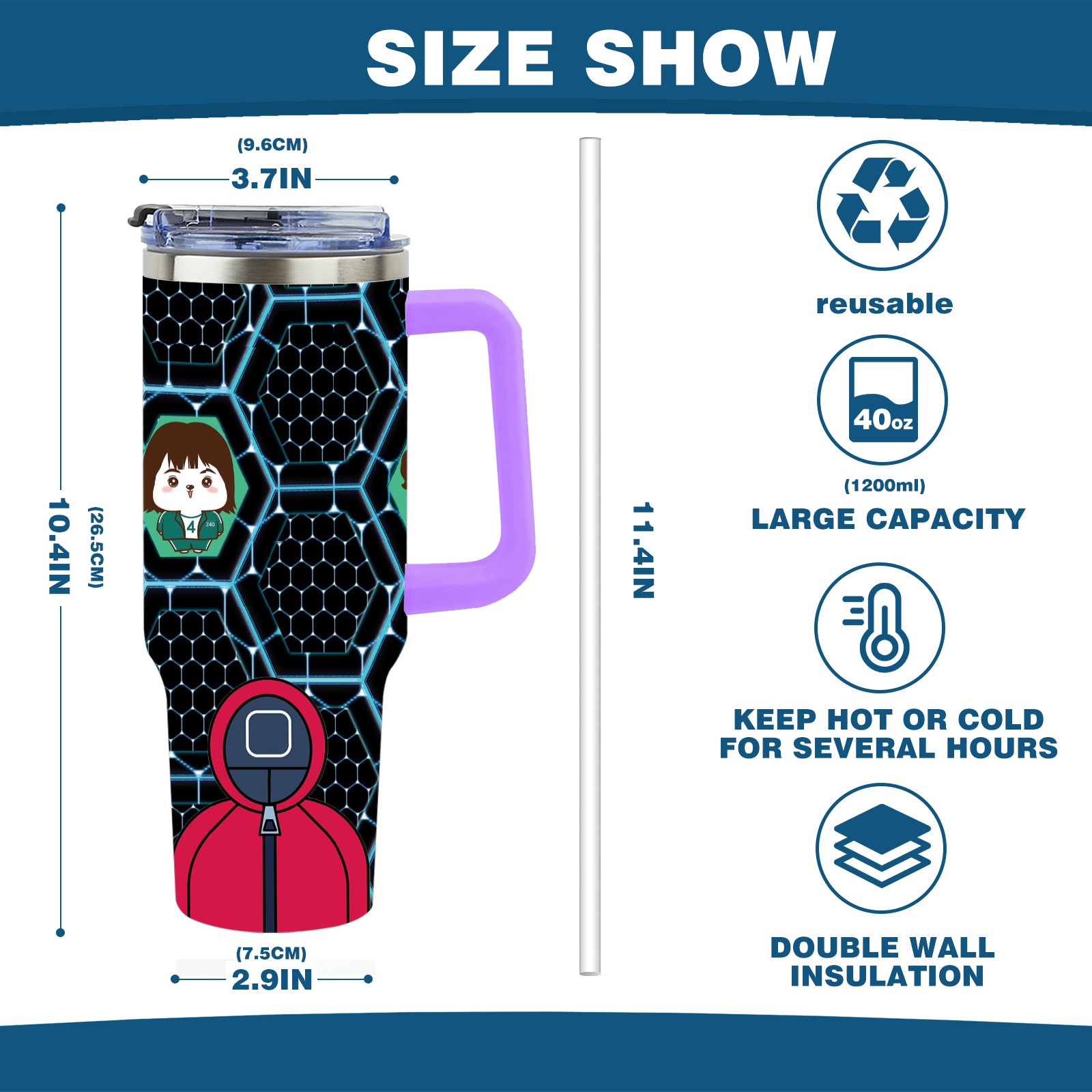 40oz 鱿鱼游戏6 thermos with lid and straw, leak-proof stainless steel, with handle, spill-proof bottle, convenient for travel(purple)