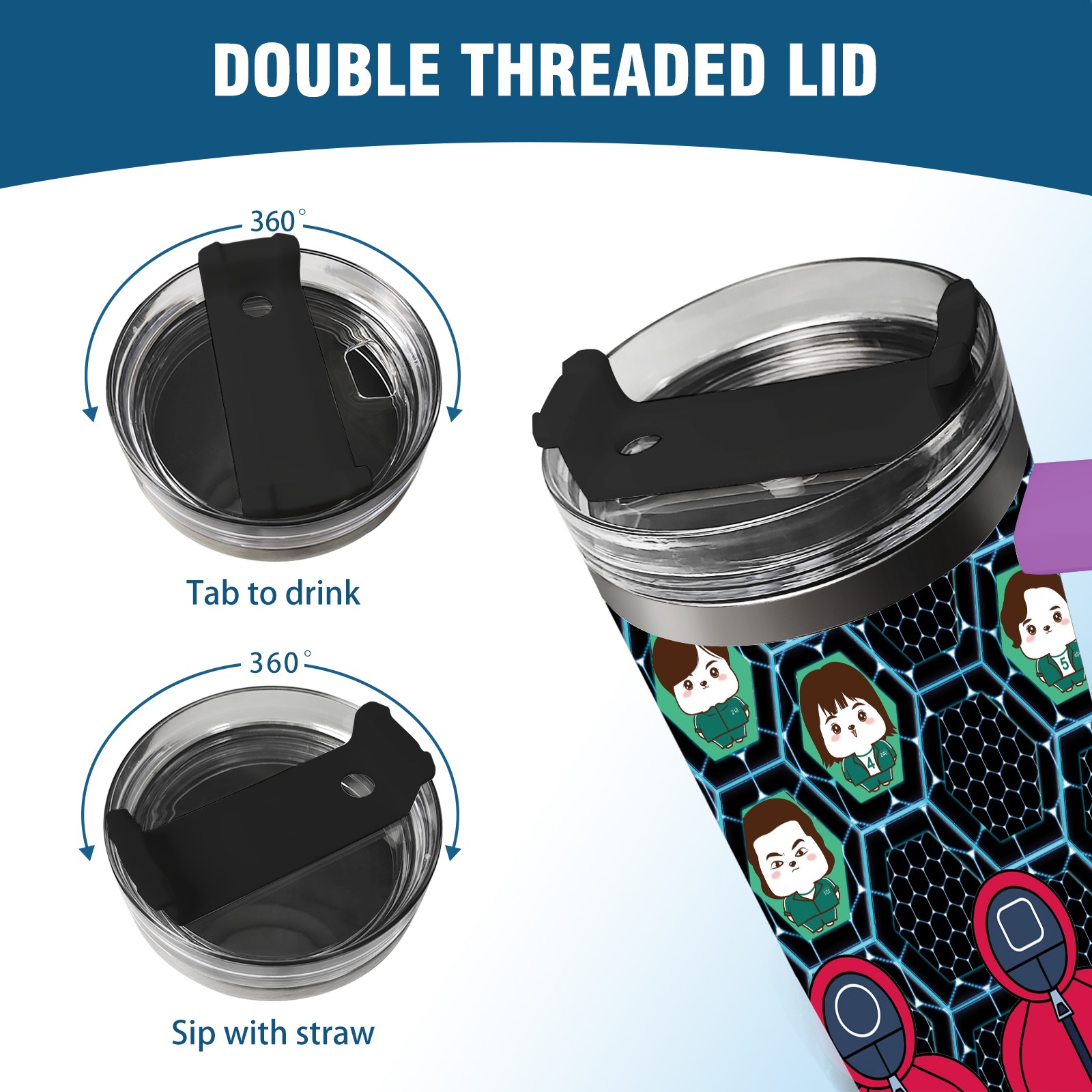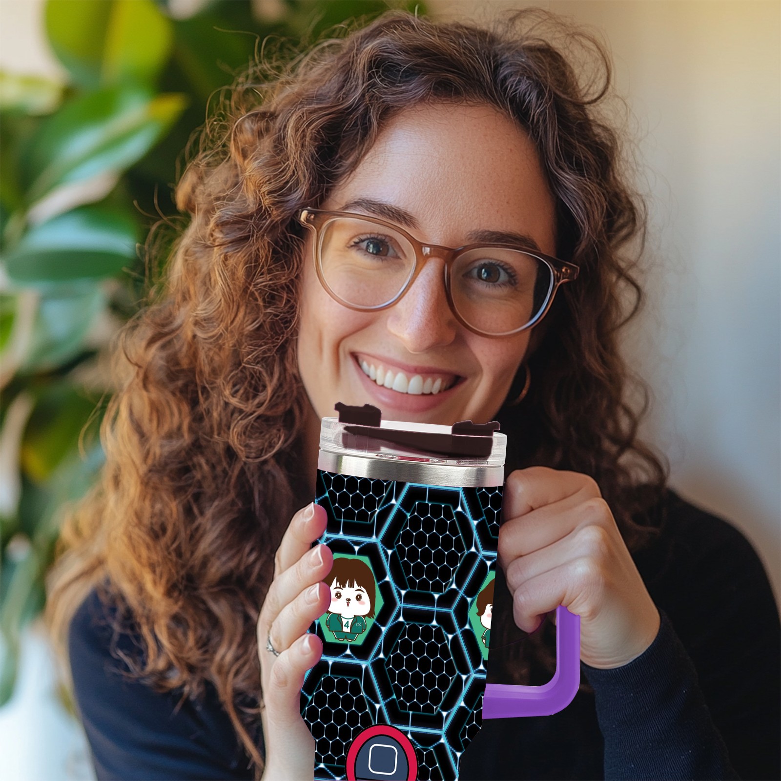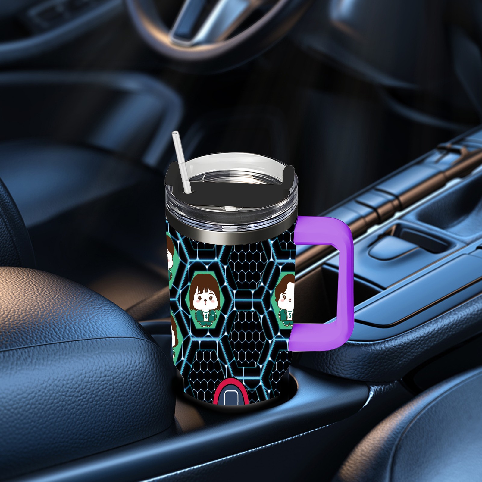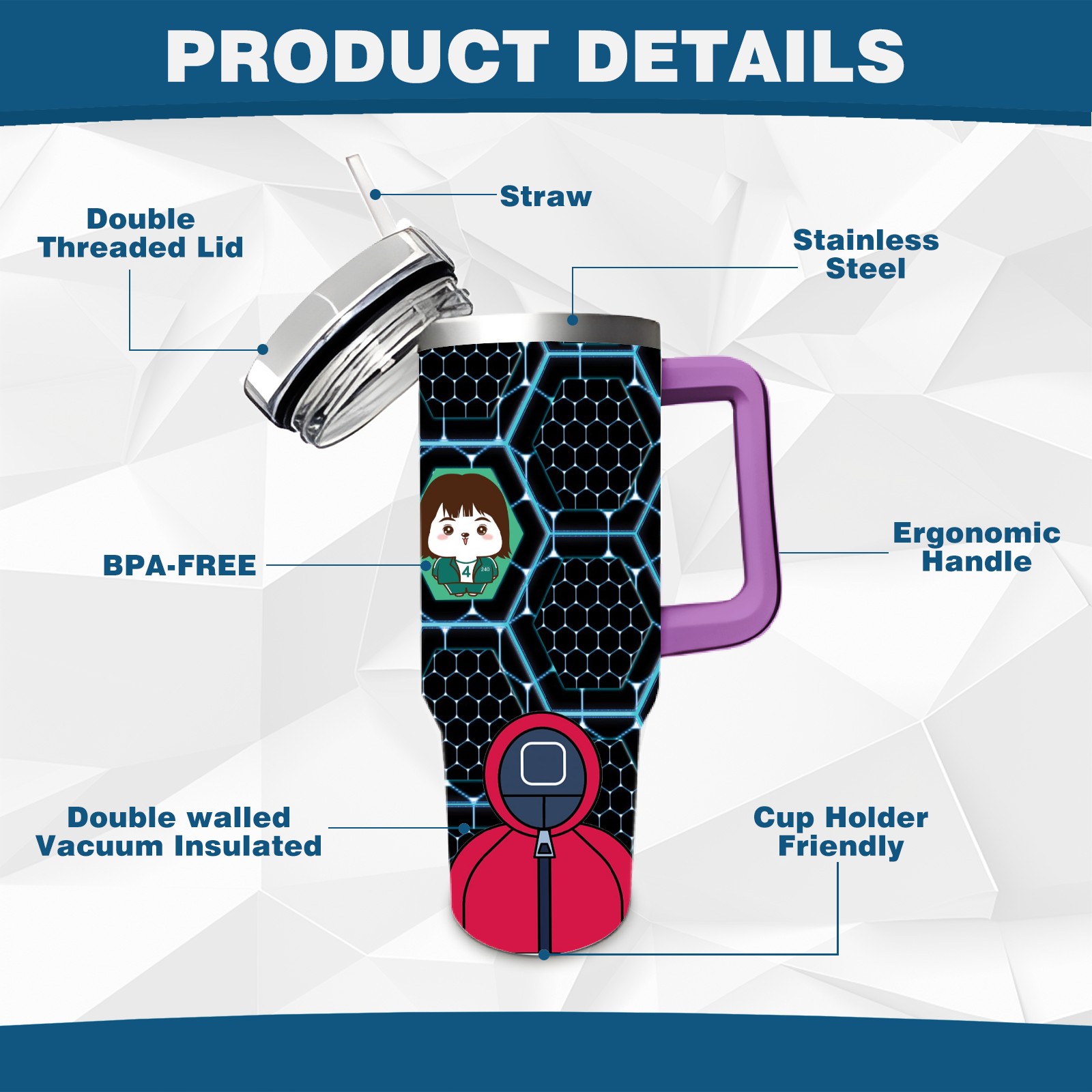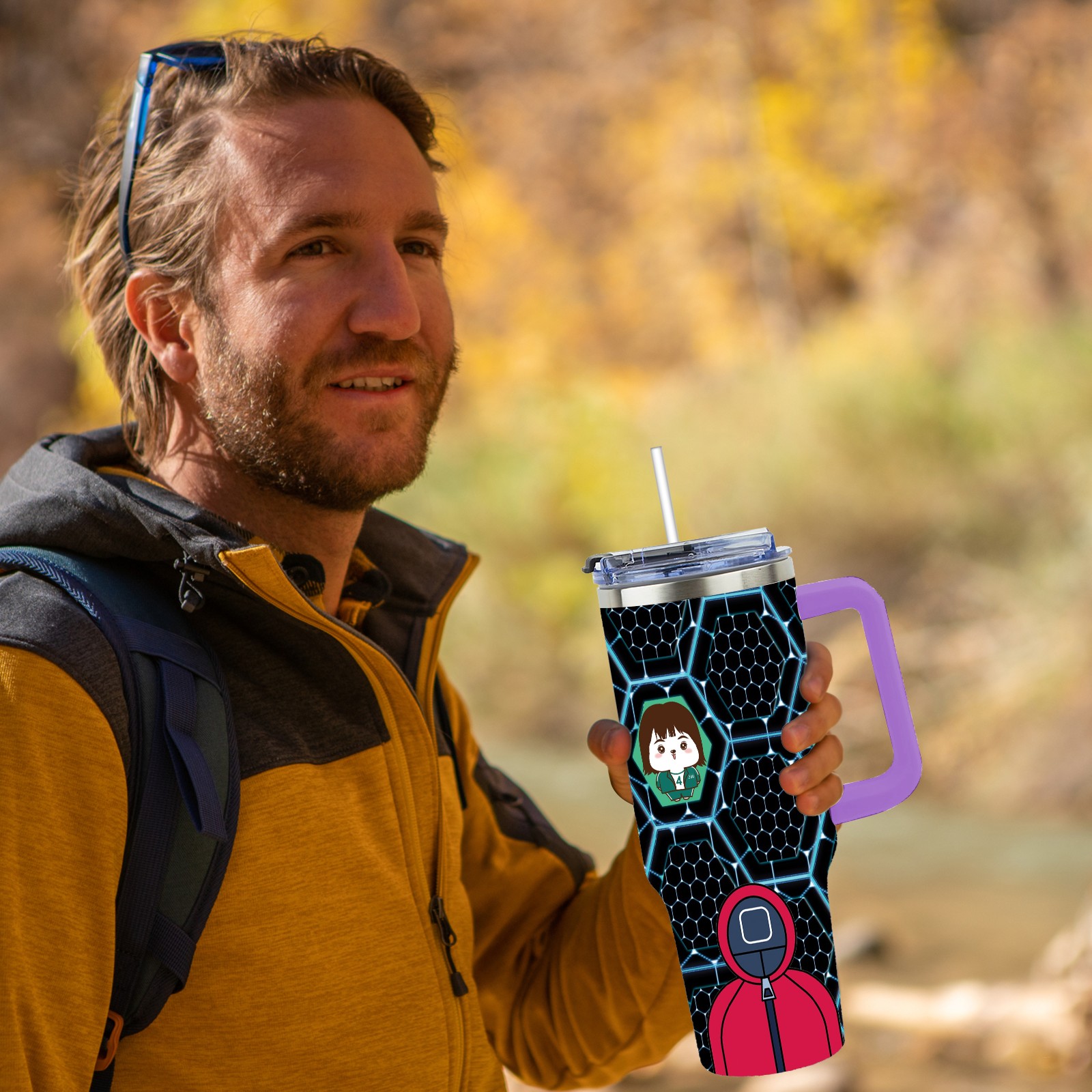 40oz 鱿鱼游戏6 thermos with lid and straw, leak-proof stainless steel, with handle, spill-proof bottle, convenient for travel(purple)