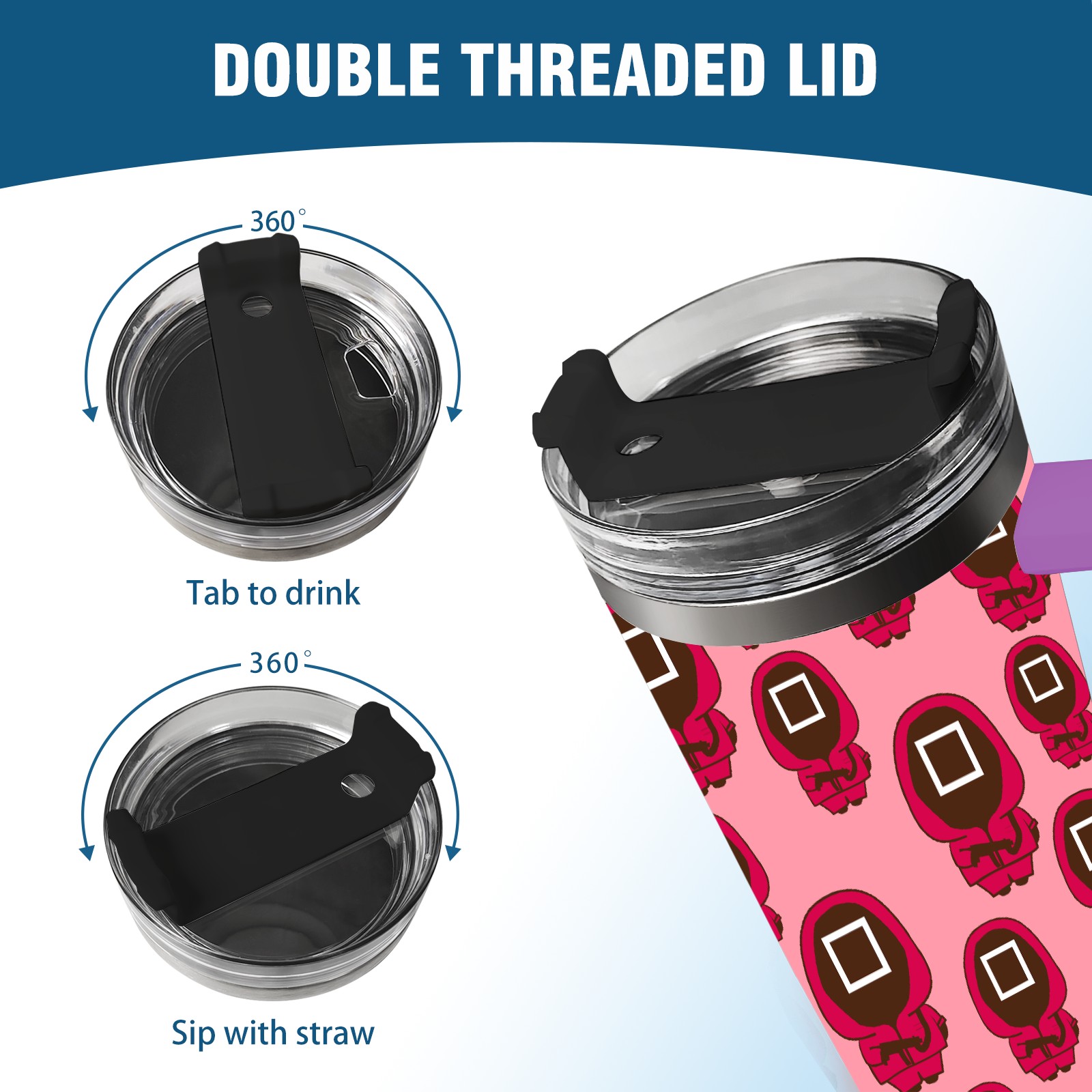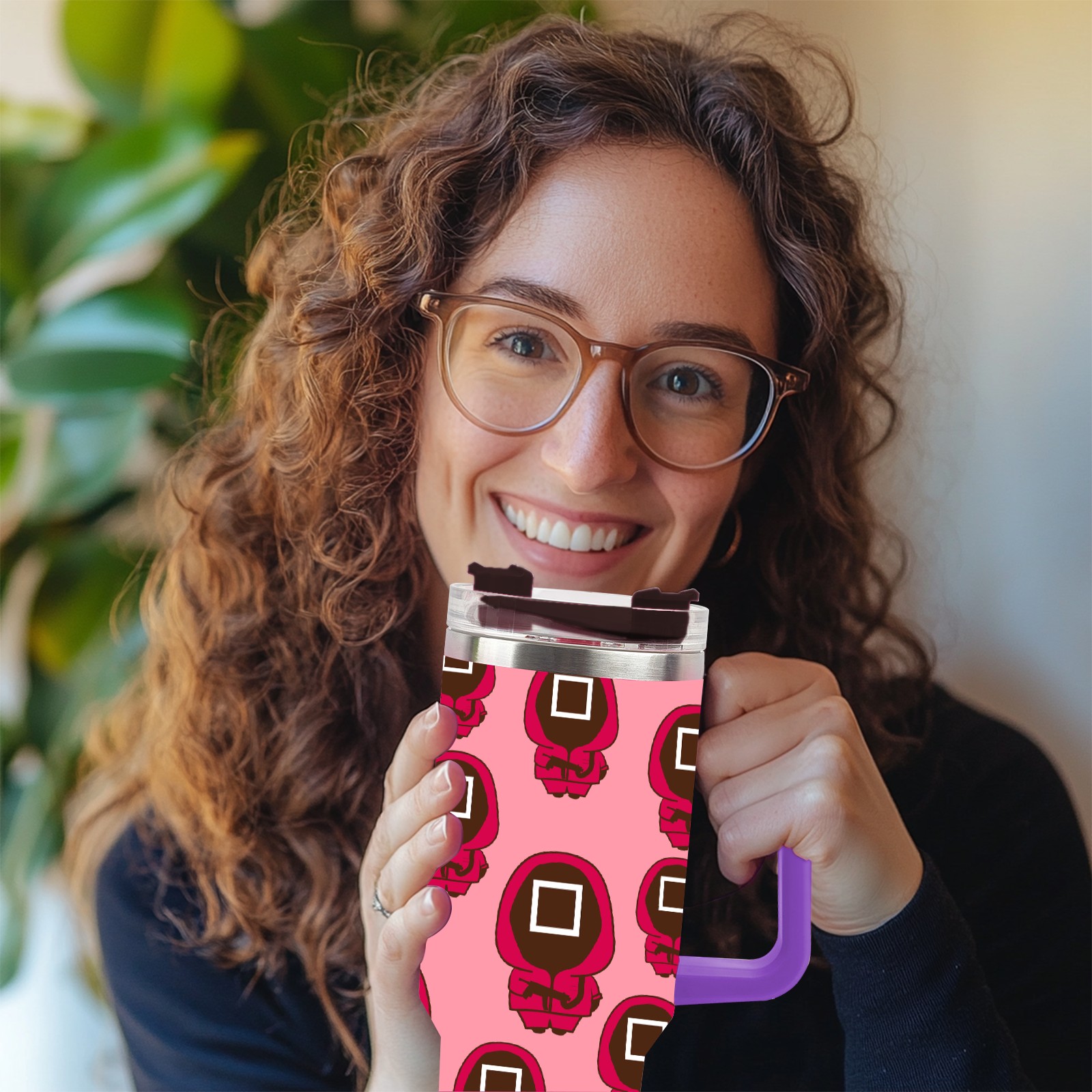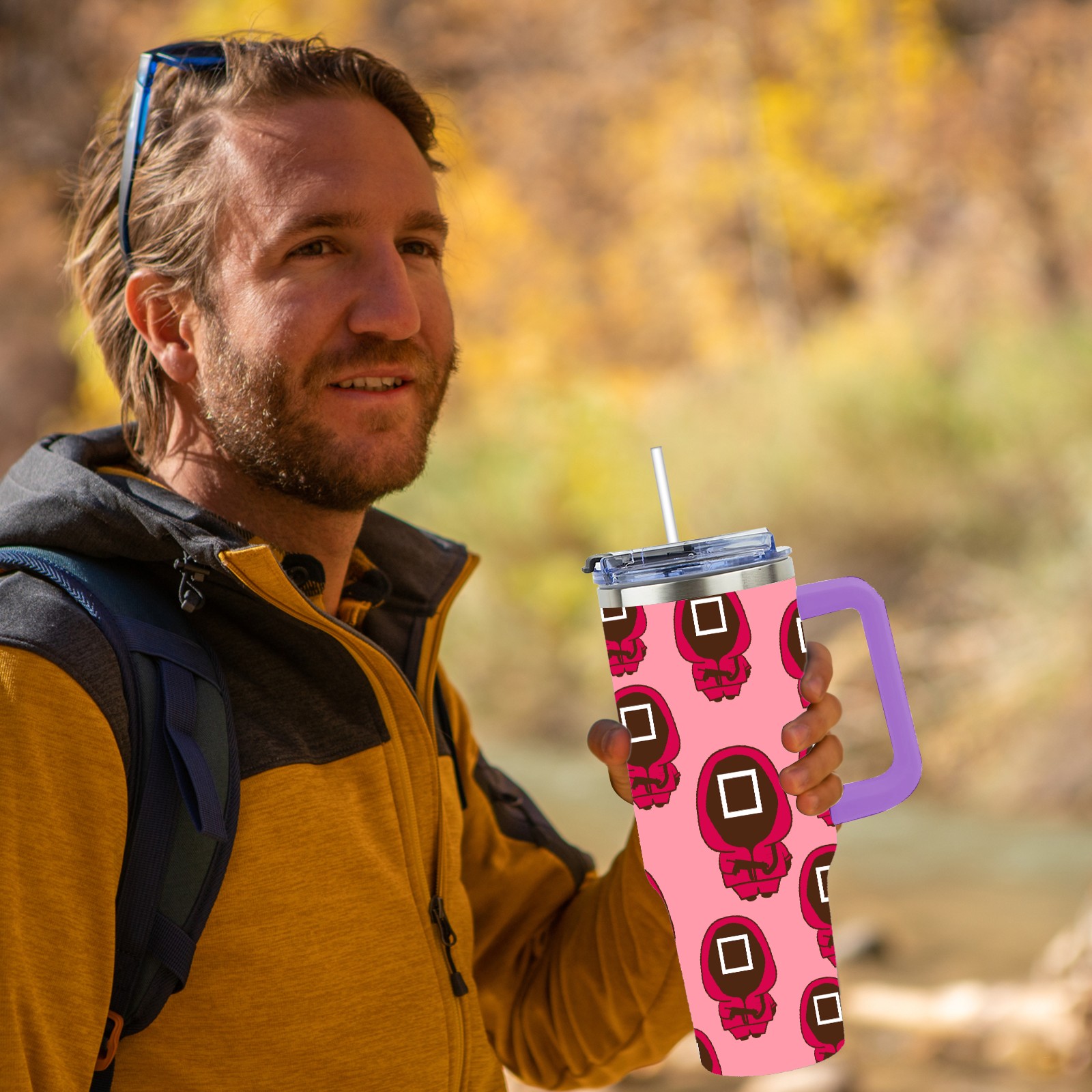 40oz 鱿鱼游戏2 thermos with lid and straw, leak-proof stainless steel, with handle, spill-proof bottle, convenient for travel(purple)