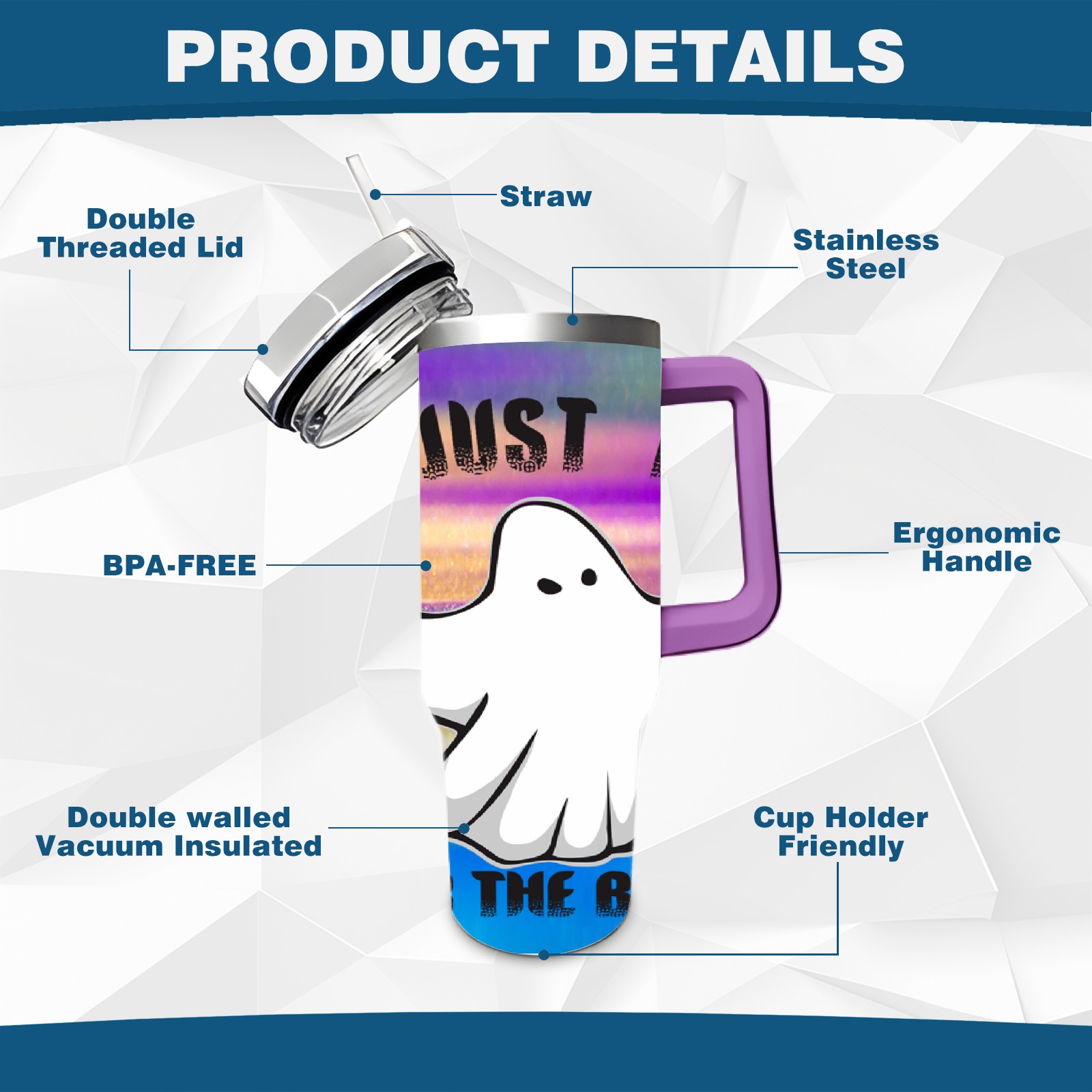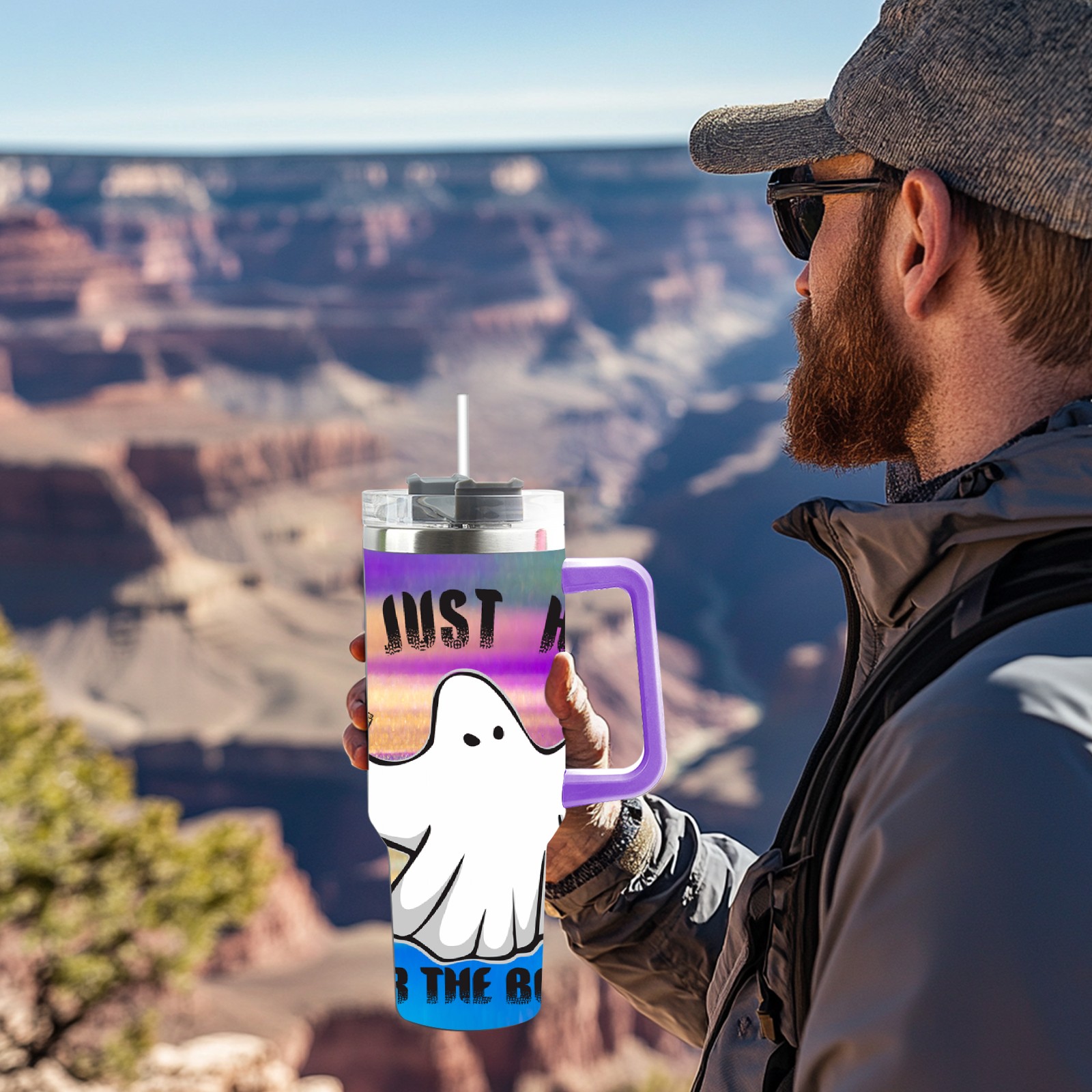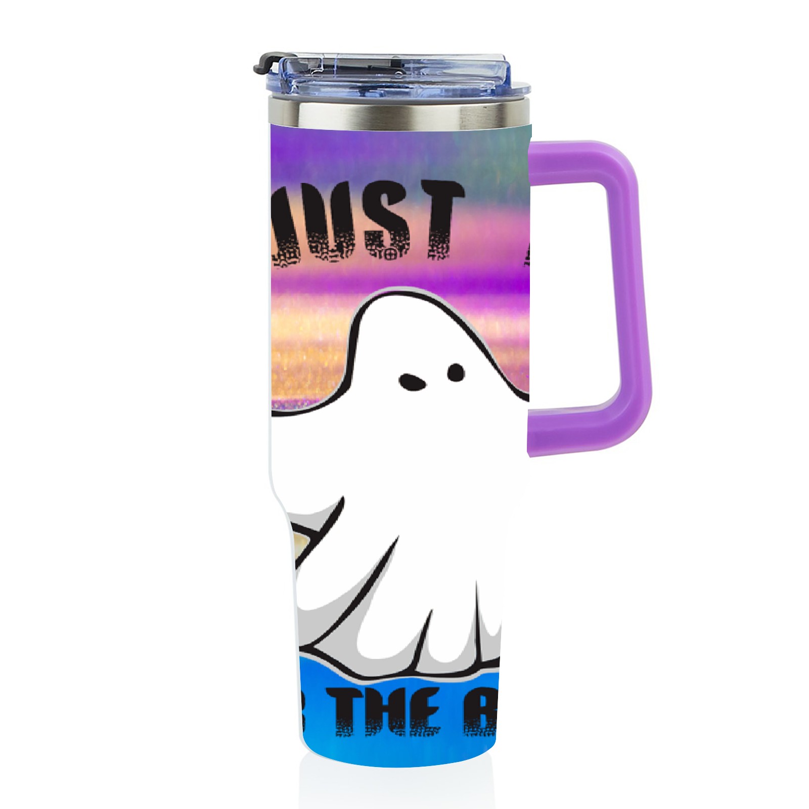 40oz 幽灵1 thermos with lid and straw, leak-proof stainless steel, with handle, spill-proof bottle, convenient for travel(purple)