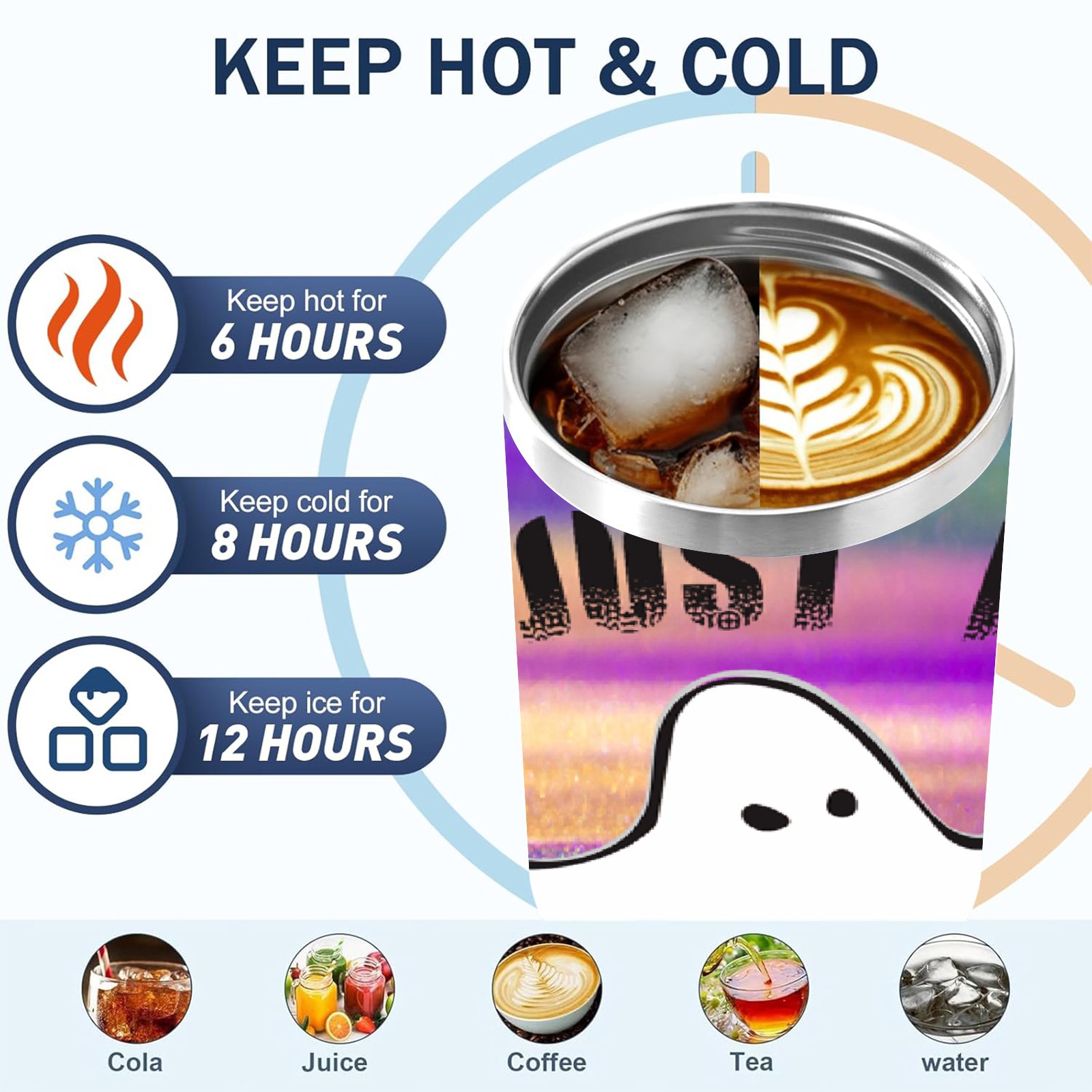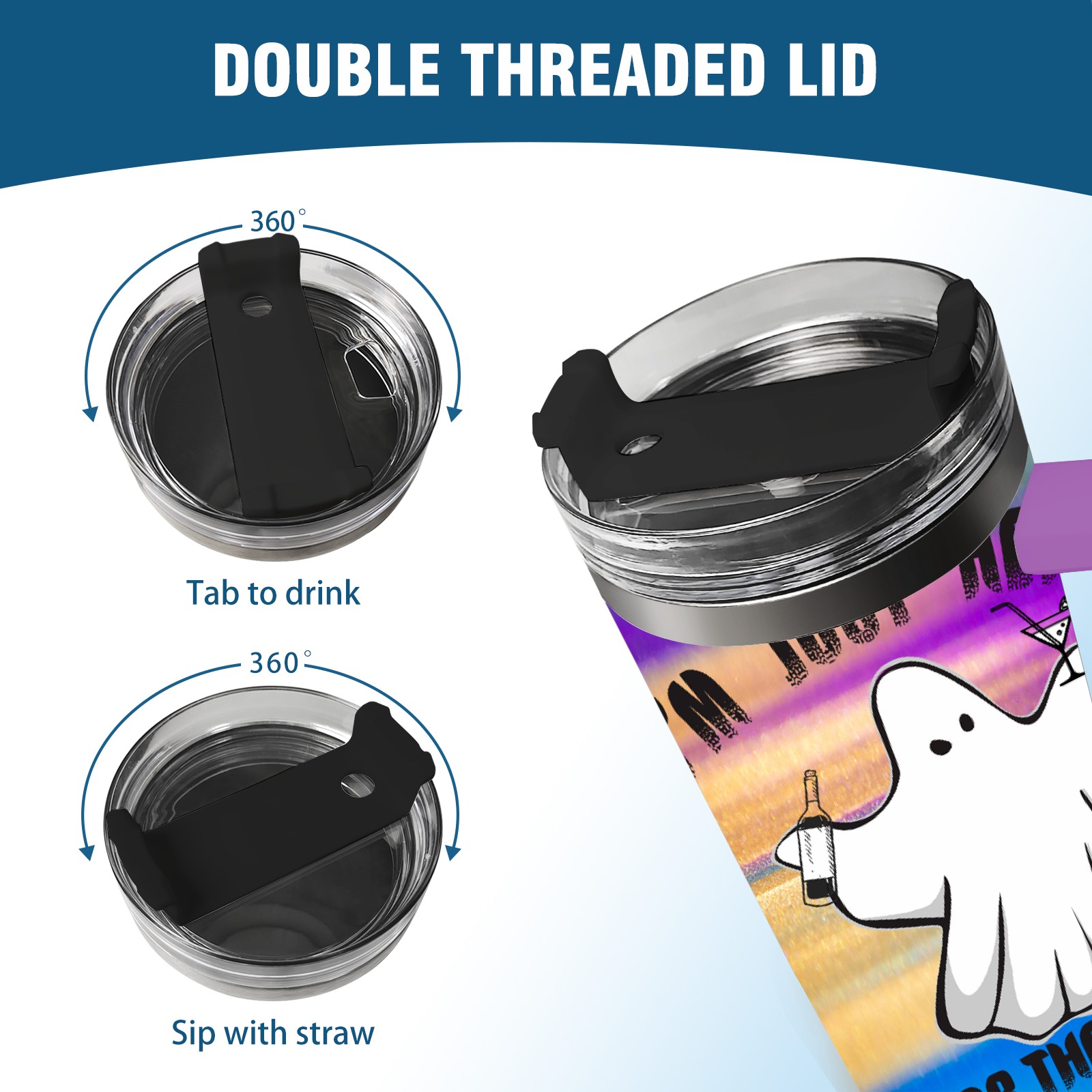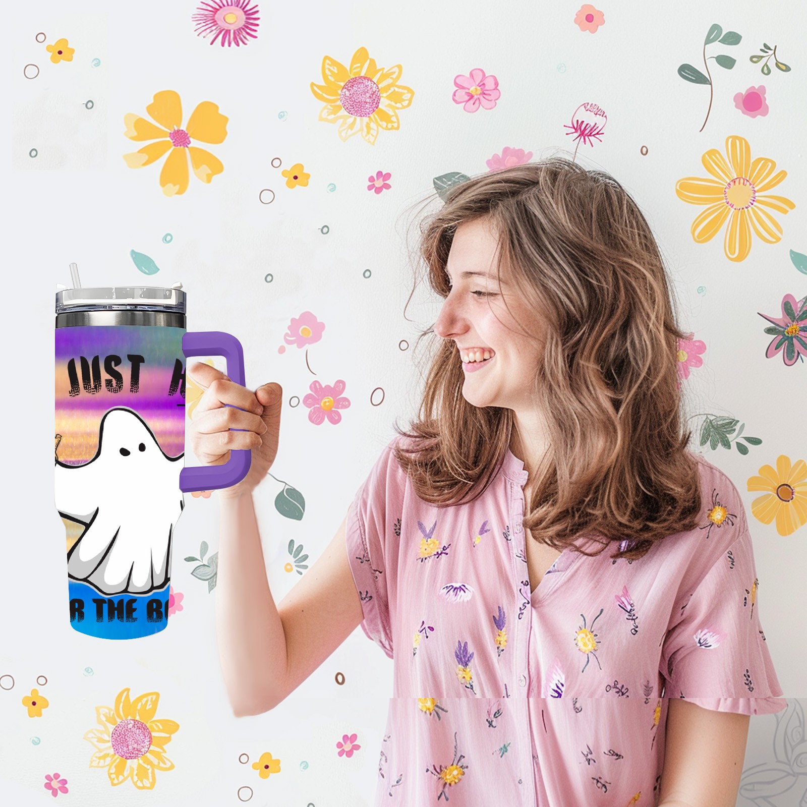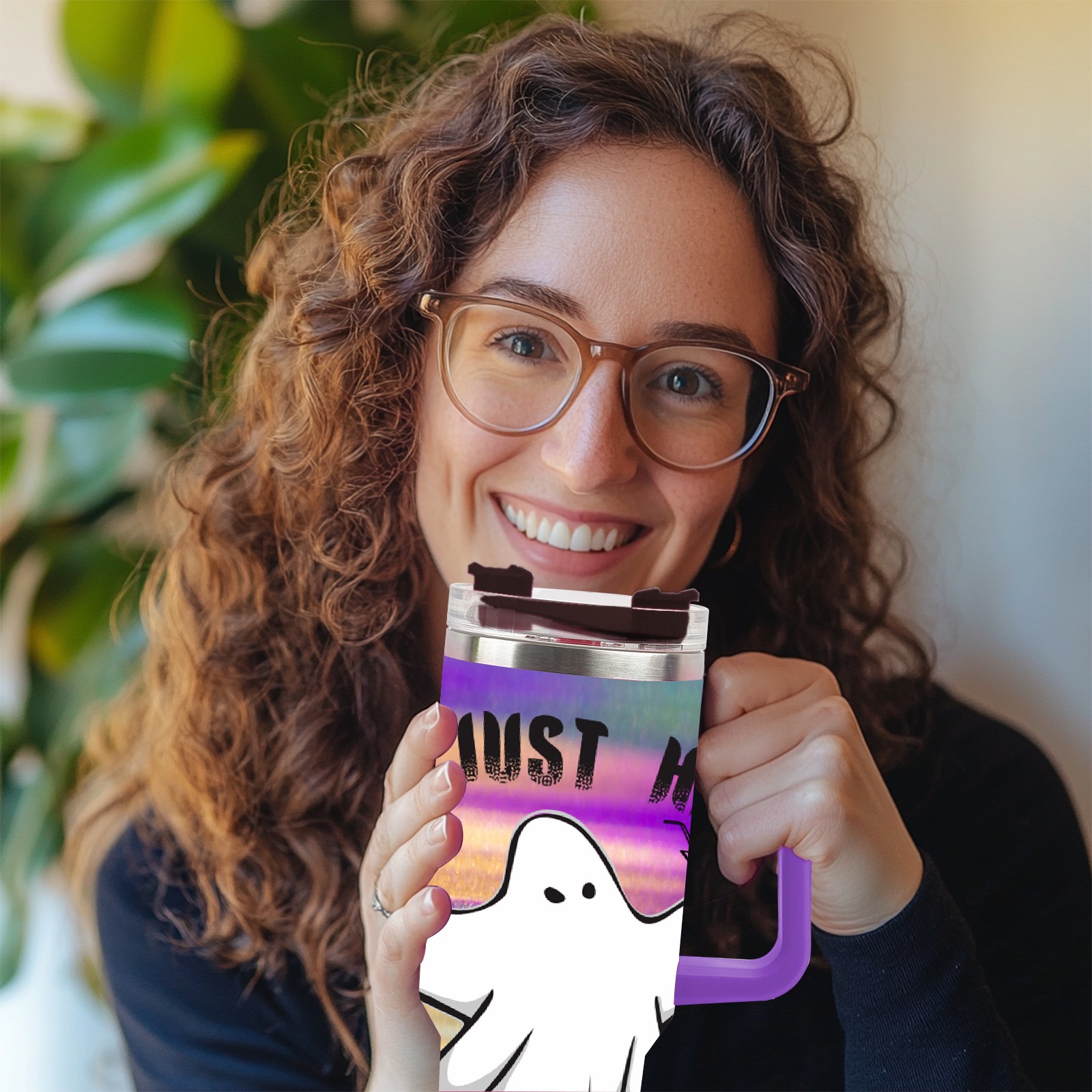 40oz 幽灵1 thermos with lid and straw, leak-proof stainless steel, with handle, spill-proof bottle, convenient for travel(purple)