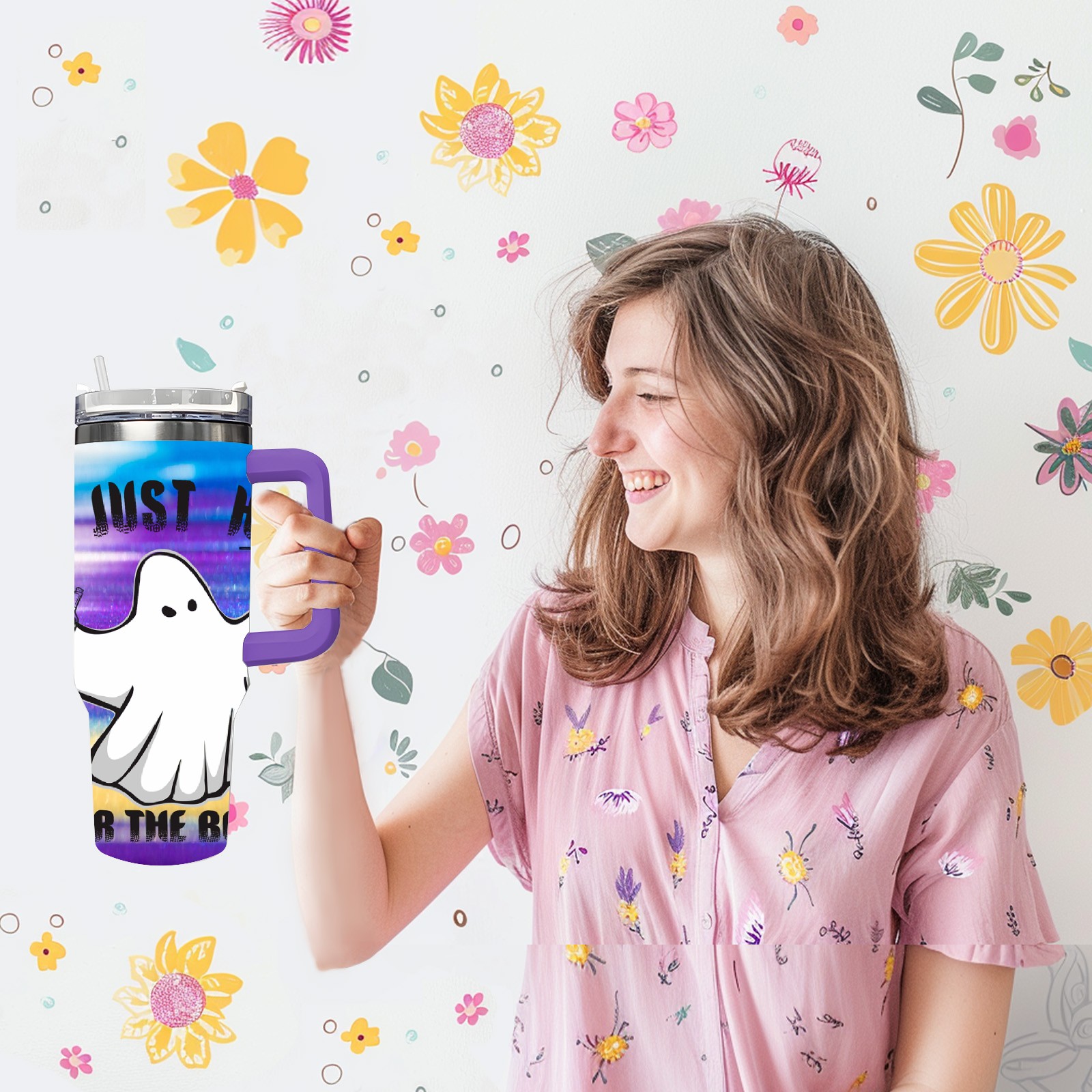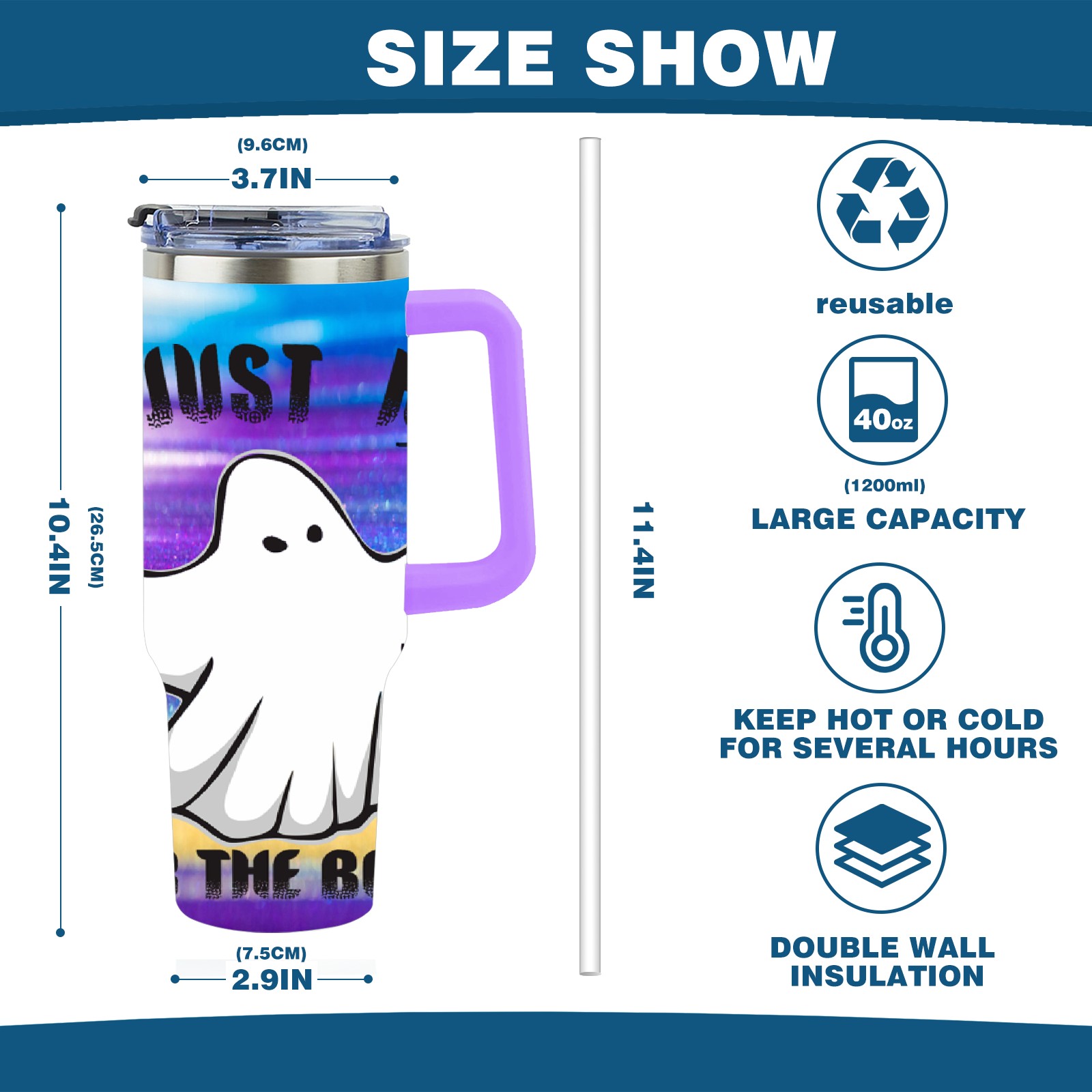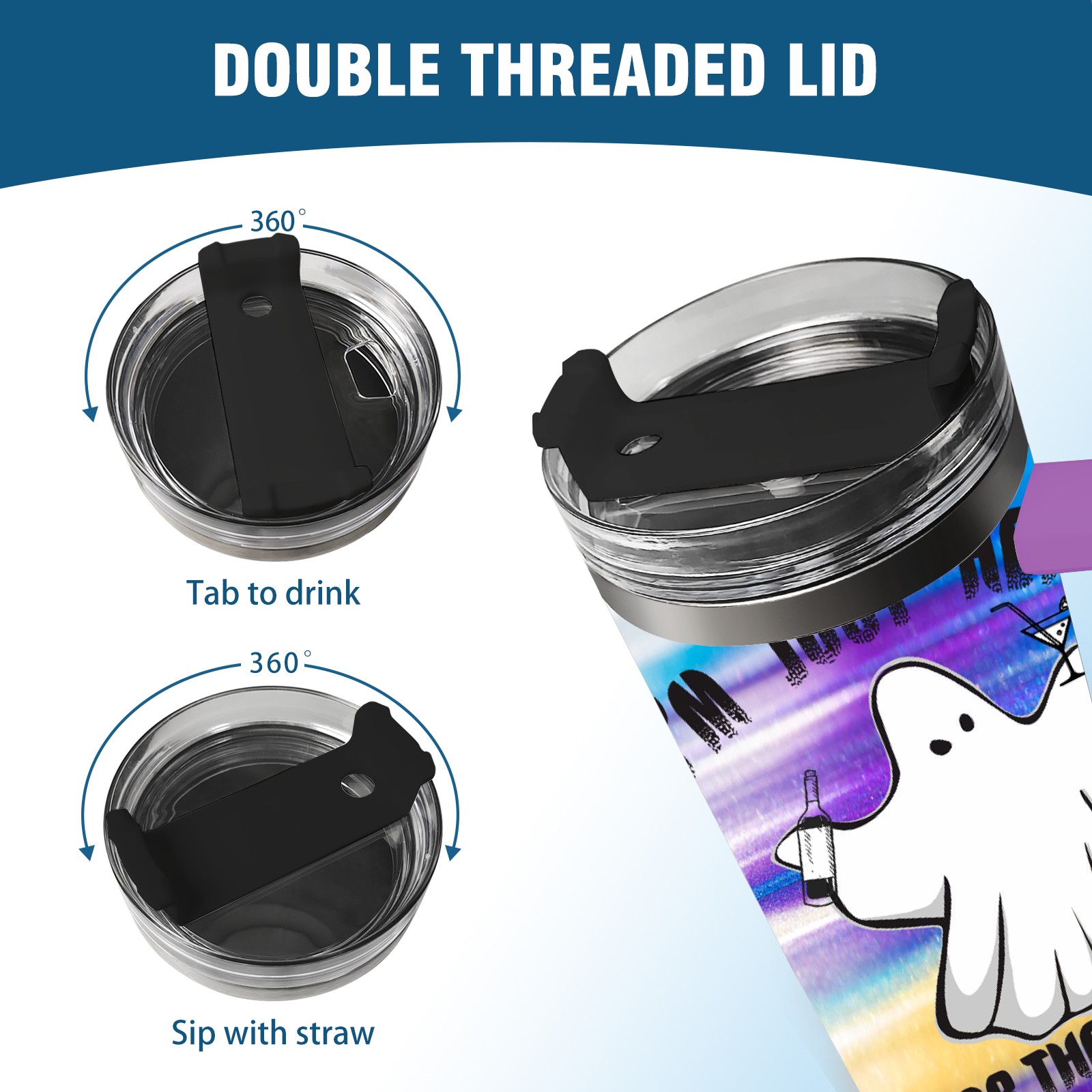 40oz 幽灵3 thermos with lid and straw, leak-proof stainless steel, with handle, spill-proof bottle, convenient for travel(purple)