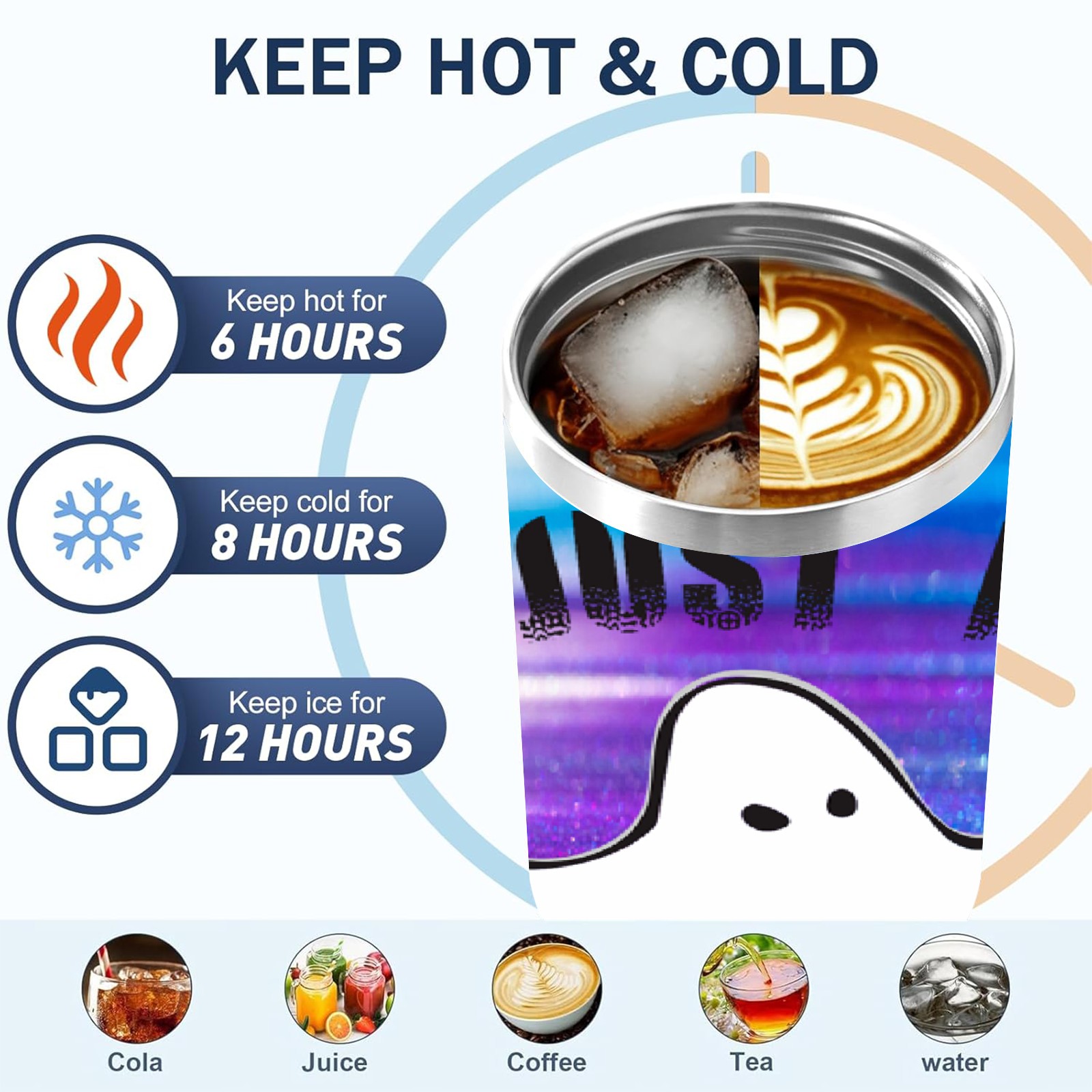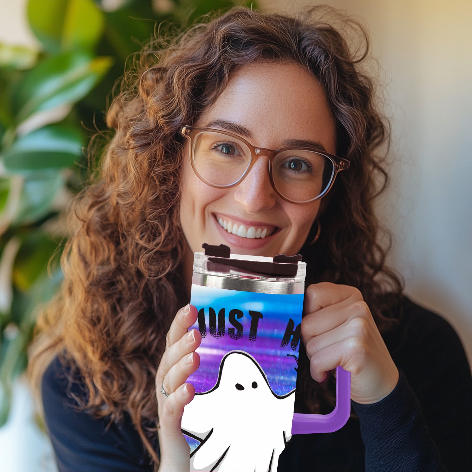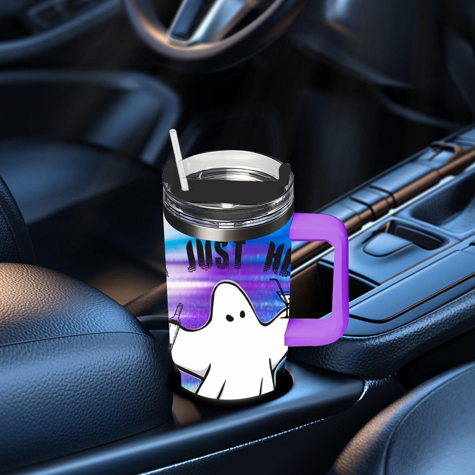 40oz 幽灵3 thermos with lid and straw, leak-proof stainless steel, with handle, spill-proof bottle, convenient for travel(purple)