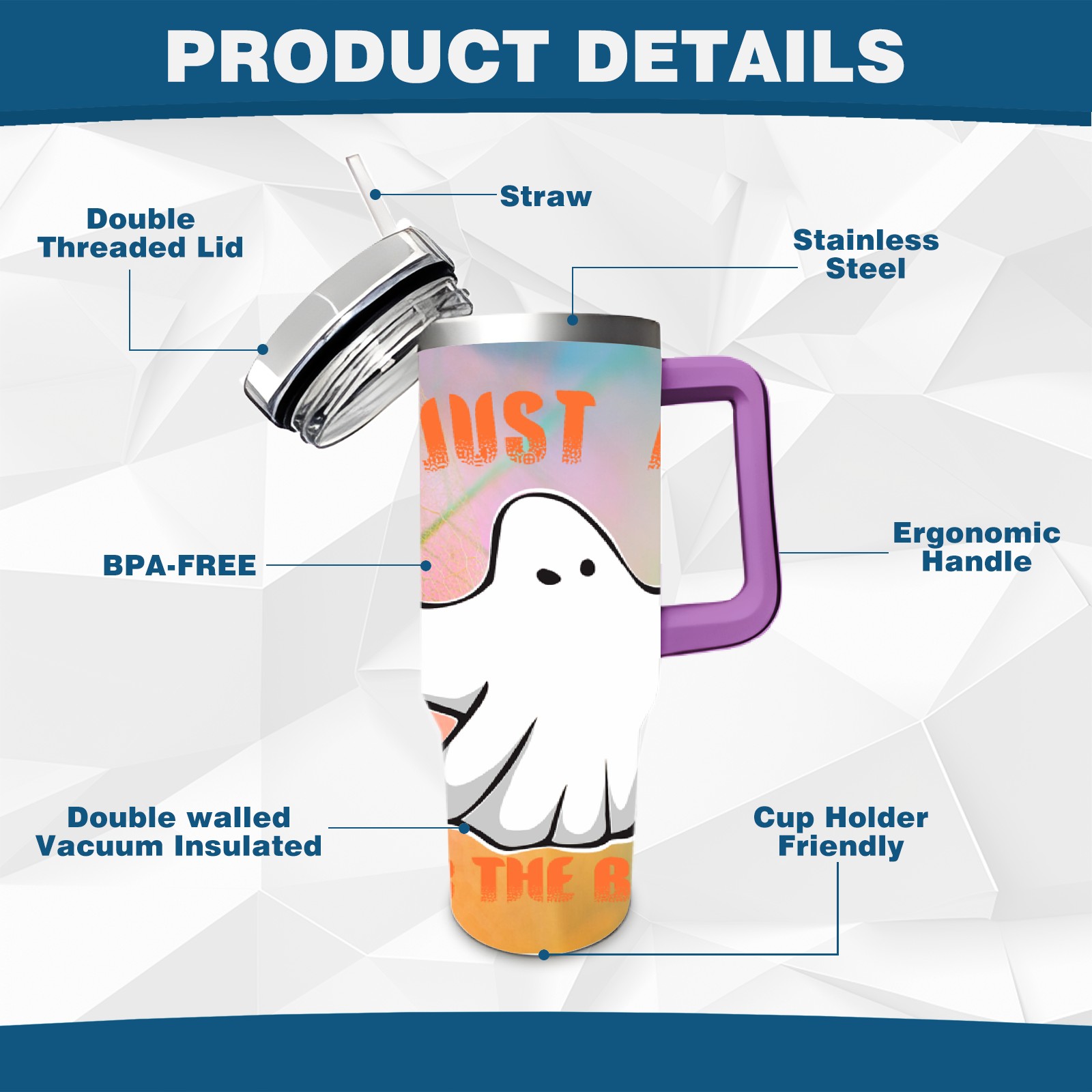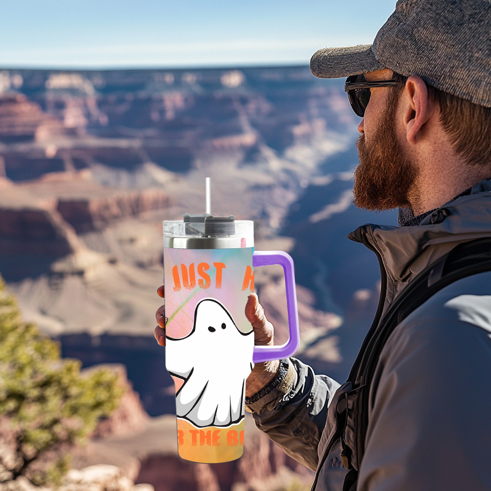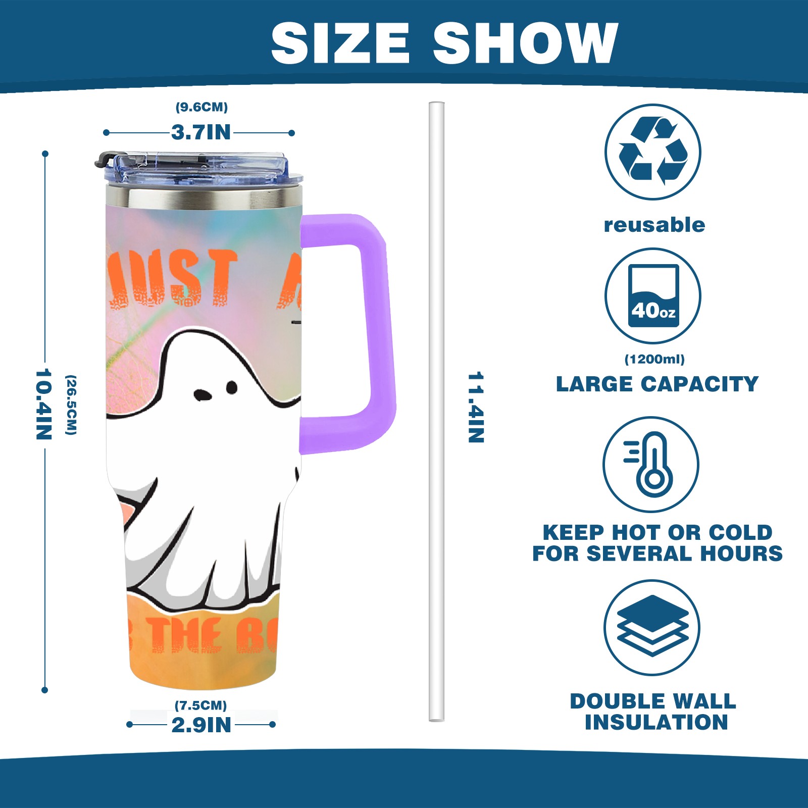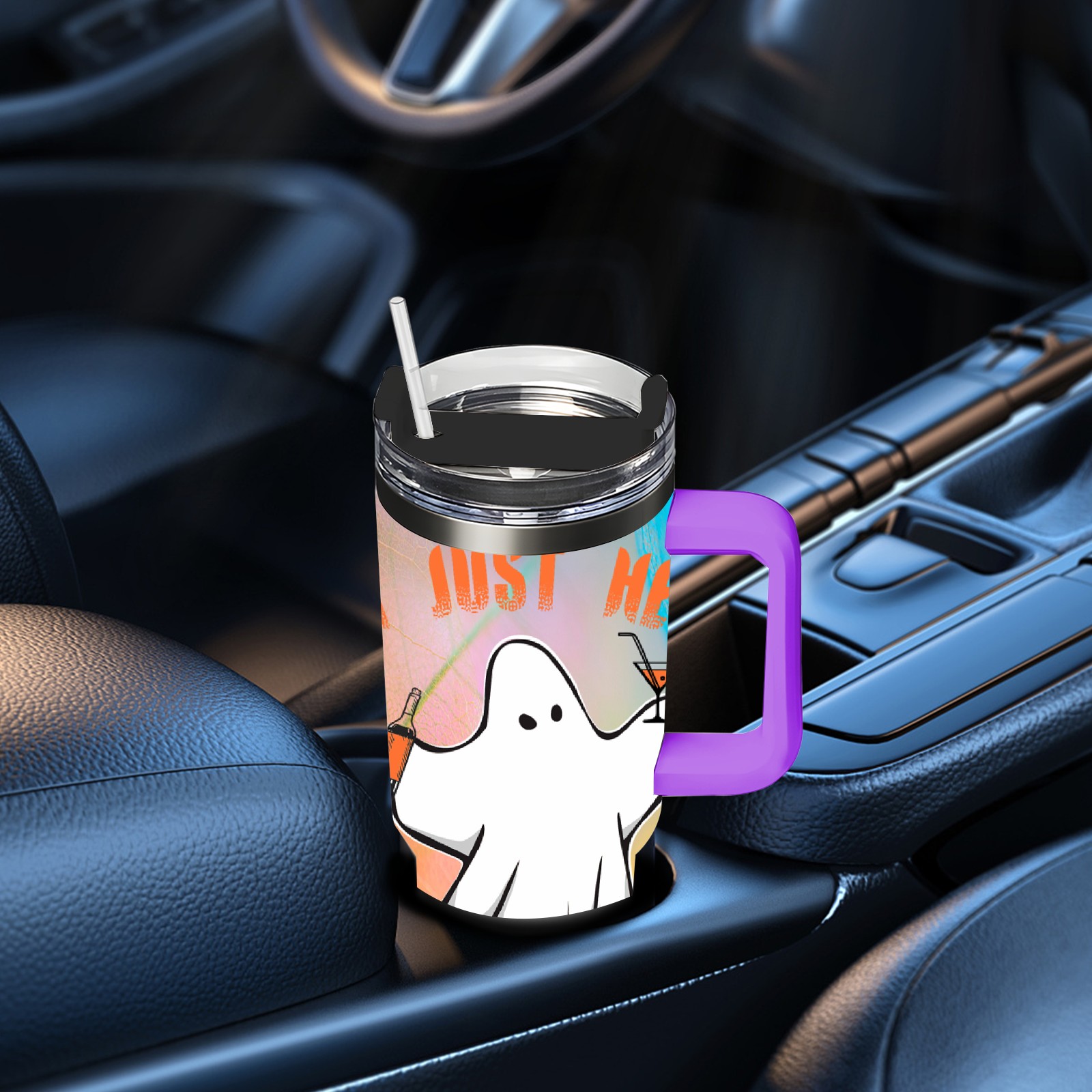 40oz 幽灵 thermos with lid and straw, leak-proof stainless steel, with handle, spill-proof bottle, convenient for travel(purple)