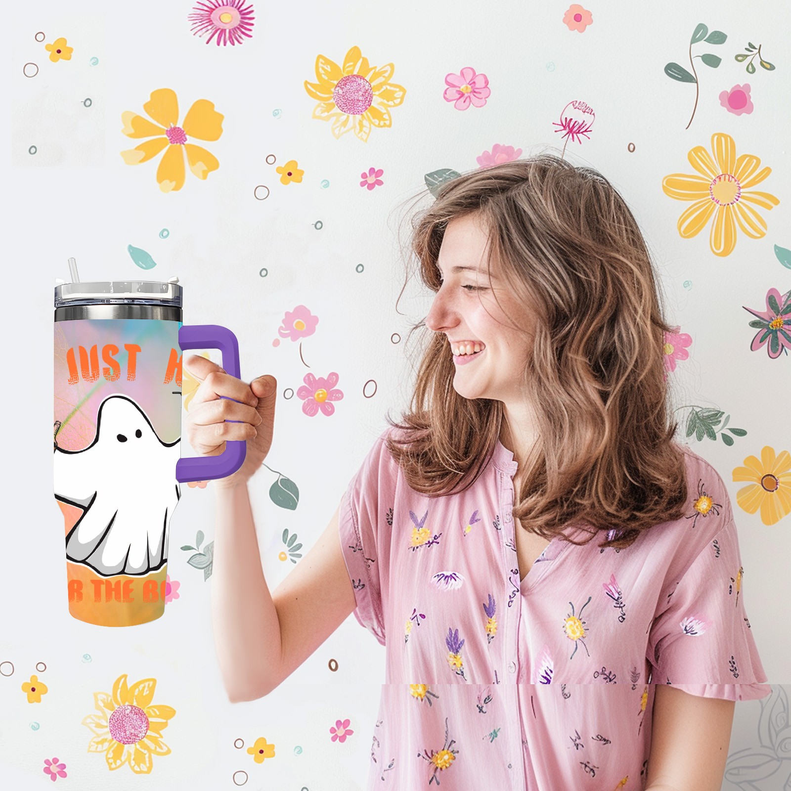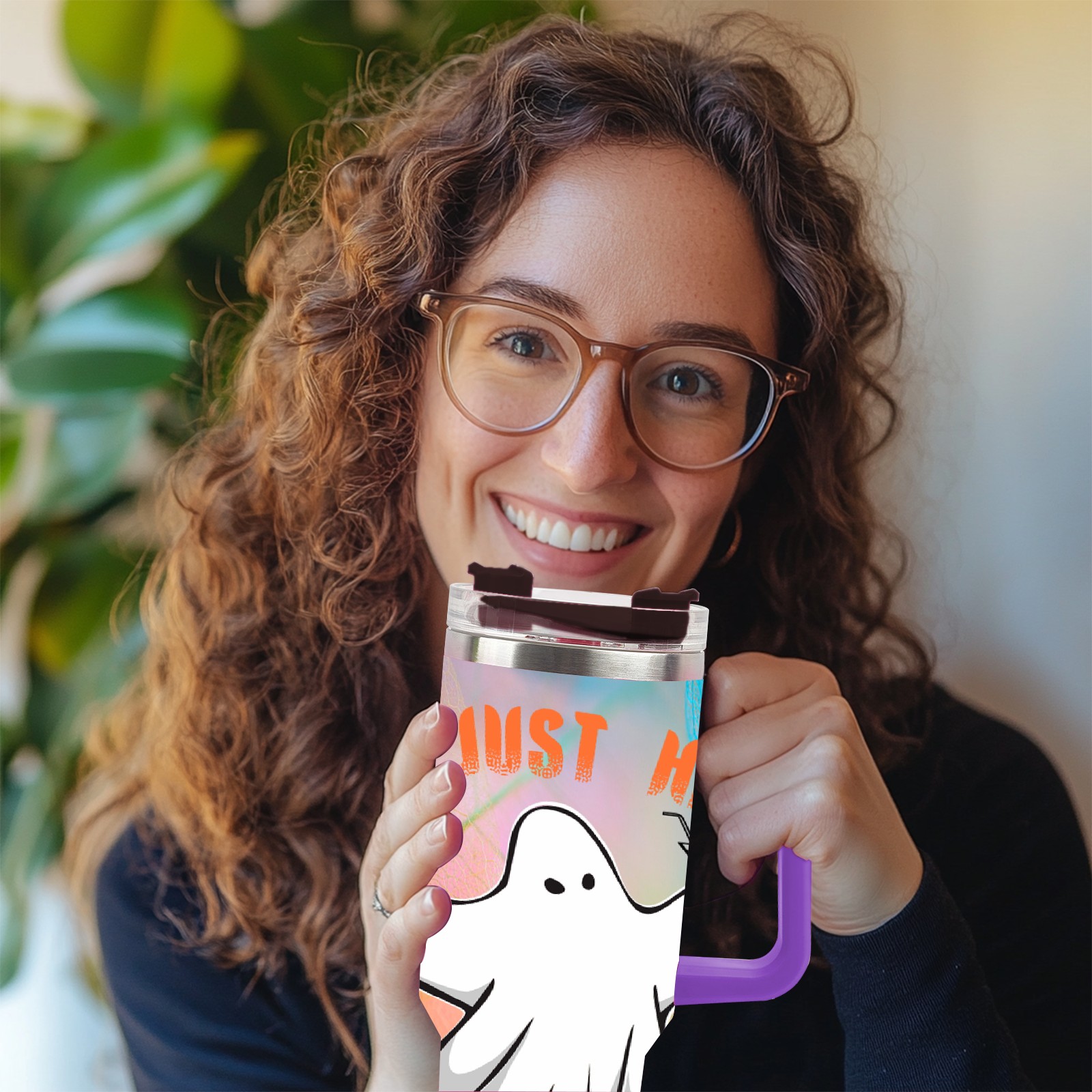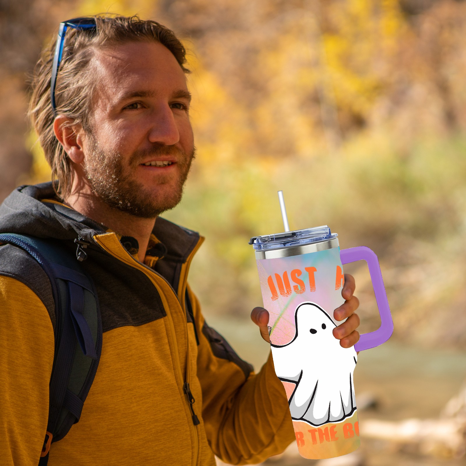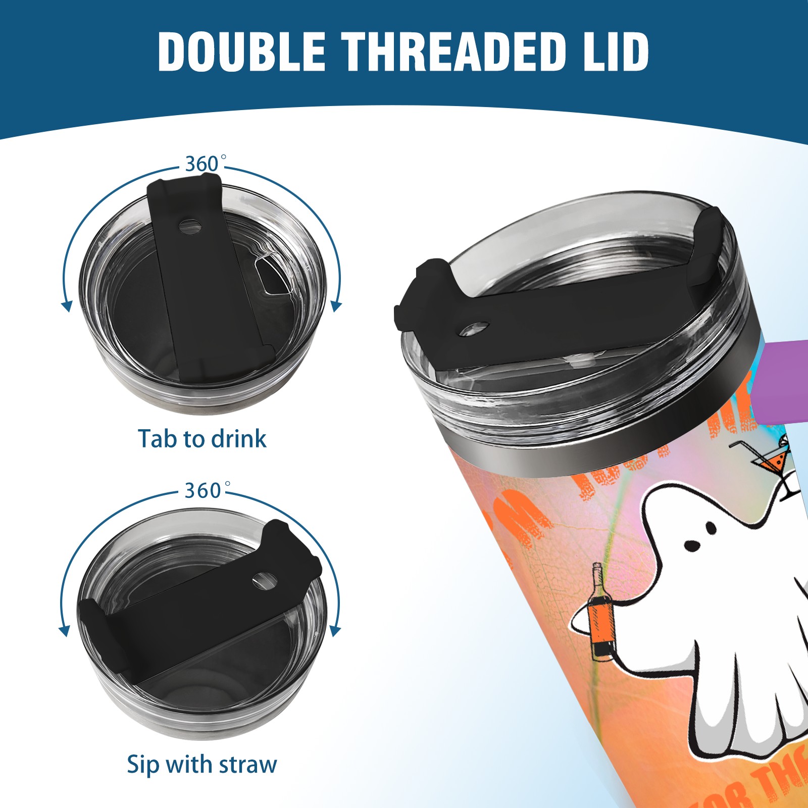 40oz 幽灵 thermos with lid and straw, leak-proof stainless steel, with handle, spill-proof bottle, convenient for travel(purple)