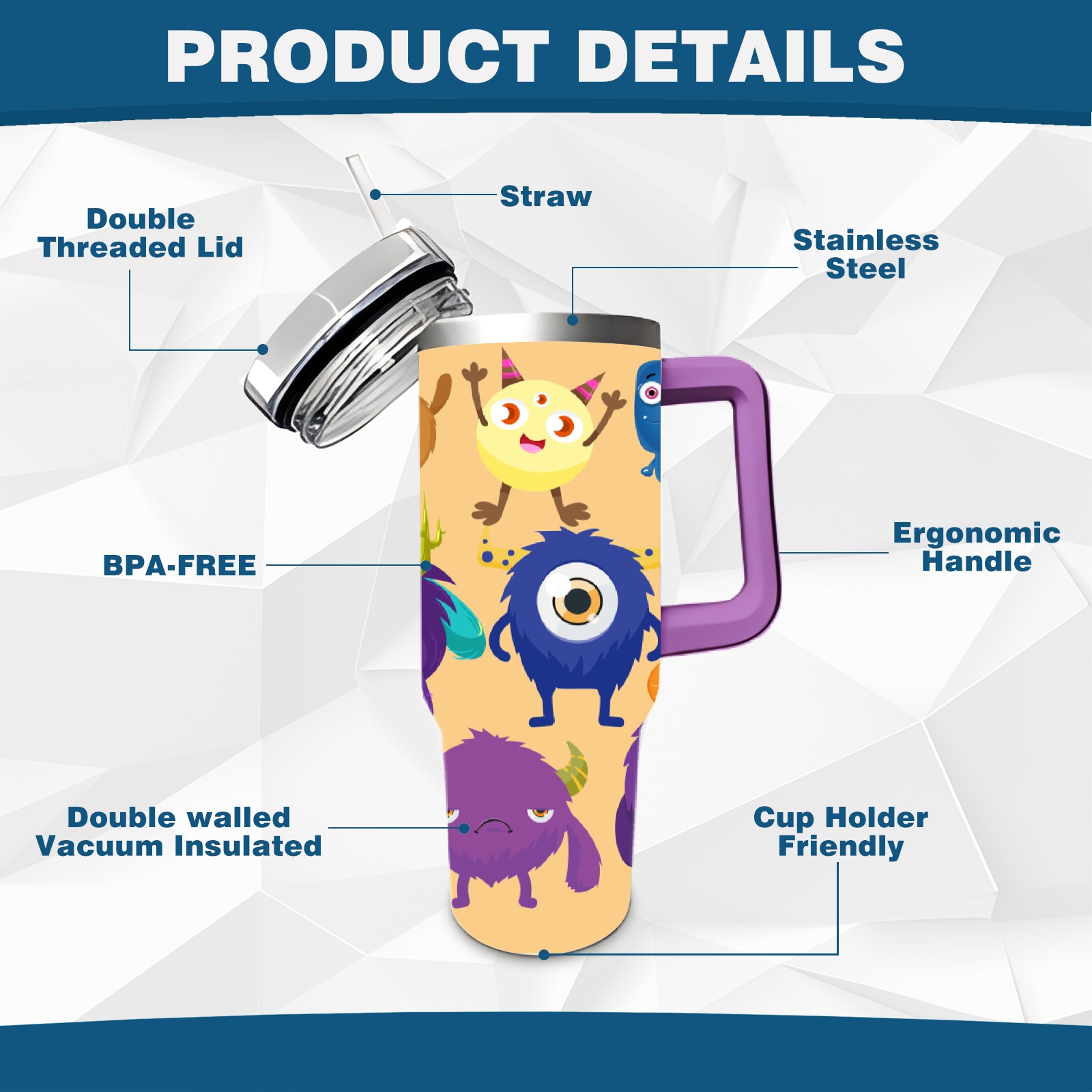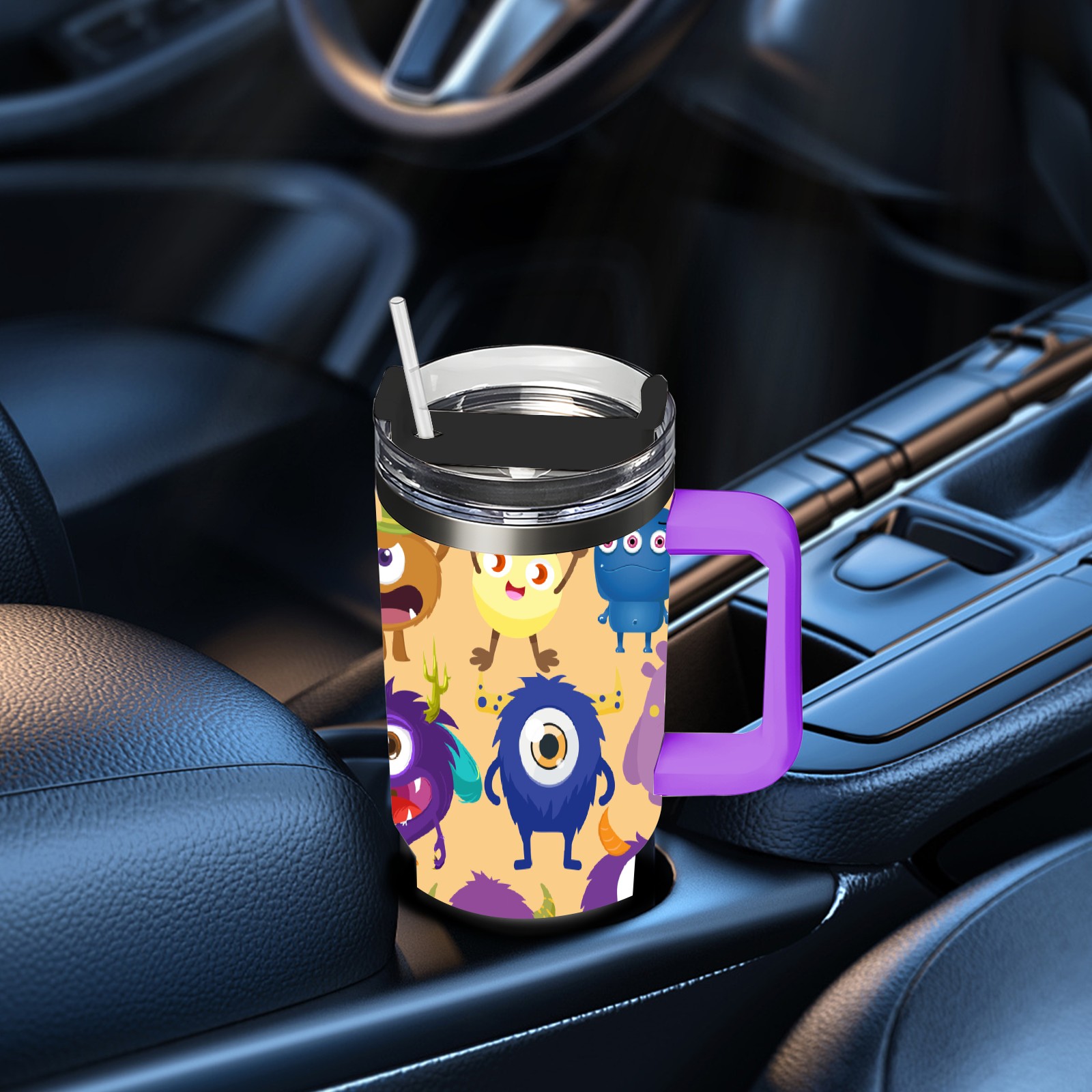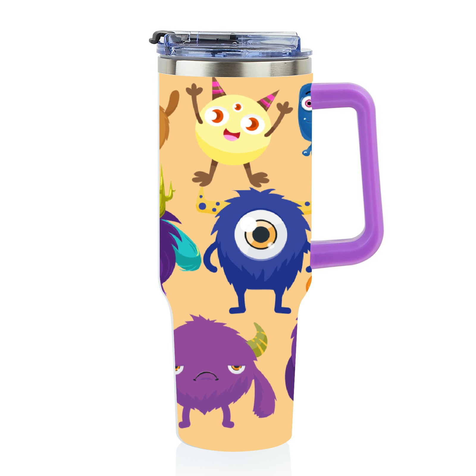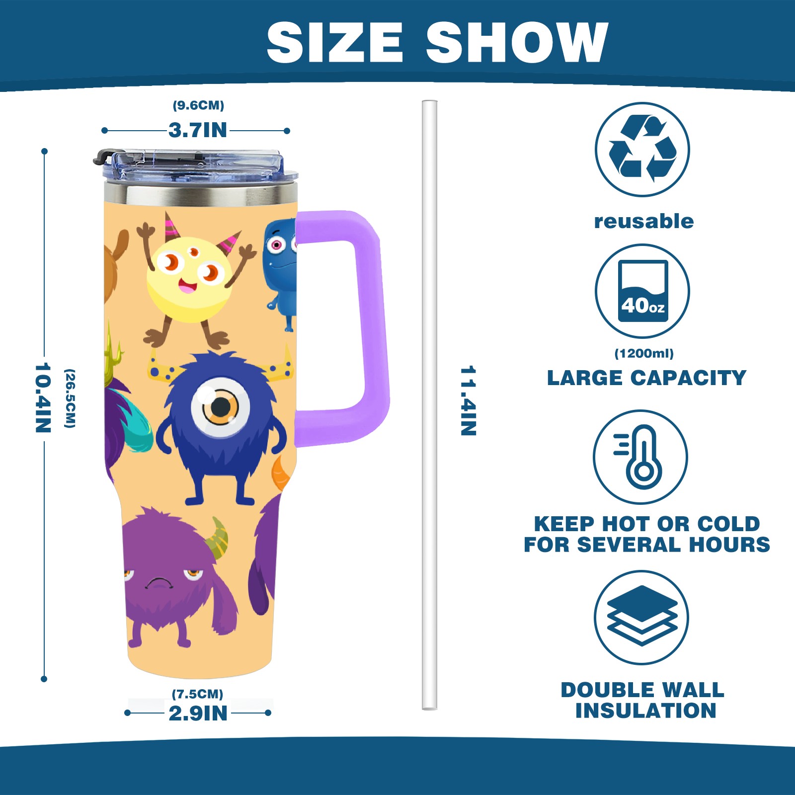 40oz 小怪兽3 thermos with lid and straw, leak-proof stainless steel, with handle, spill-proof bottle, convenient for travel(purple)