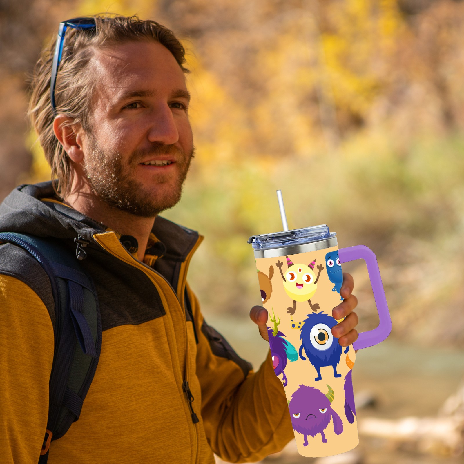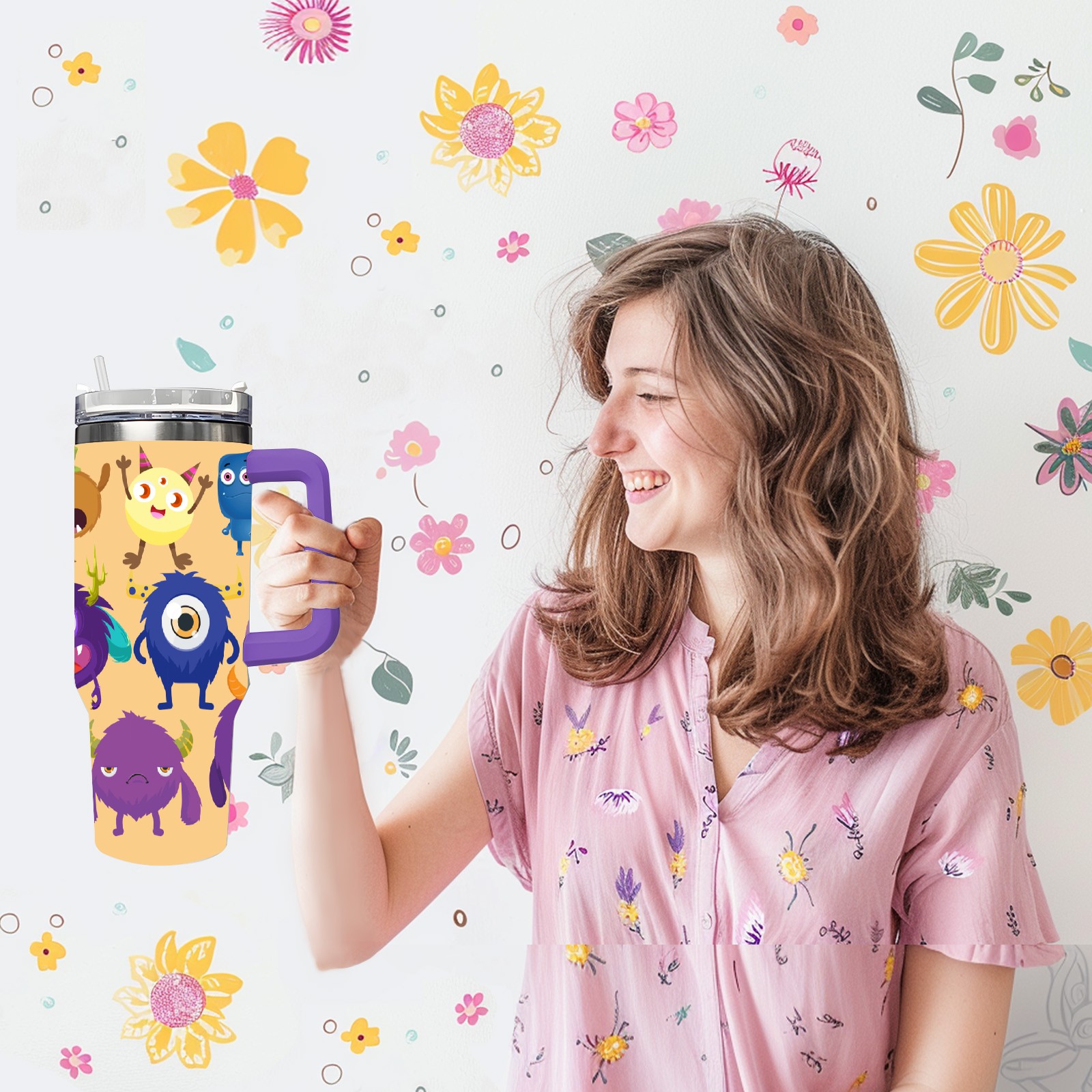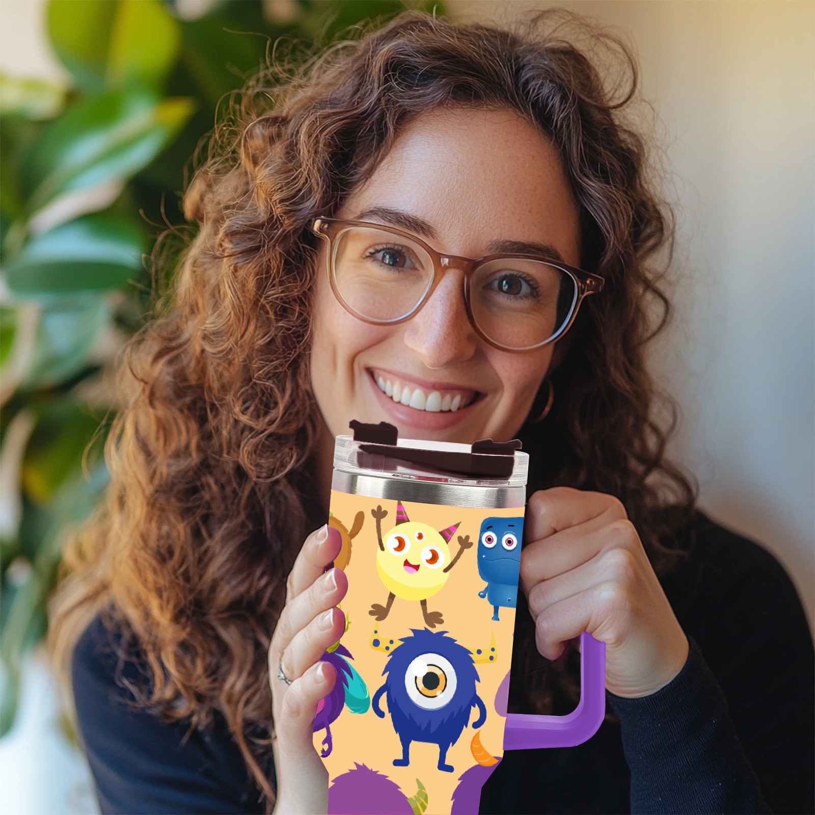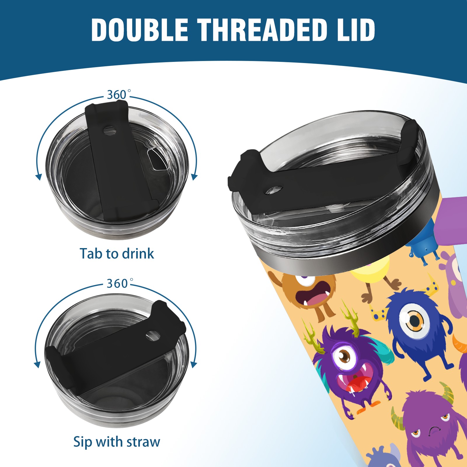 40oz 小怪兽3 thermos with lid and straw, leak-proof stainless steel, with handle, spill-proof bottle, convenient for travel(purple)
