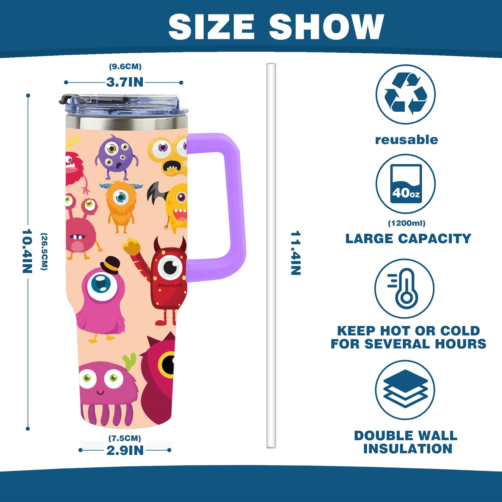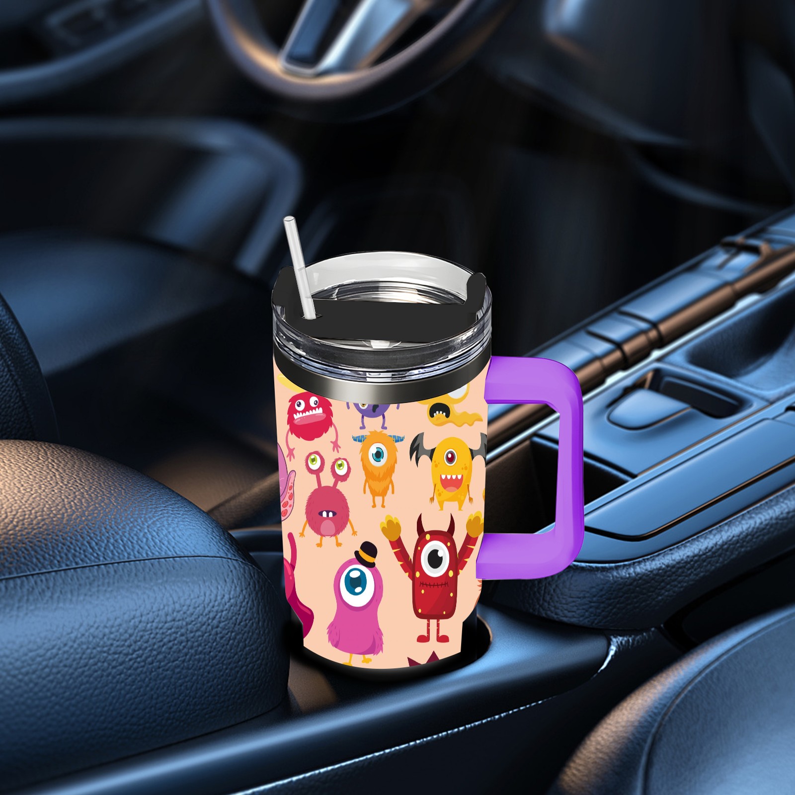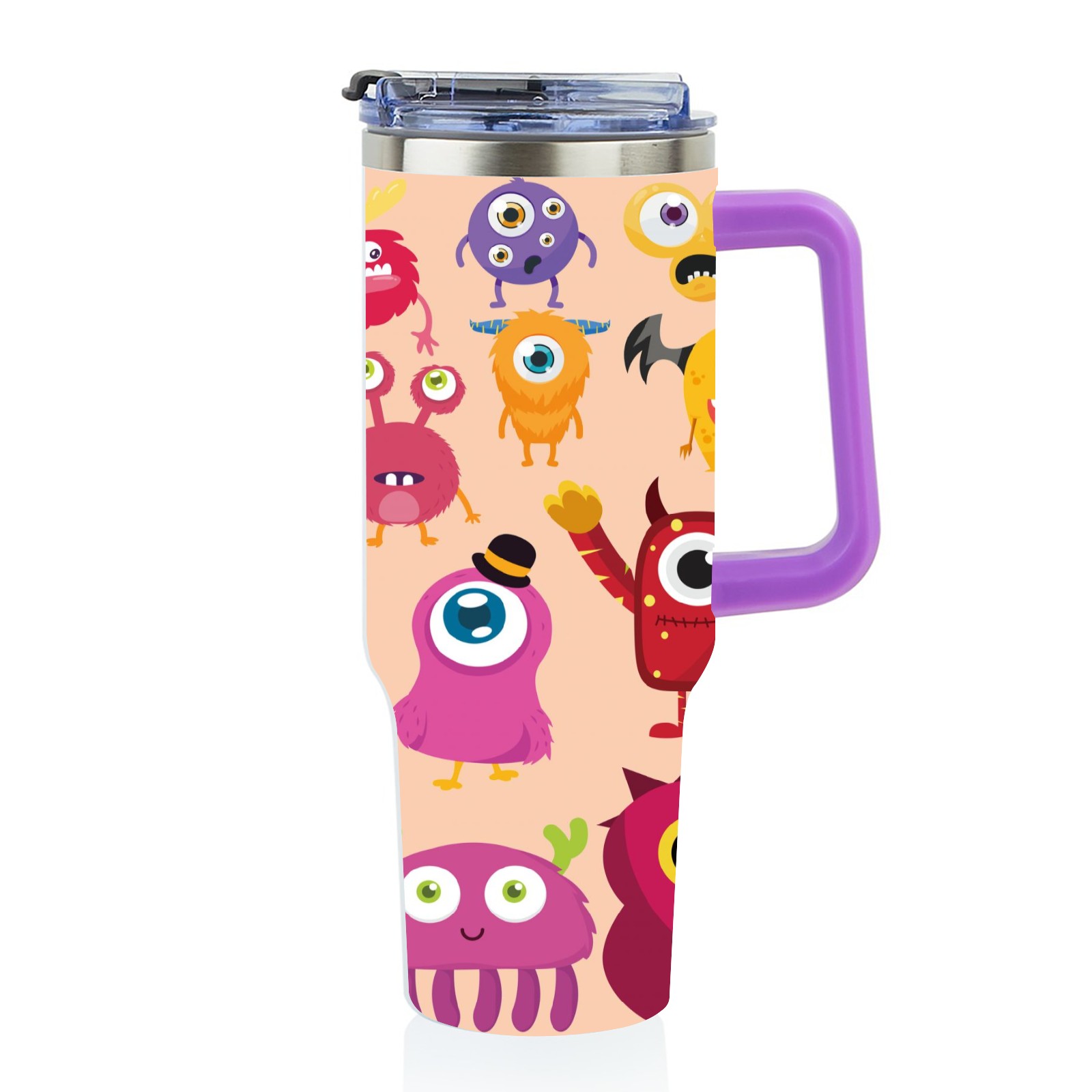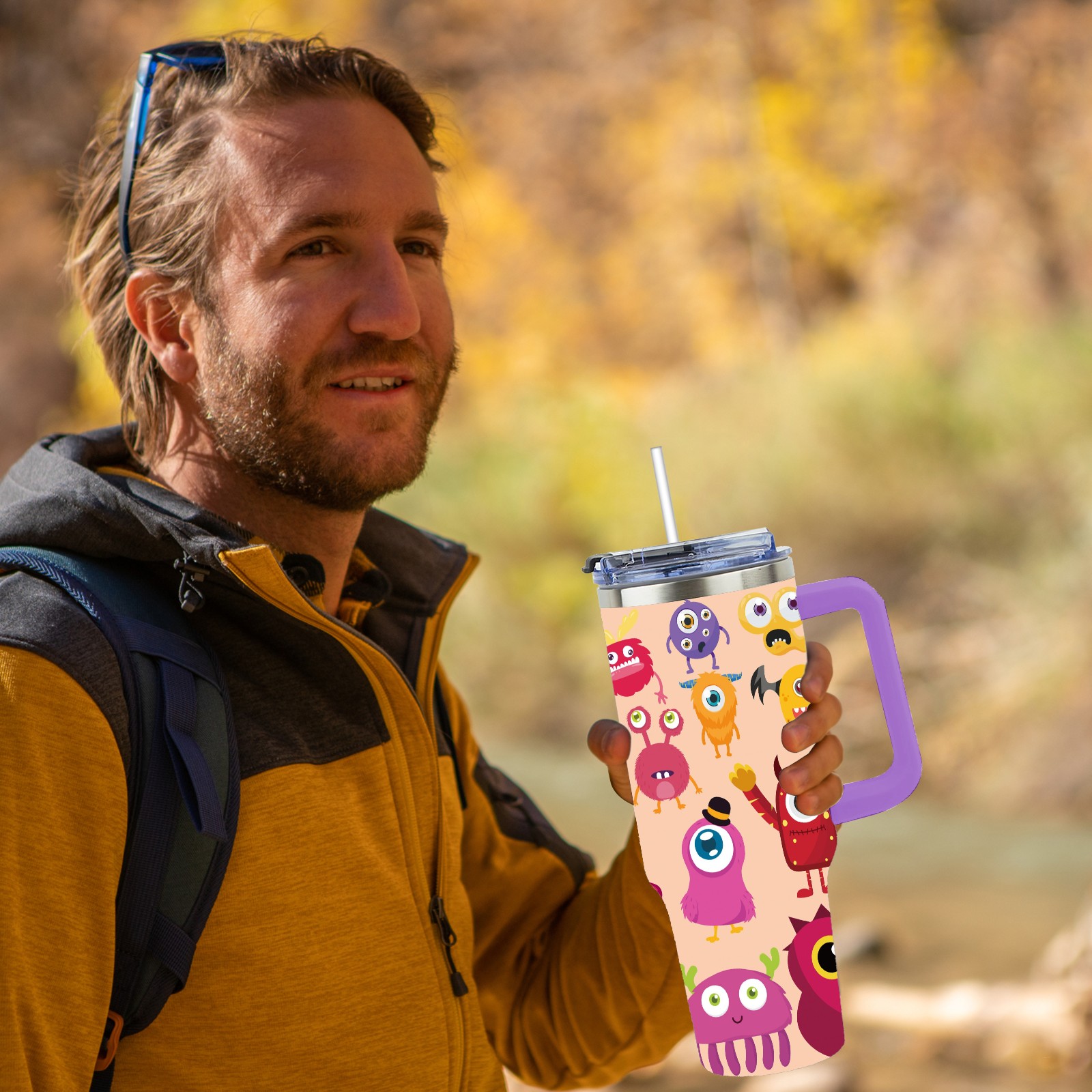 40oz 小怪兽2 thermos with lid and straw, leak-proof stainless steel, with handle, spill-proof bottle, convenient for travel(purple)