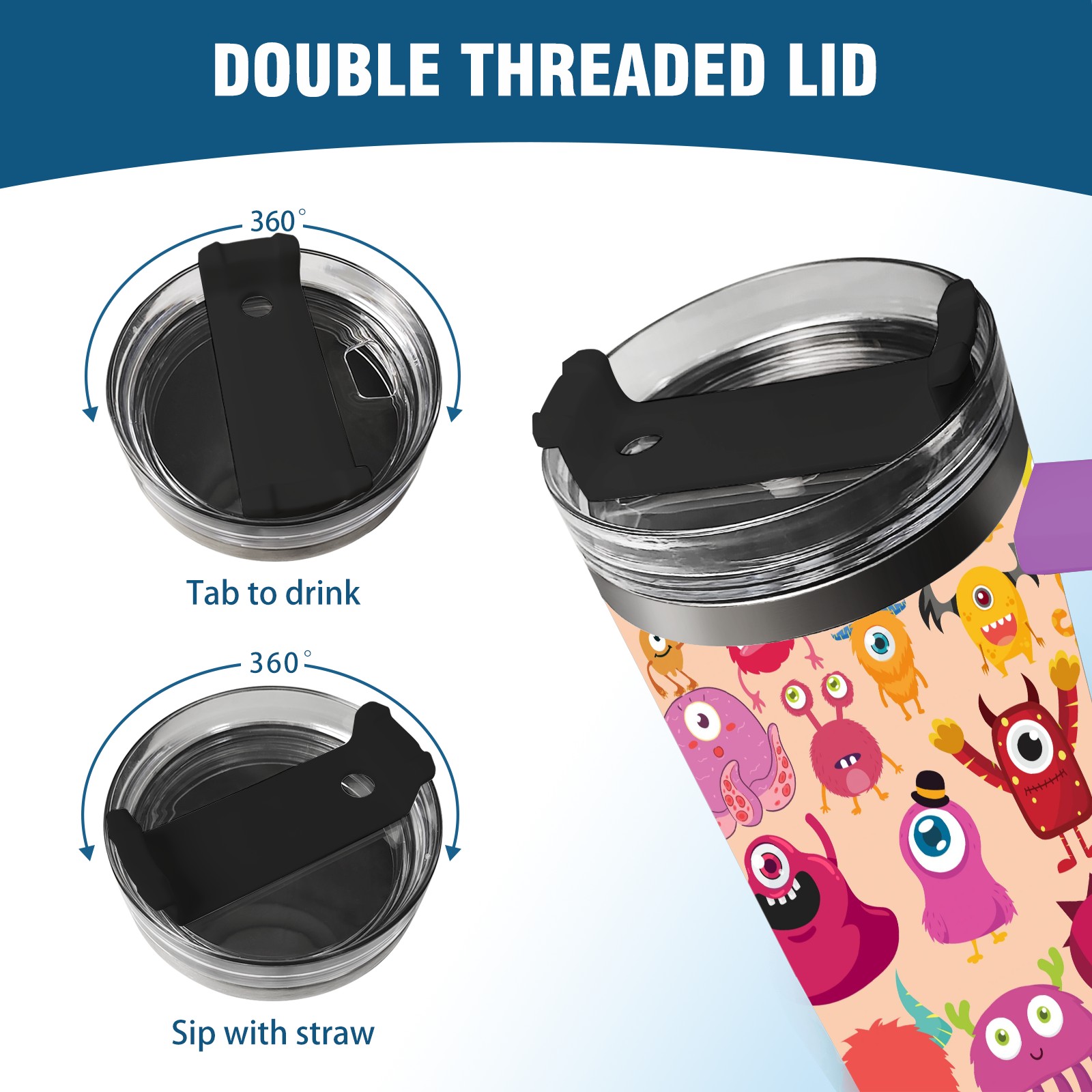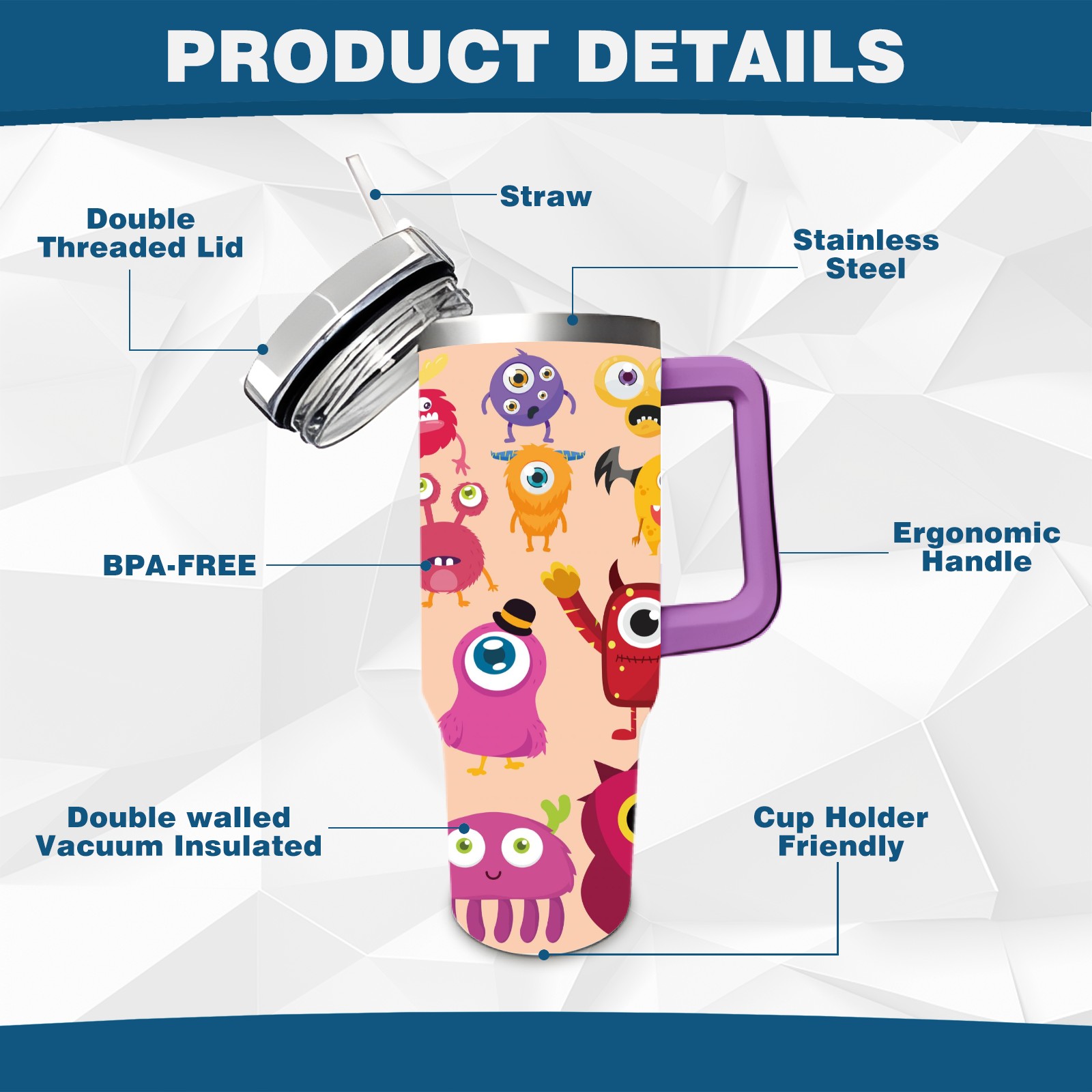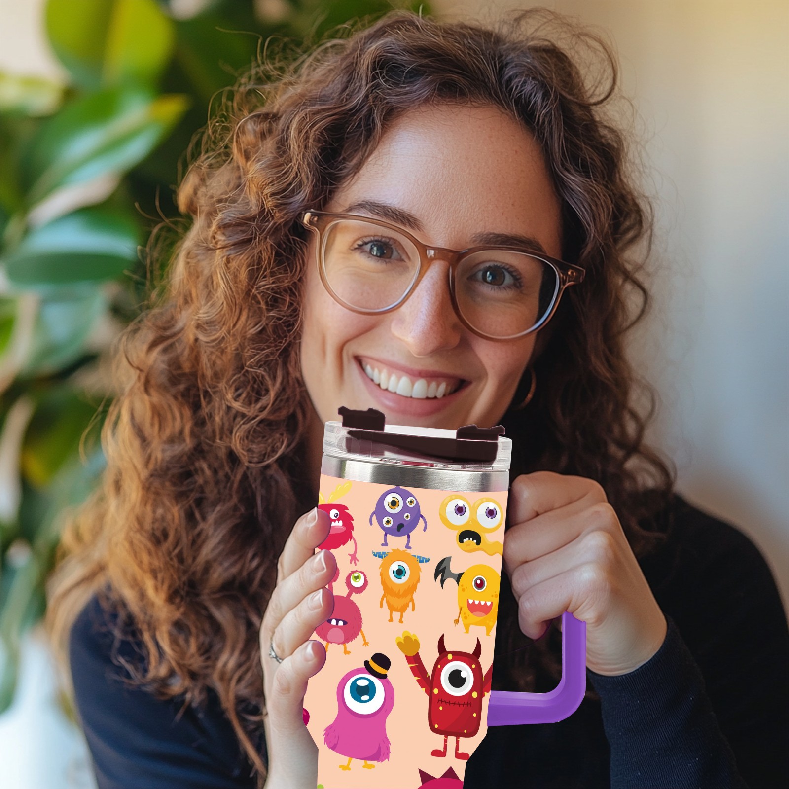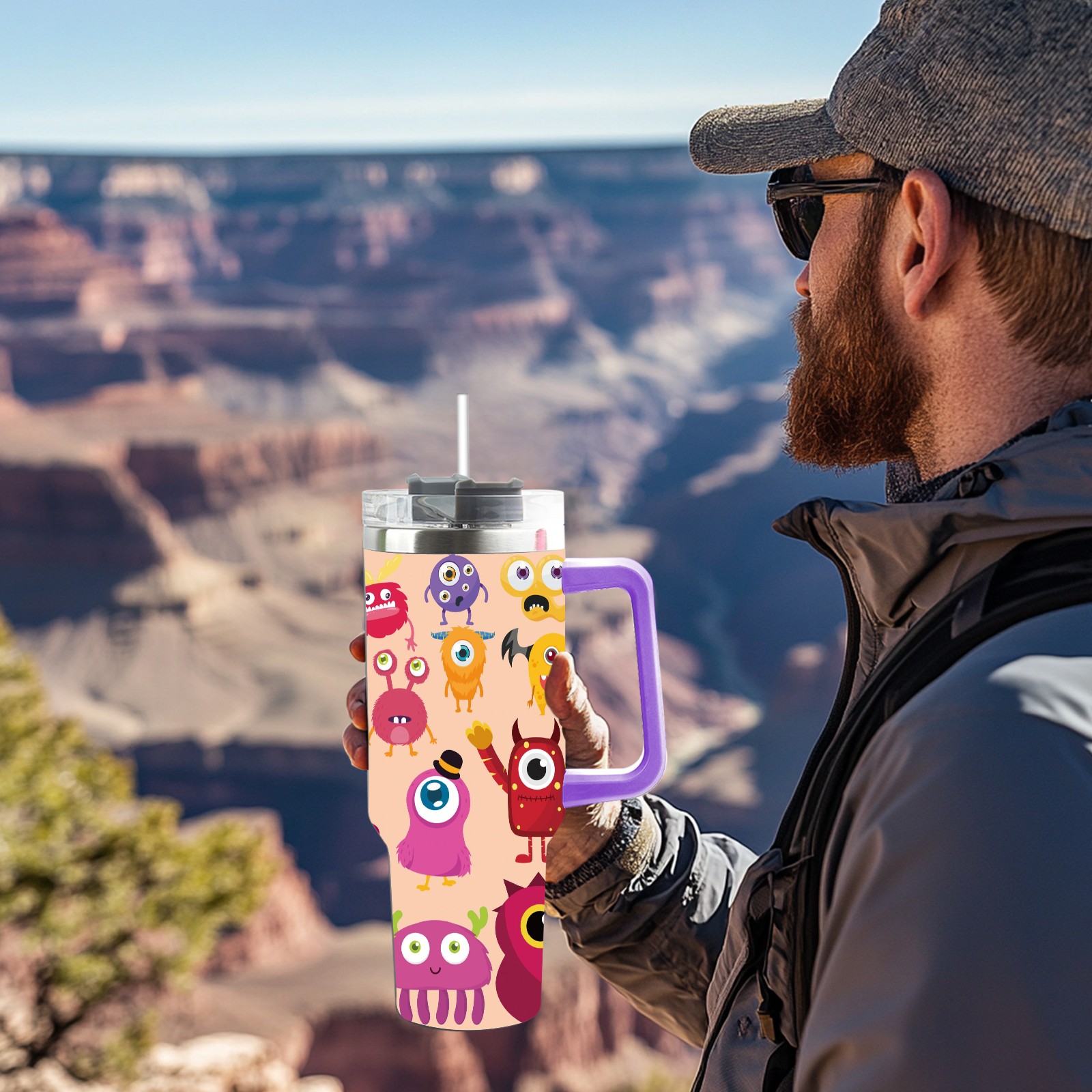 40oz 小怪兽2 thermos with lid and straw, leak-proof stainless steel, with handle, spill-proof bottle, convenient for travel(purple)