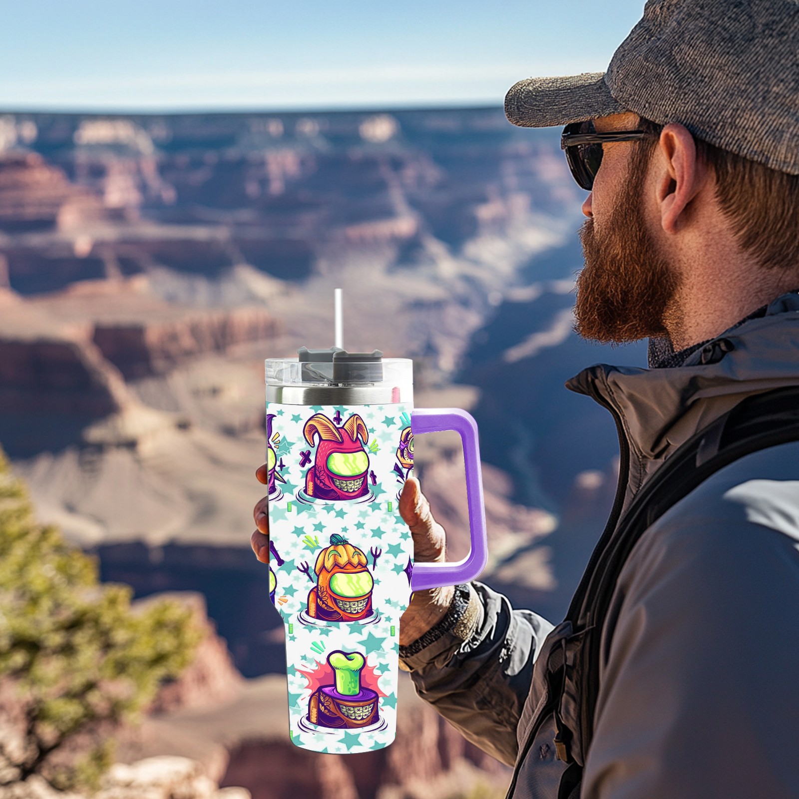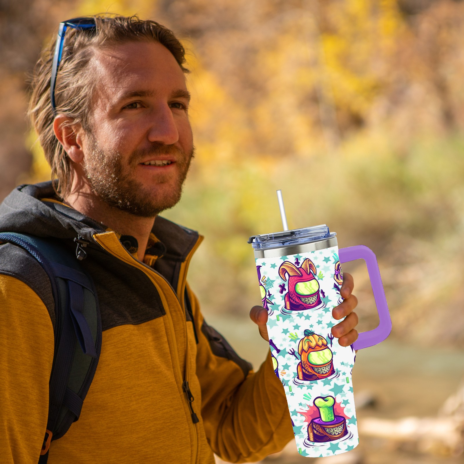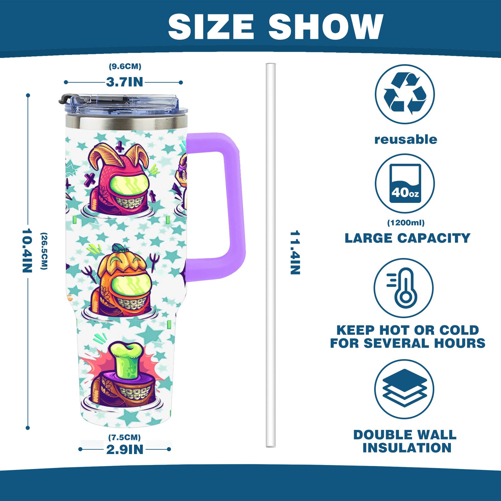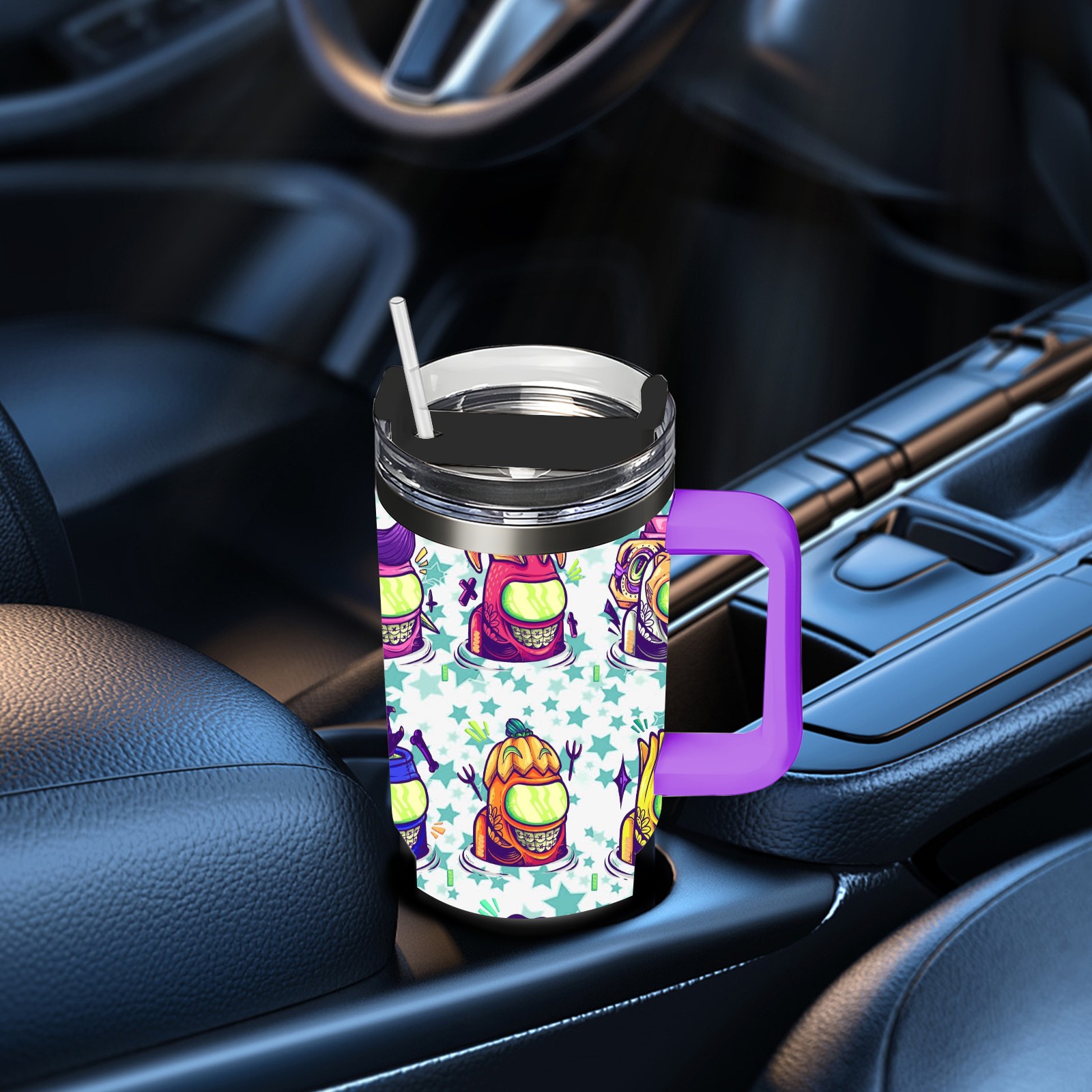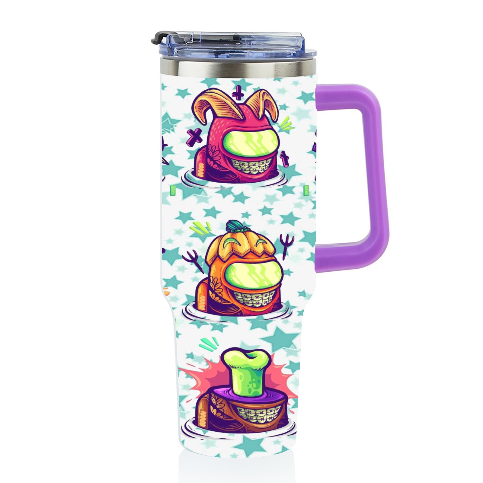 40oz 水老鬼 thermos with lid and straw, leak-proof stainless steel, with handle, spill-proof bottle, convenient for travel(purple)