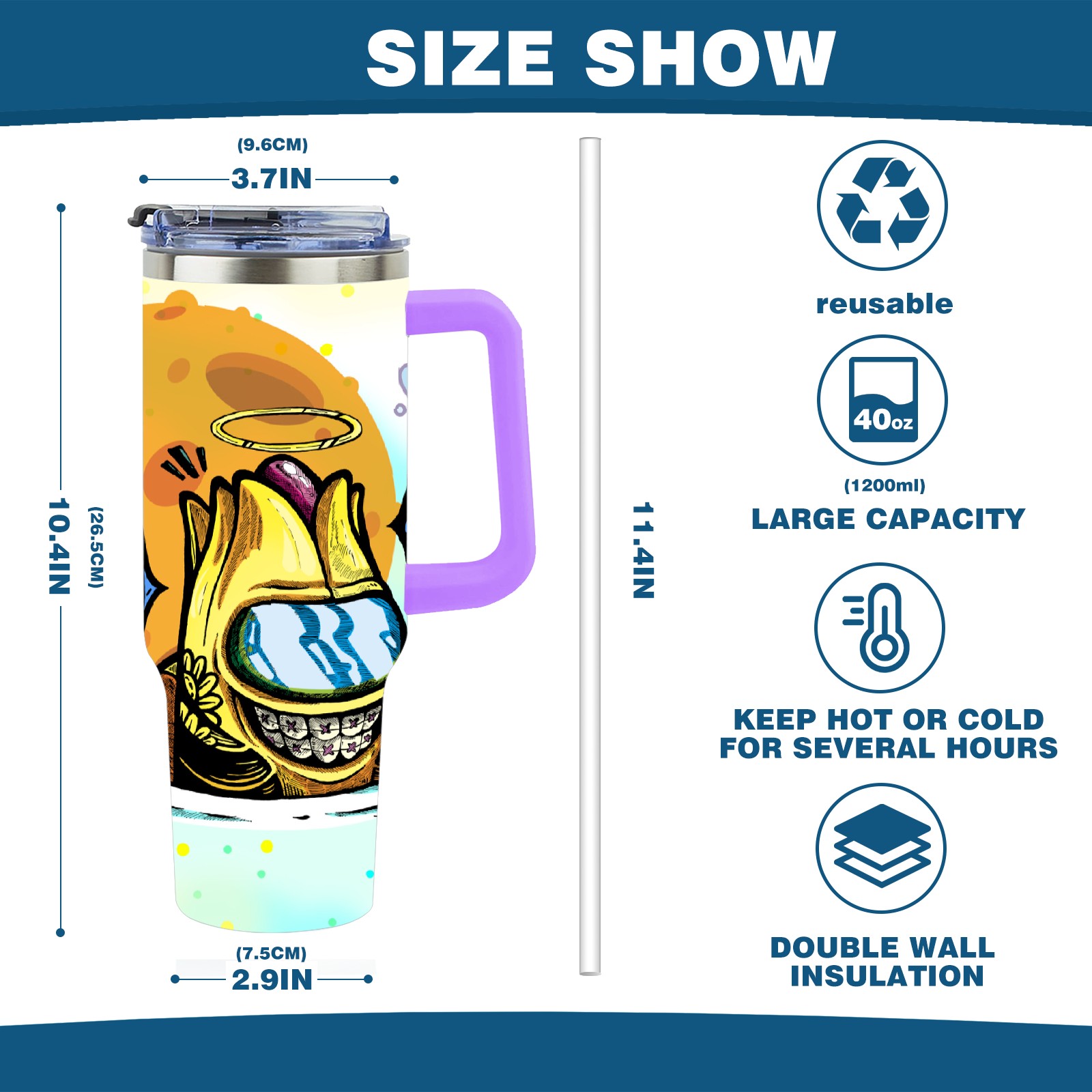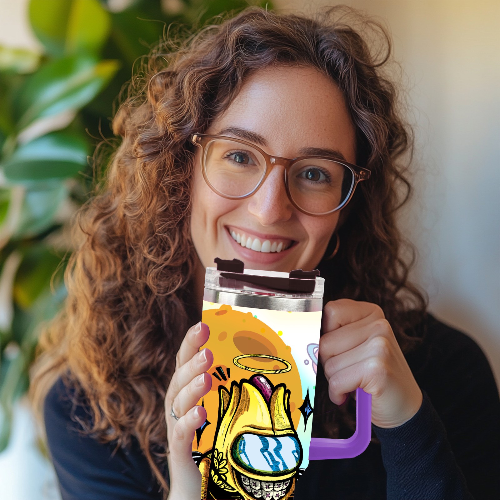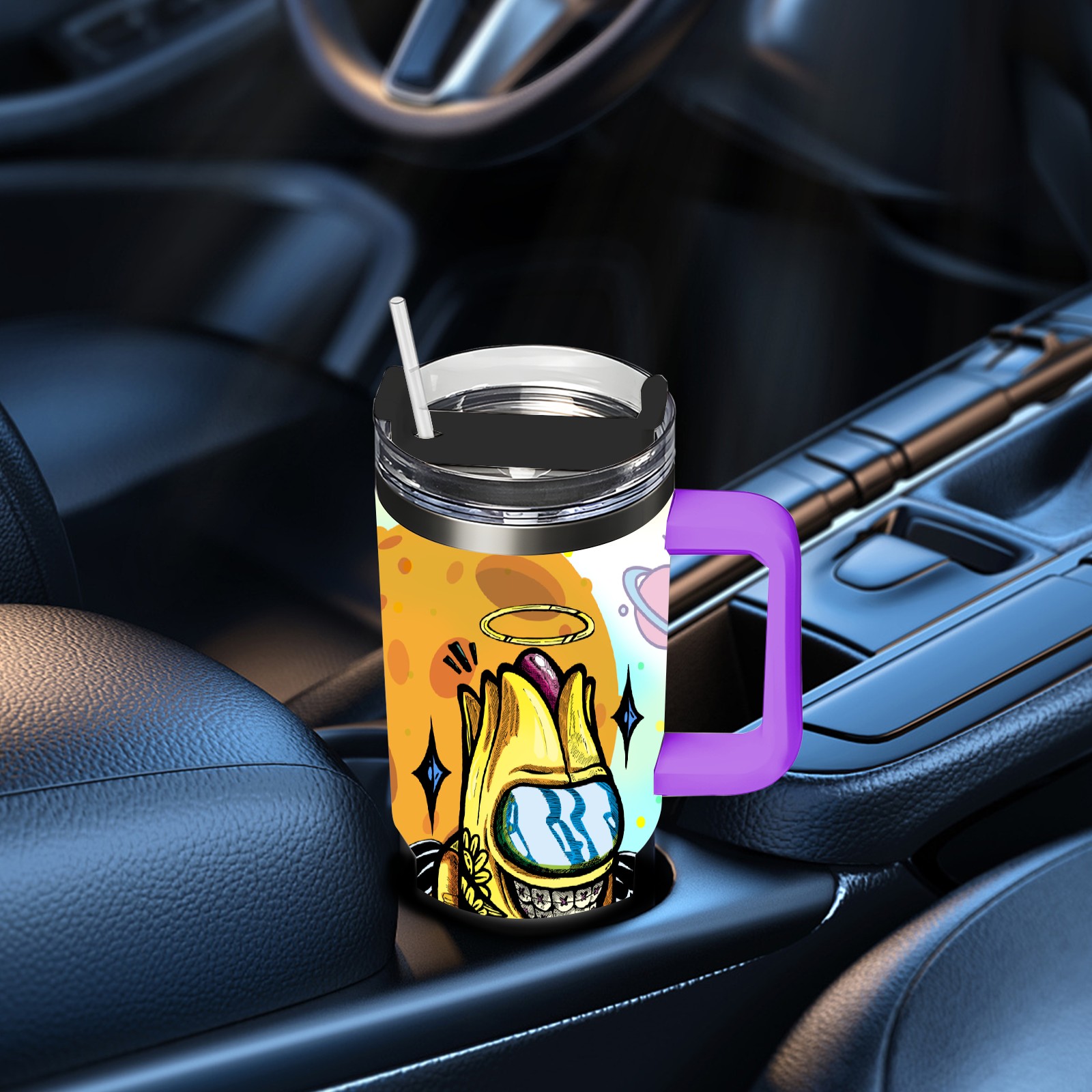 40oz 太空狼人杀 thermos with lid and straw, leak-proof stainless steel, with handle, spill-proof bottle, convenient for travel(purple)