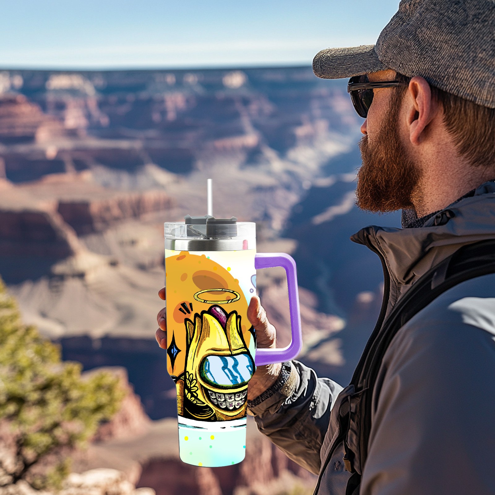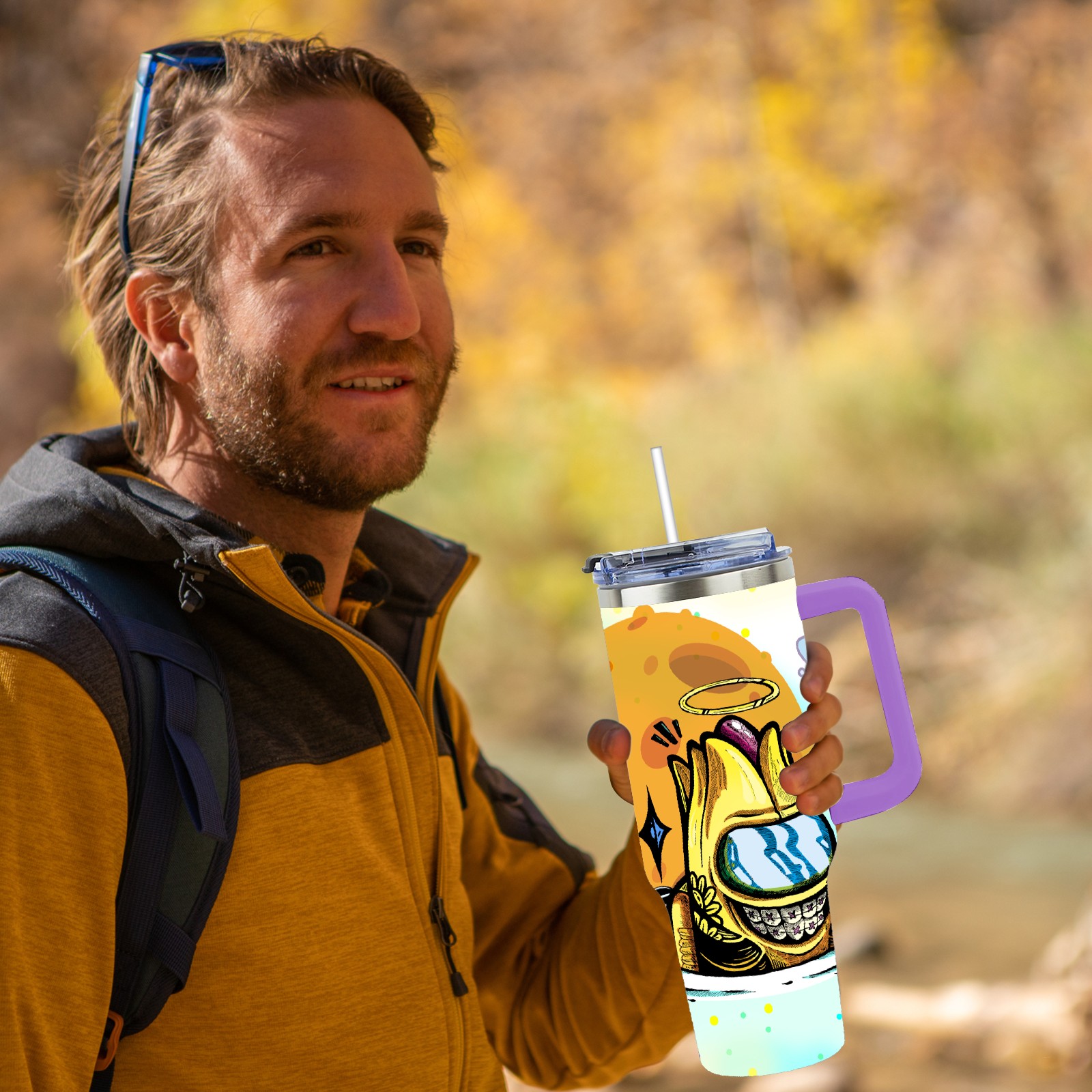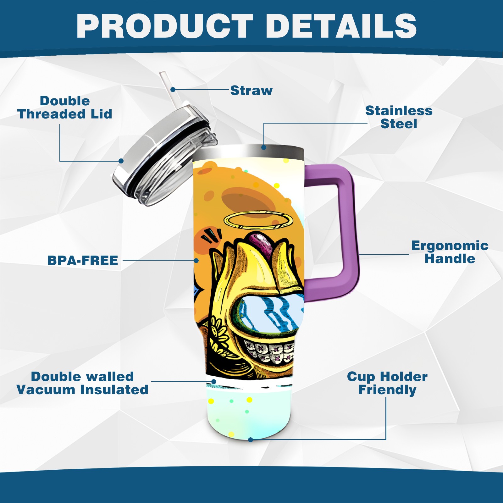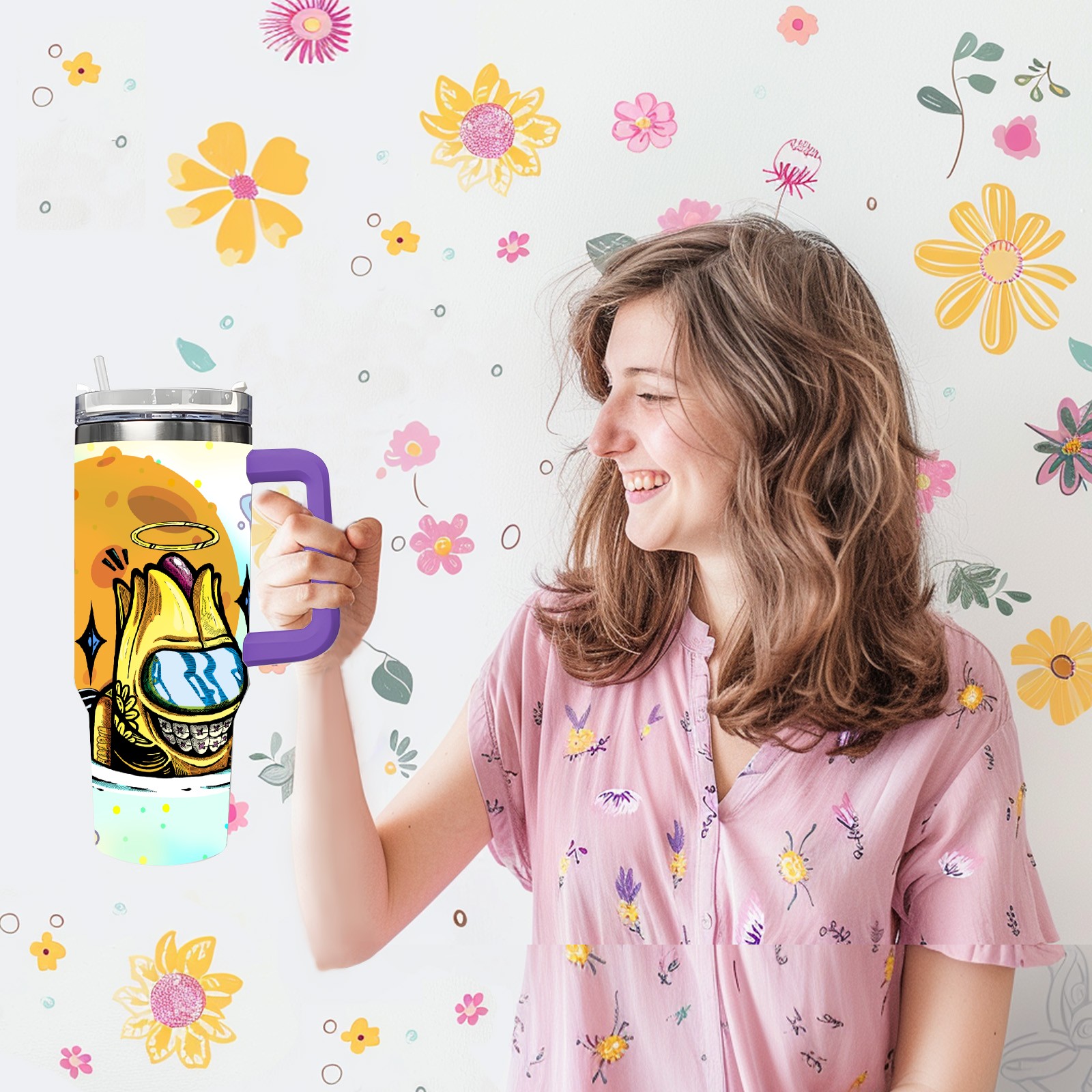 40oz 太空狼人杀 thermos with lid and straw, leak-proof stainless steel, with handle, spill-proof bottle, convenient for travel(purple)