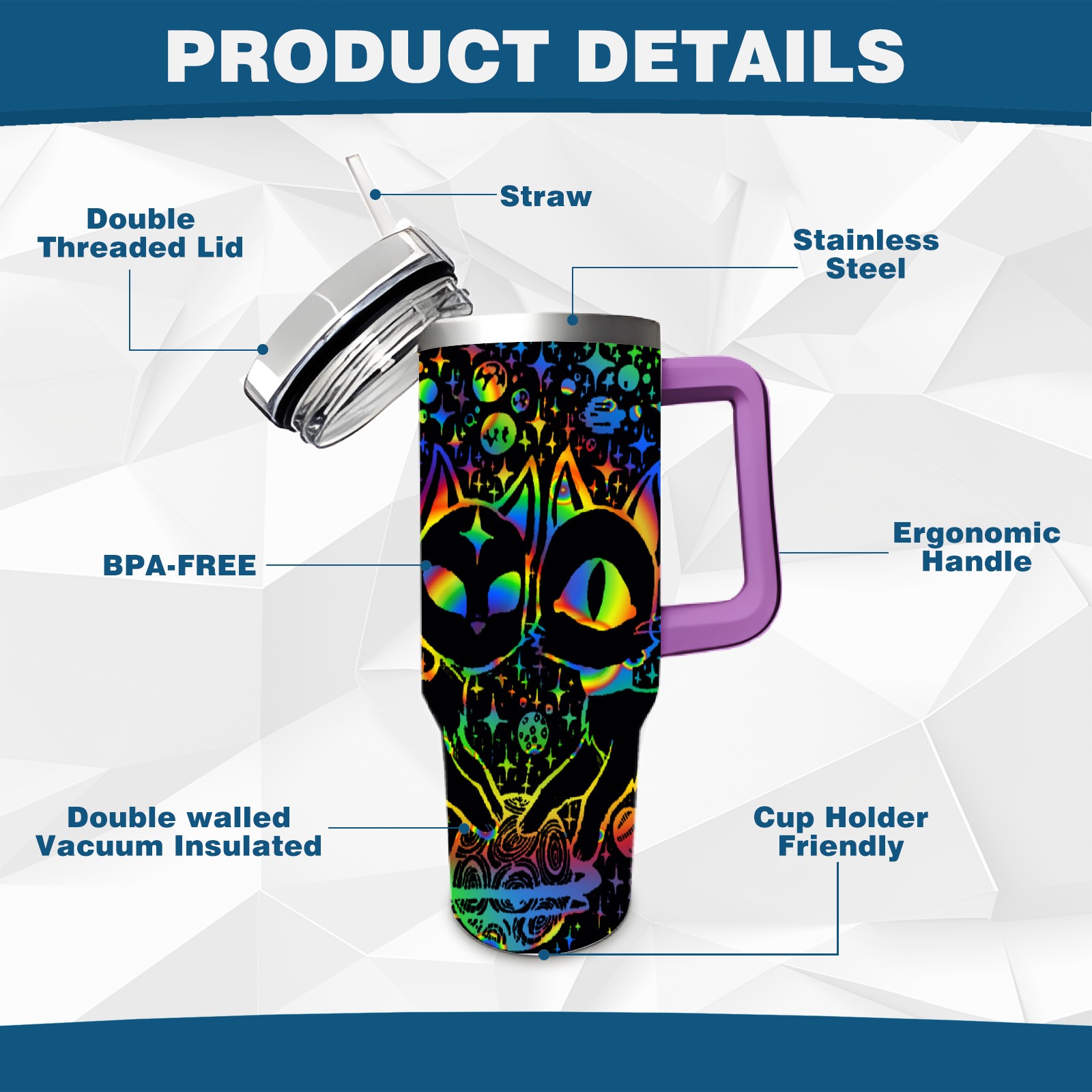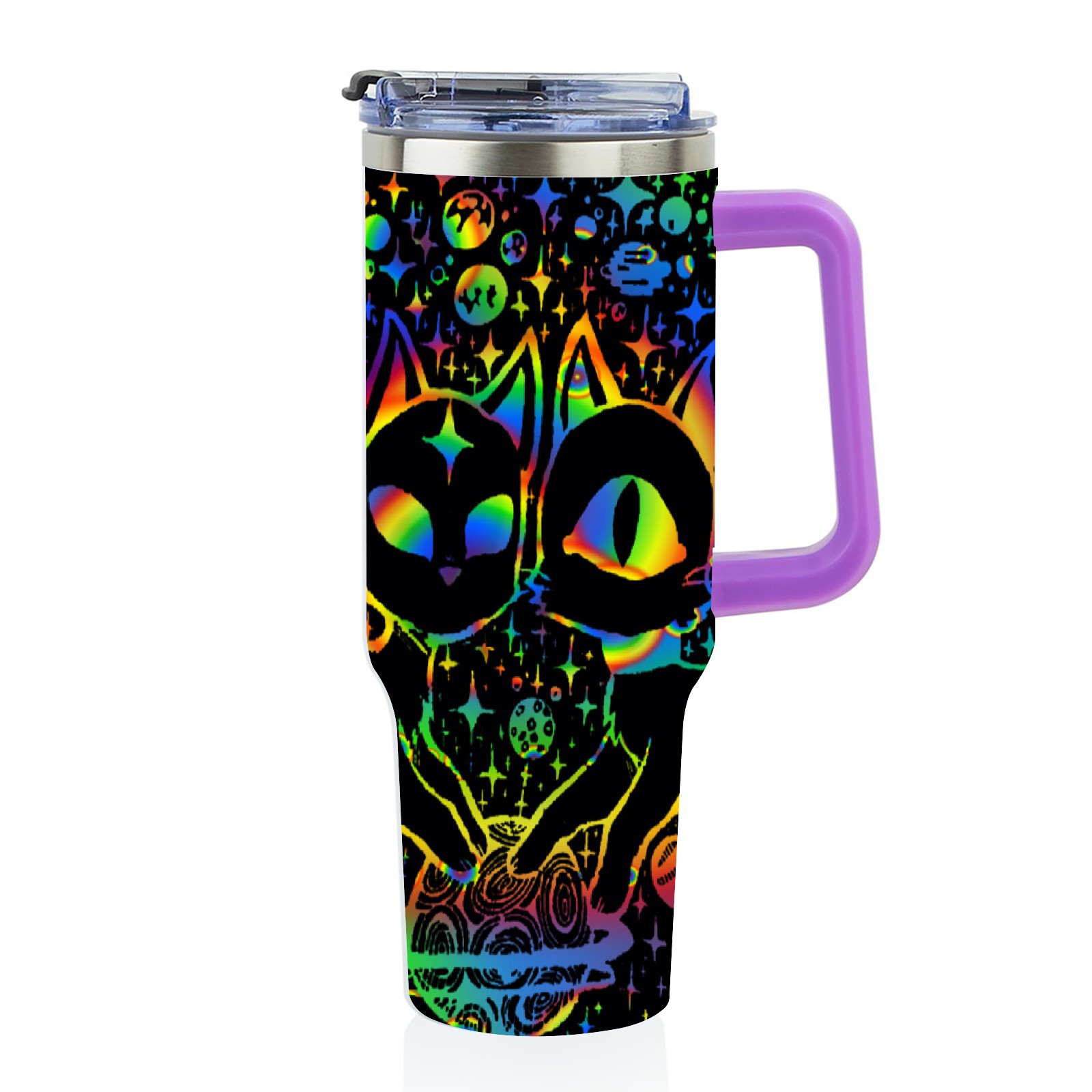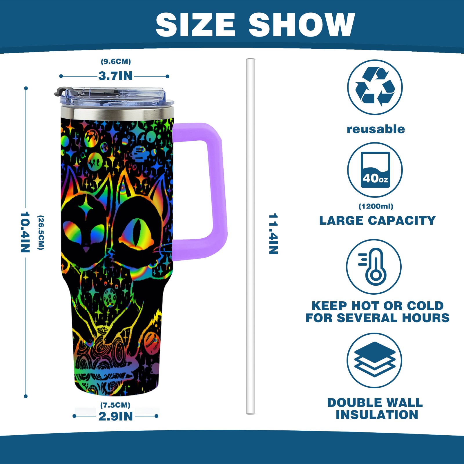 40oz 猫咪3 thermos with lid and straw, leak-proof stainless steel, with handle, spill-proof bottle, convenient for travel(purple)