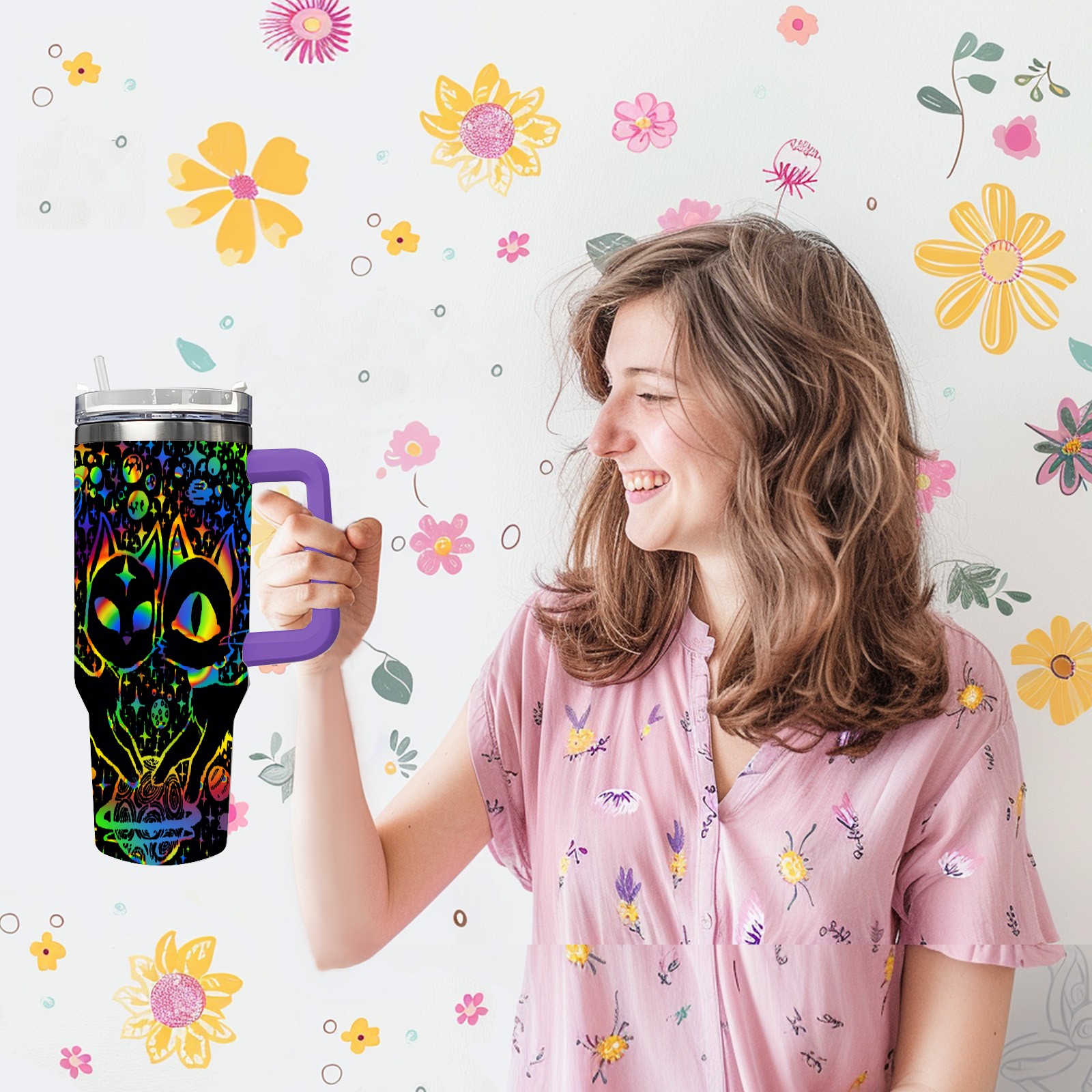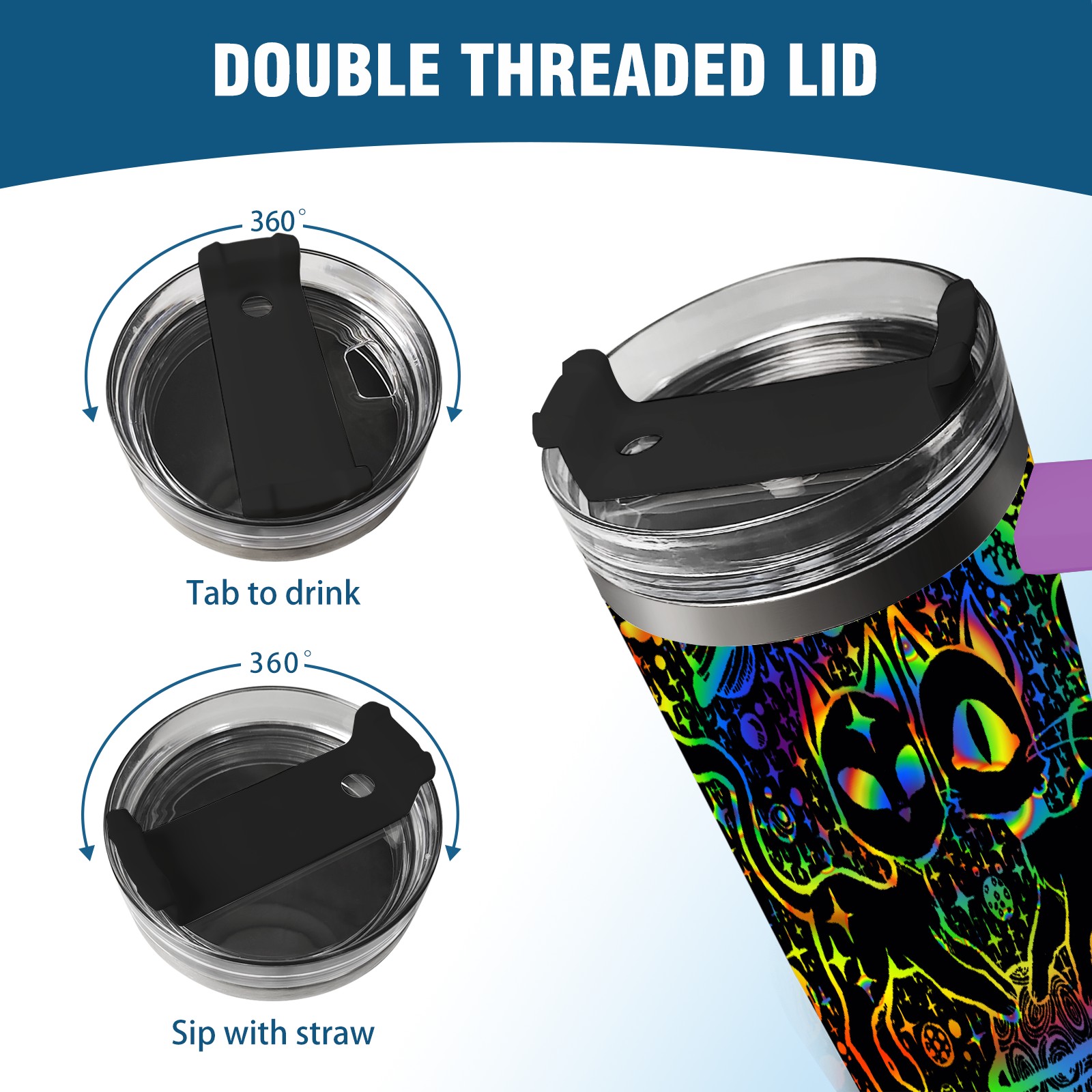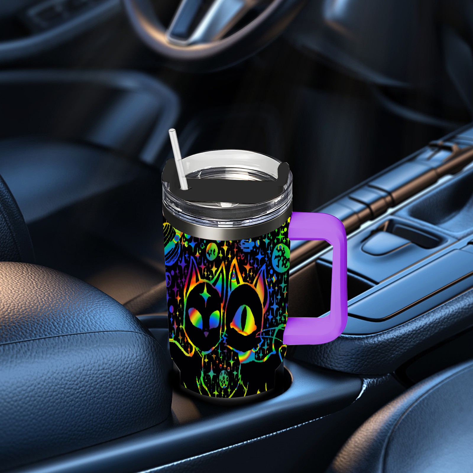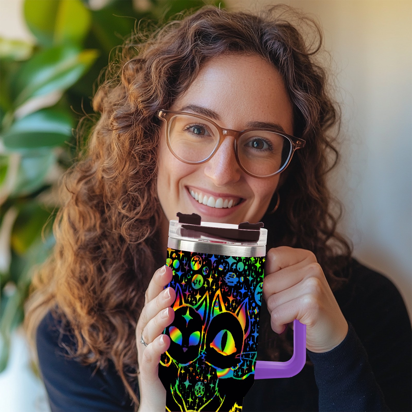 40oz 猫咪3 thermos with lid and straw, leak-proof stainless steel, with handle, spill-proof bottle, convenient for travel(purple)