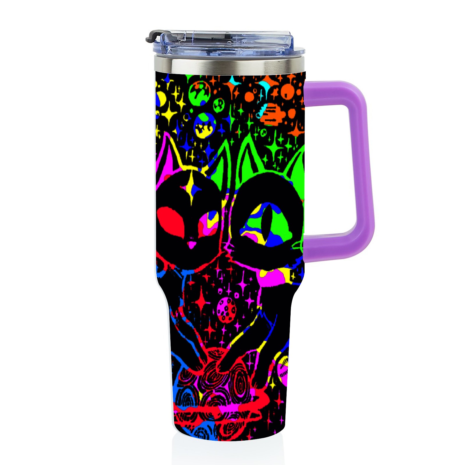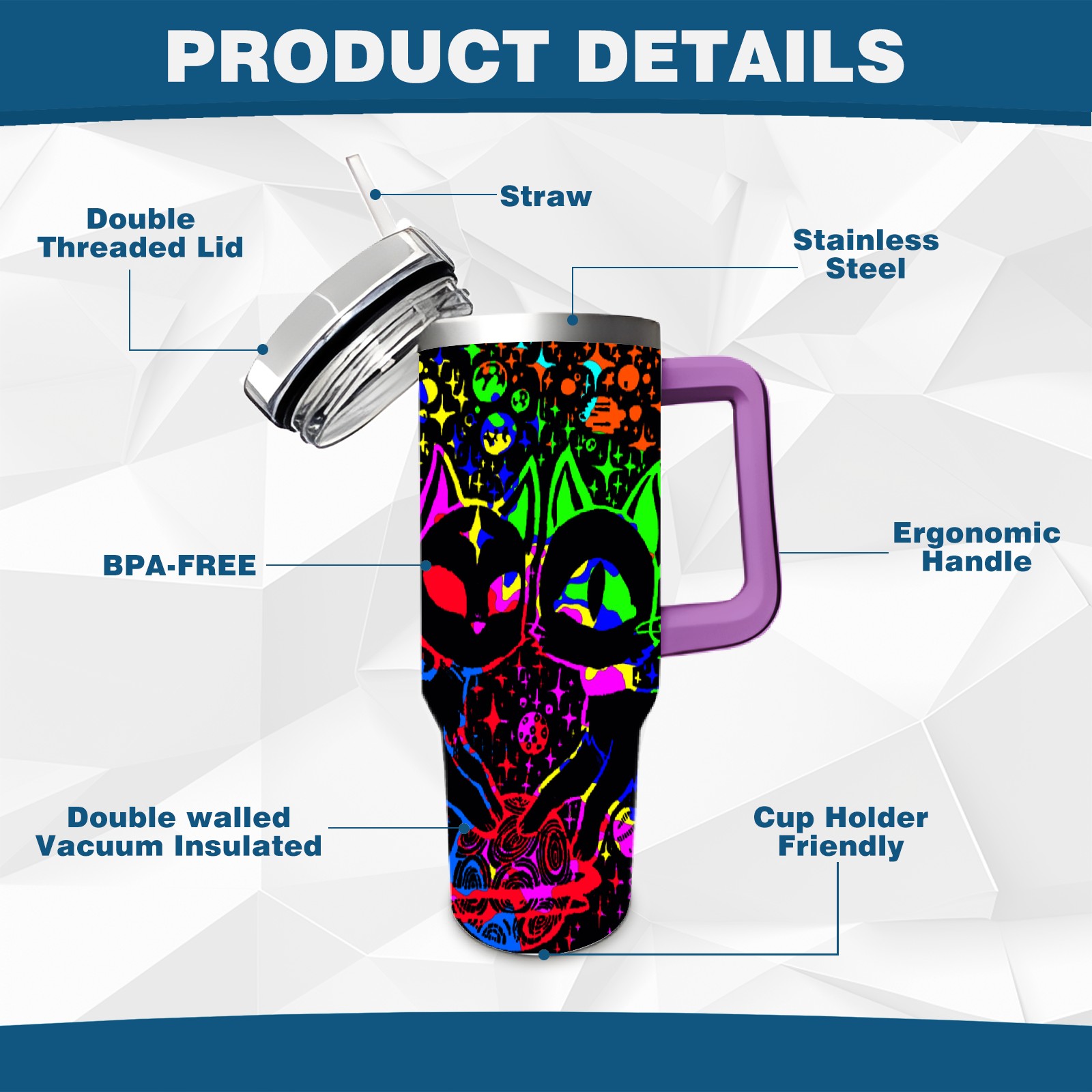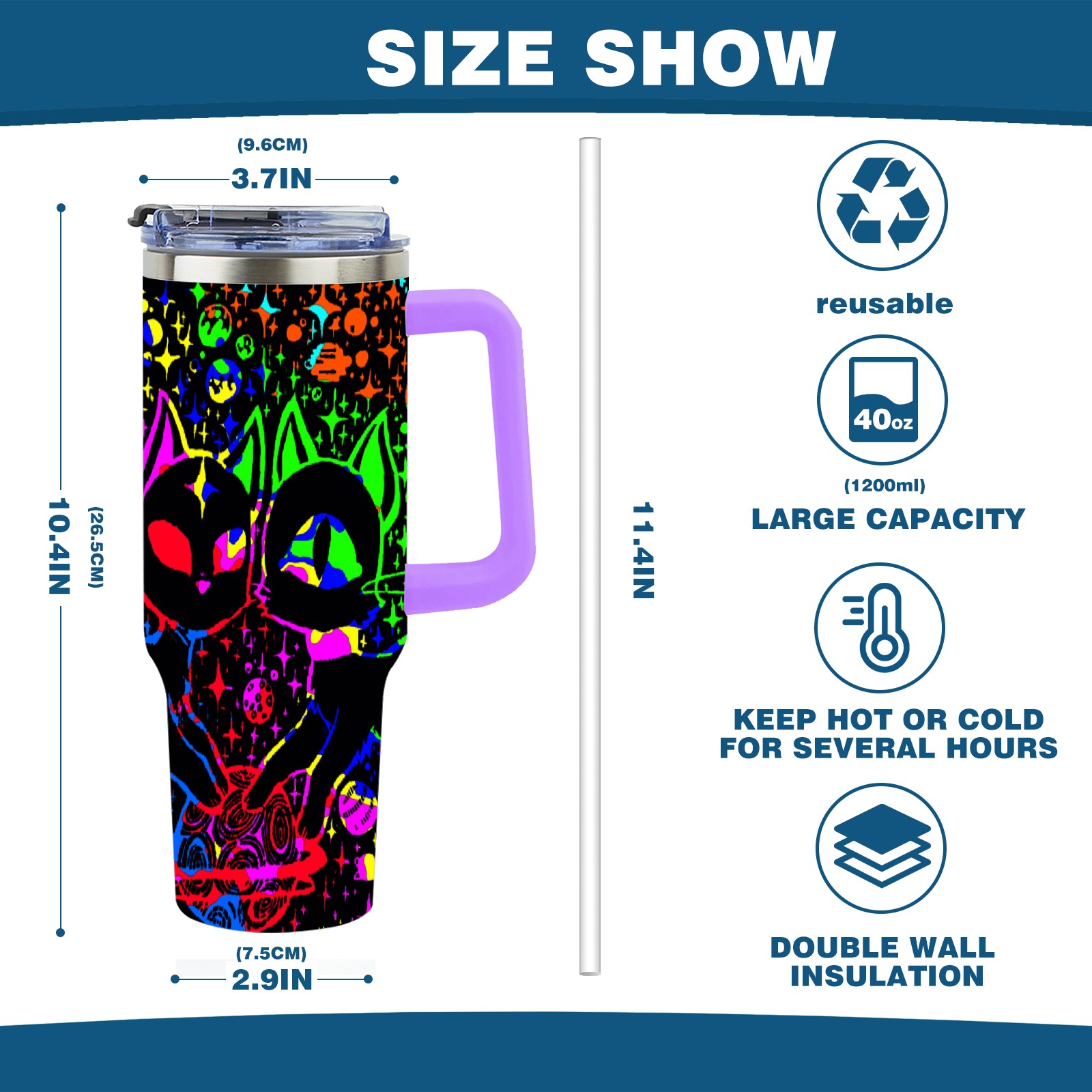 40oz 猫咪2 thermos with lid and straw, leak-proof stainless steel, with handle, spill-proof bottle, convenient for travel(purple)
