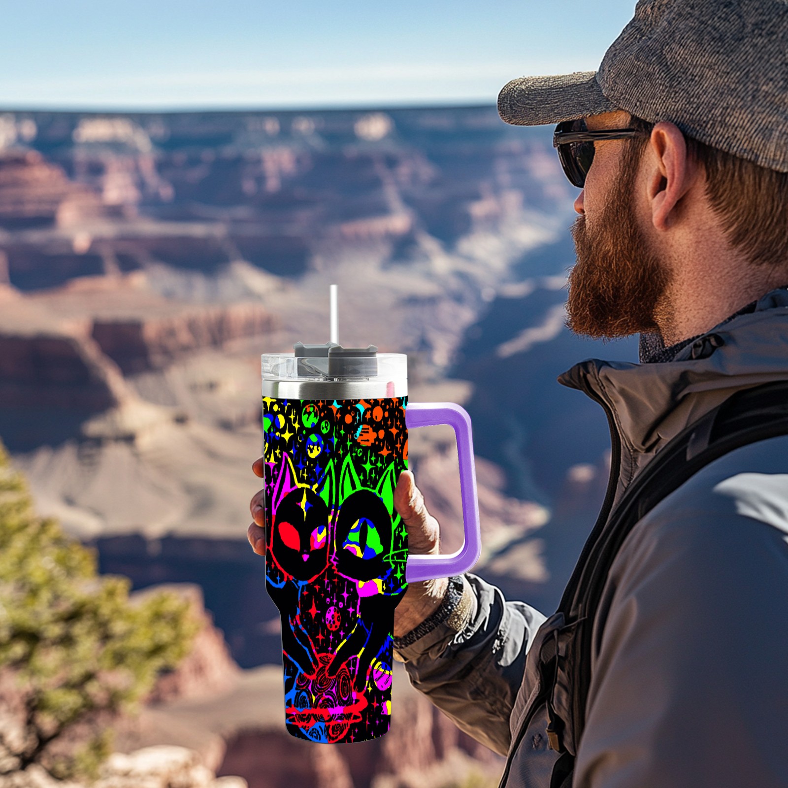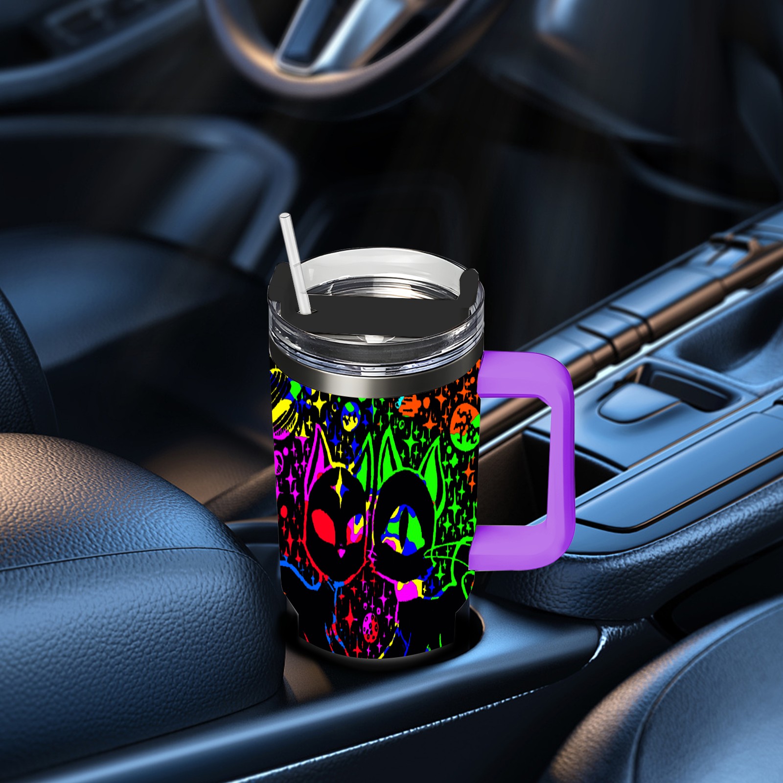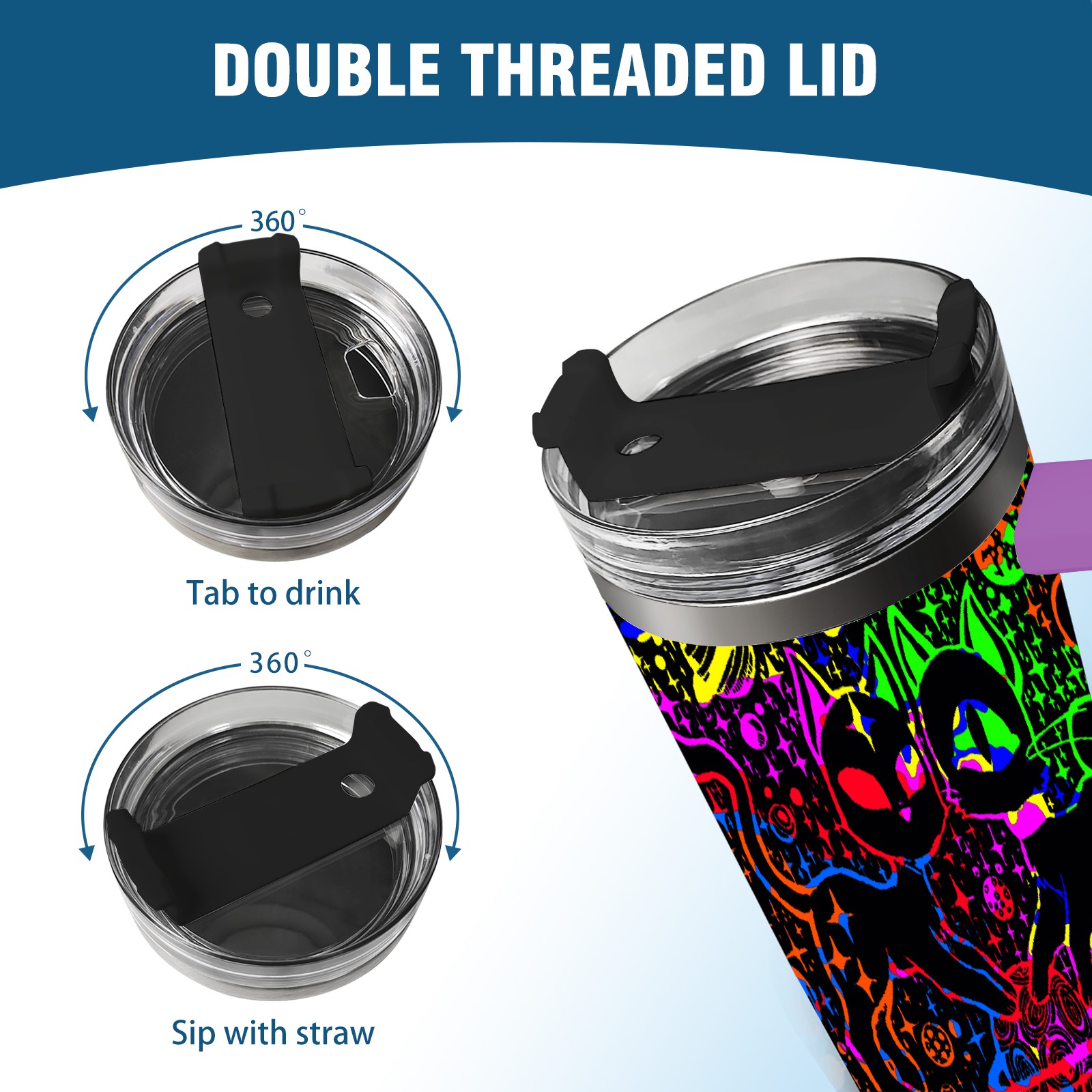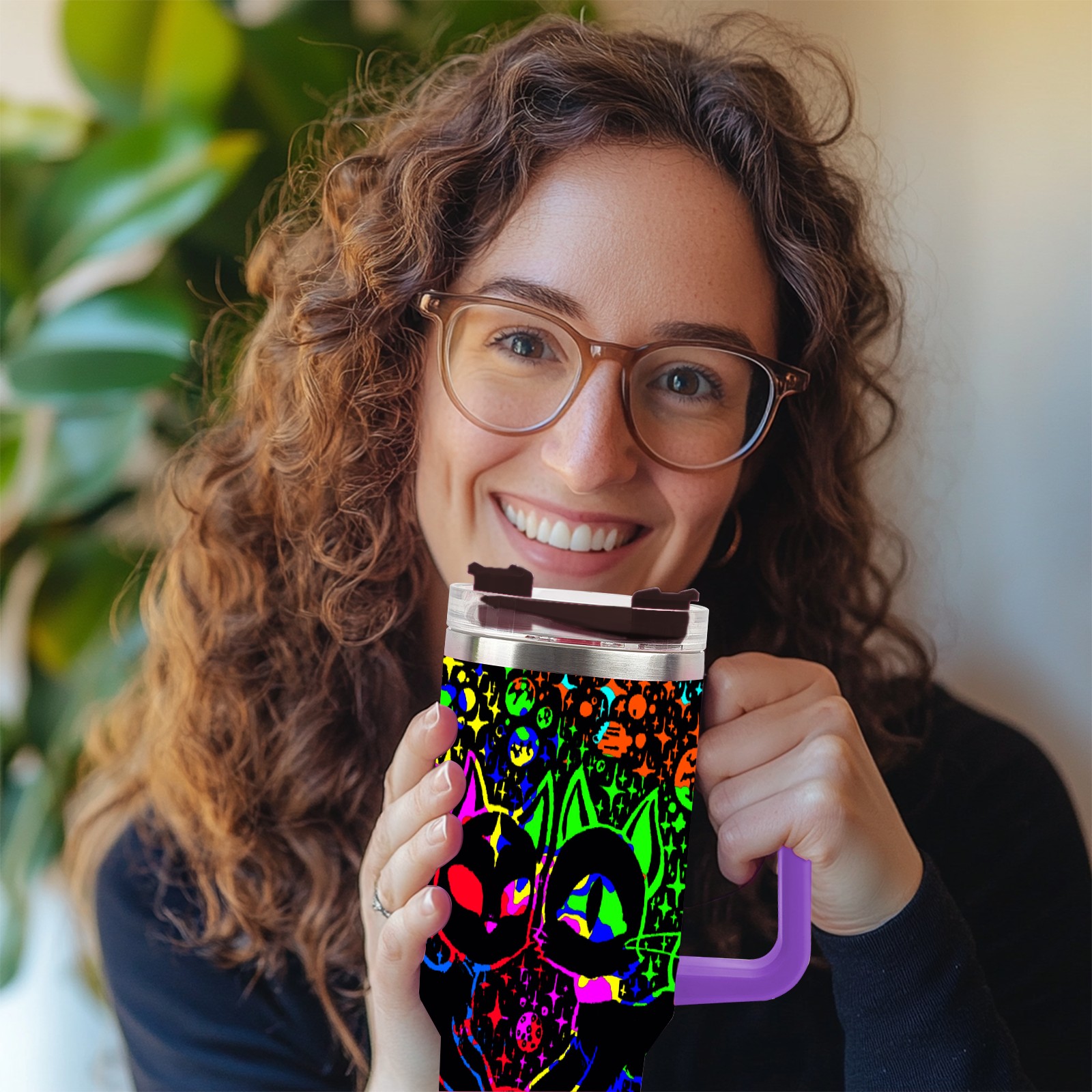 40oz 猫咪2 thermos with lid and straw, leak-proof stainless steel, with handle, spill-proof bottle, convenient for travel(purple)