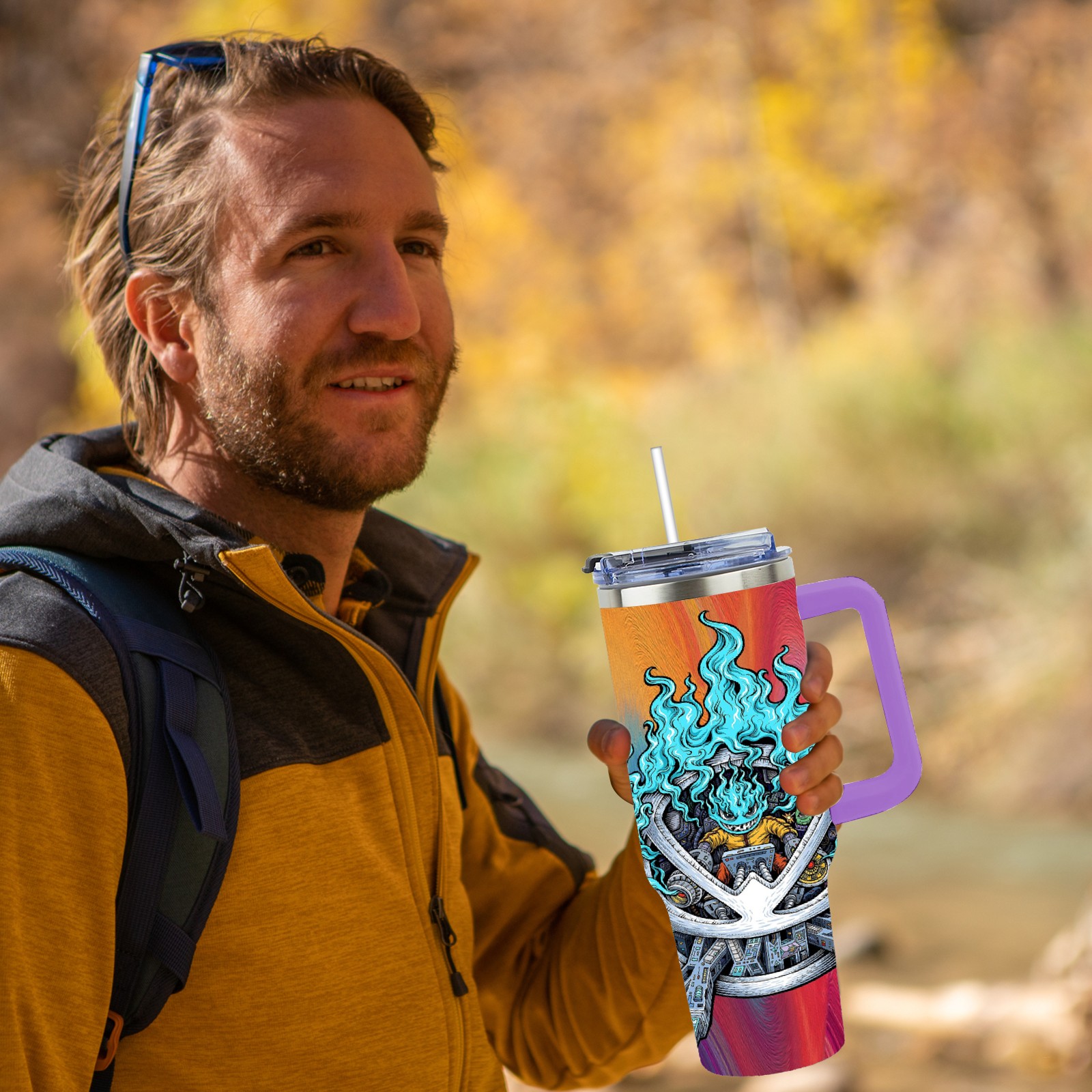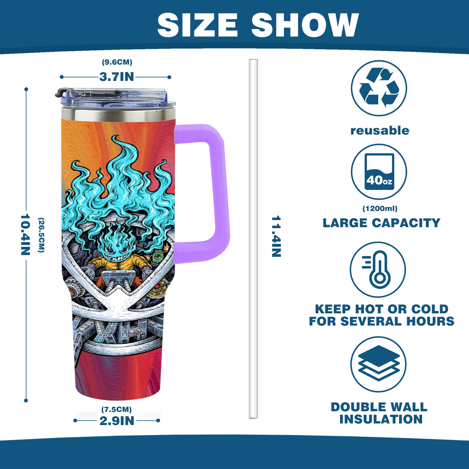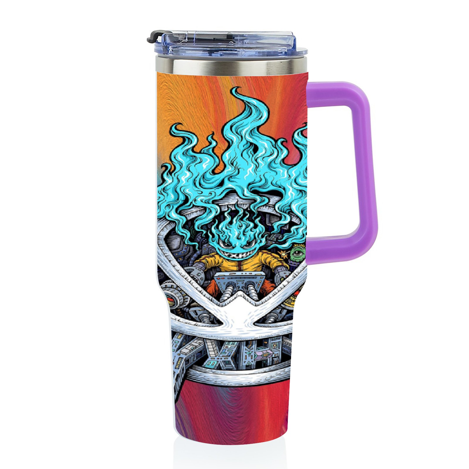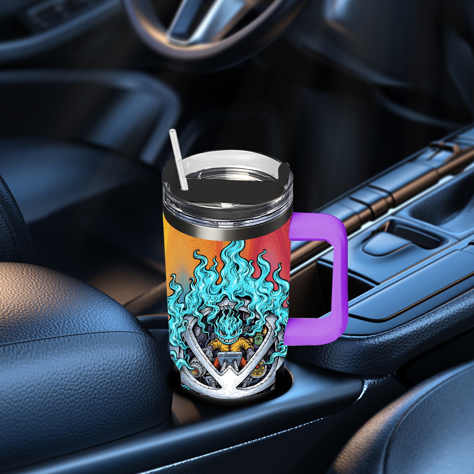 40oz 篮火幽灵2 thermos with lid and straw, leak-proof stainless steel, with handle, spill-proof bottle, convenient for travel(purple)
