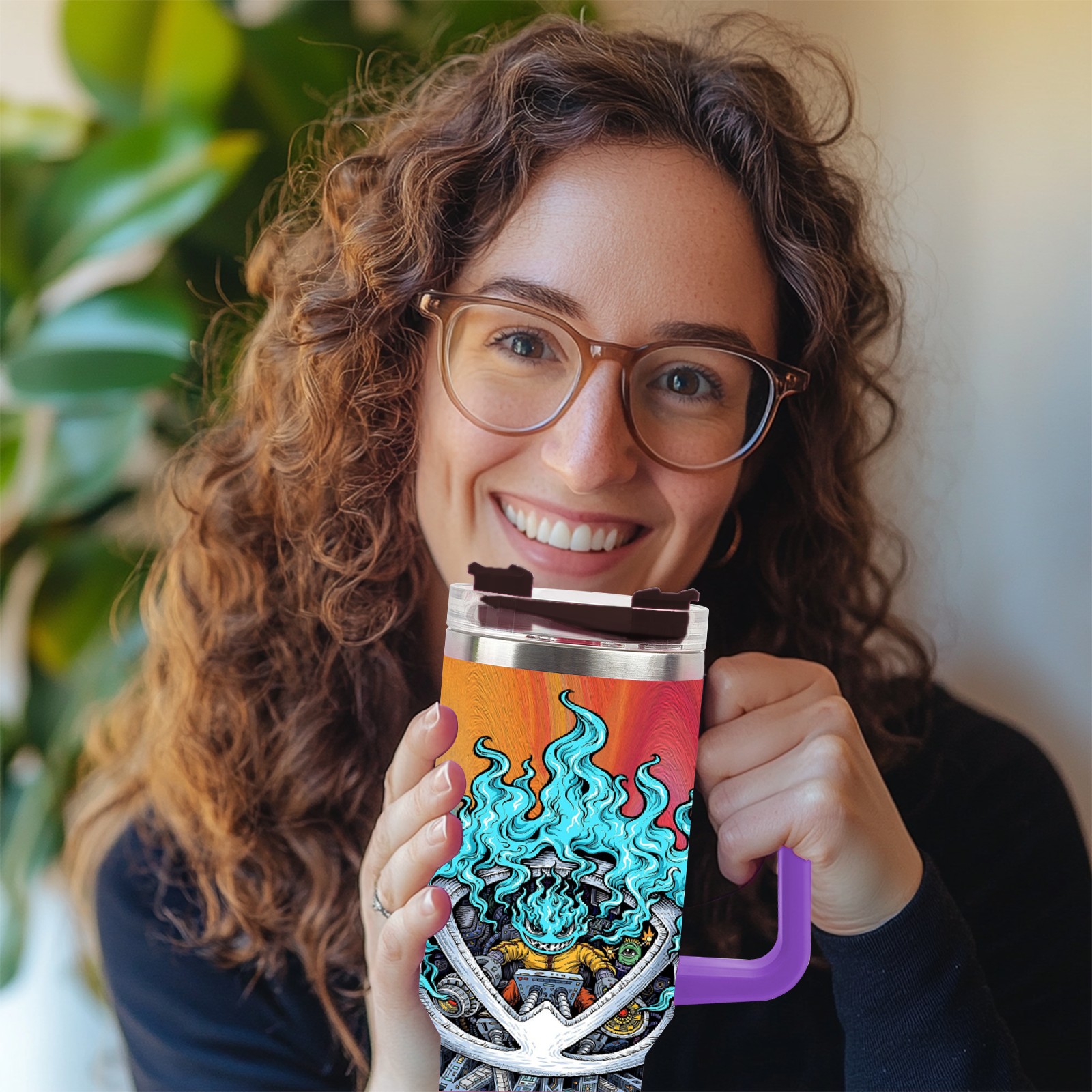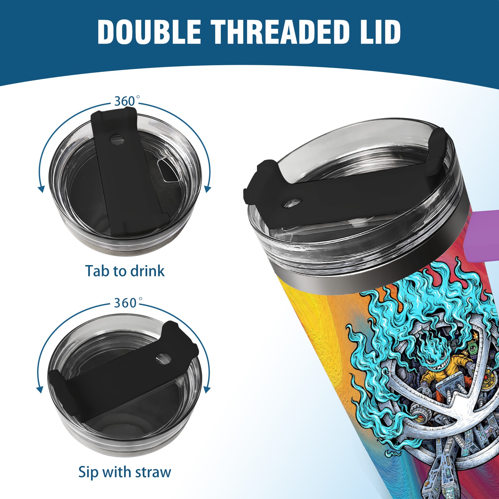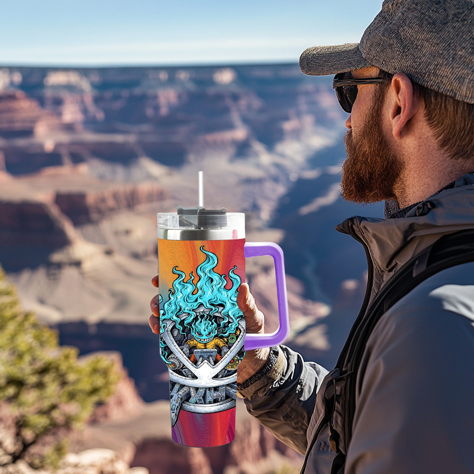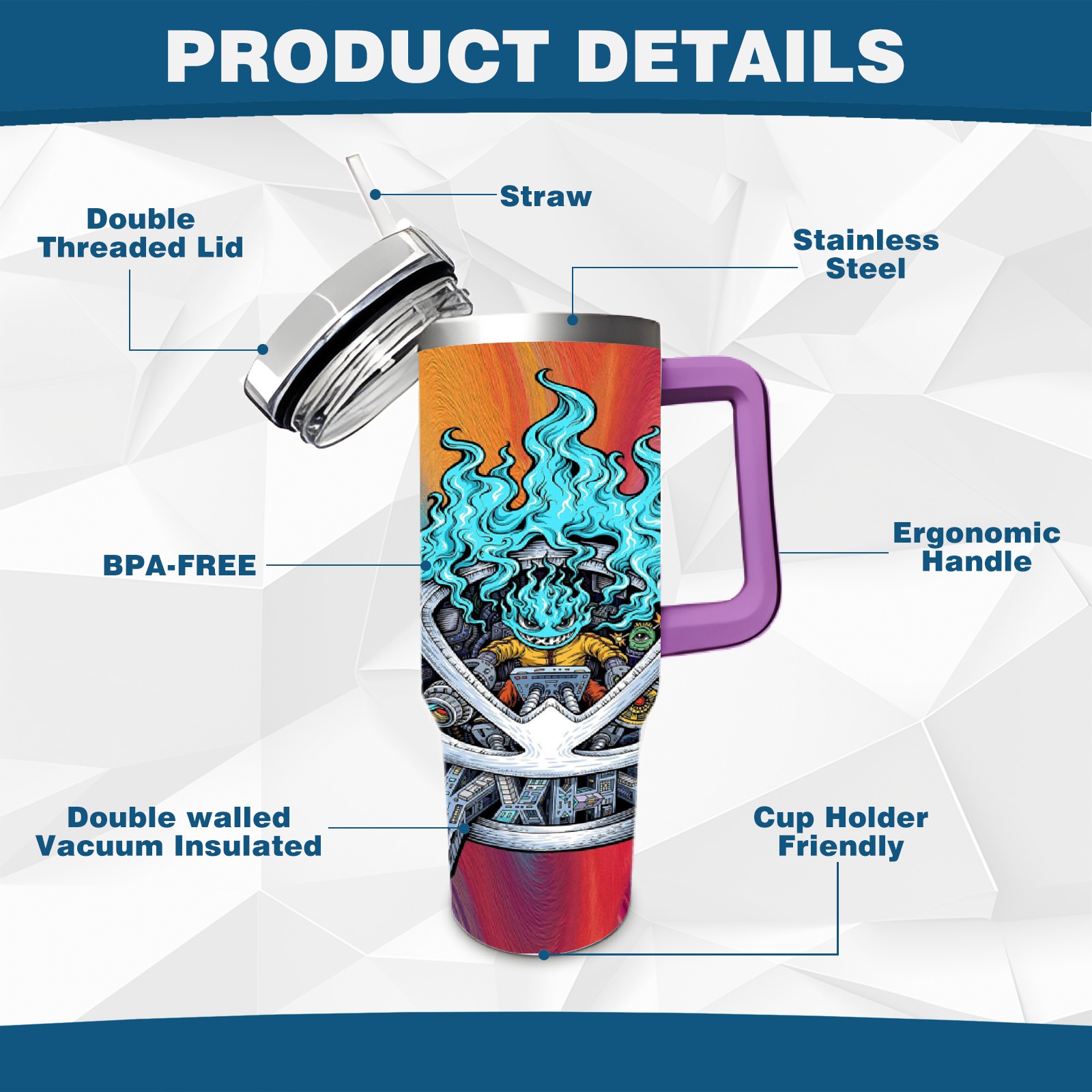 40oz 篮火幽灵2 thermos with lid and straw, leak-proof stainless steel, with handle, spill-proof bottle, convenient for travel(purple)