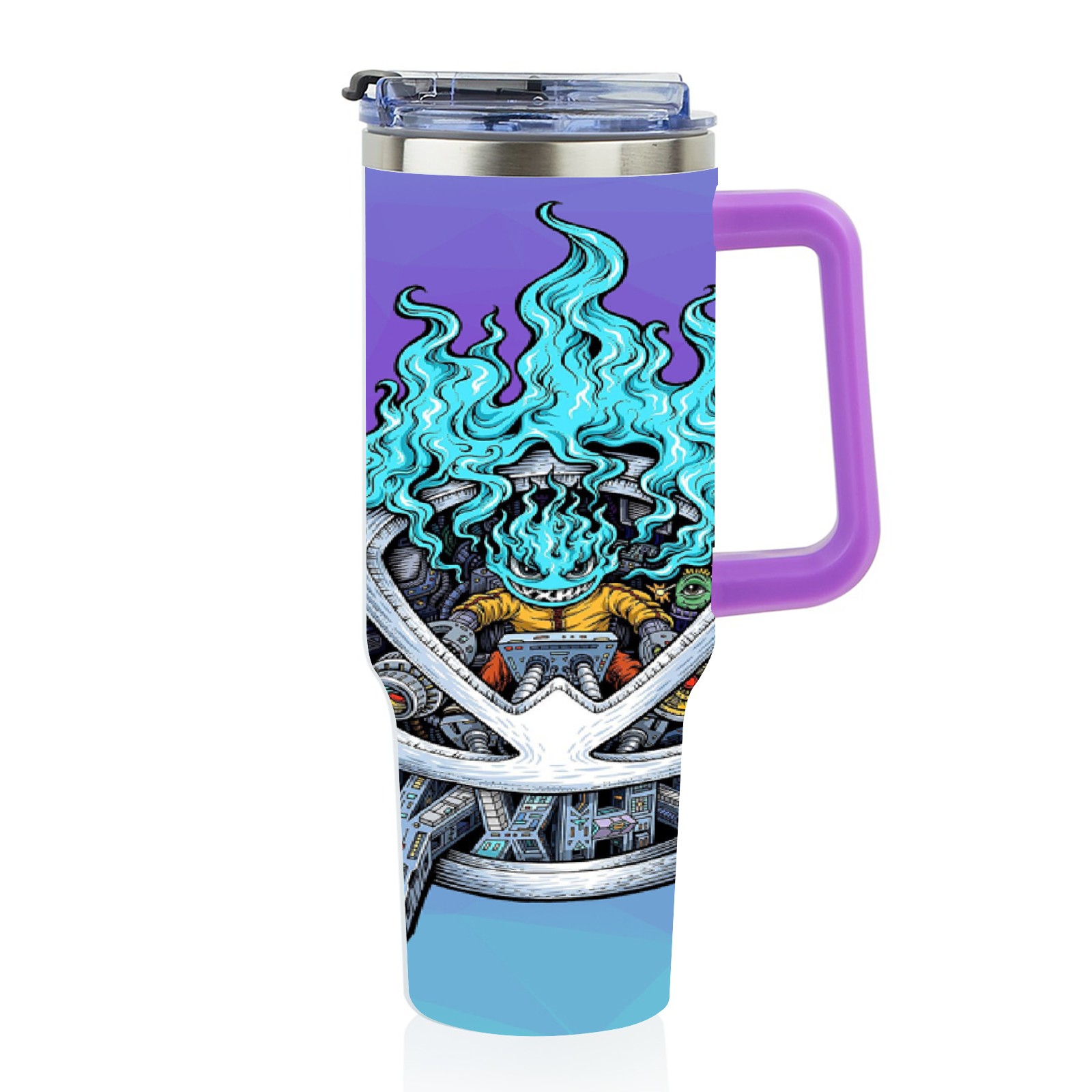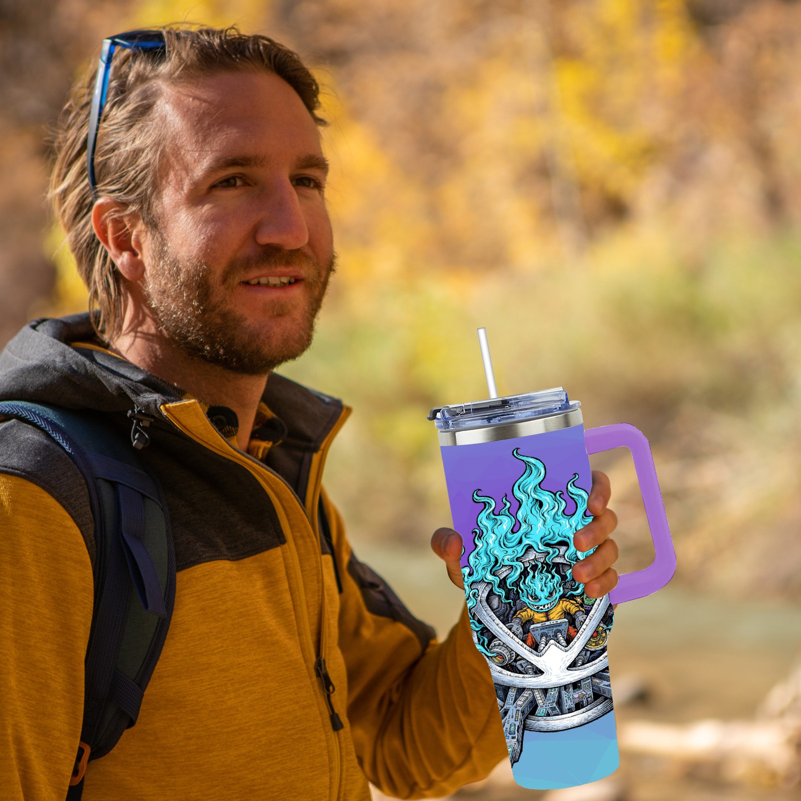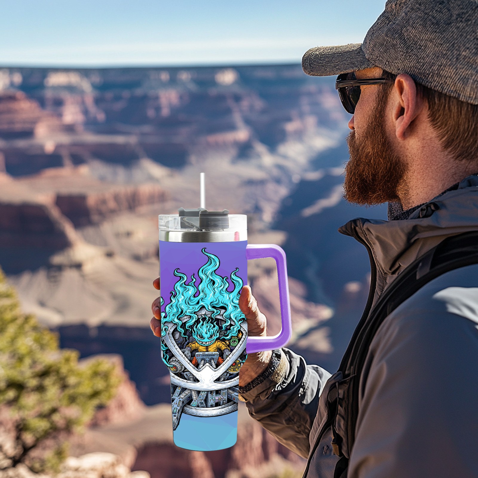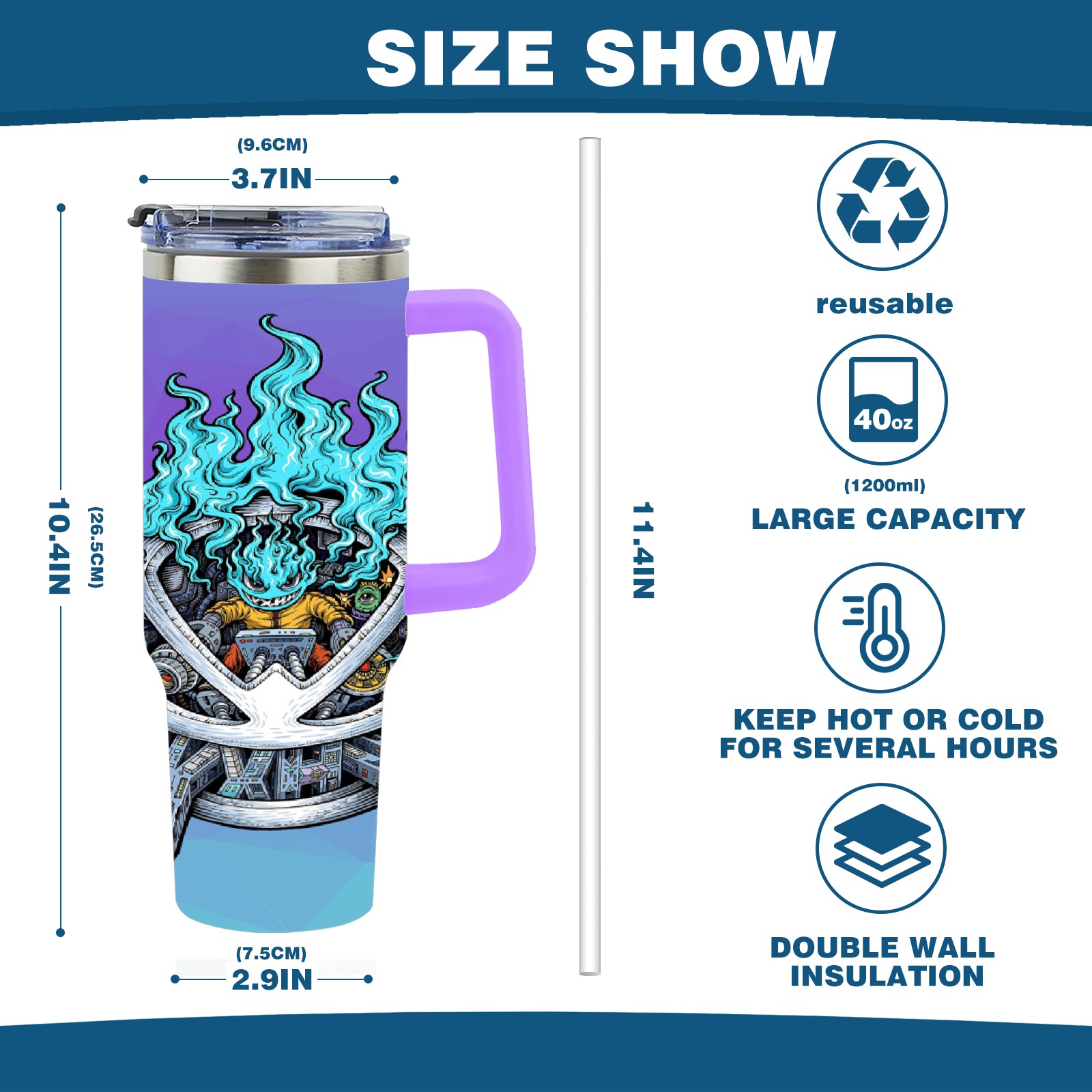 40oz 篮火幽灵1 thermos with lid and straw, leak-proof stainless steel, with handle, spill-proof bottle, convenient for travel(purple)