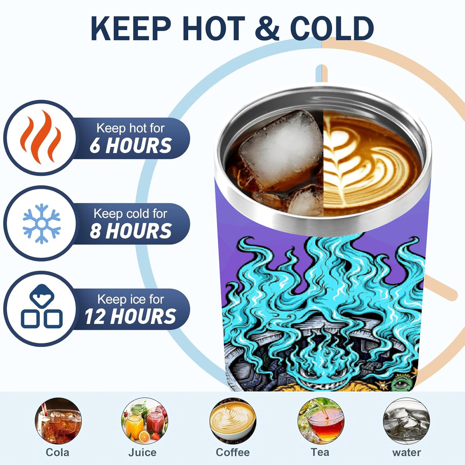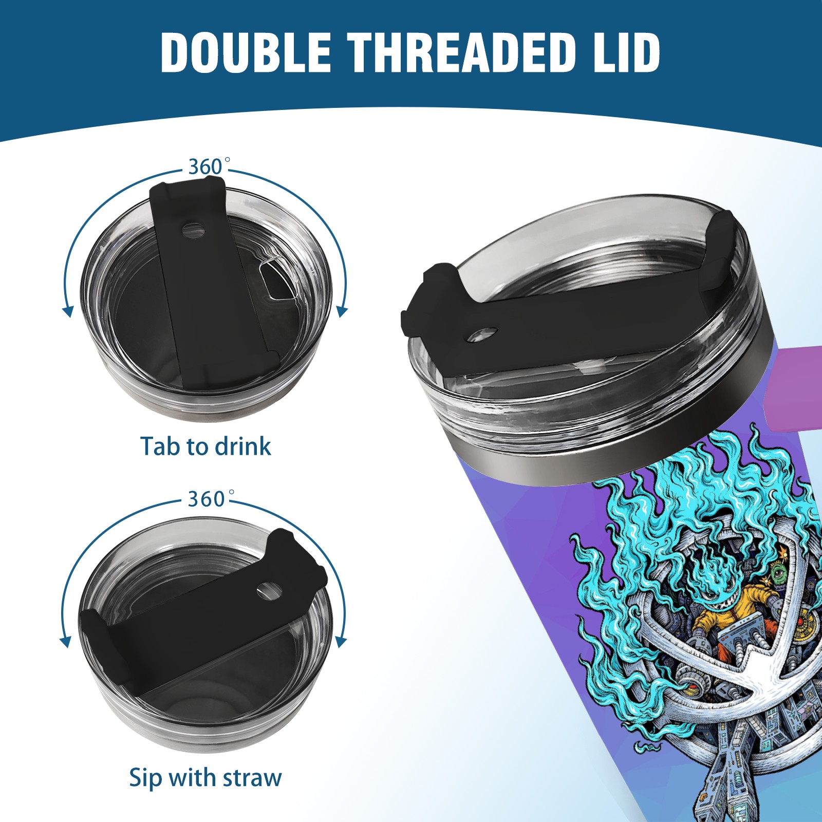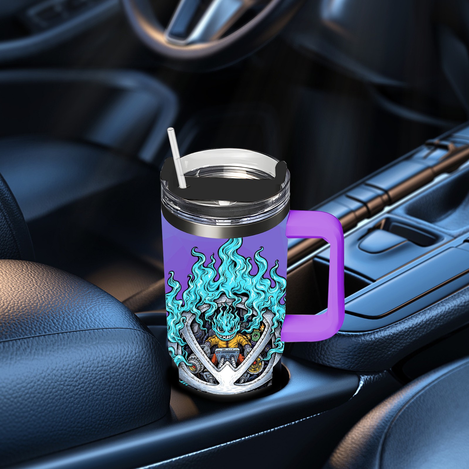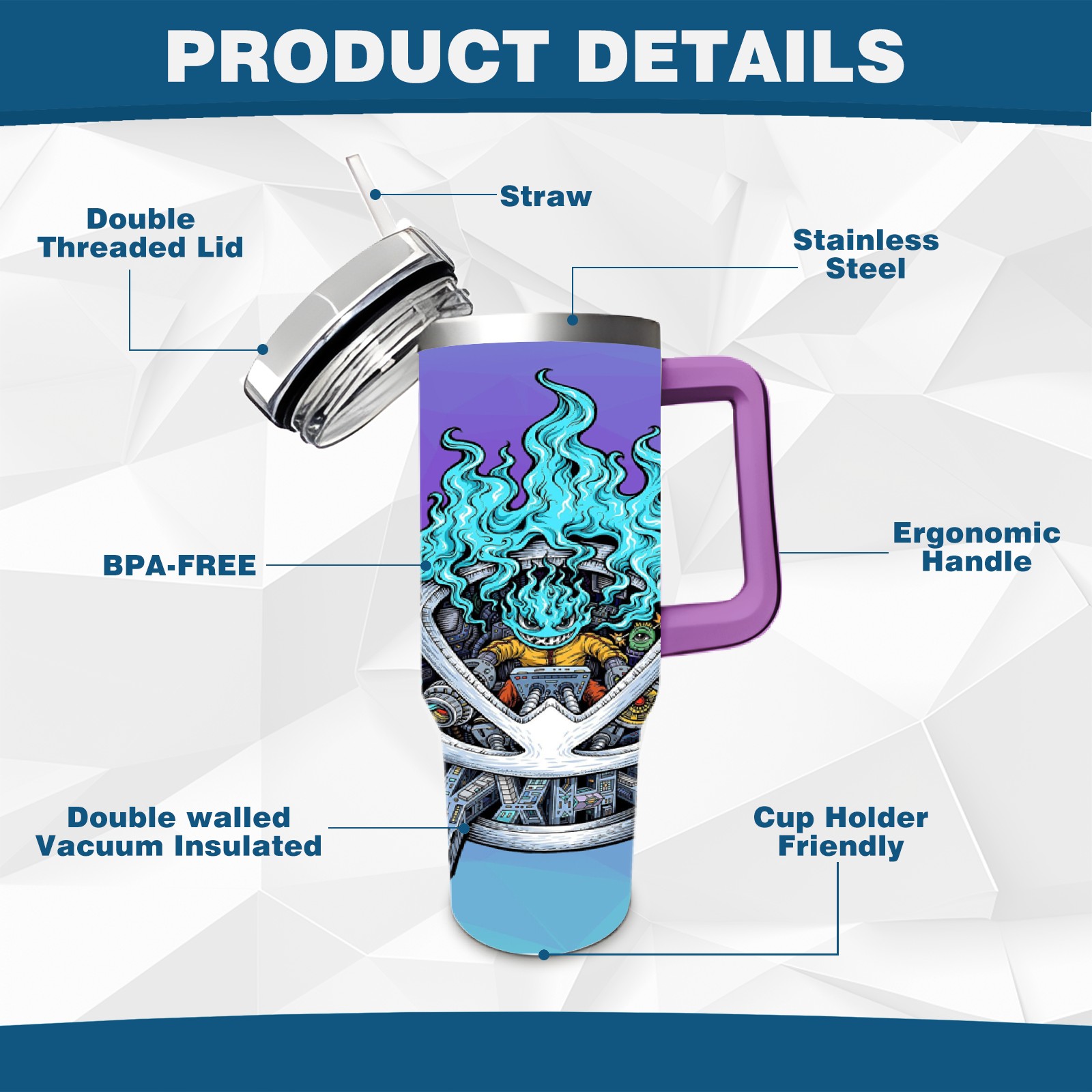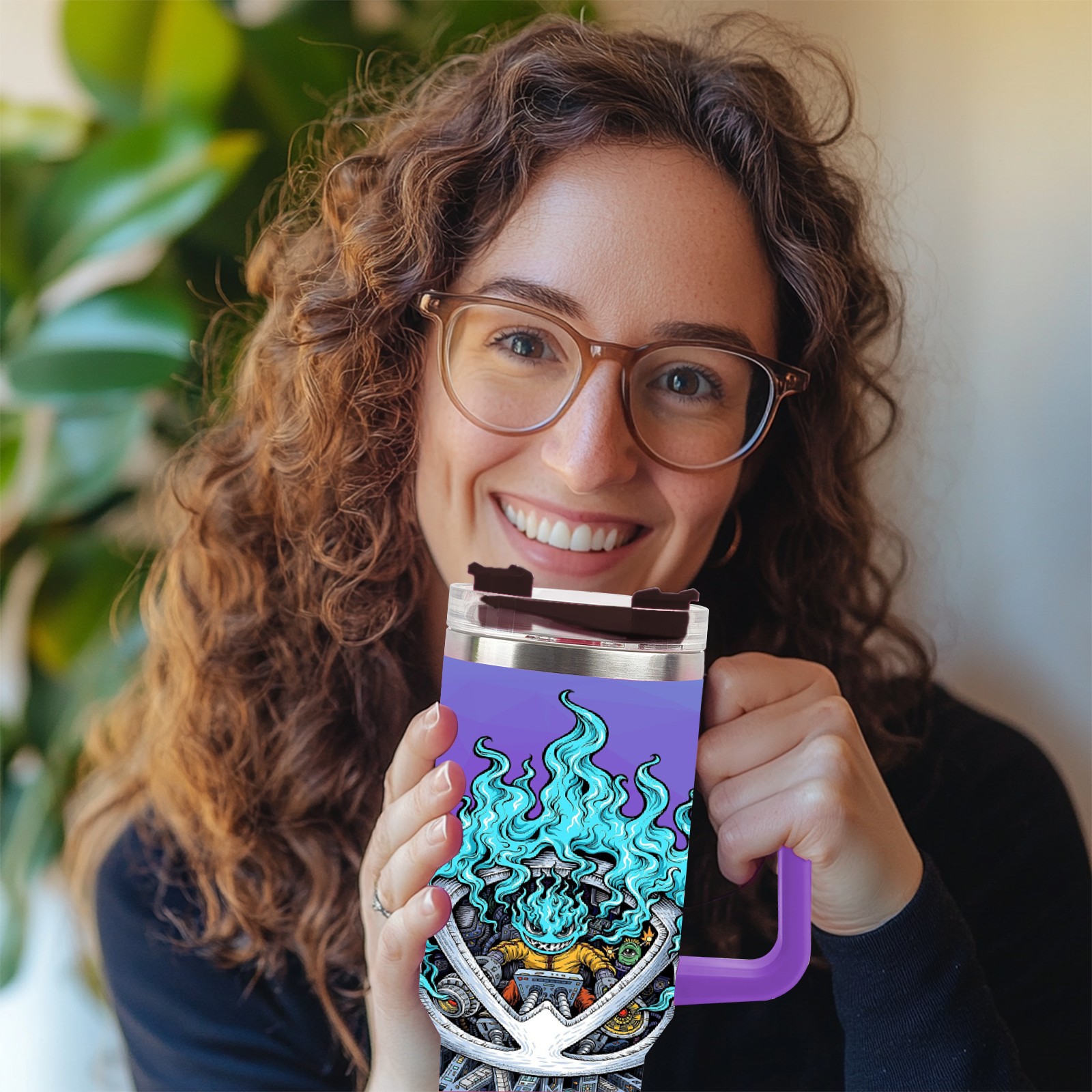 40oz 篮火幽灵1 thermos with lid and straw, leak-proof stainless steel, with handle, spill-proof bottle, convenient for travel(purple)