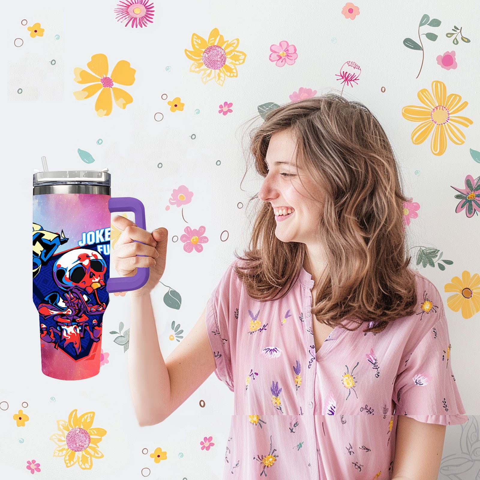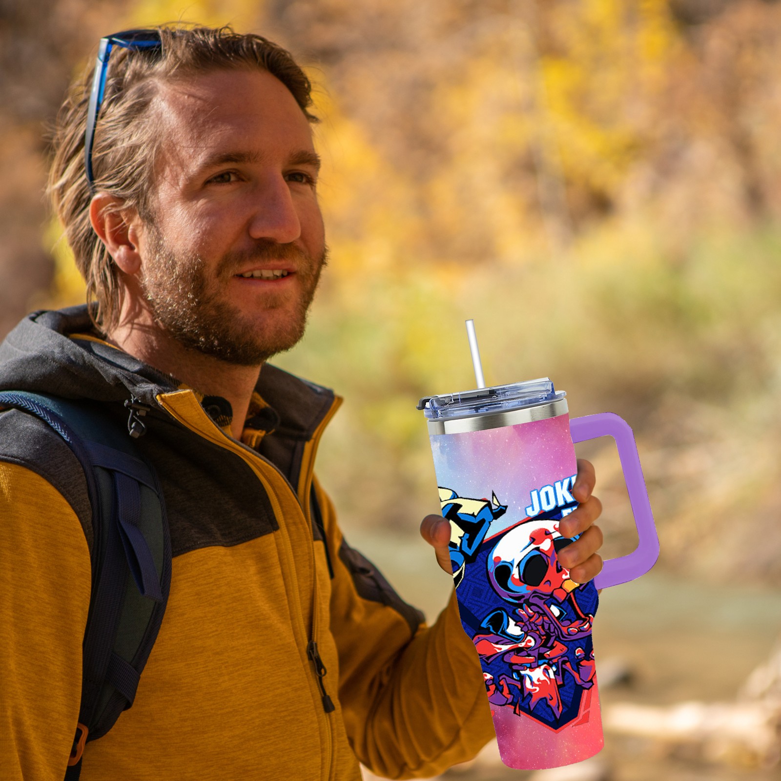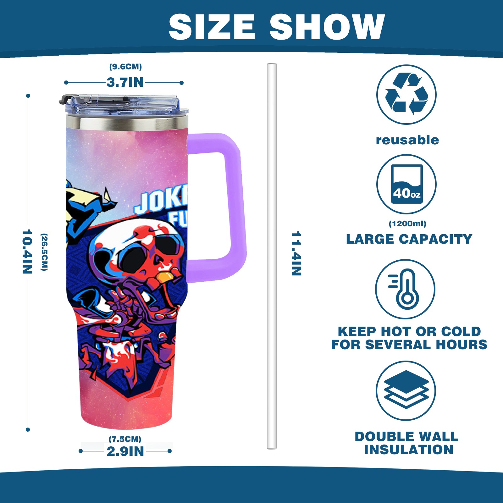 40oz 骷髅5 thermos with lid and straw, leak-proof stainless steel, with handle, spill-proof bottle, convenient for travel(purple)