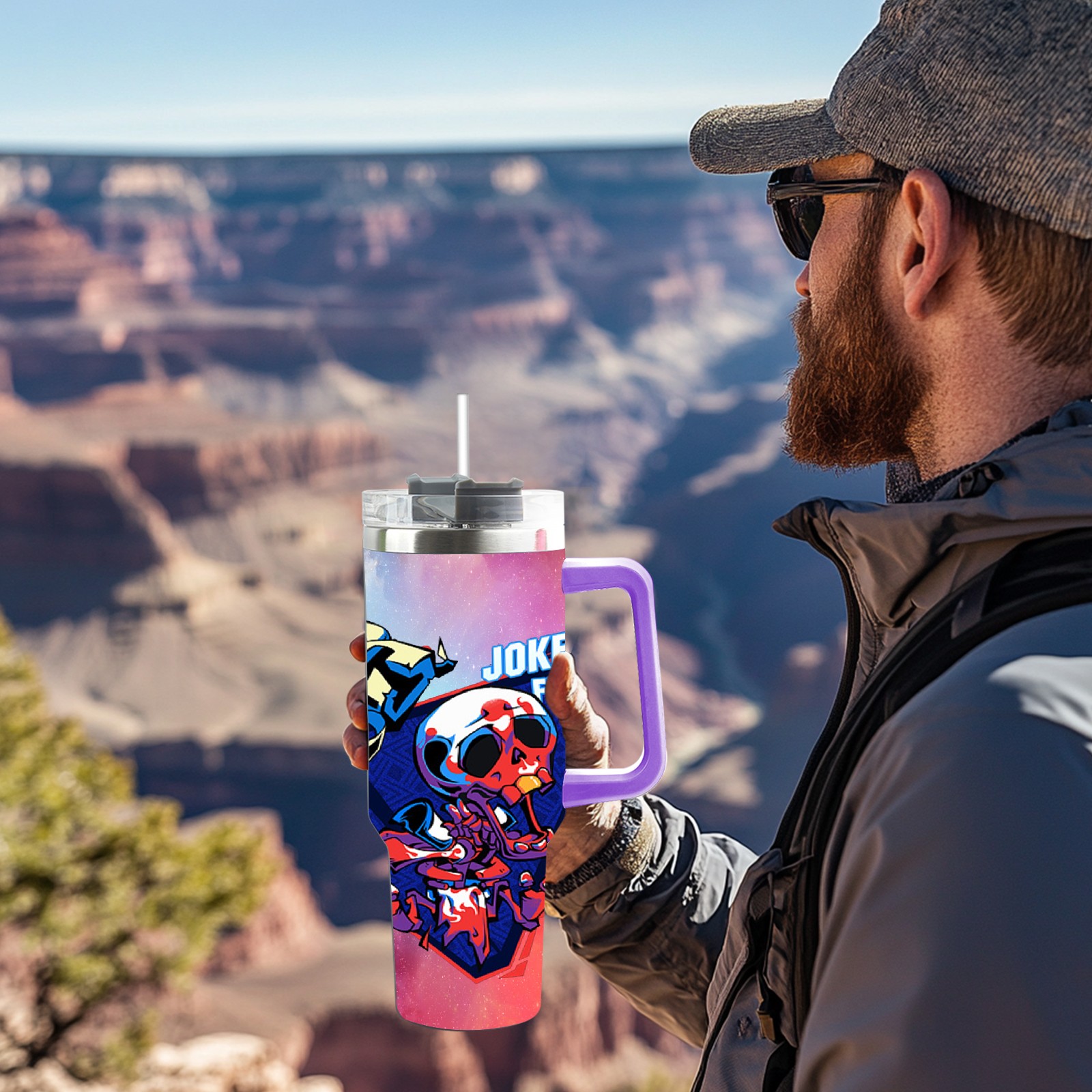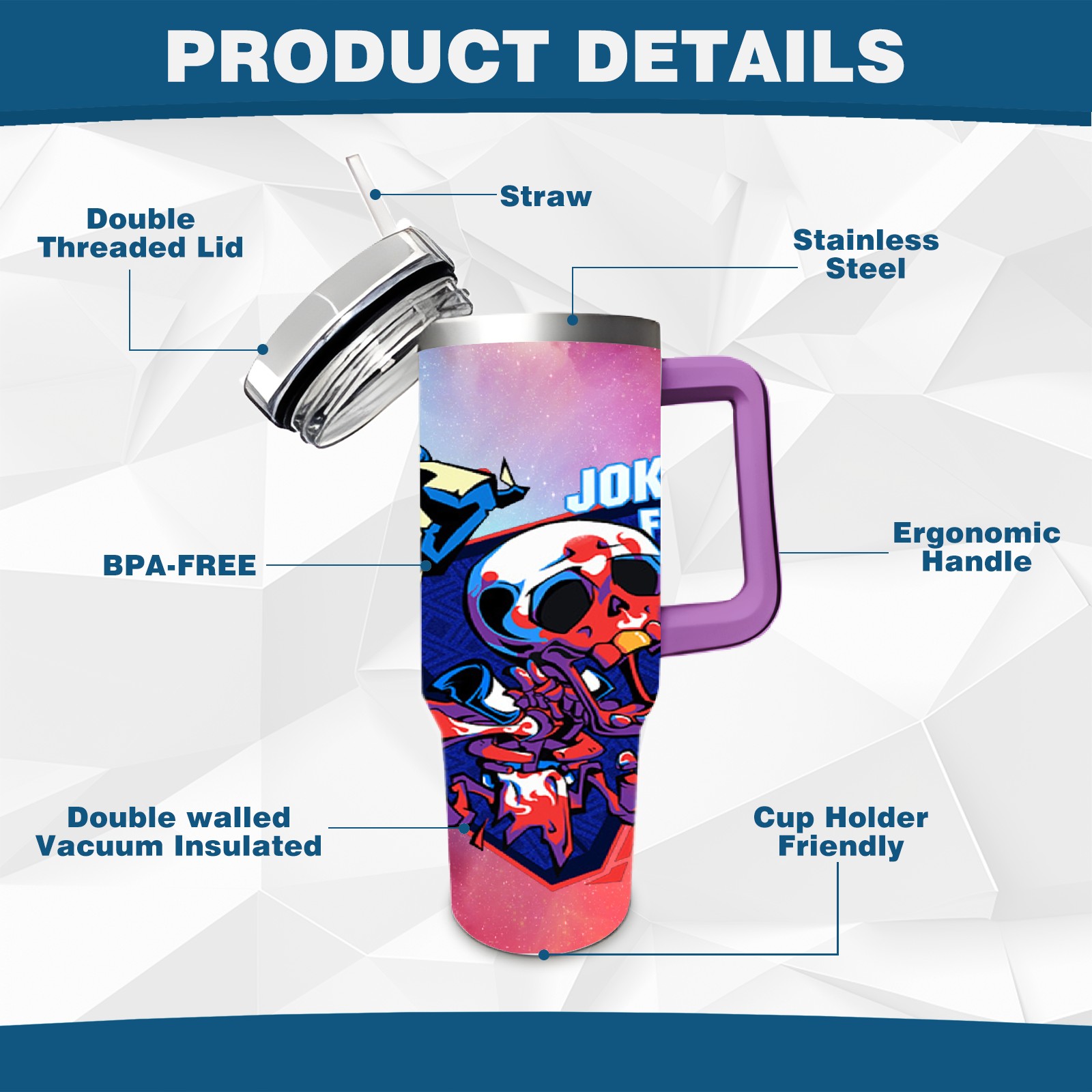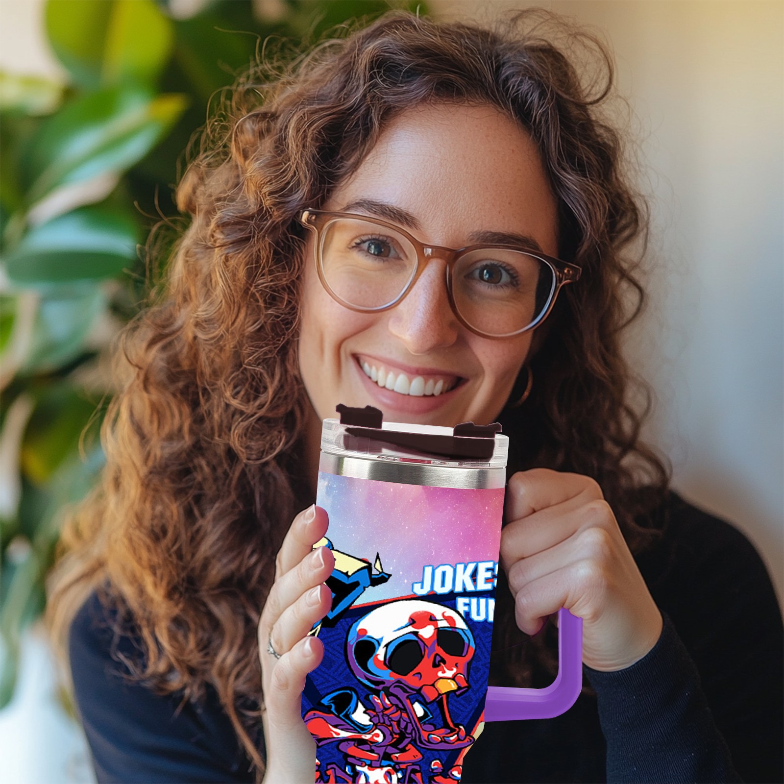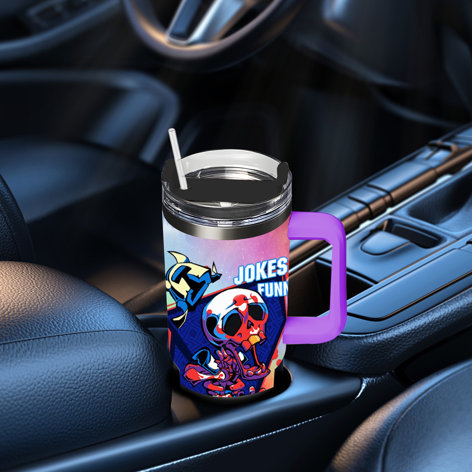 40oz 骷髅5 thermos with lid and straw, leak-proof stainless steel, with handle, spill-proof bottle, convenient for travel(purple)