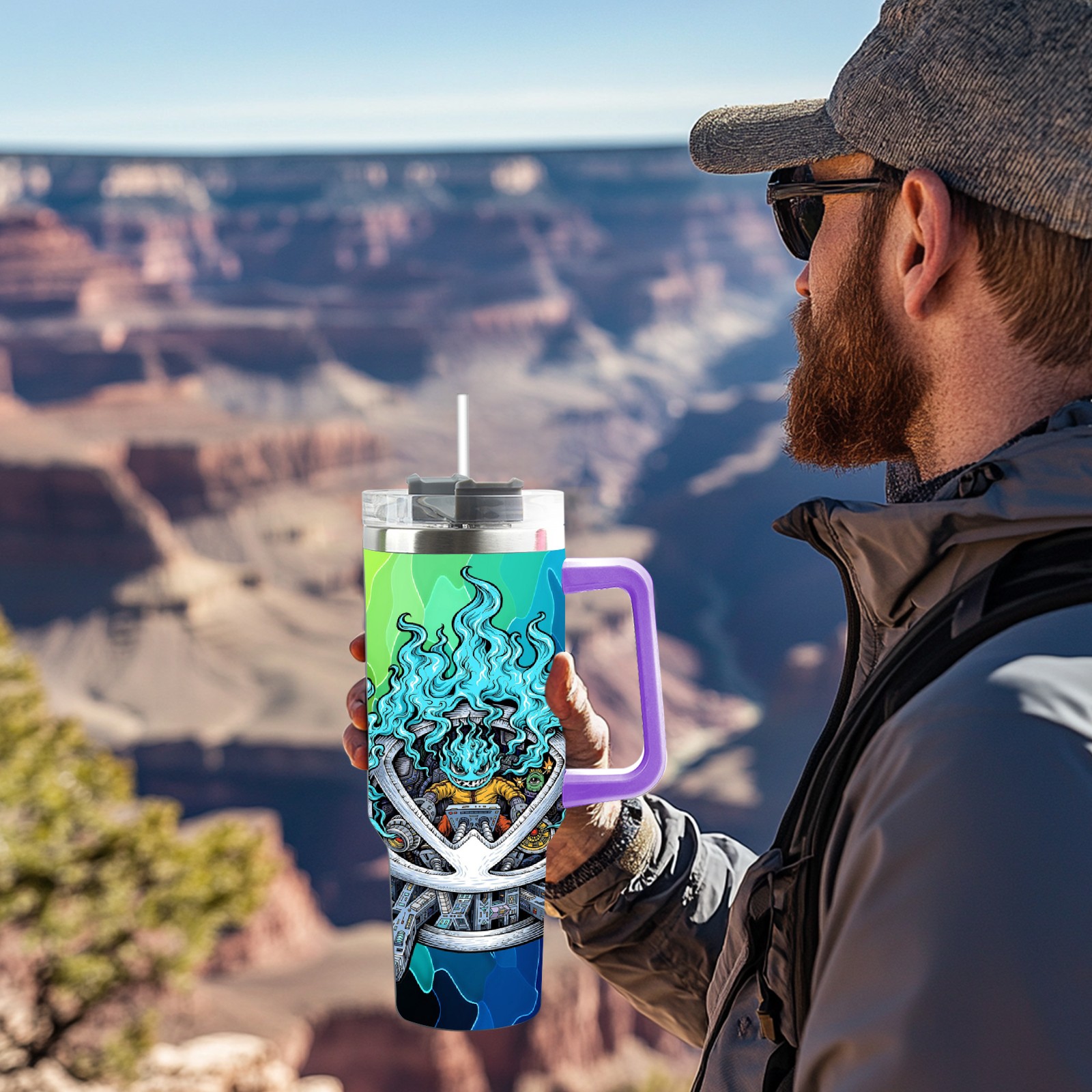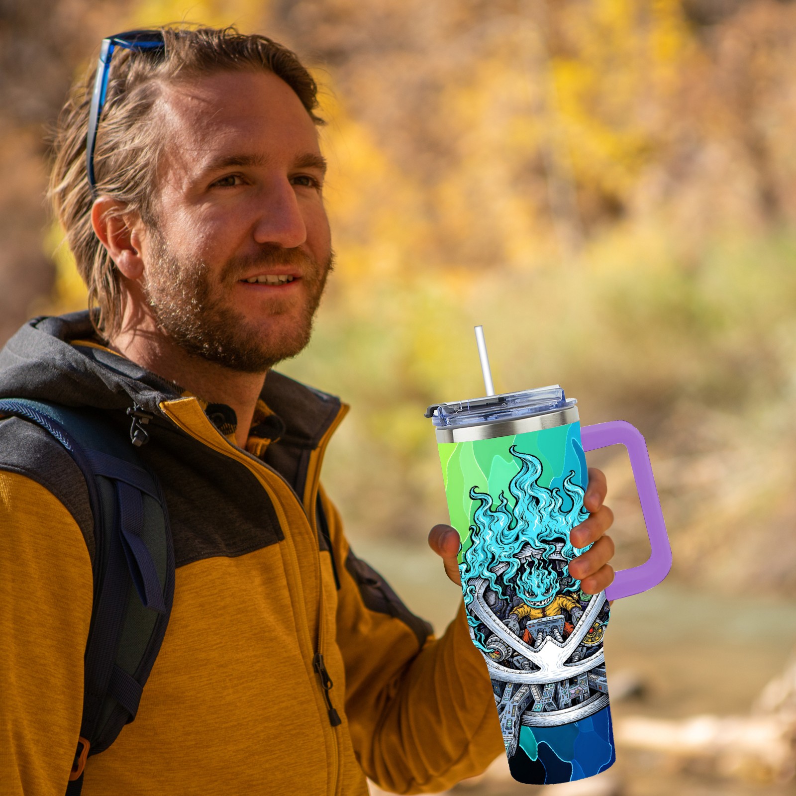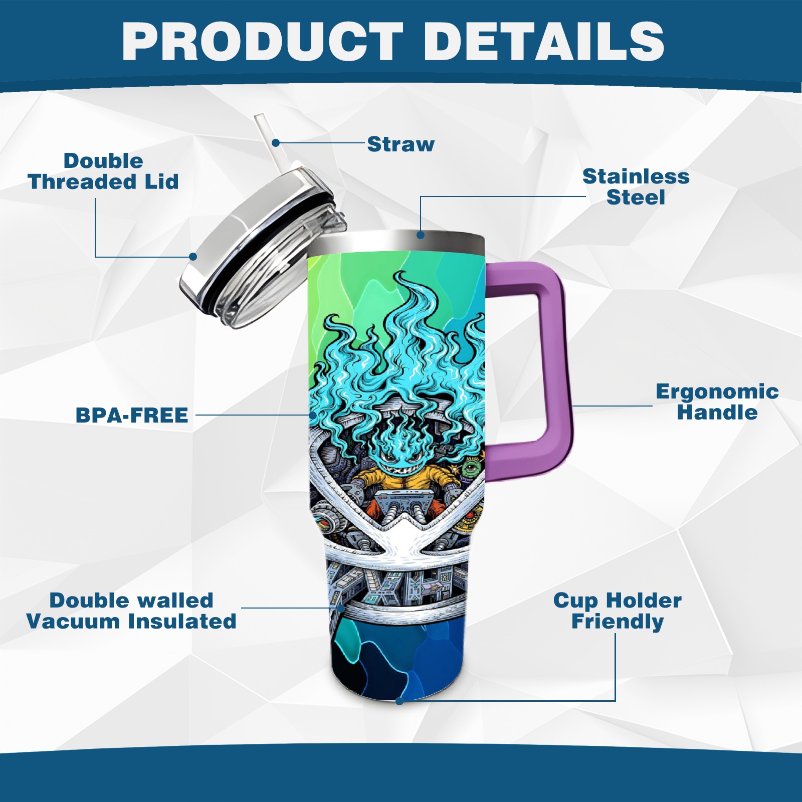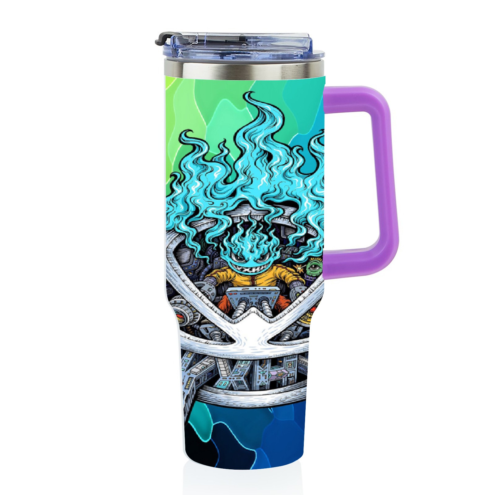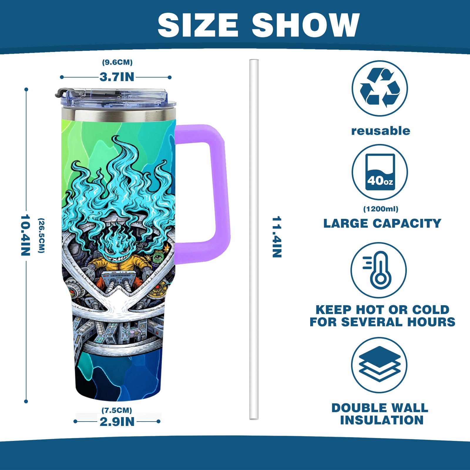 40oz 篮火幽灵 thermos with lid and straw, leak-proof stainless steel, with handle, spill-proof bottle, convenient for travel(purple)