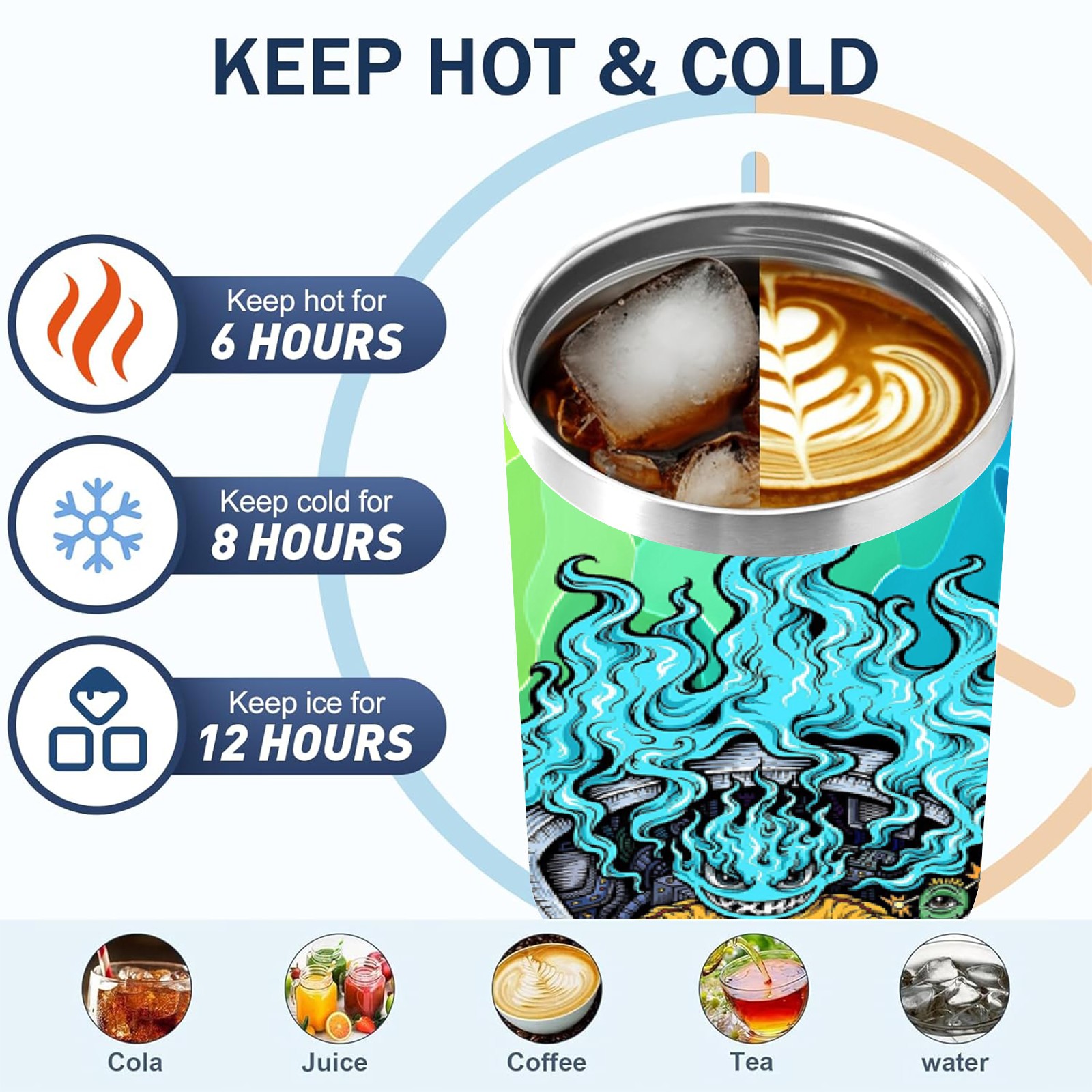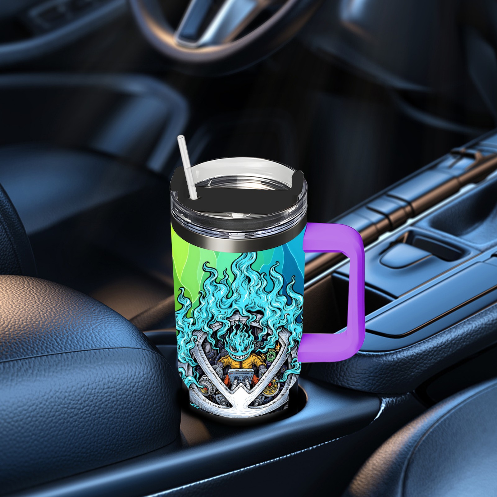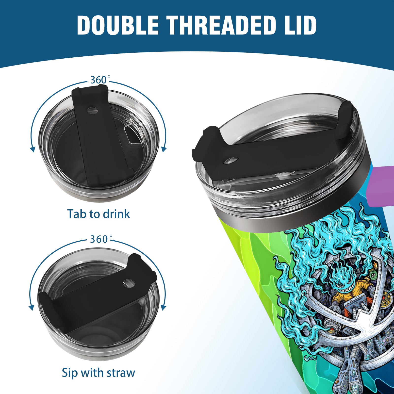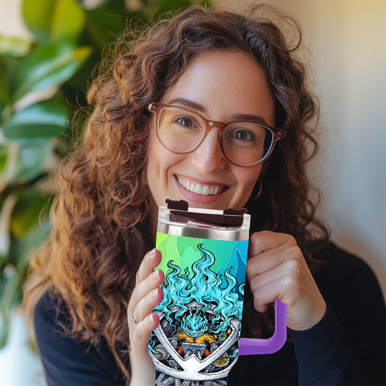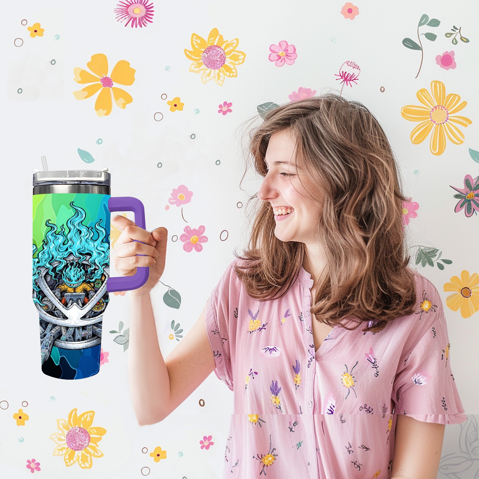 40oz 篮火幽灵 thermos with lid and straw, leak-proof stainless steel, with handle, spill-proof bottle, convenient for travel(purple)
