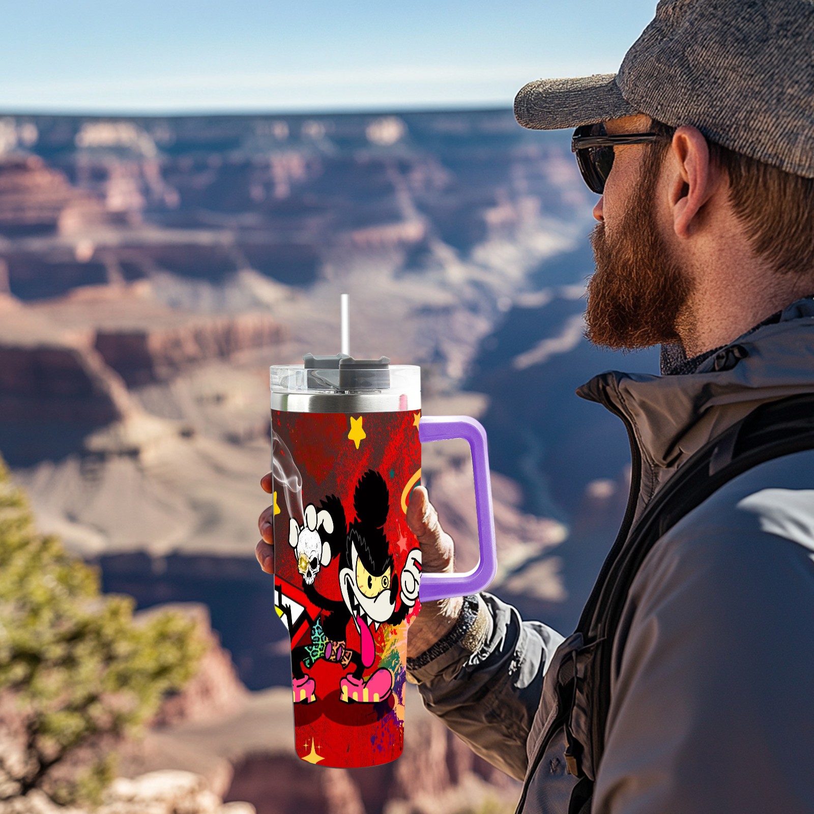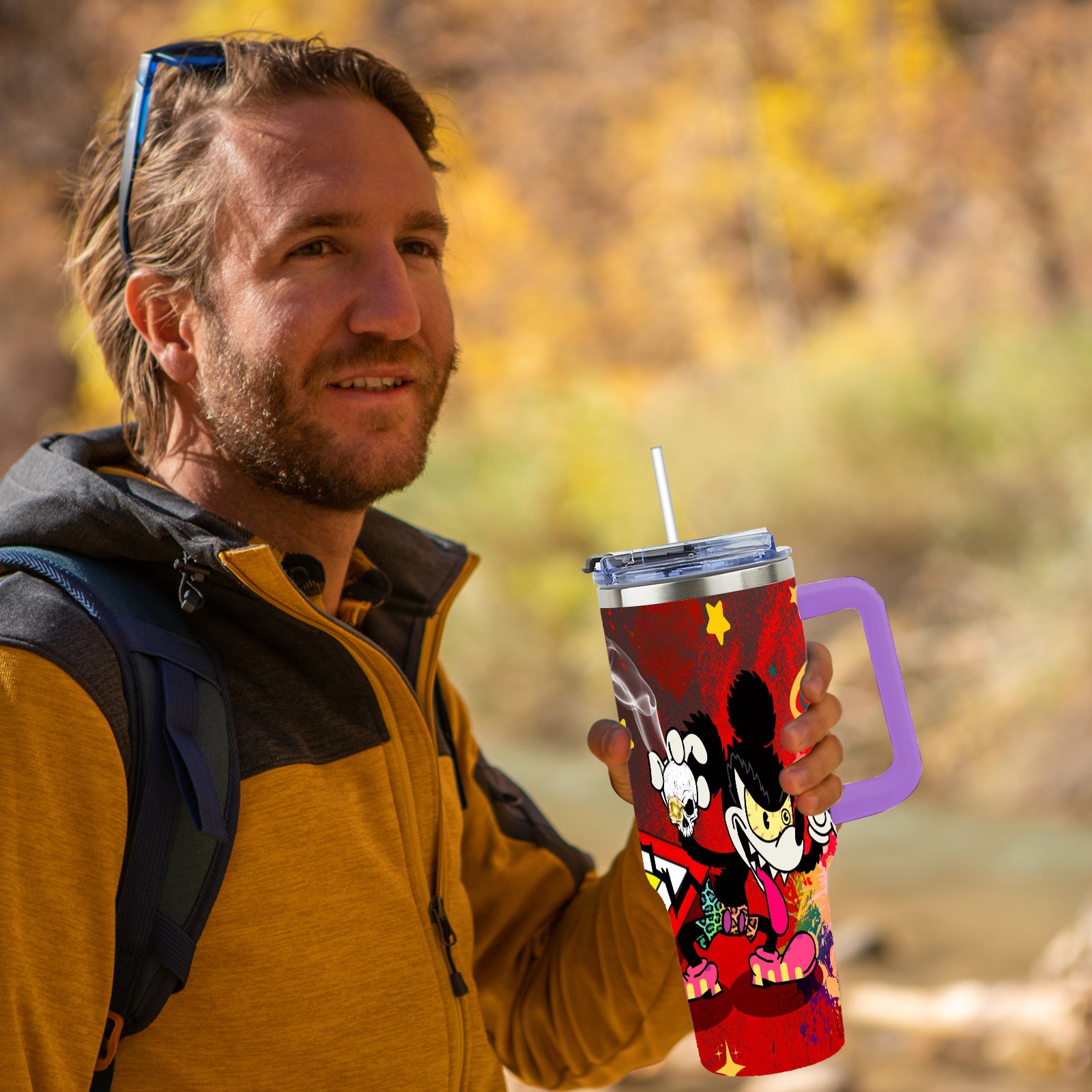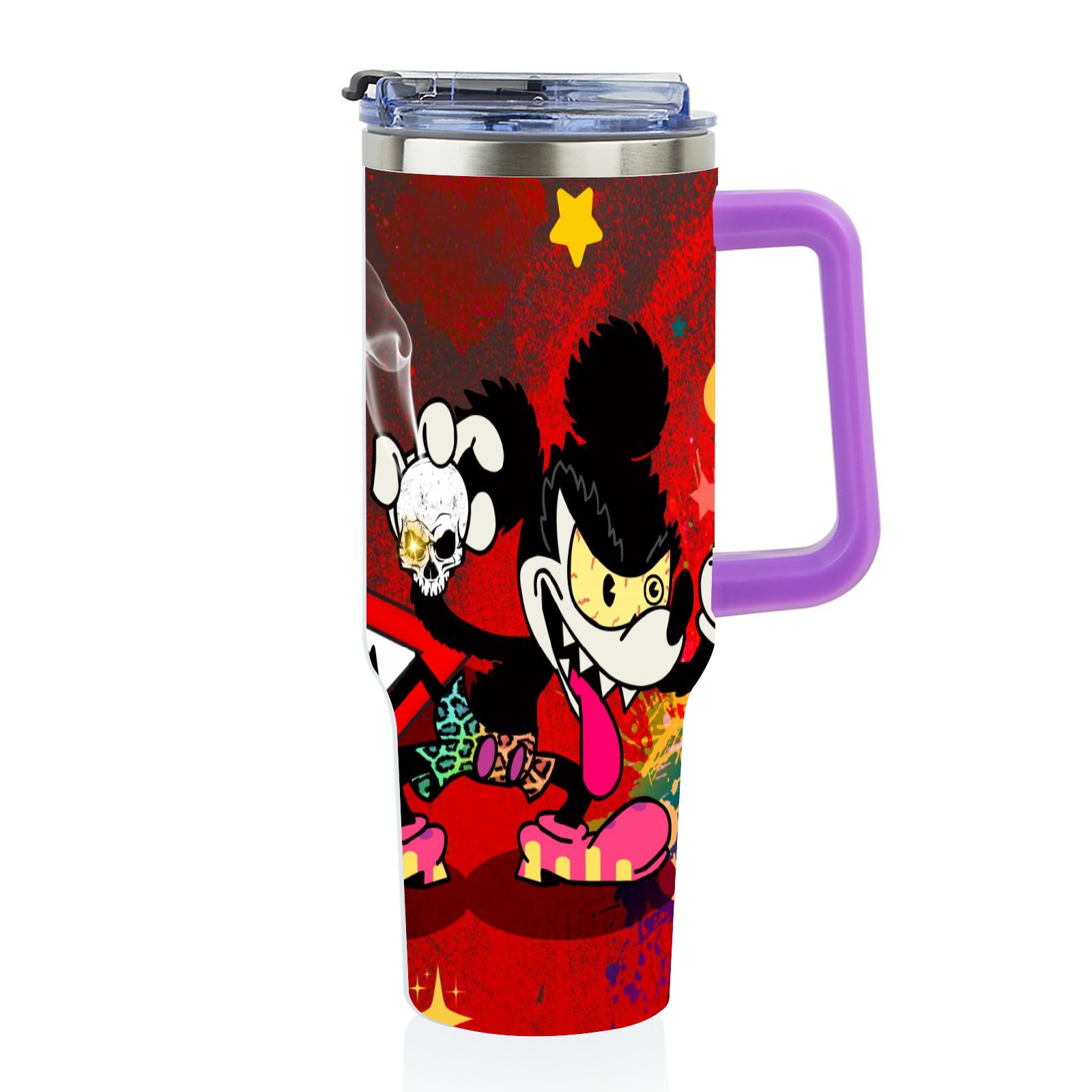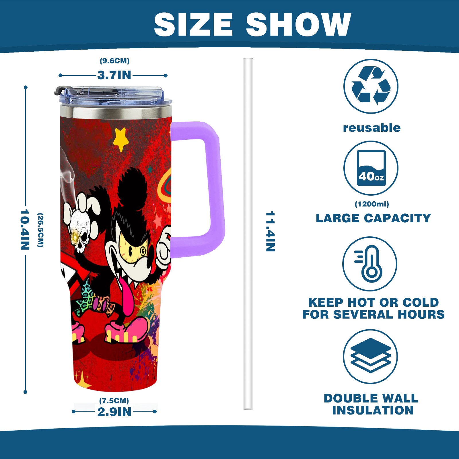 40oz 惊悚版米奇二创 thermos with lid and straw, leak-proof stainless steel, with handle, spill-proof bottle, convenient for travel(purple)