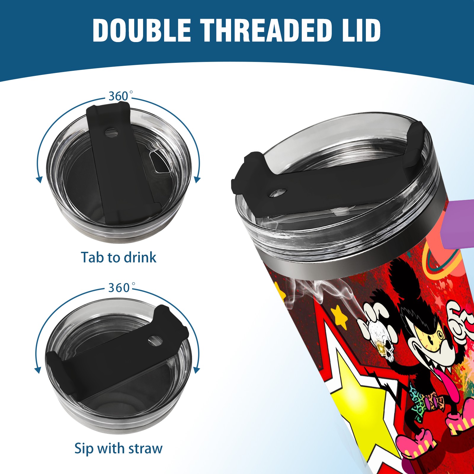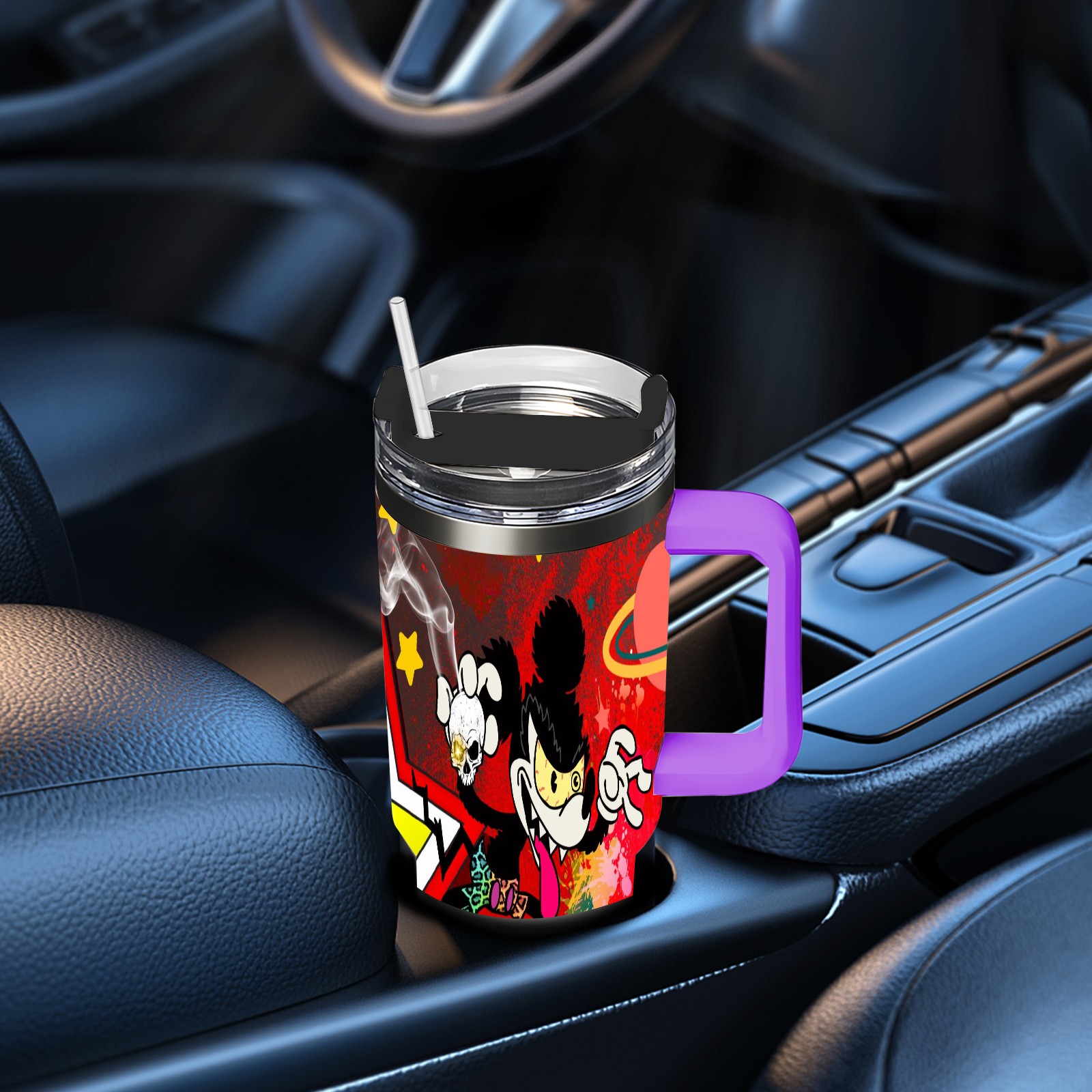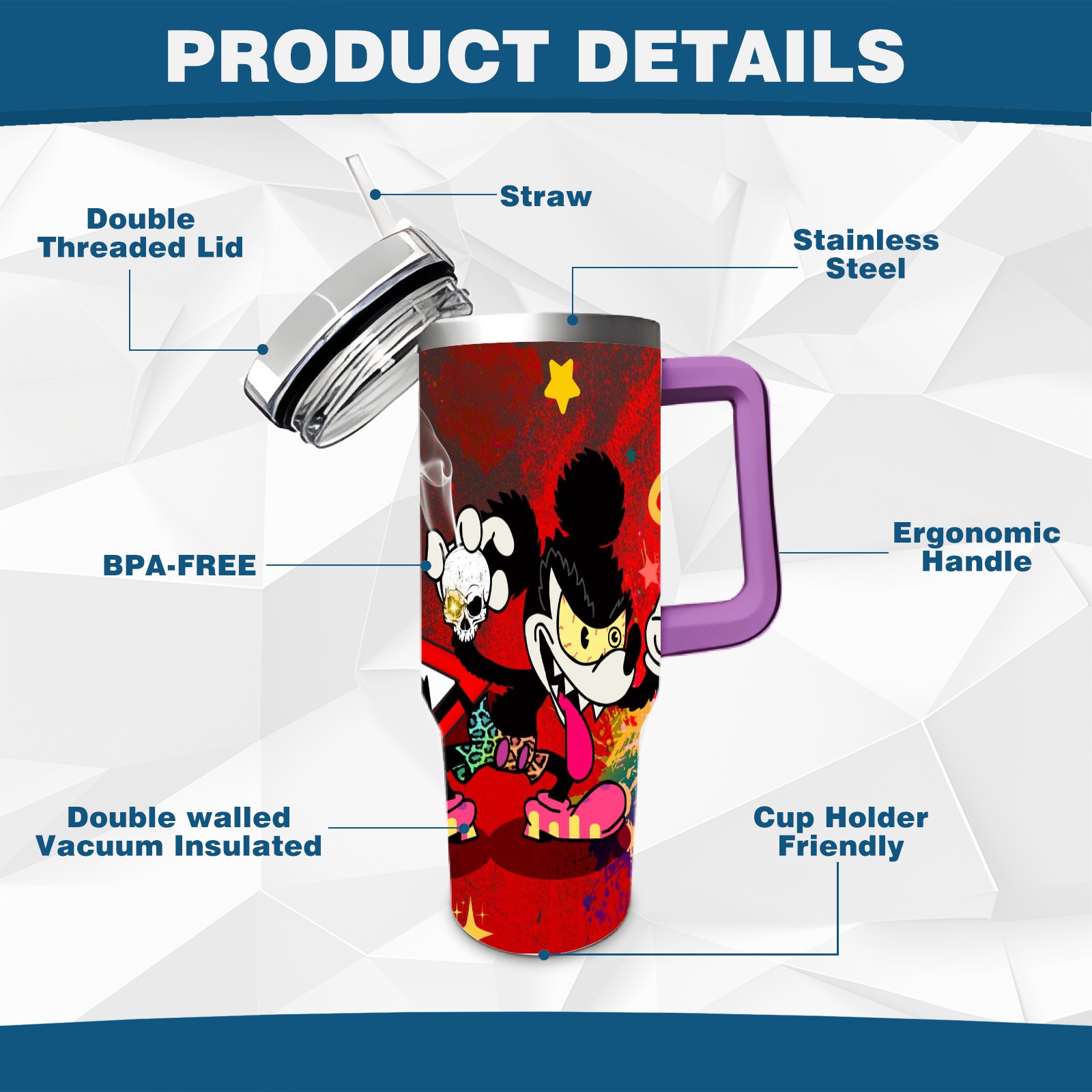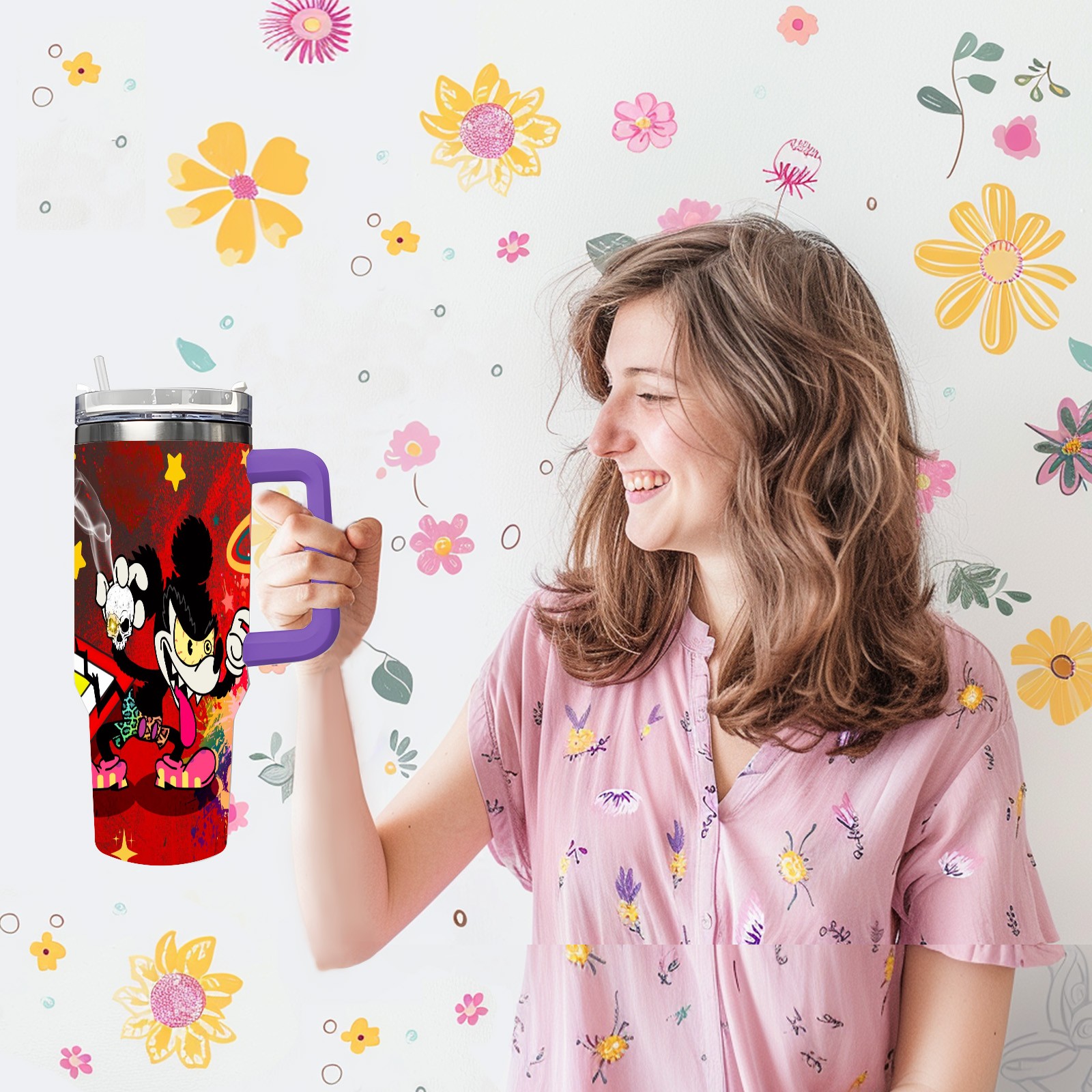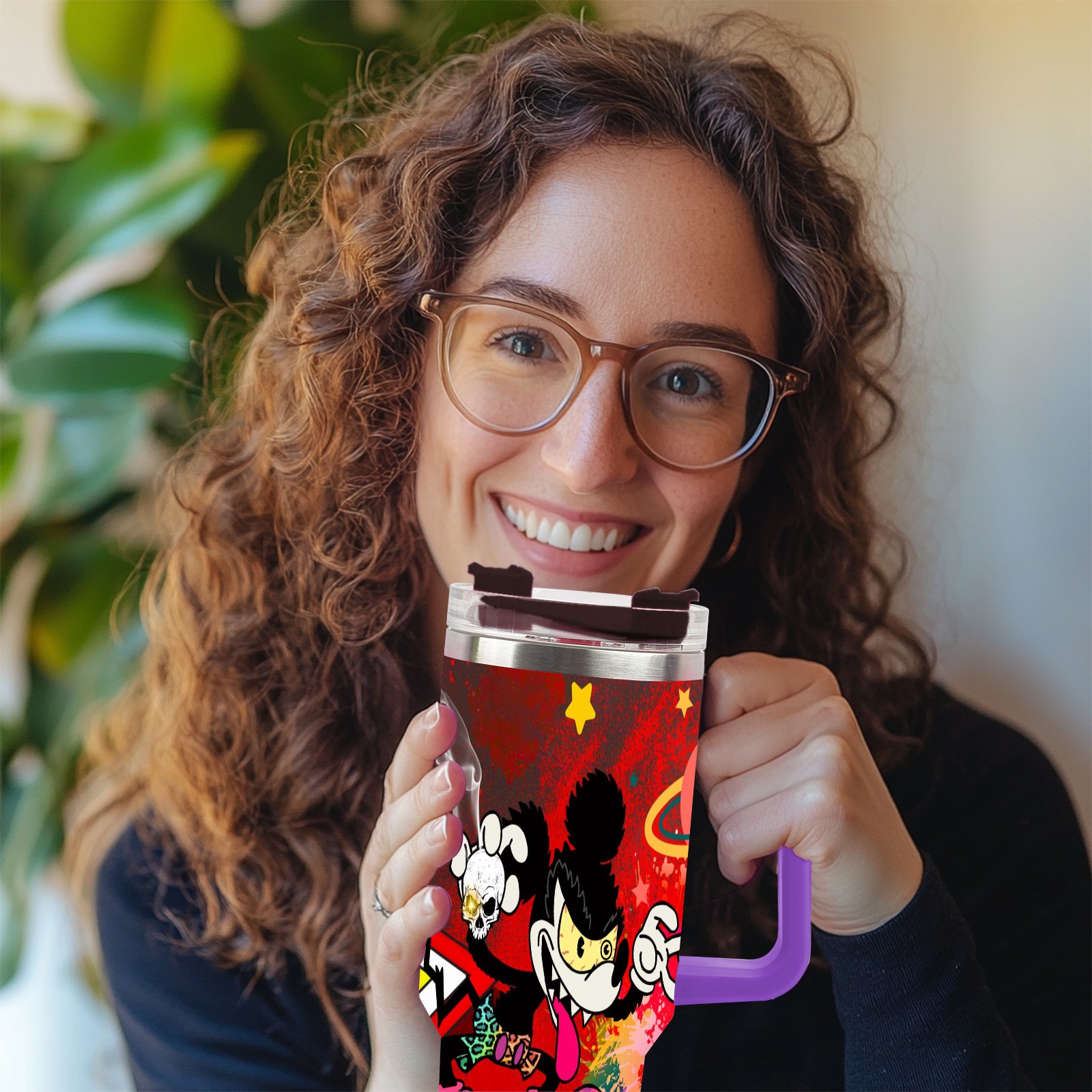 40oz 惊悚版米奇二创 thermos with lid and straw, leak-proof stainless steel, with handle, spill-proof bottle, convenient for travel(purple)