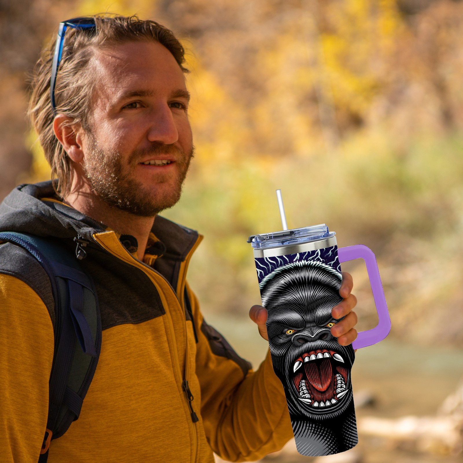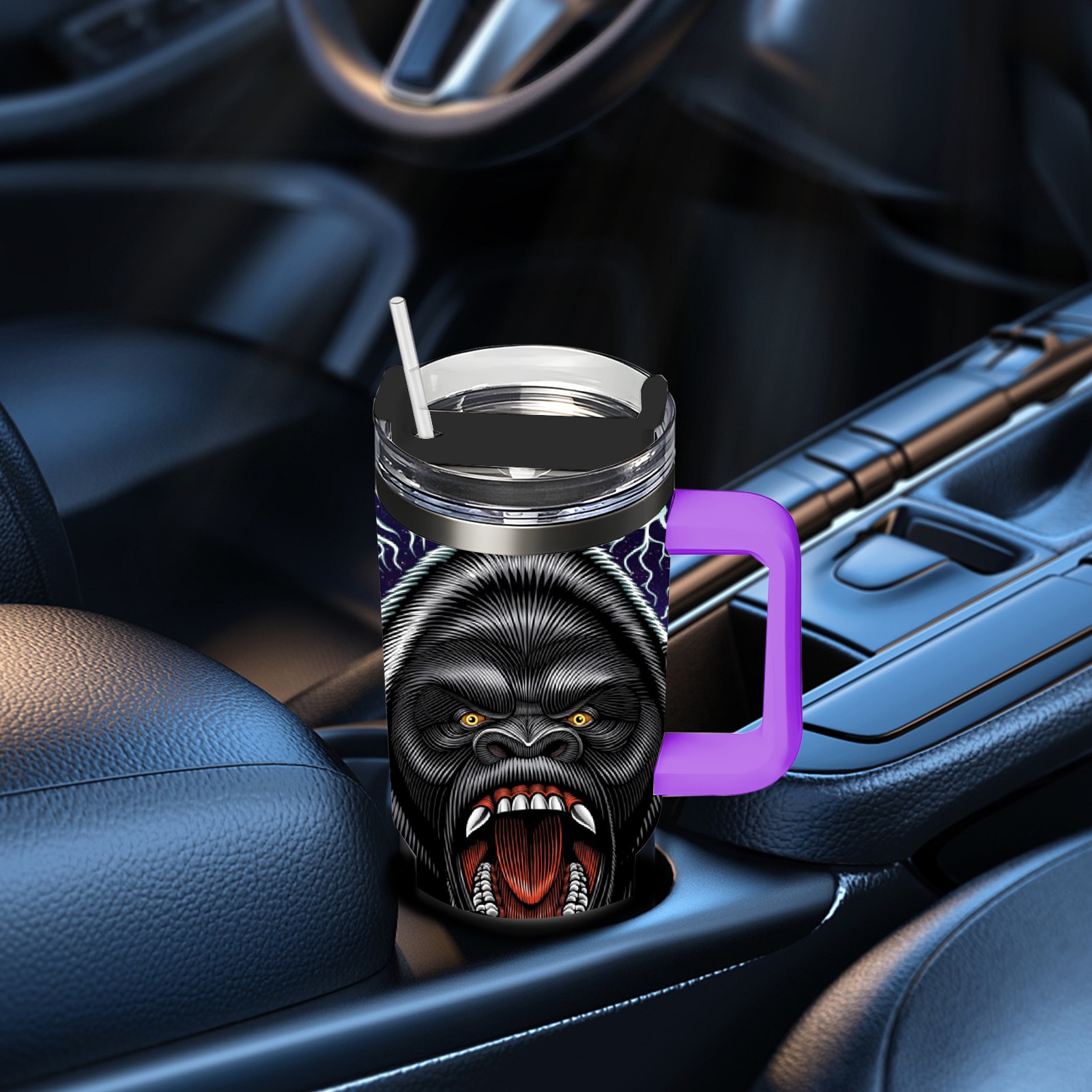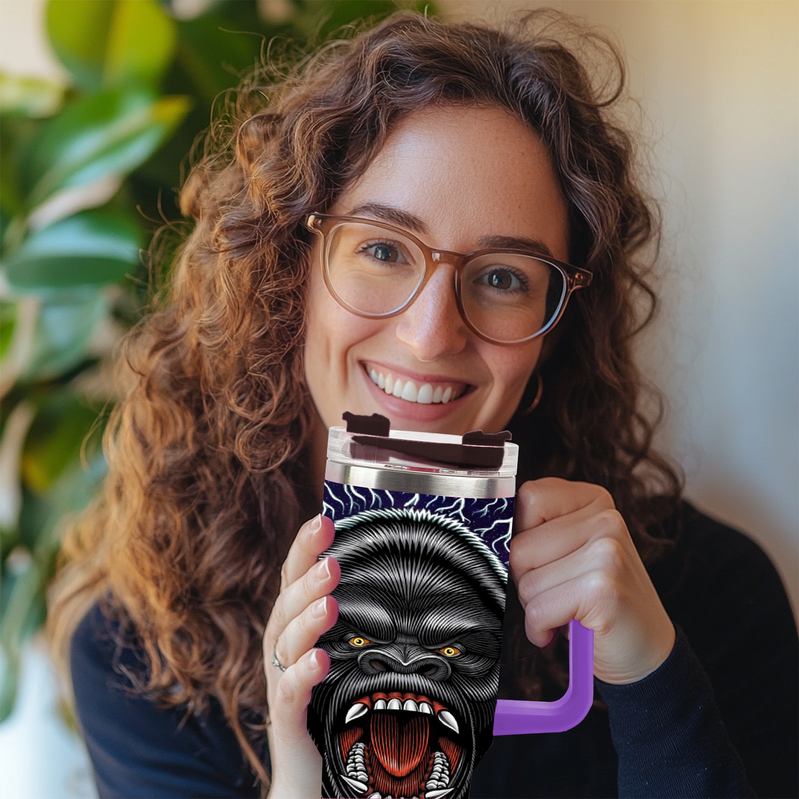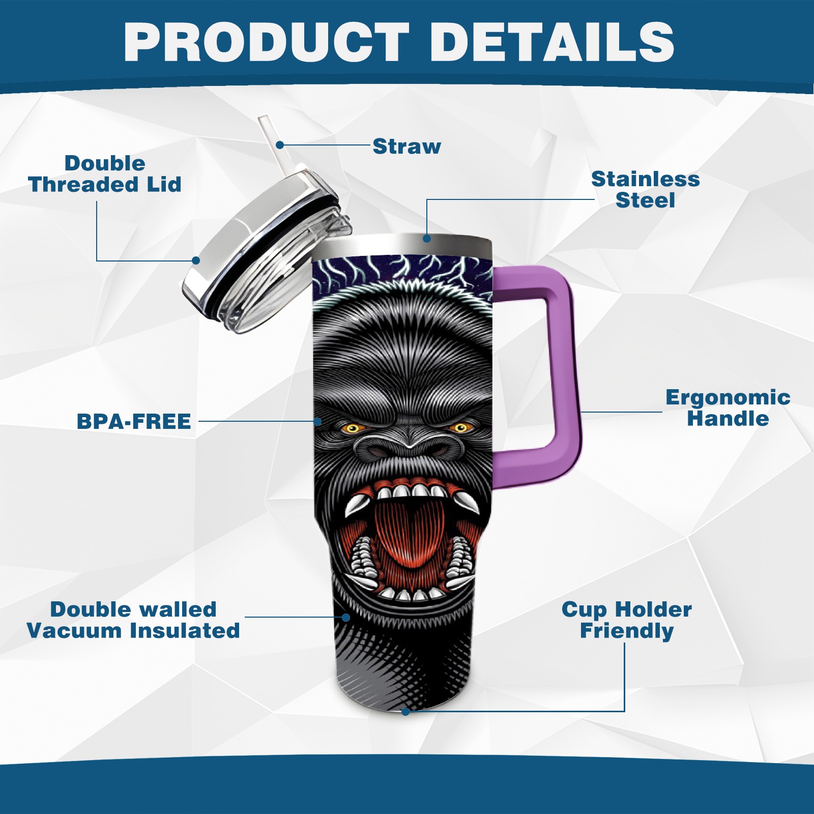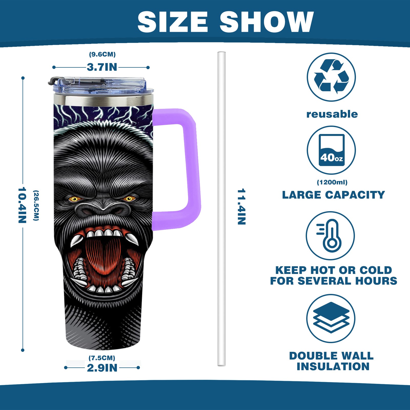 40oz 吉吉国王2 thermos with lid and straw, leak-proof stainless steel, with handle, spill-proof bottle, convenient for travel(purple)