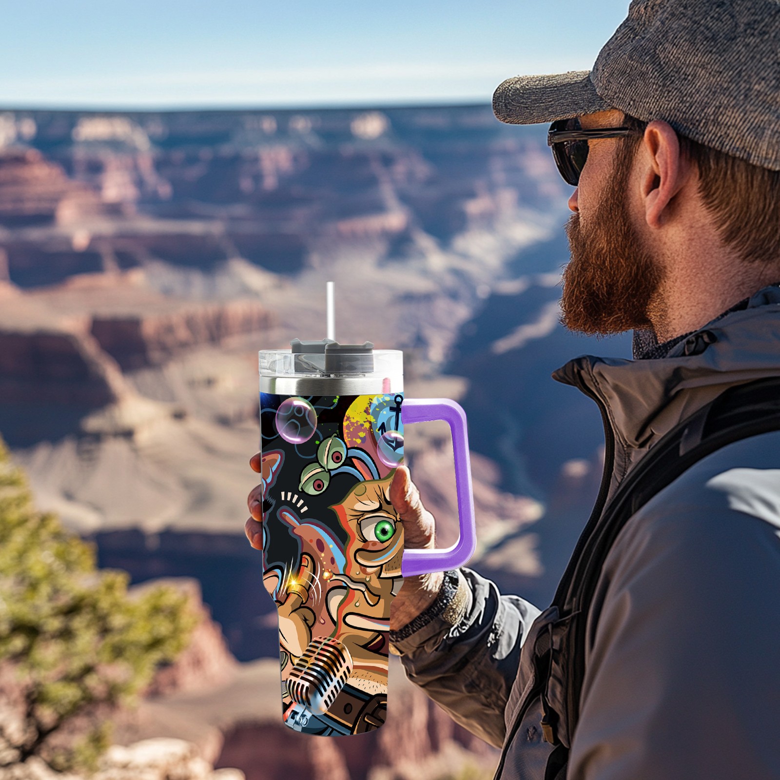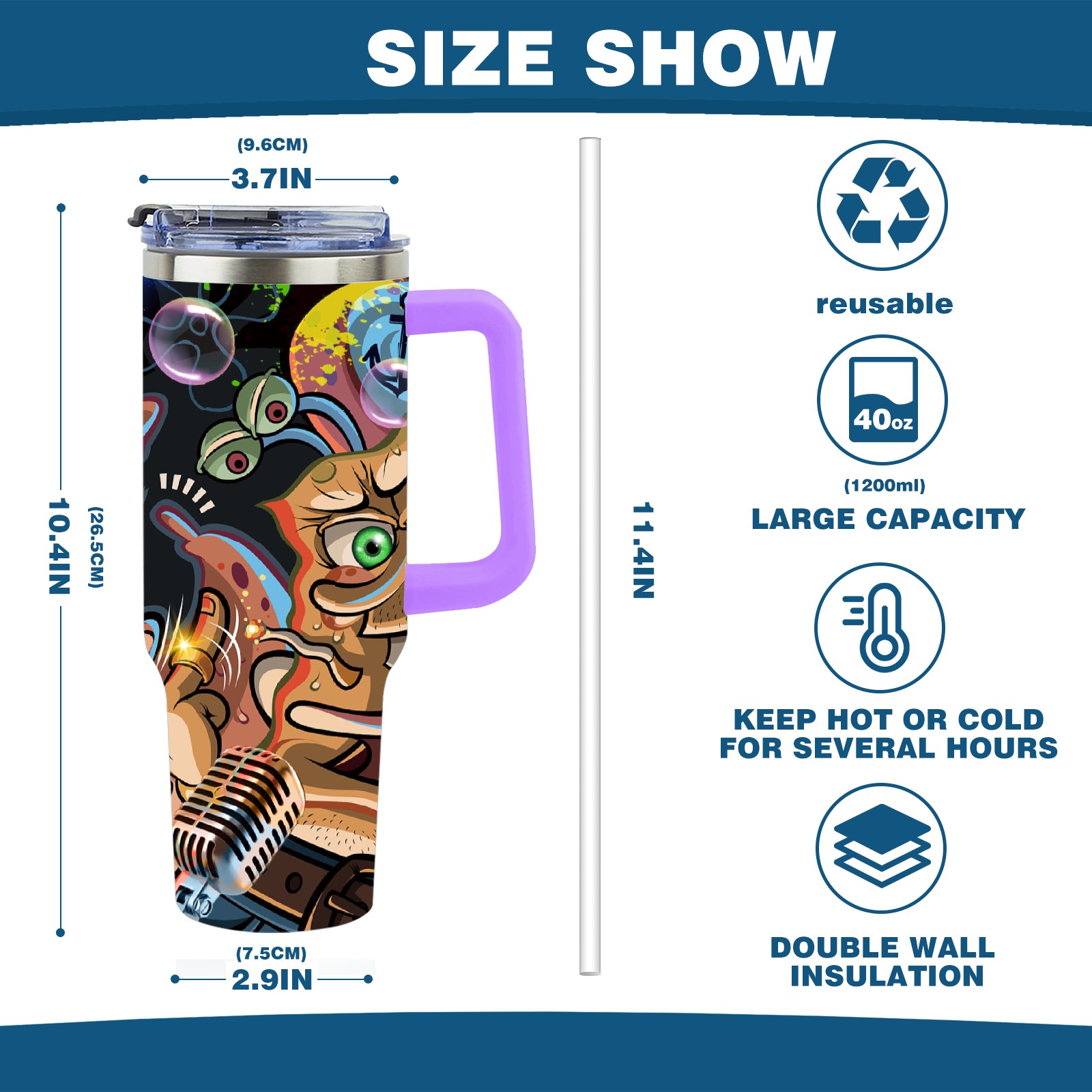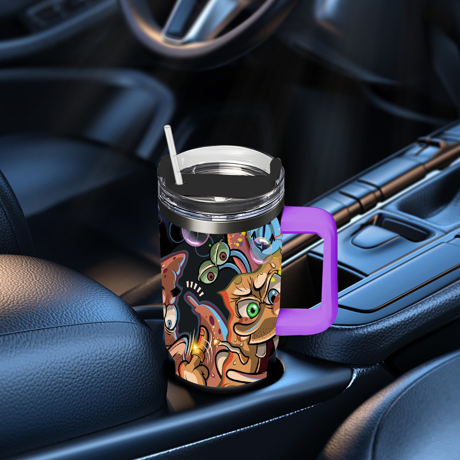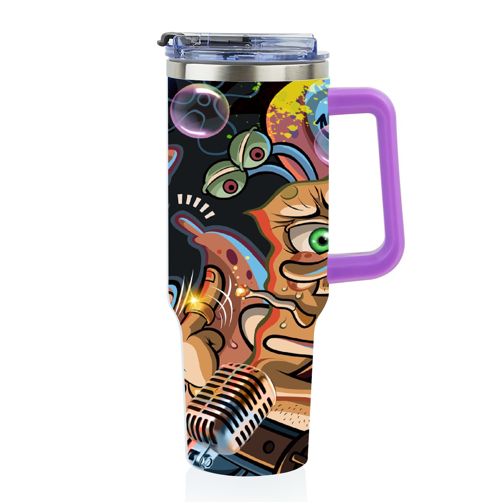 40oz 海绵宝宝 thermos with lid and straw, leak-proof stainless steel, with handle, spill-proof bottle, convenient for travel(purple)