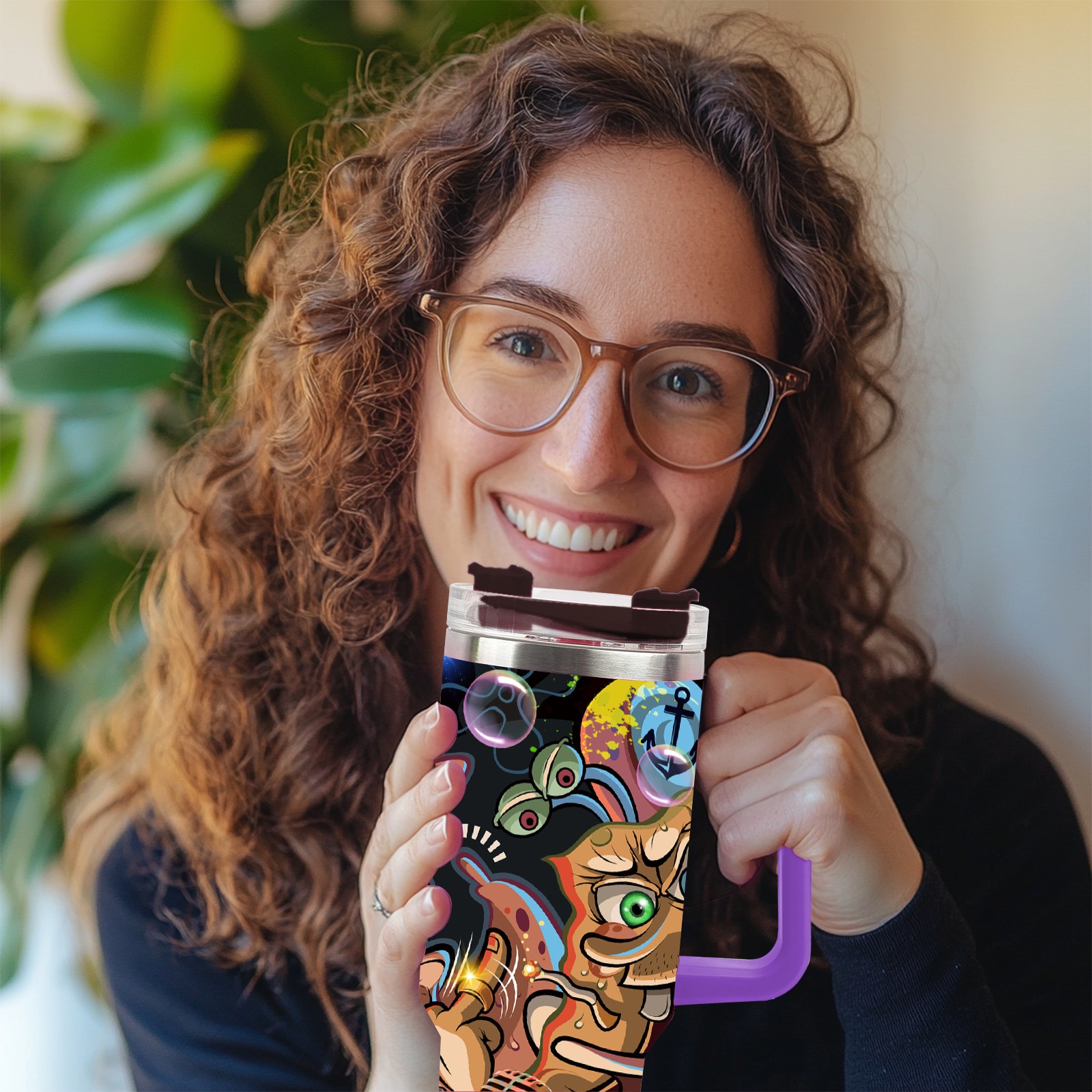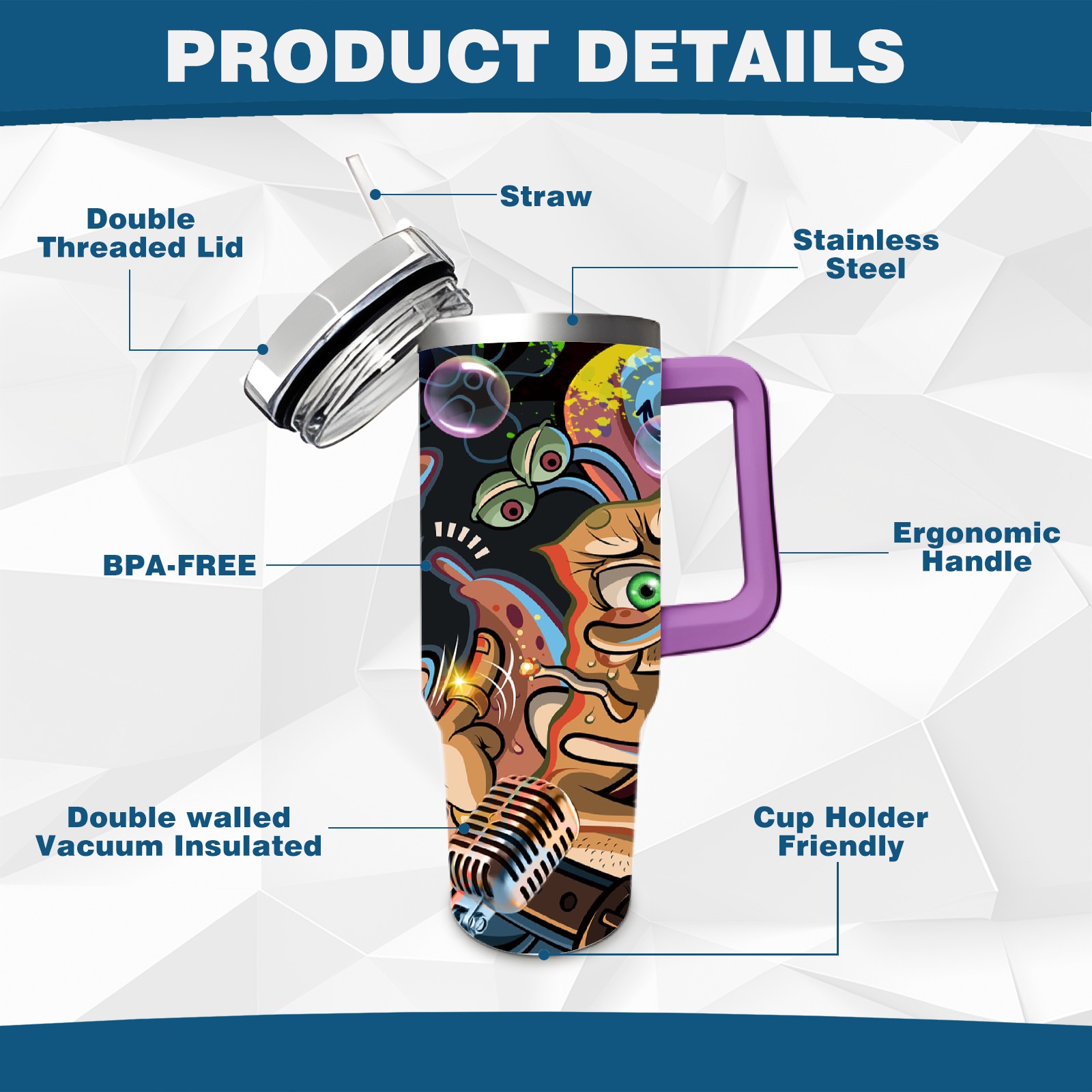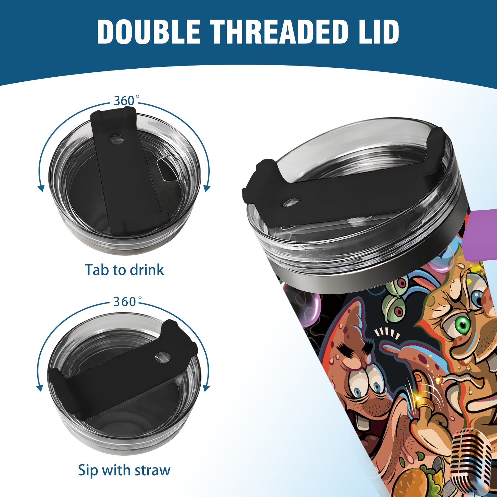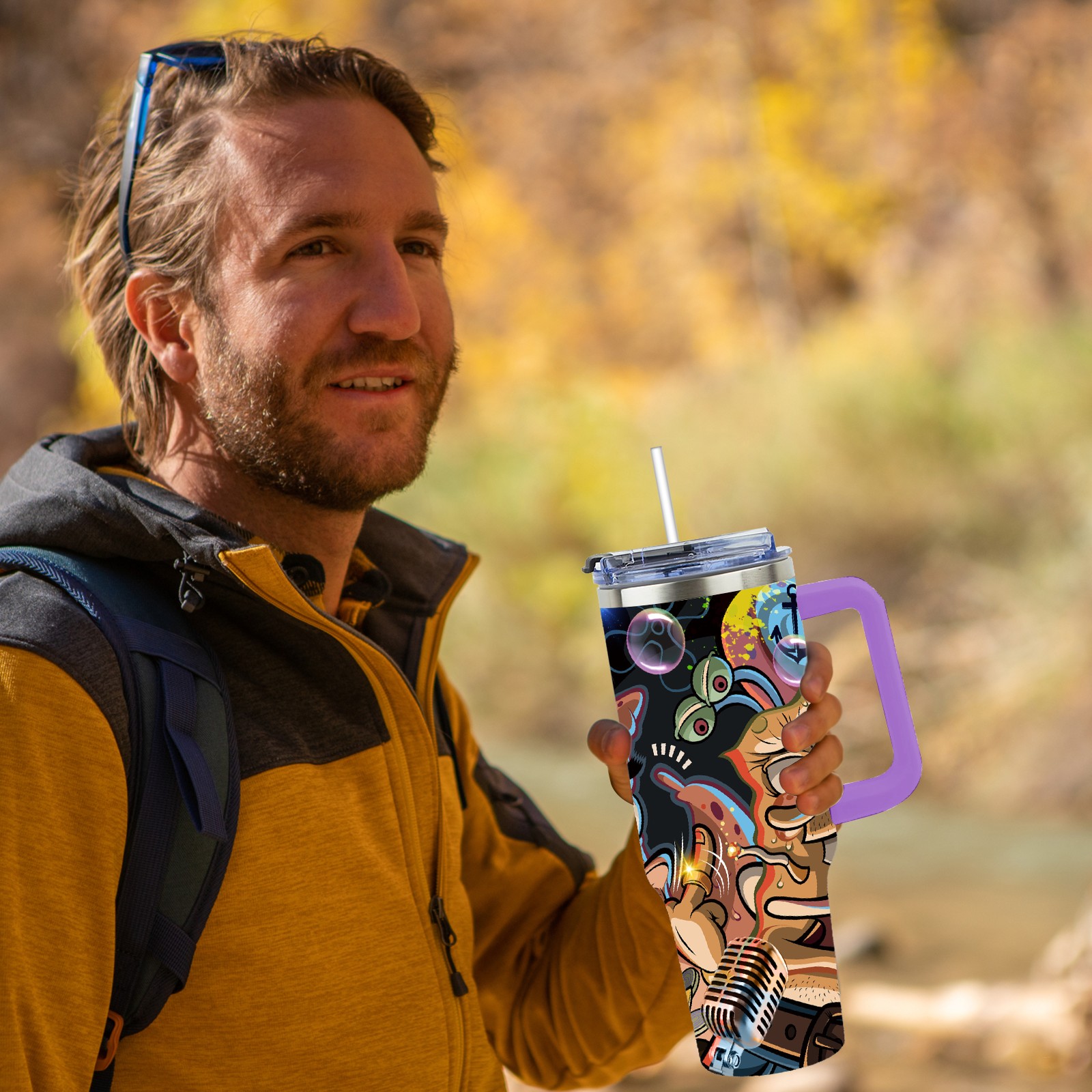 40oz 海绵宝宝 thermos with lid and straw, leak-proof stainless steel, with handle, spill-proof bottle, convenient for travel(purple)