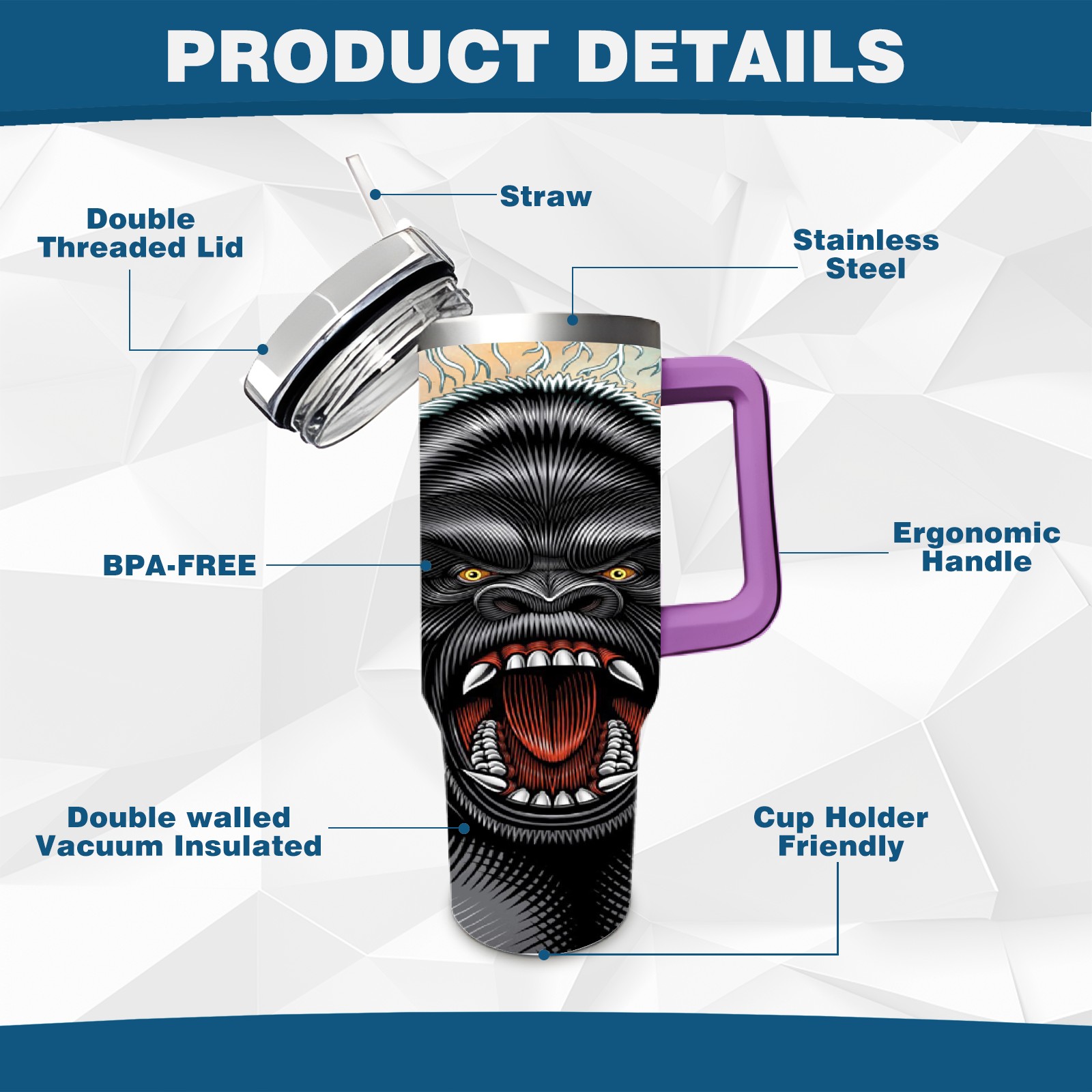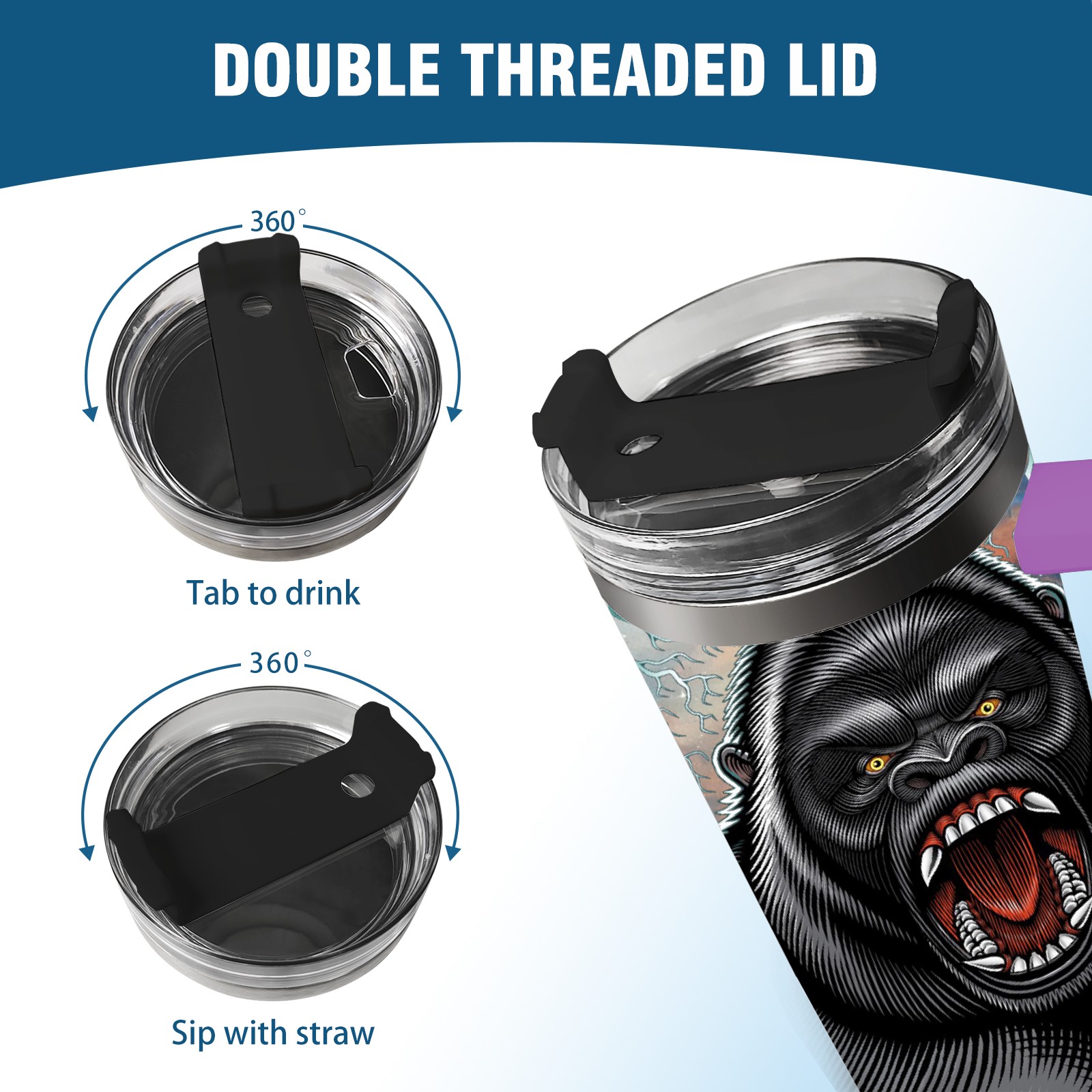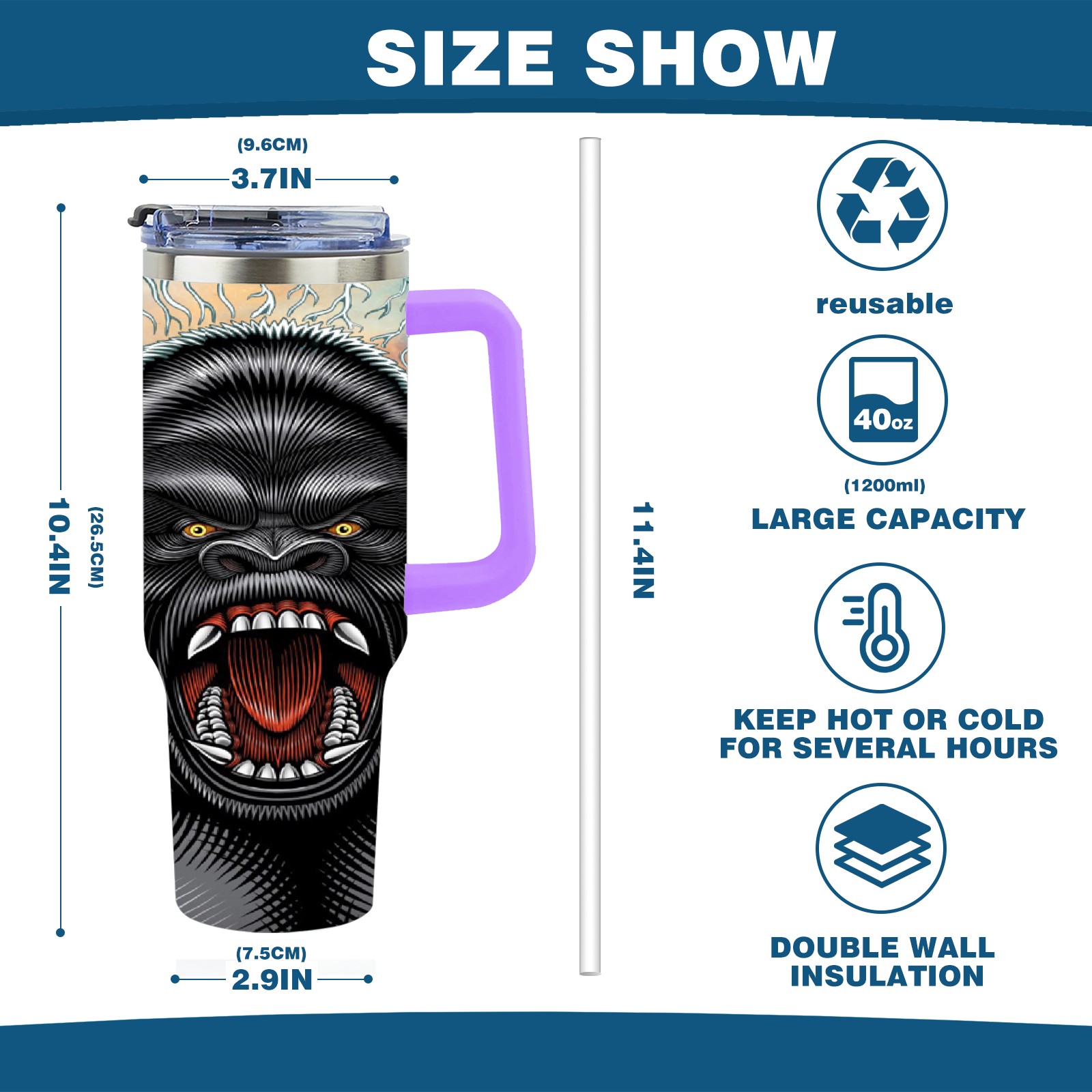 40oz 吉吉国王 thermos with lid and straw, leak-proof stainless steel, with handle, spill-proof bottle, convenient for travel(purple)