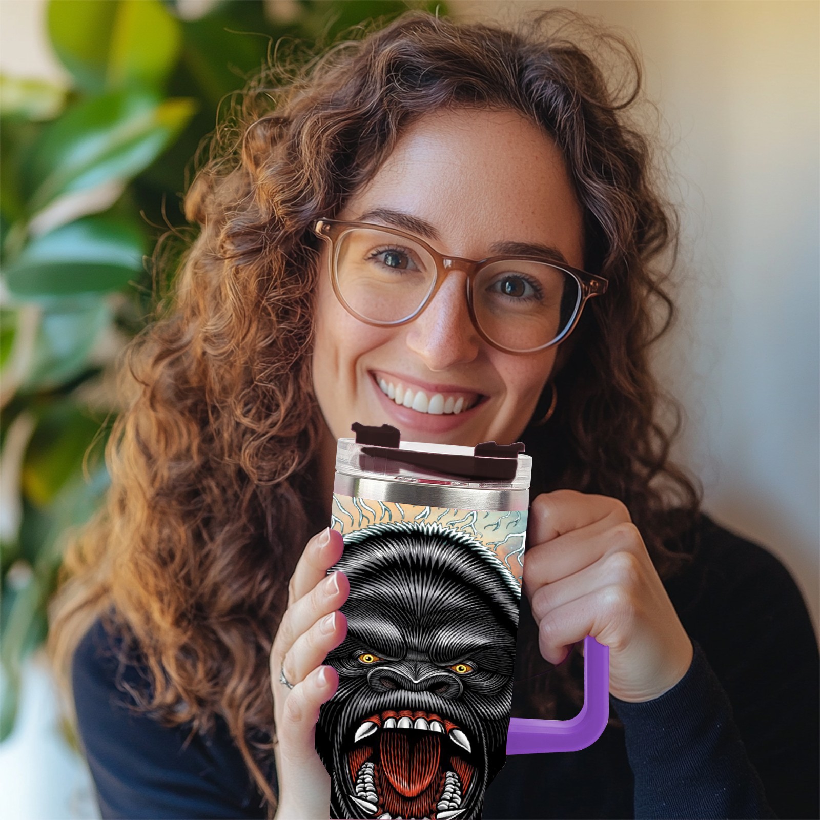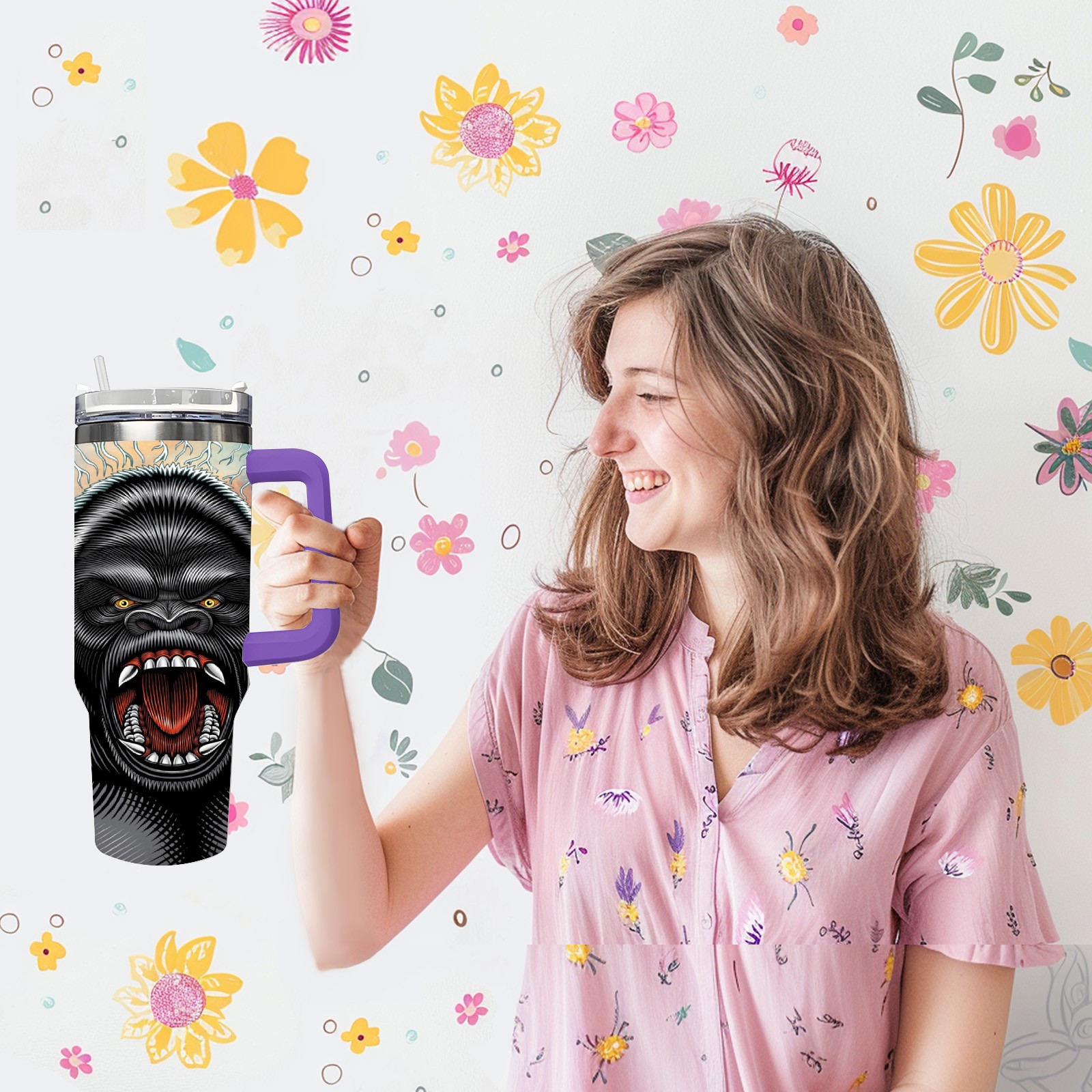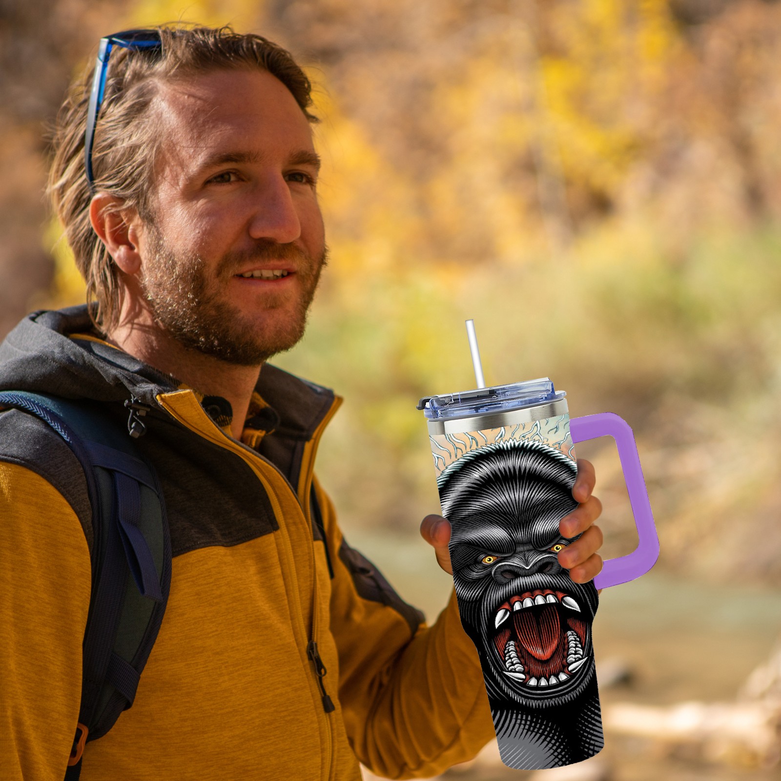 40oz 吉吉国王 thermos with lid and straw, leak-proof stainless steel, with handle, spill-proof bottle, convenient for travel(purple)