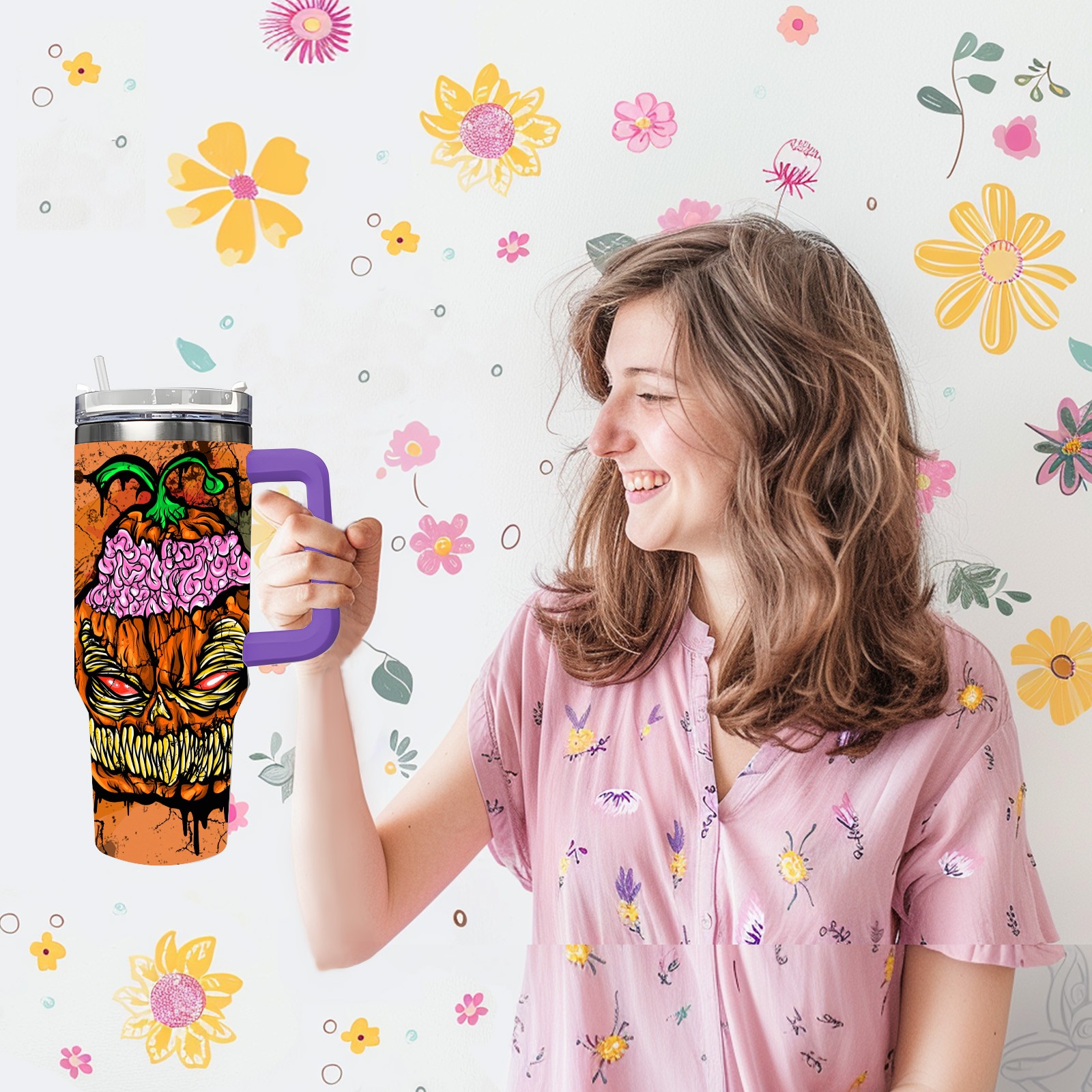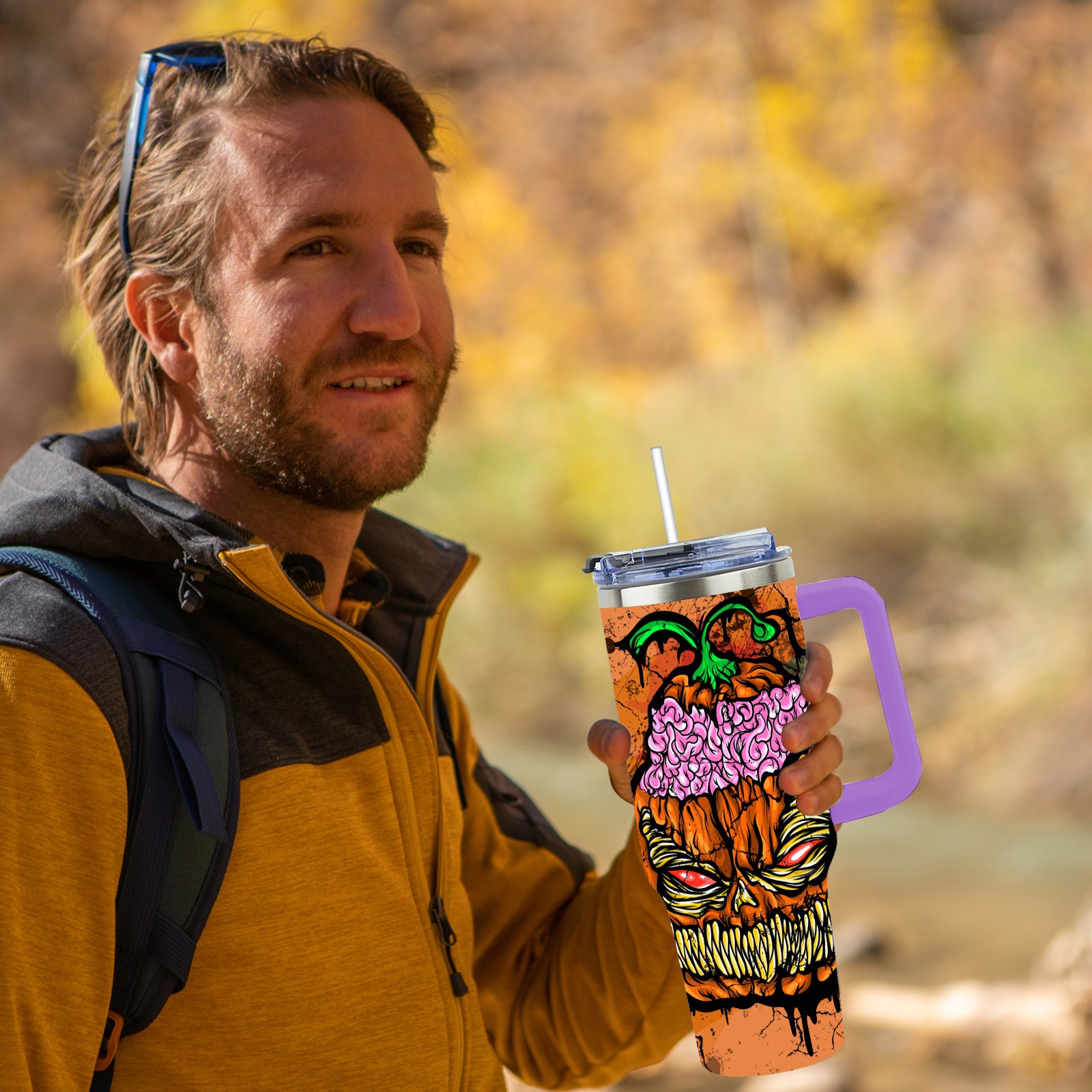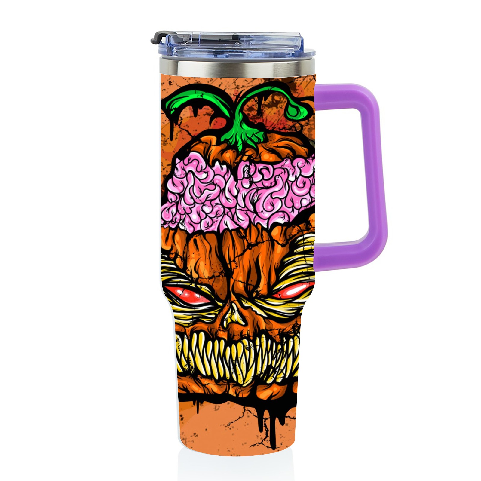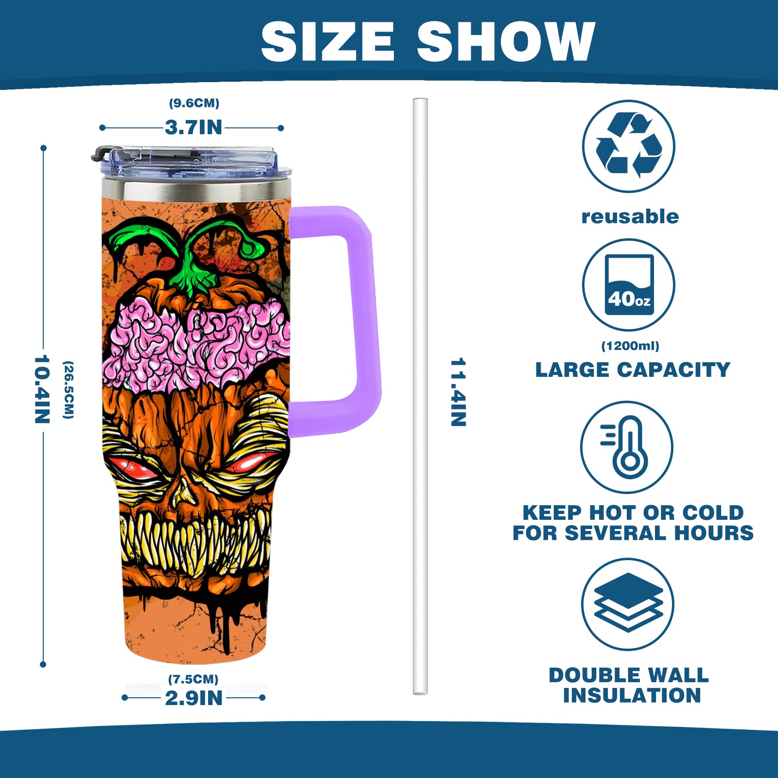 40oz 鬼脸南瓜 thermos with lid and straw, leak-proof stainless steel, with handle, spill-proof bottle, convenient for travel(purple)
