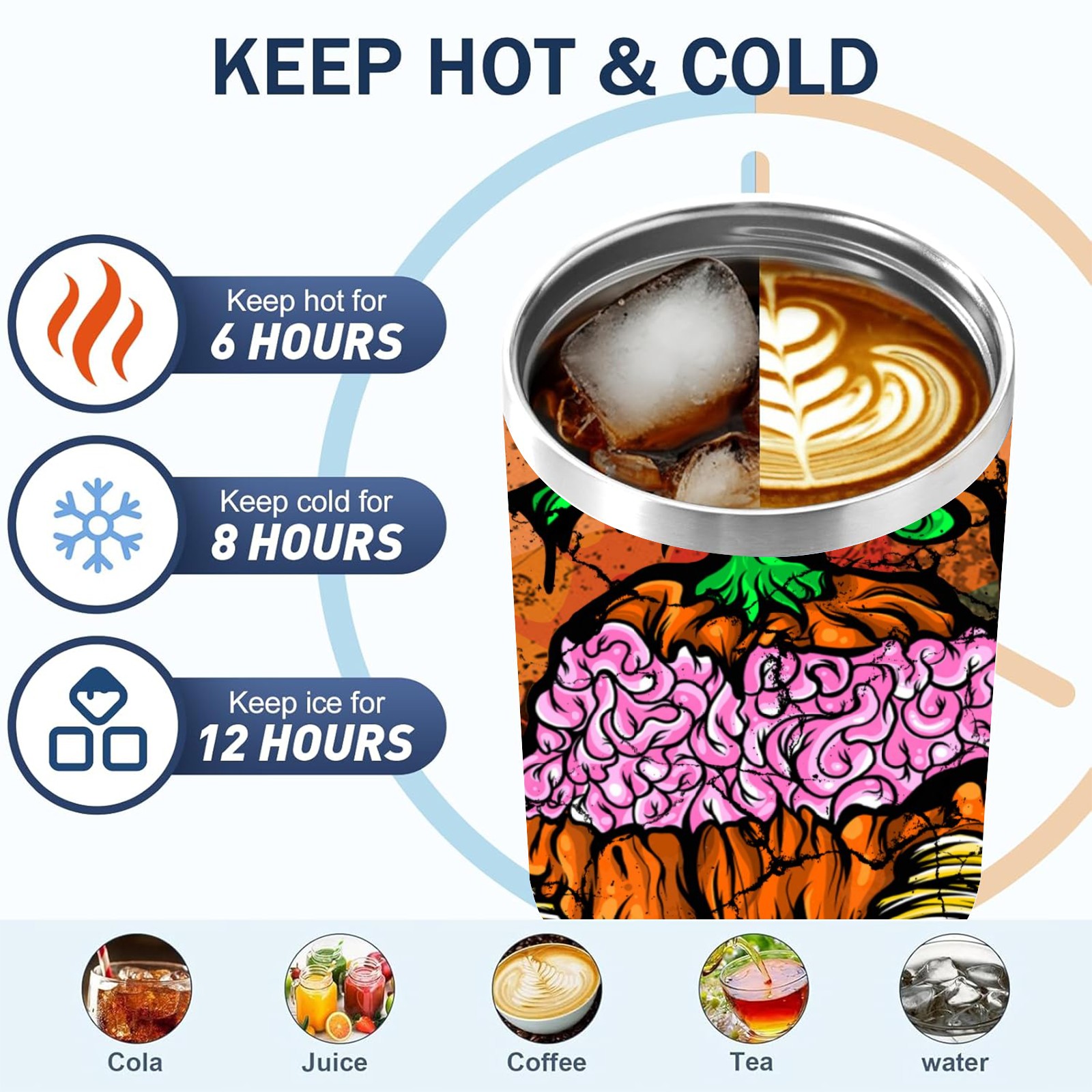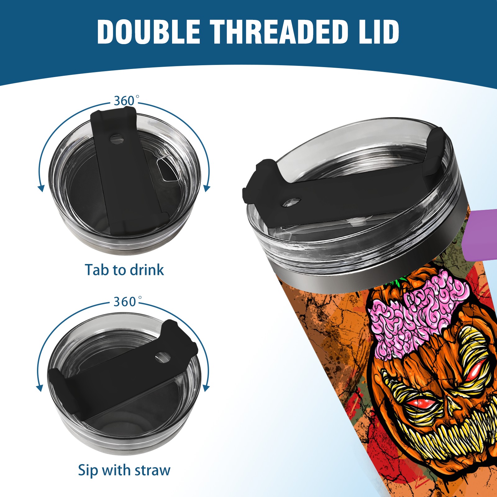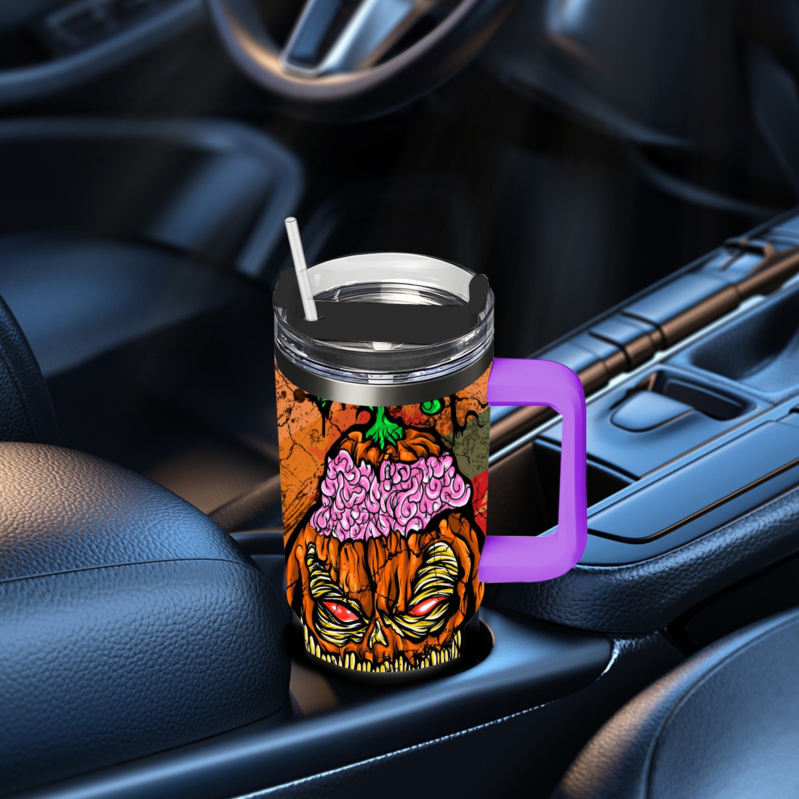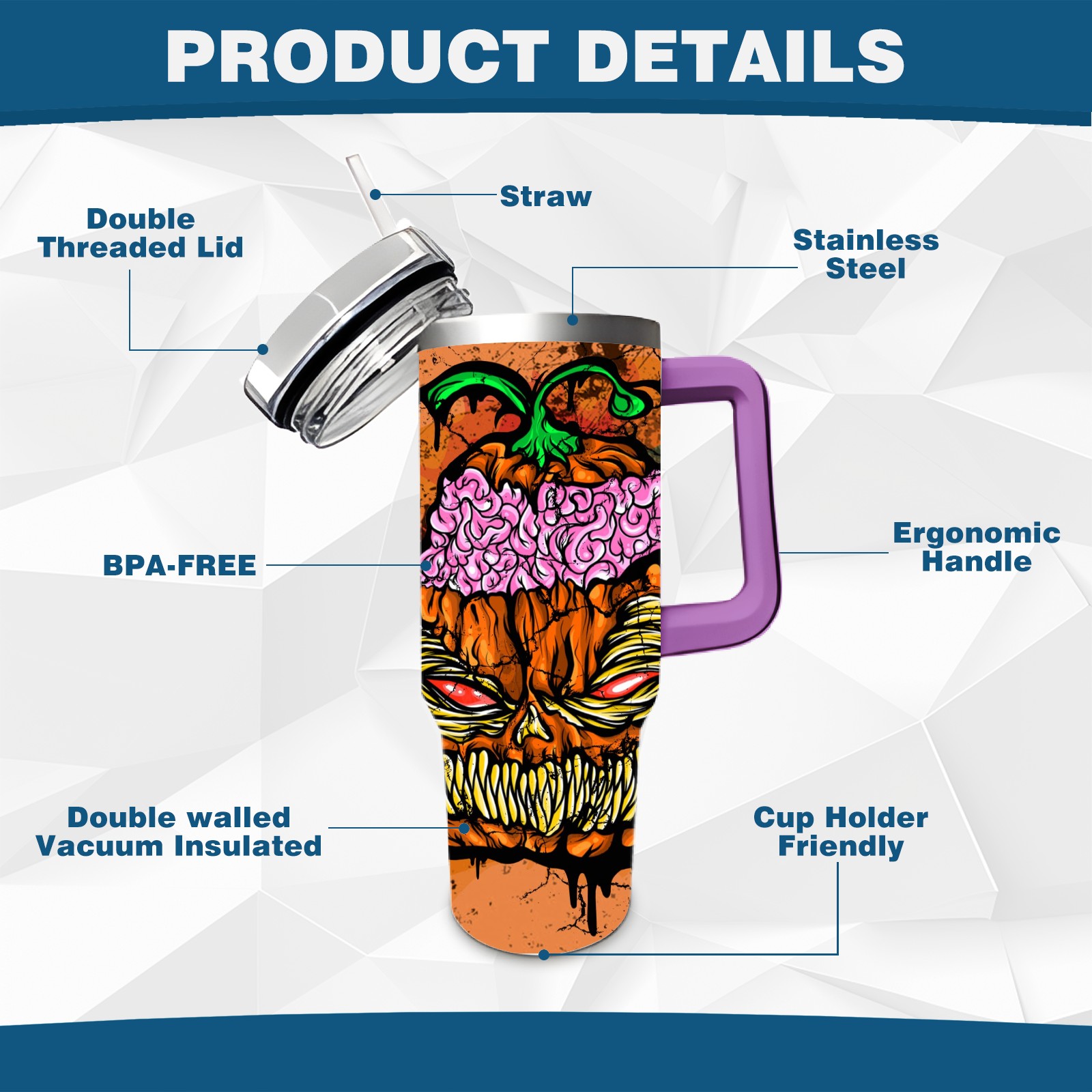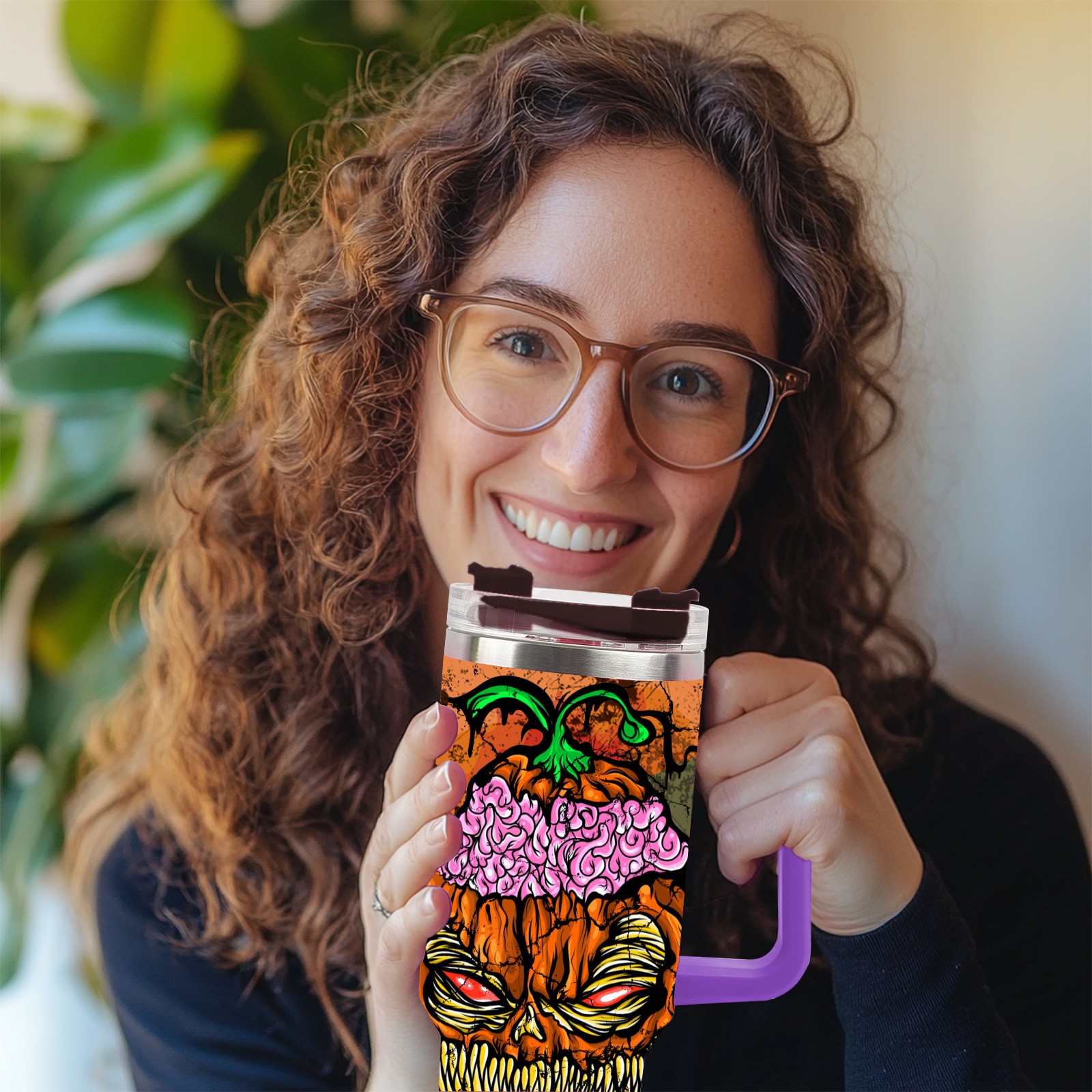 40oz 鬼脸南瓜 thermos with lid and straw, leak-proof stainless steel, with handle, spill-proof bottle, convenient for travel(purple)